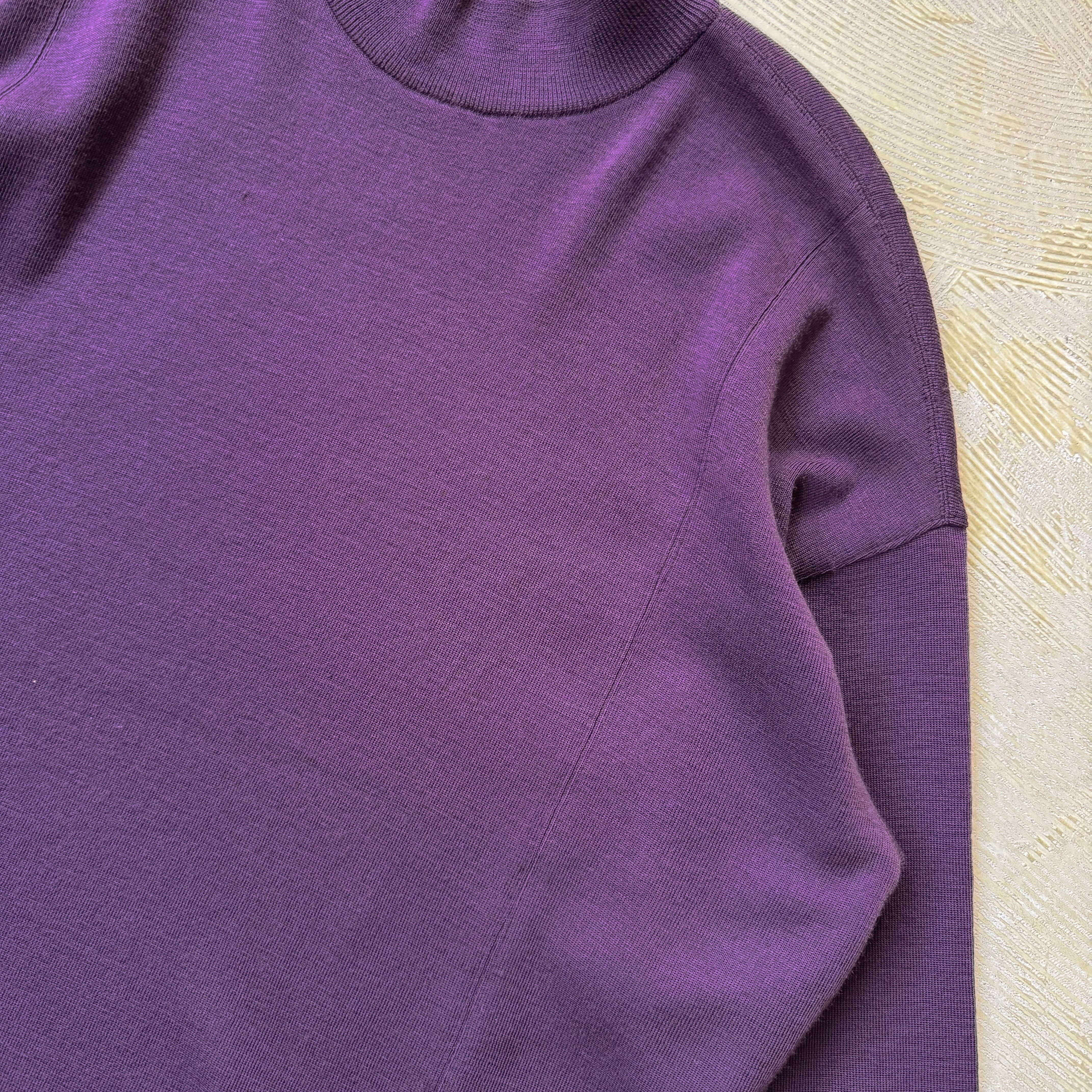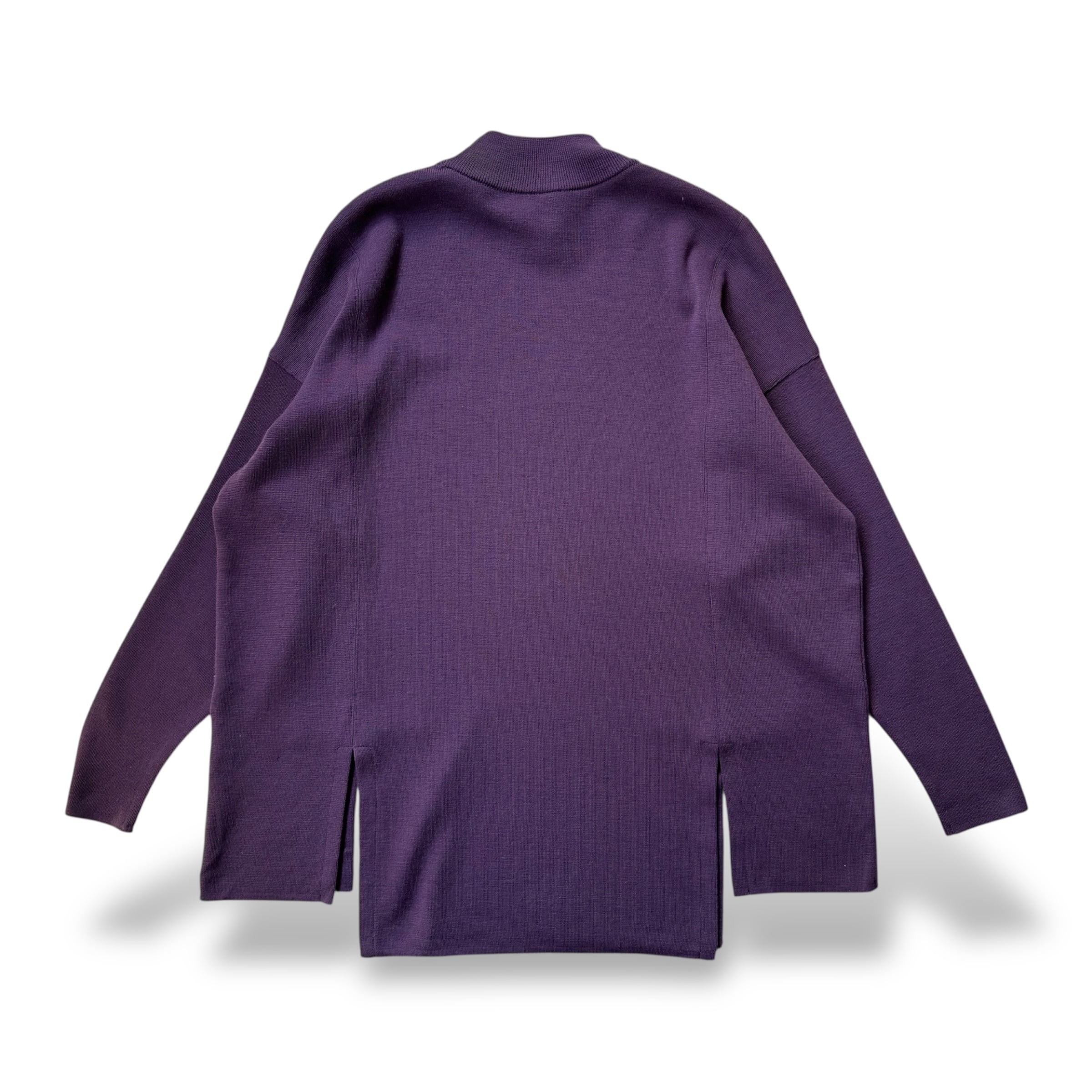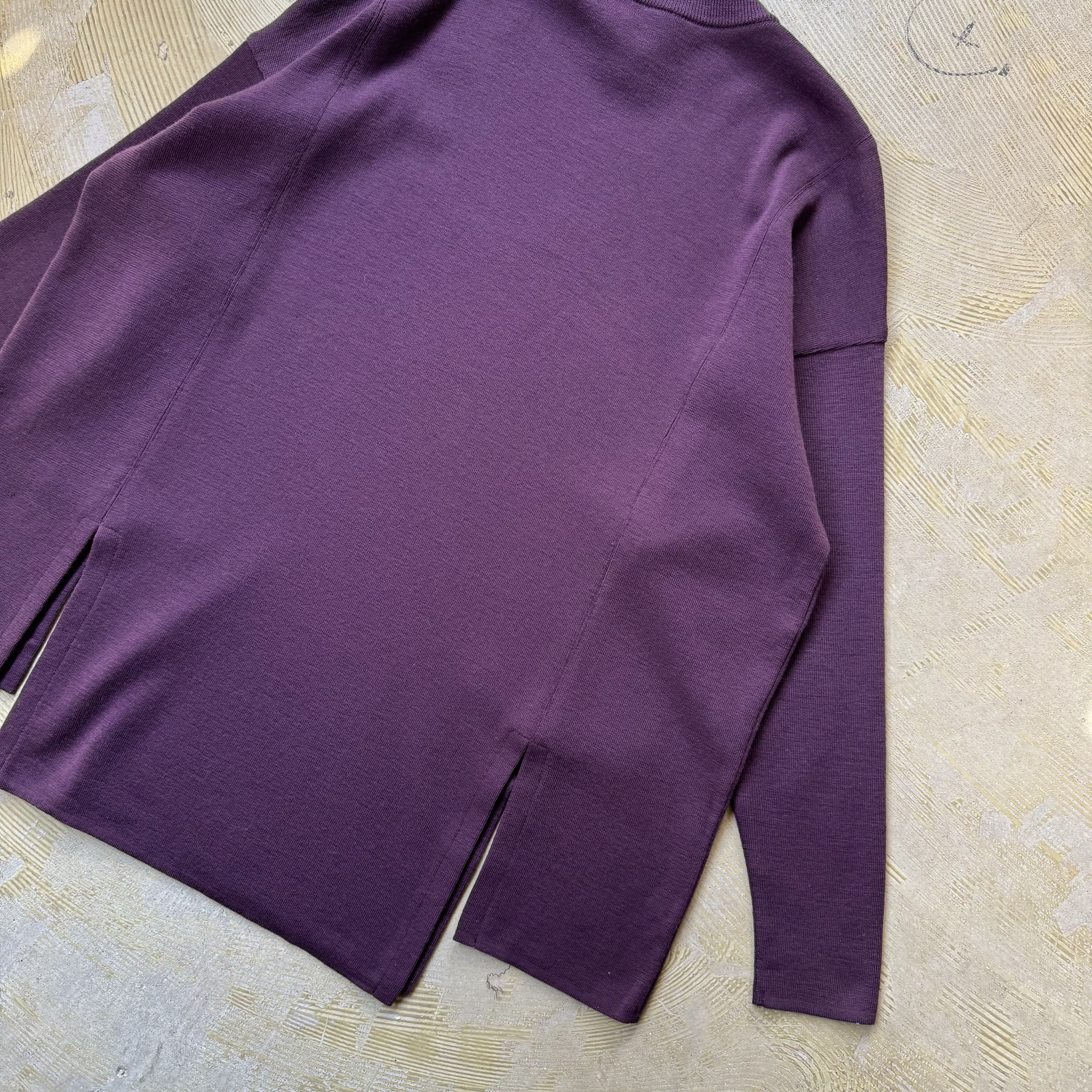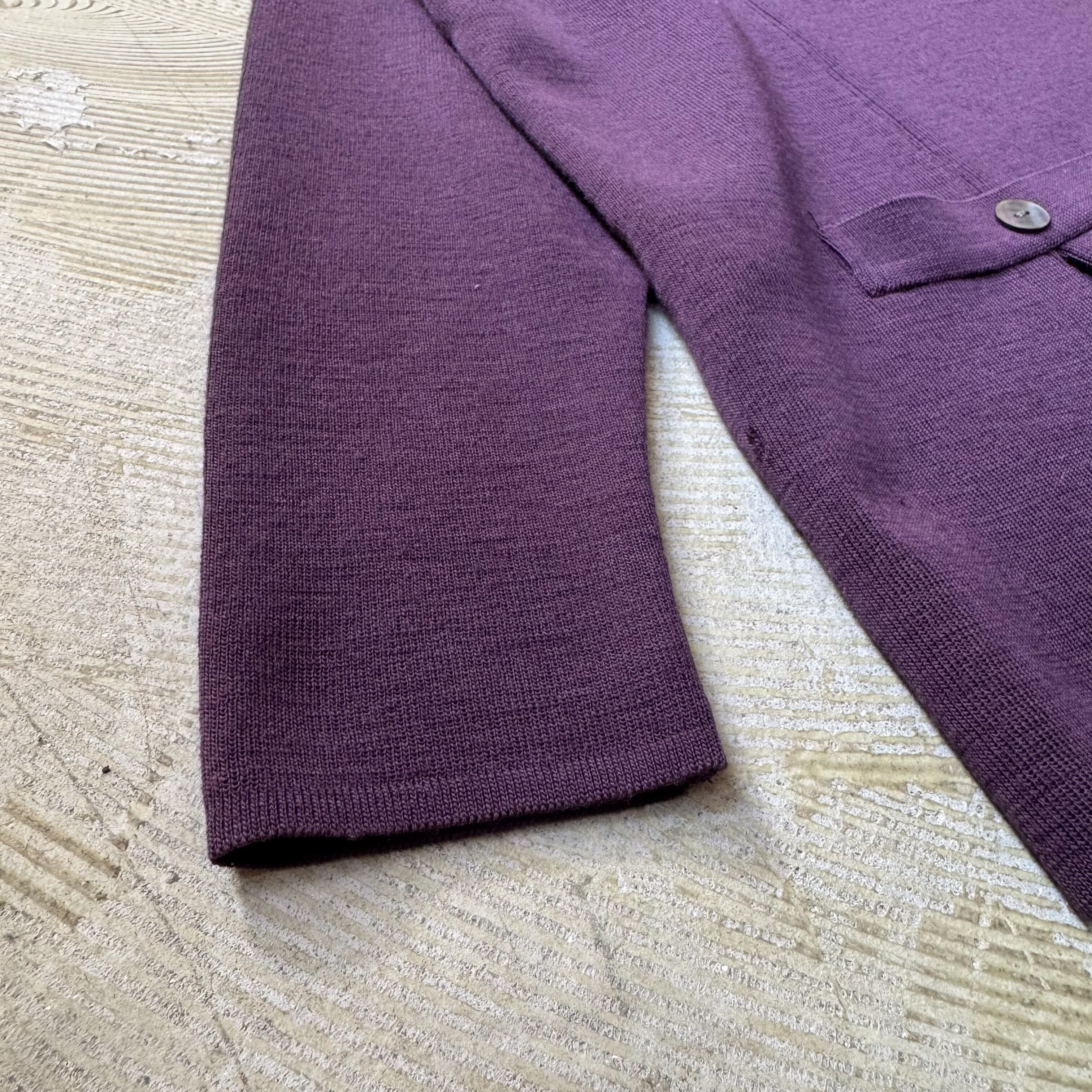 ・深いパープルのボディに、左右のボタン付きフェイクポケット。