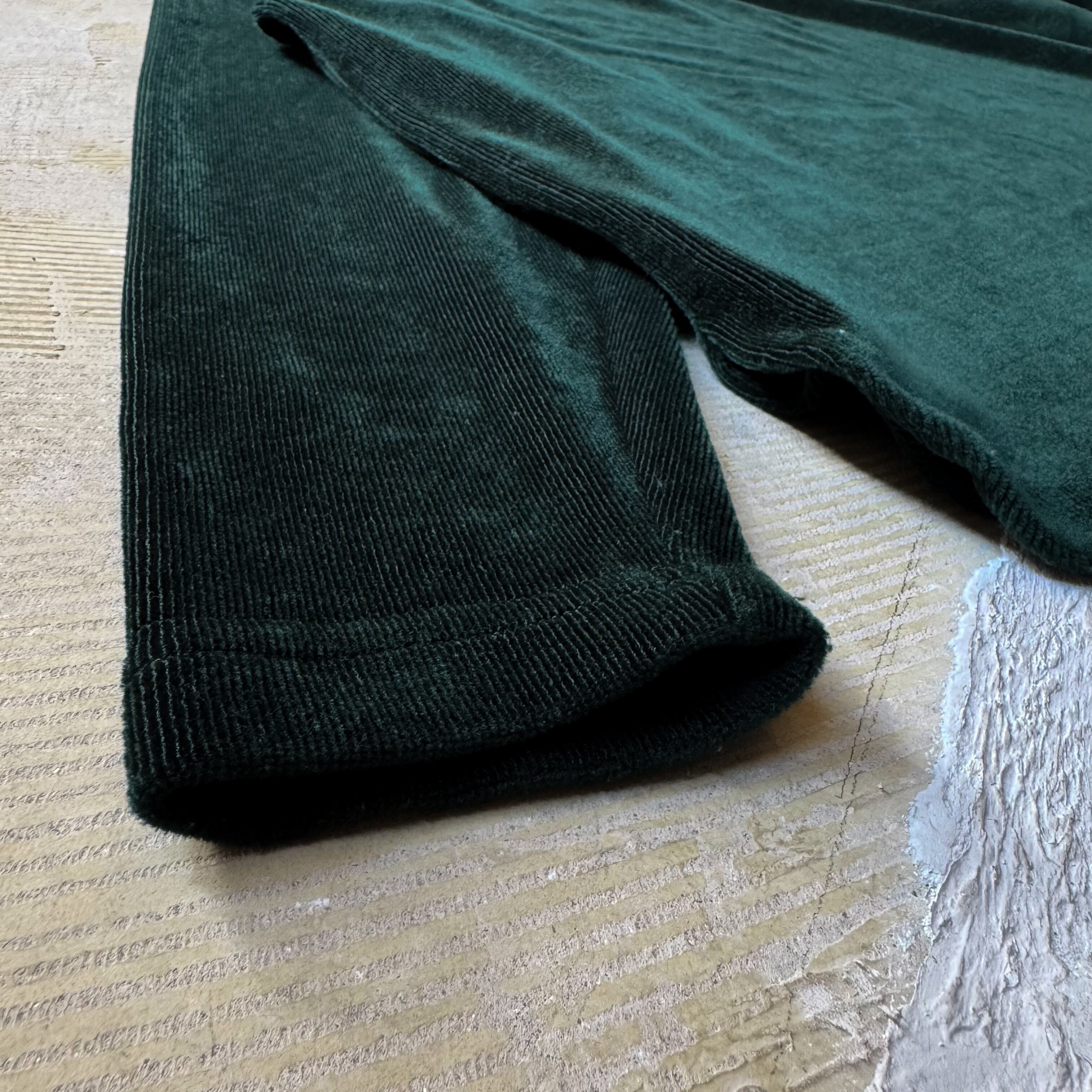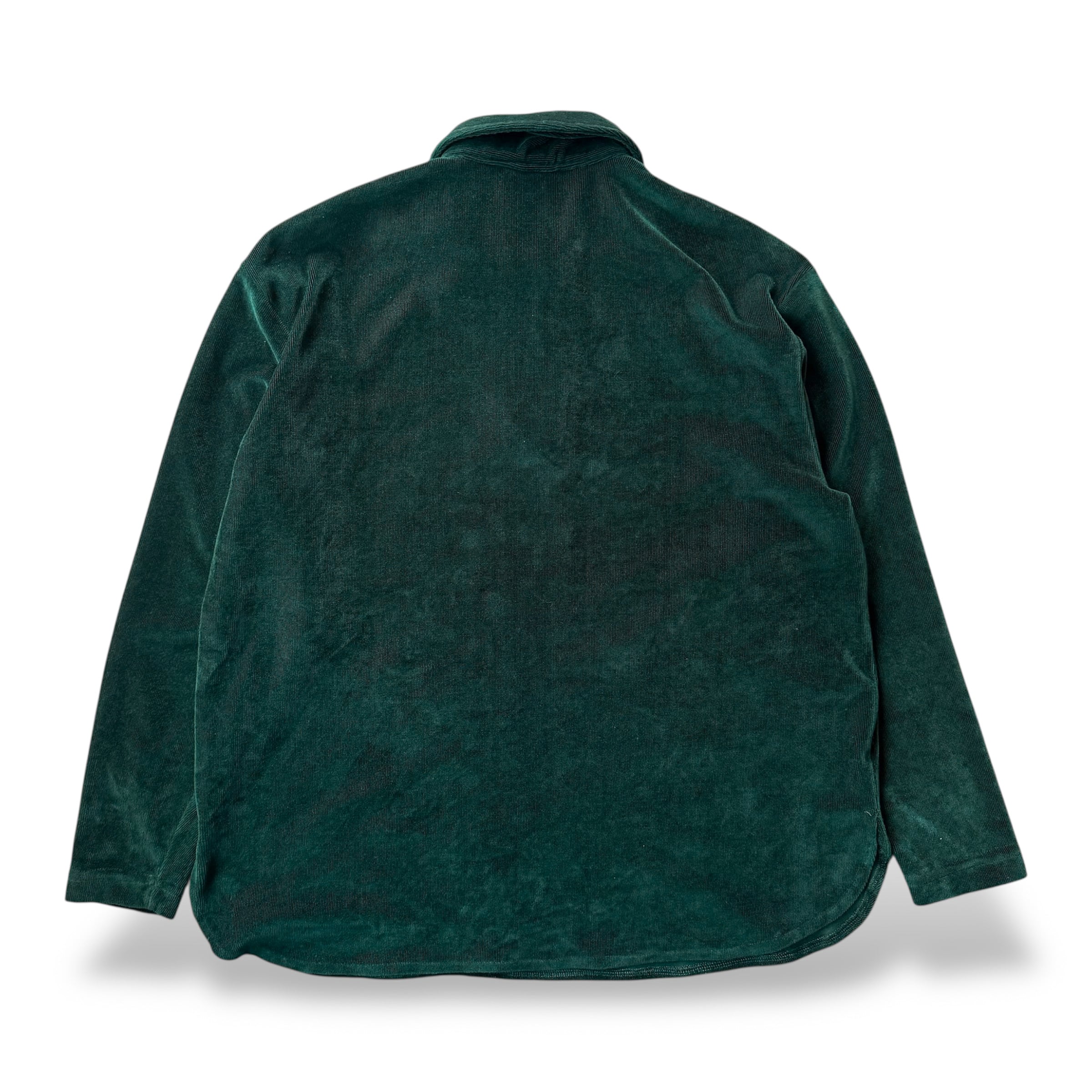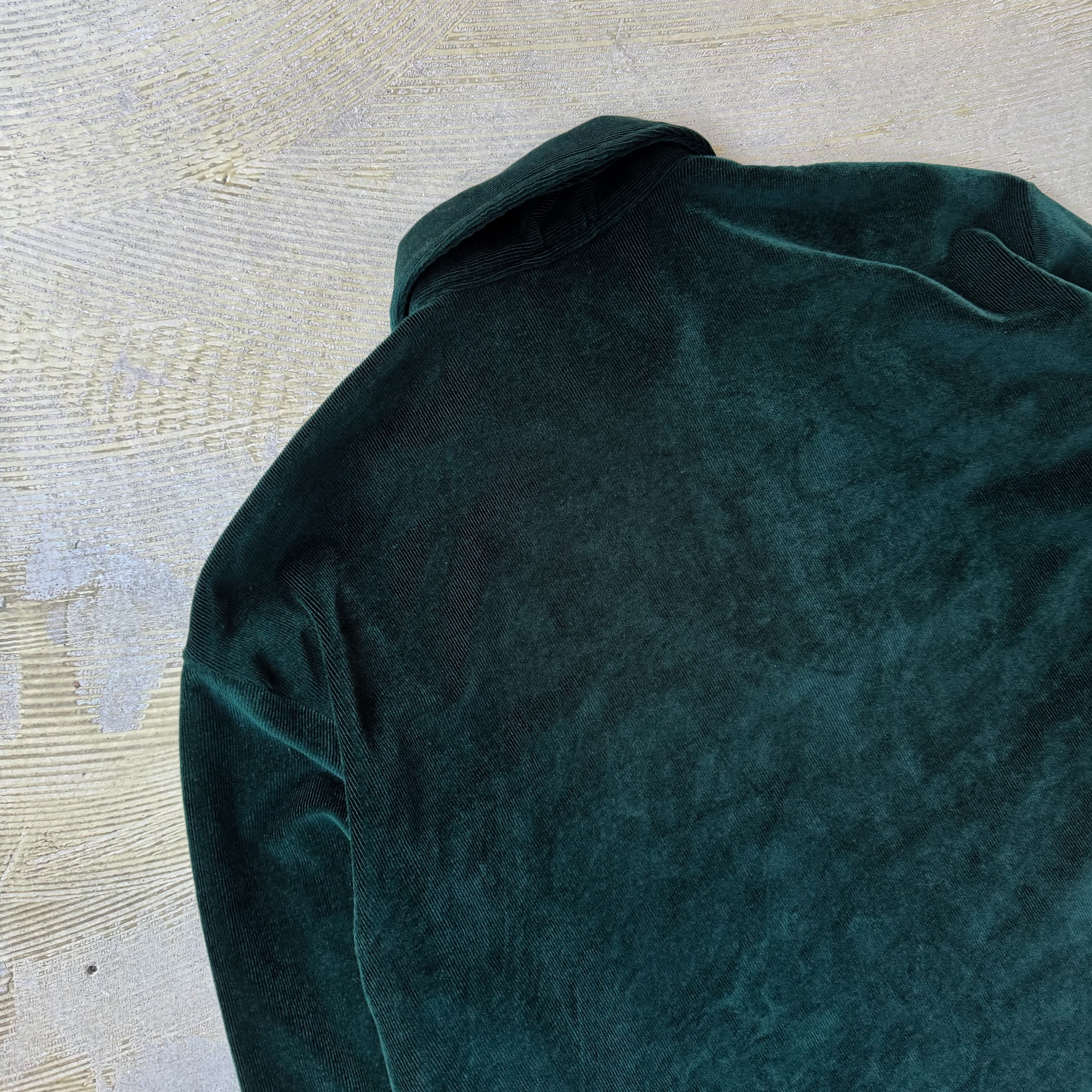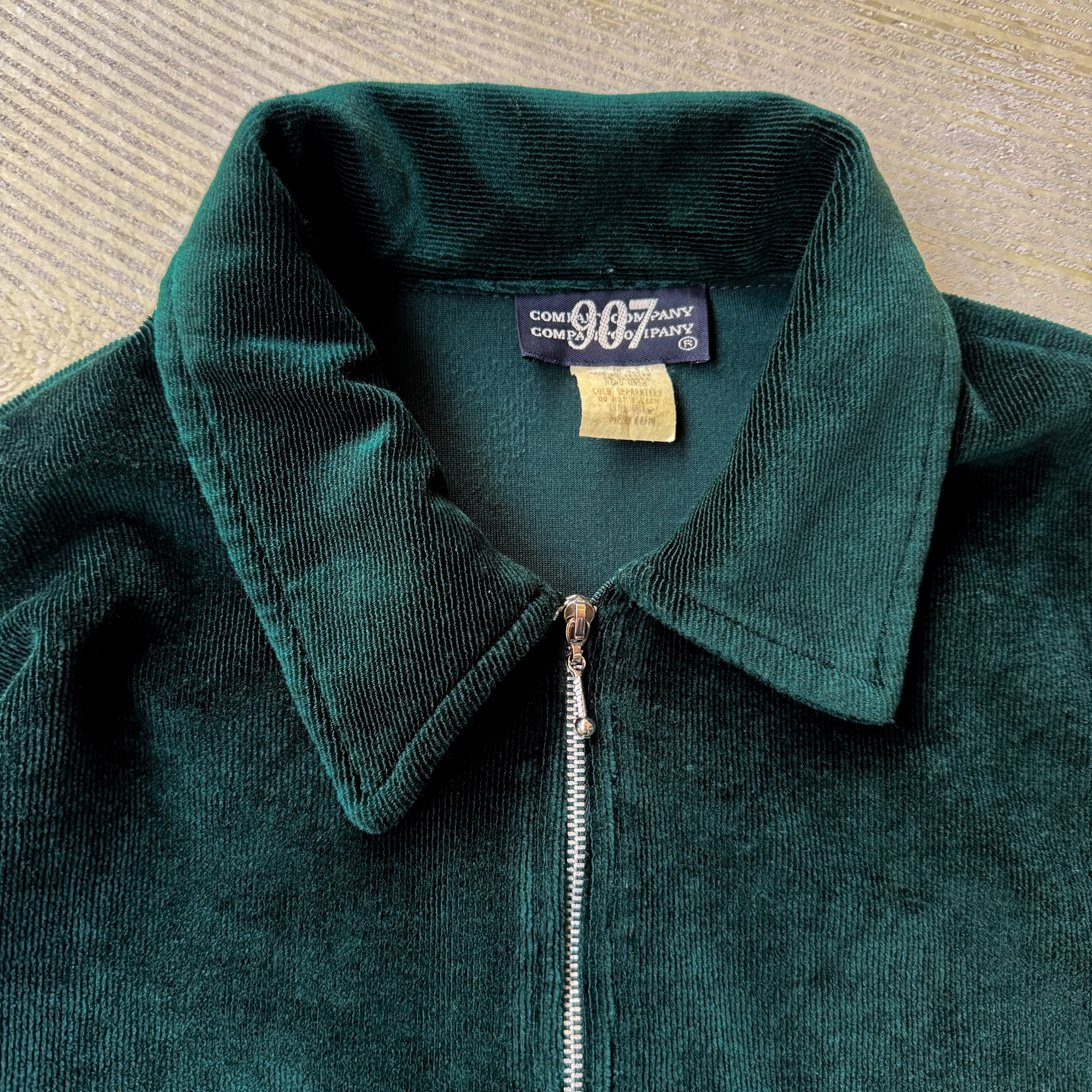 ・深いグリーンのベロア素材に、クラシックな襟とハーフジップ。
