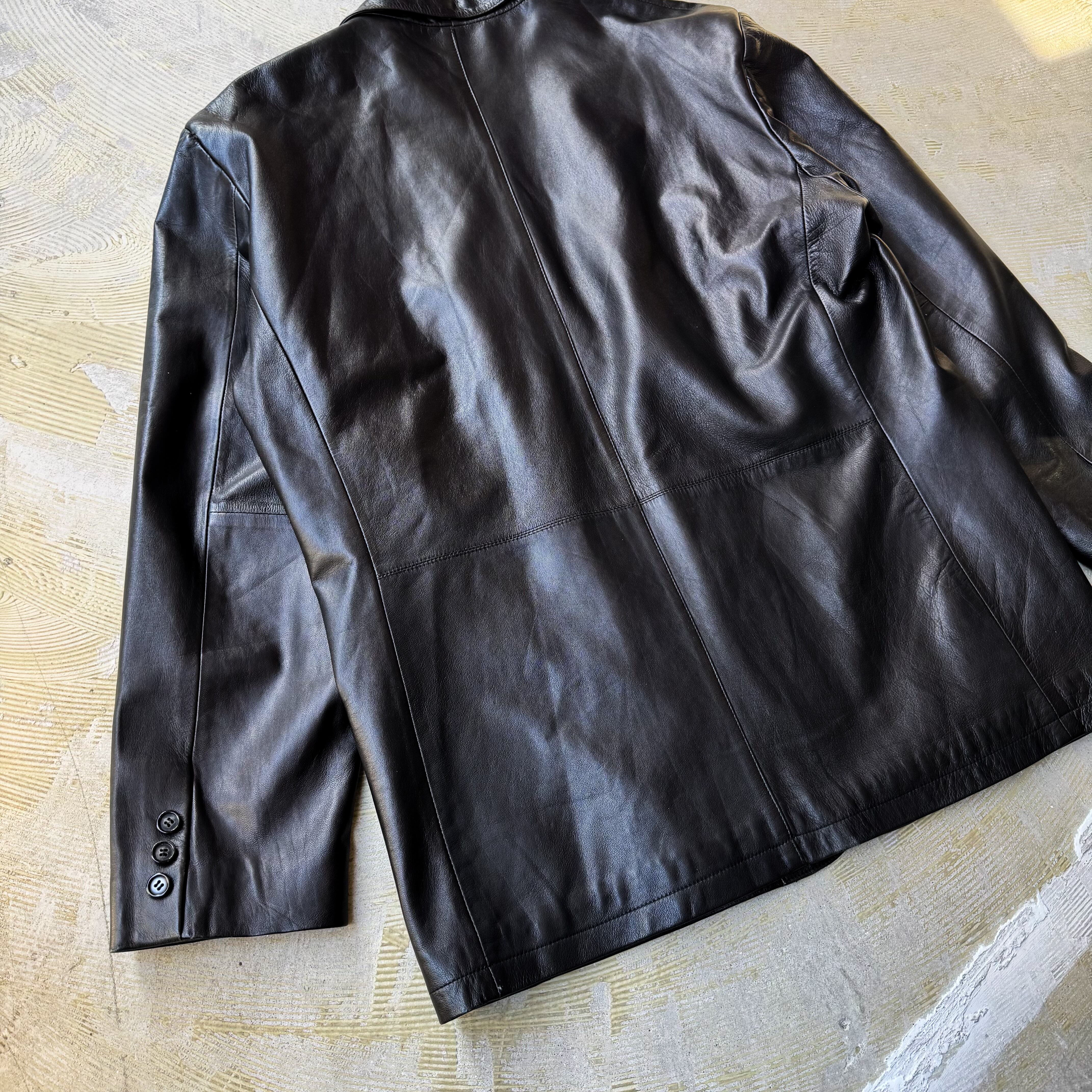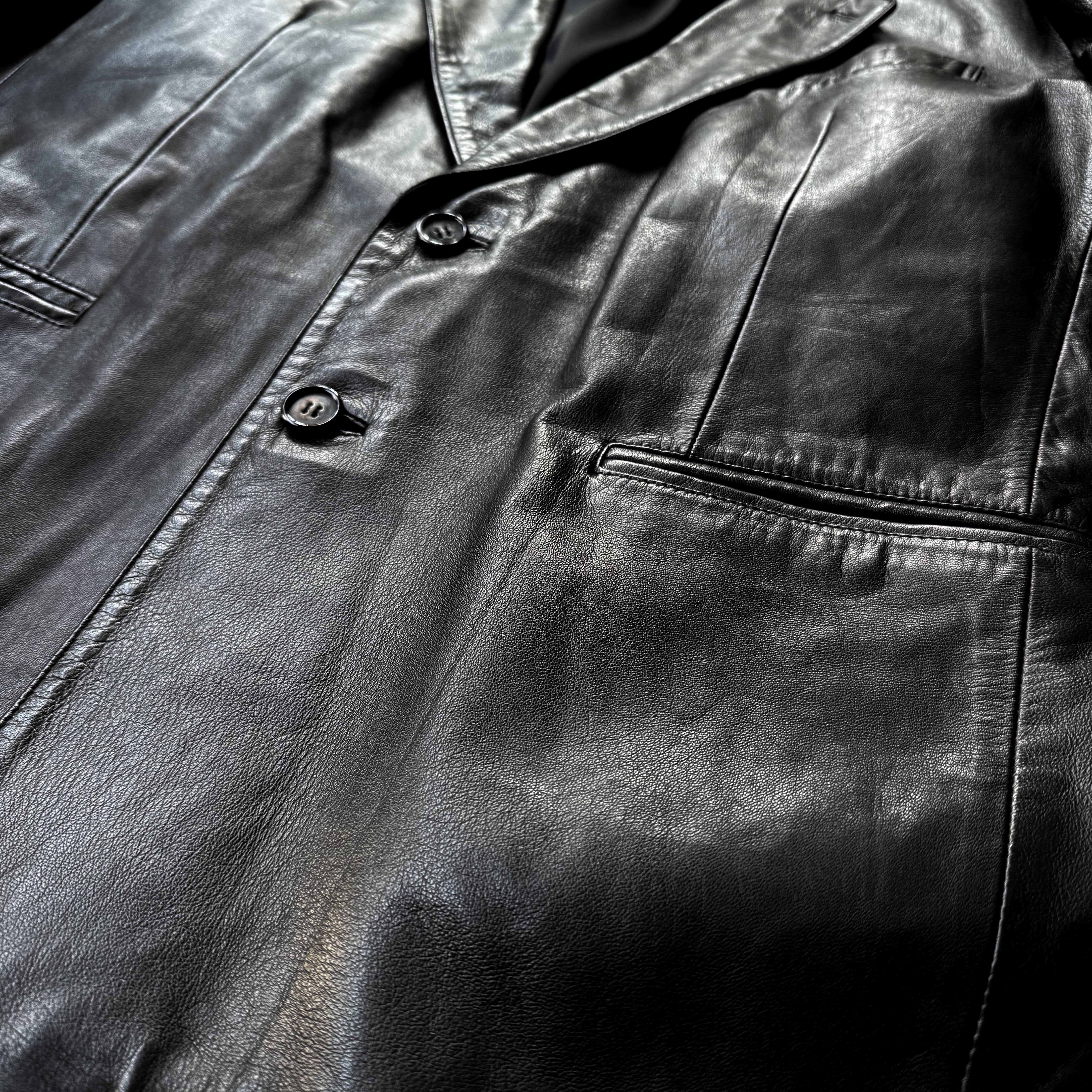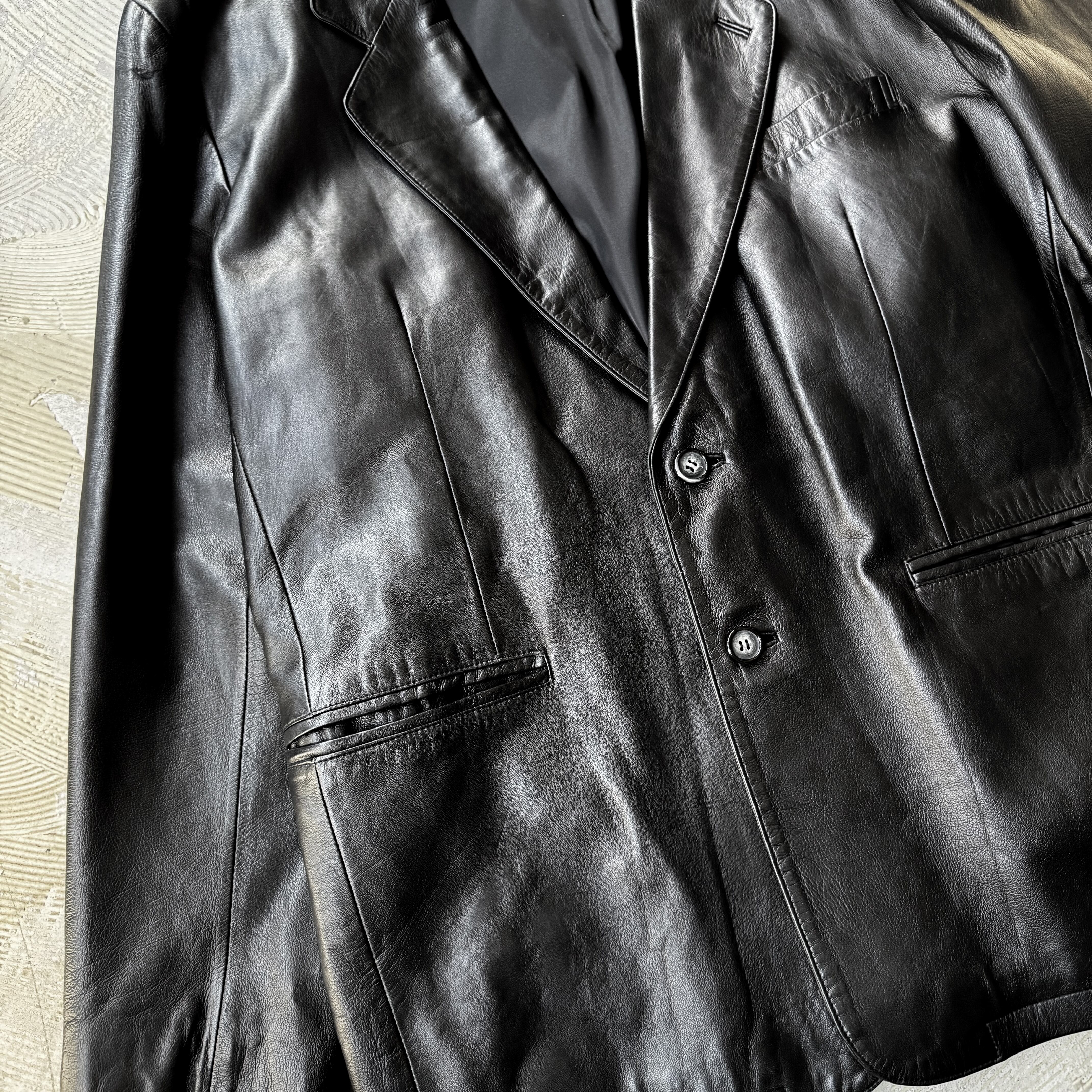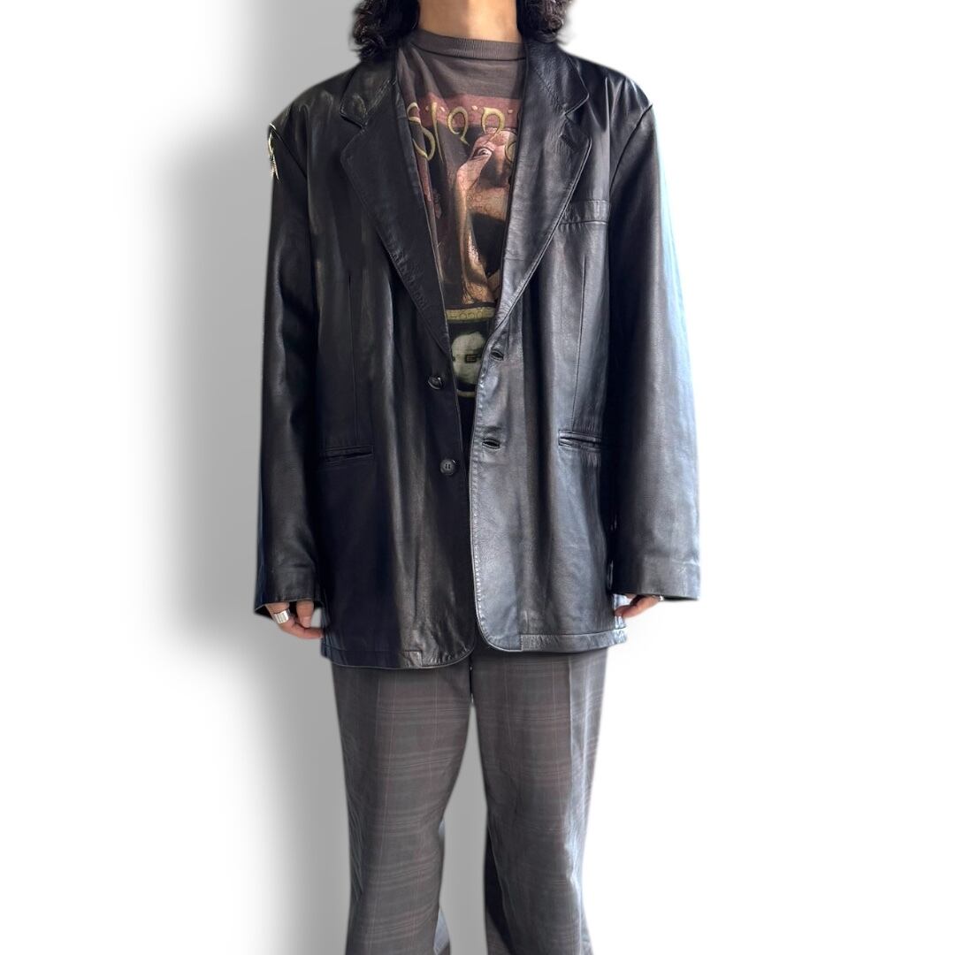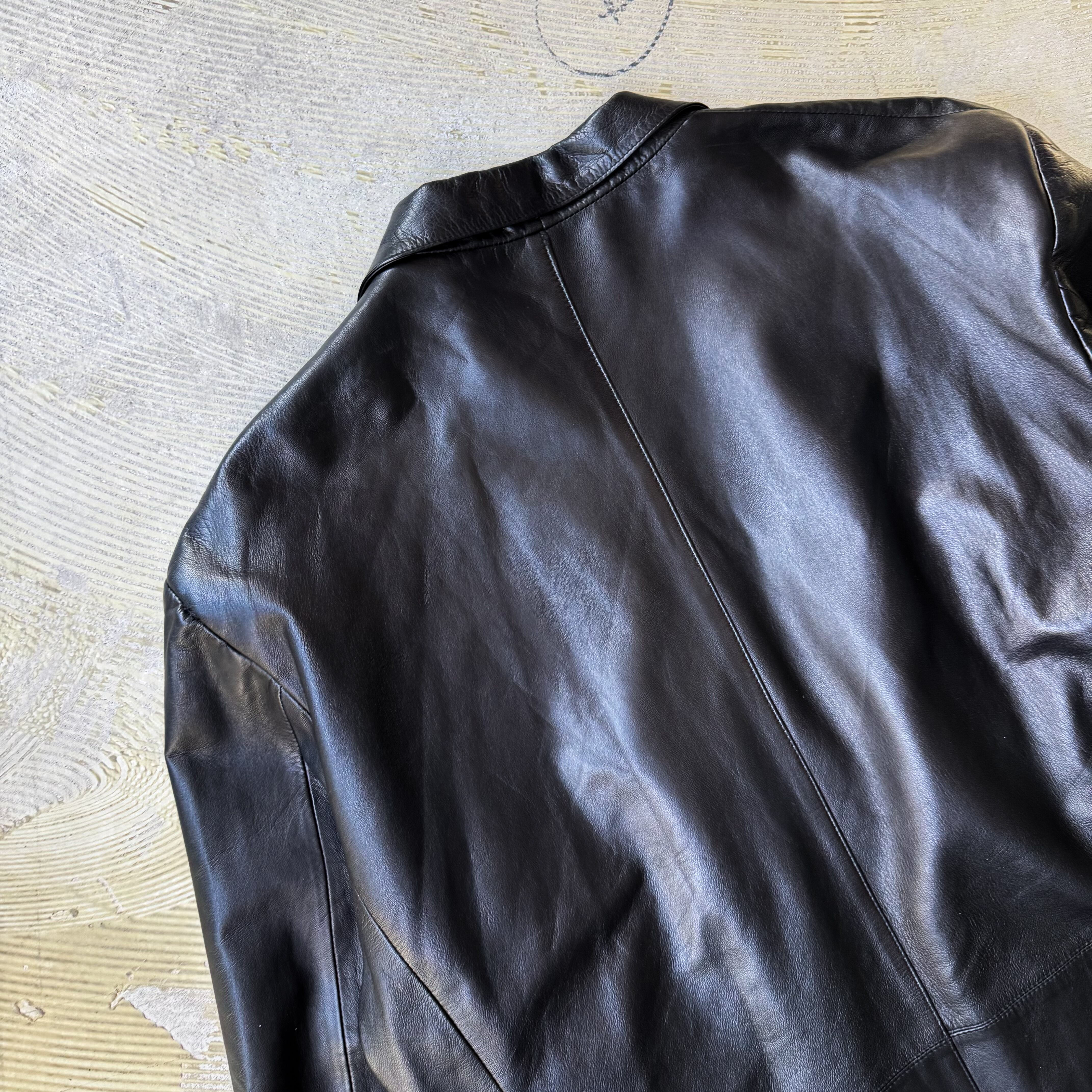 1990's VINTAGE BLACK LEATHER TAILORED JACKET / 90年代 ヴィンテージ レザー テーラード ジャケット