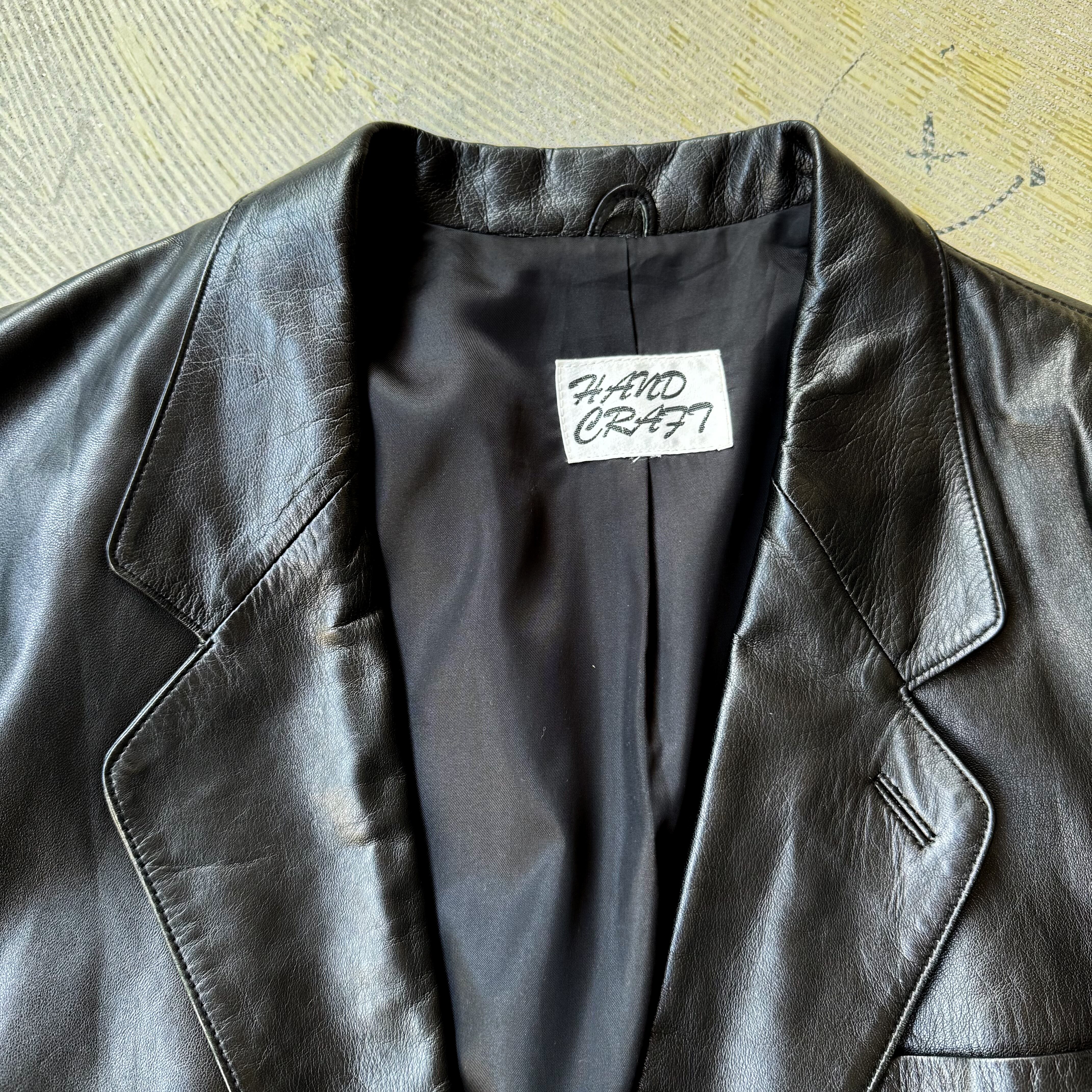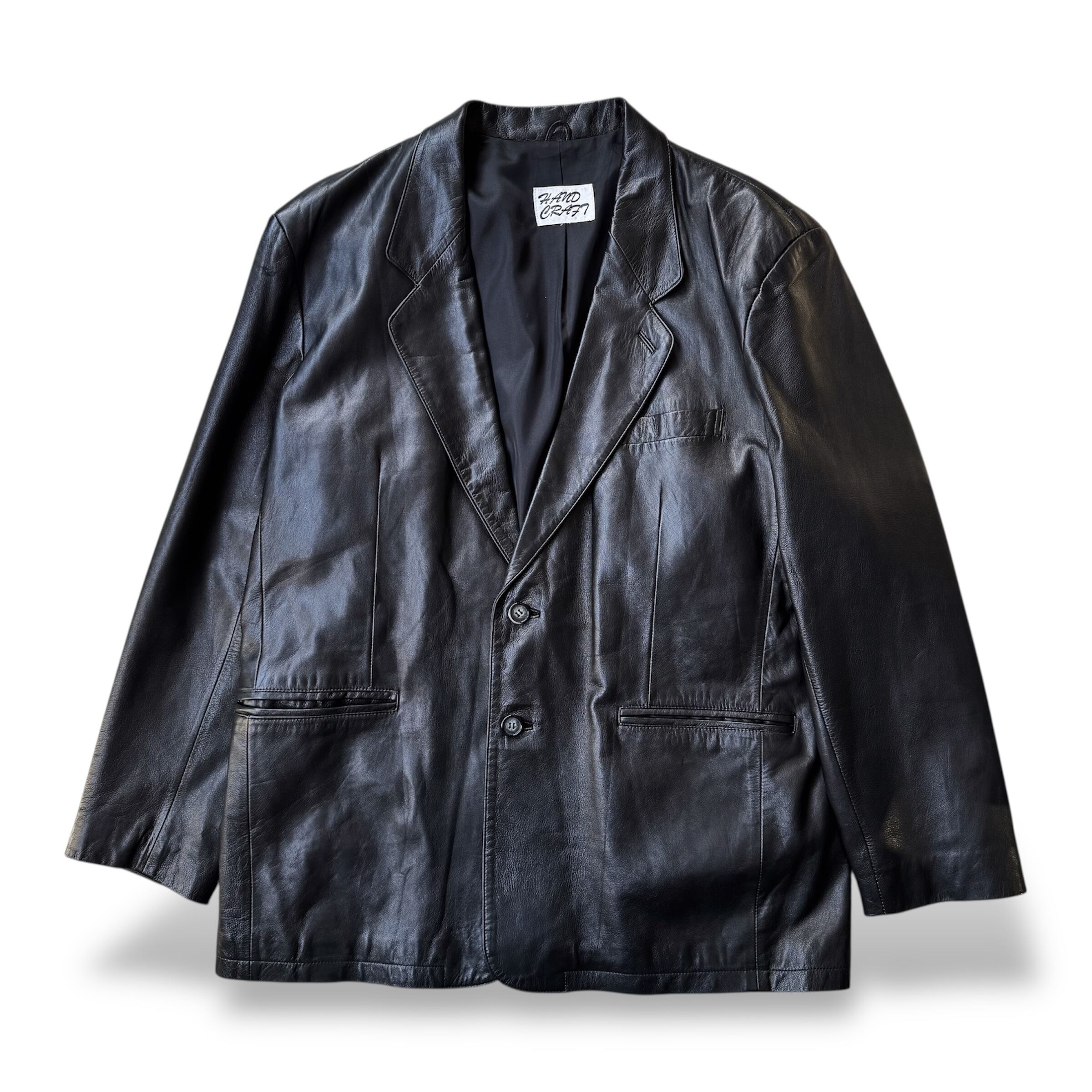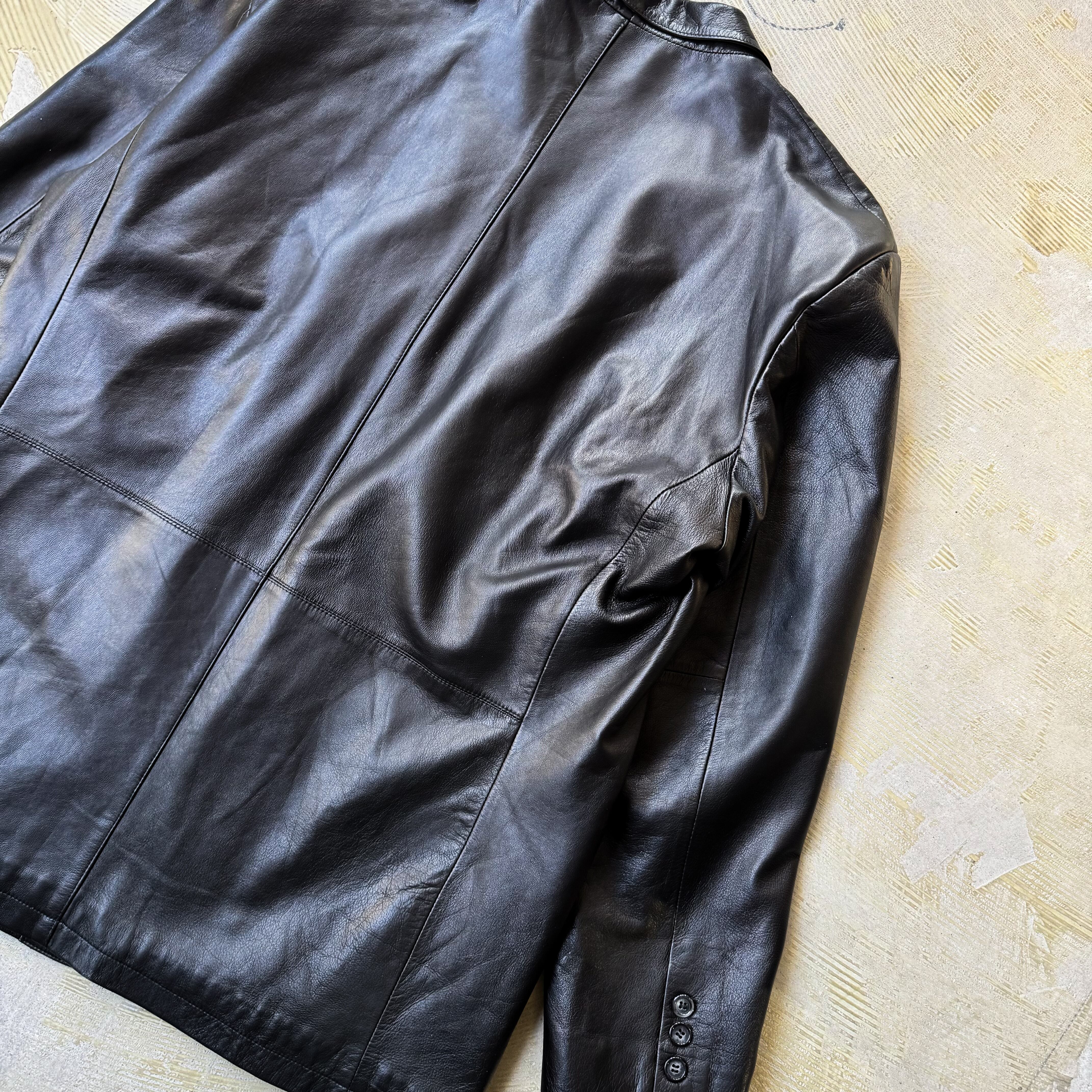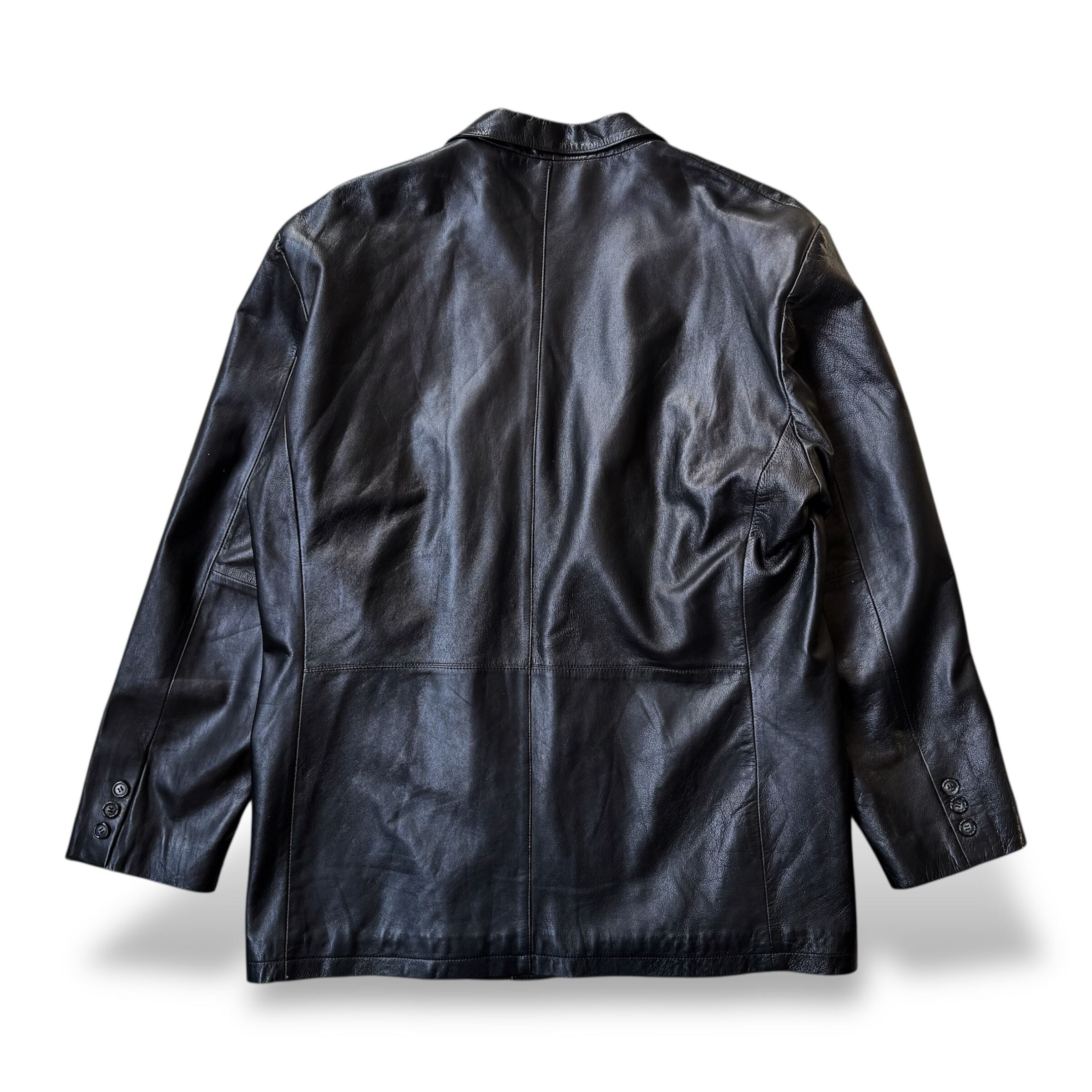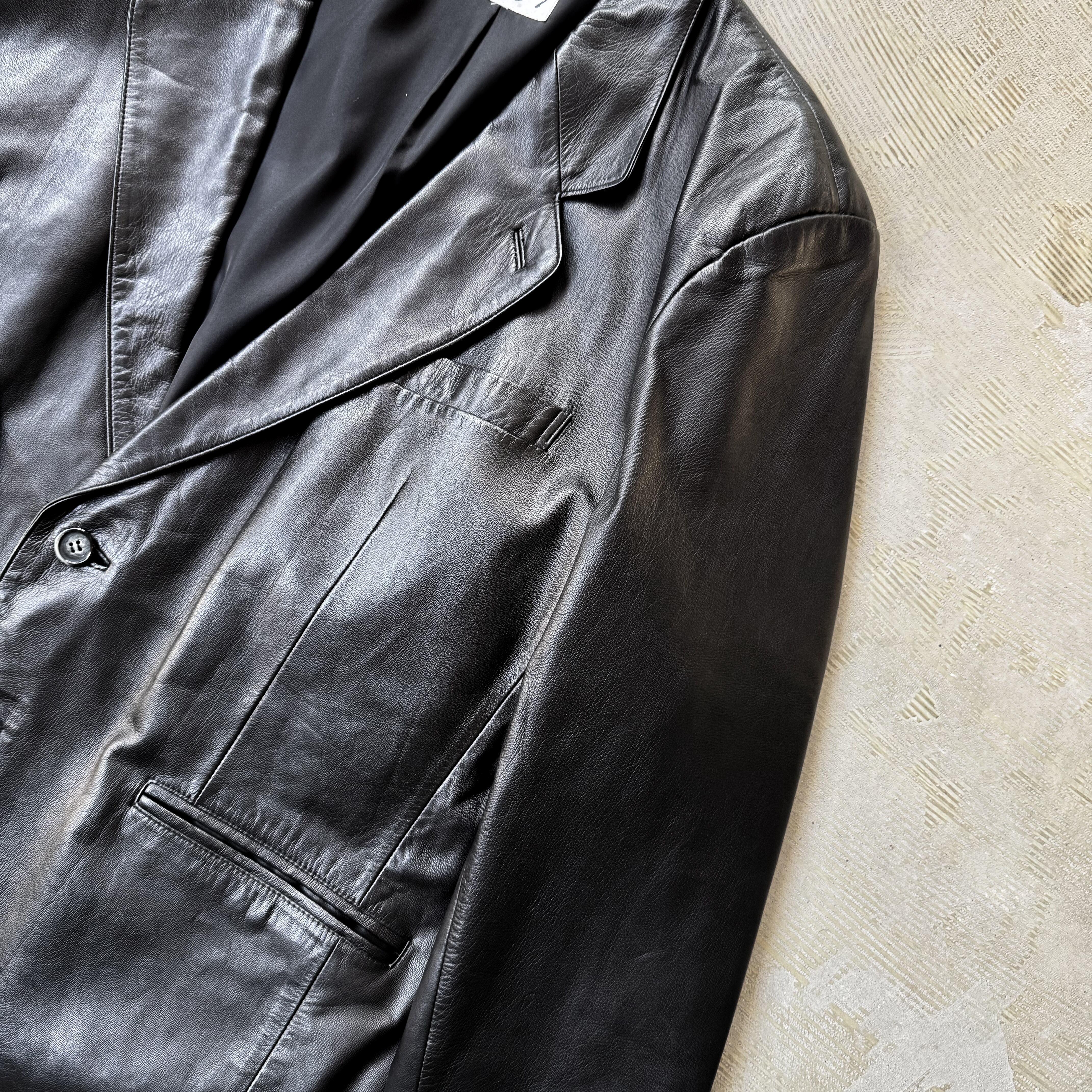 1990's VINTAGE BLACK LEATHER TAILORED JACKET / 90年代 ヴィンテージ レザー テーラード ジャケット