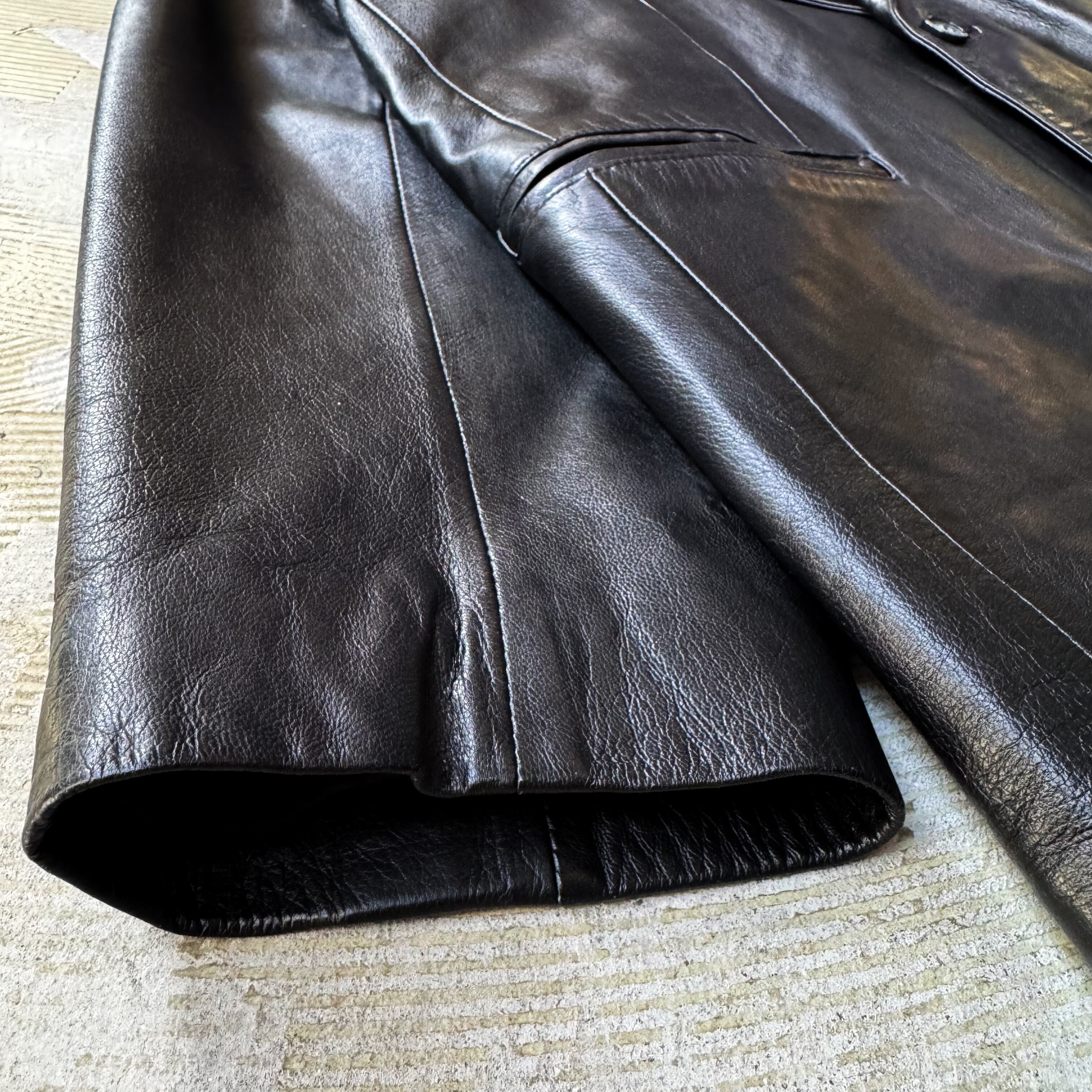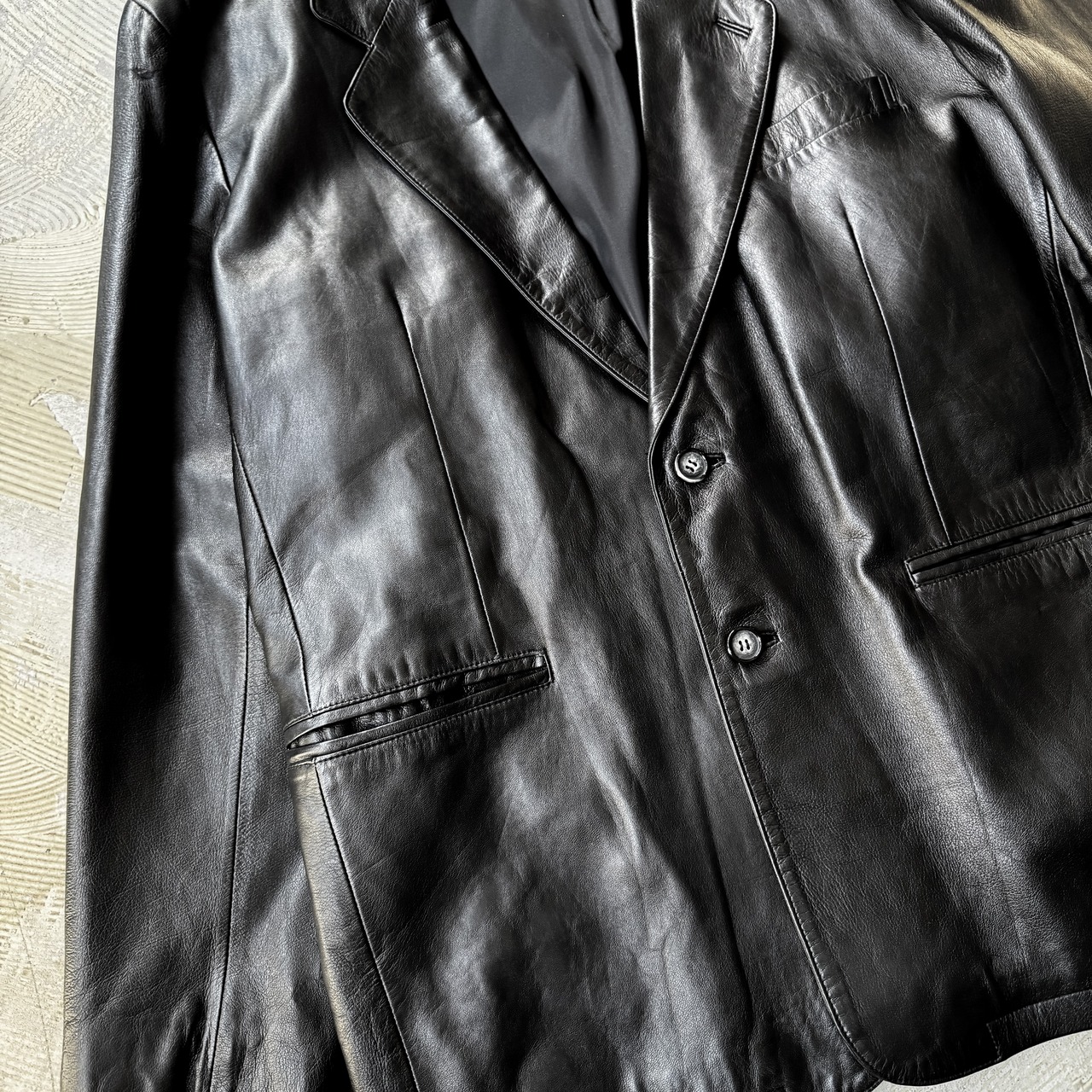 ・ブラックのラムレザーに、テーラードジャケットの構造。