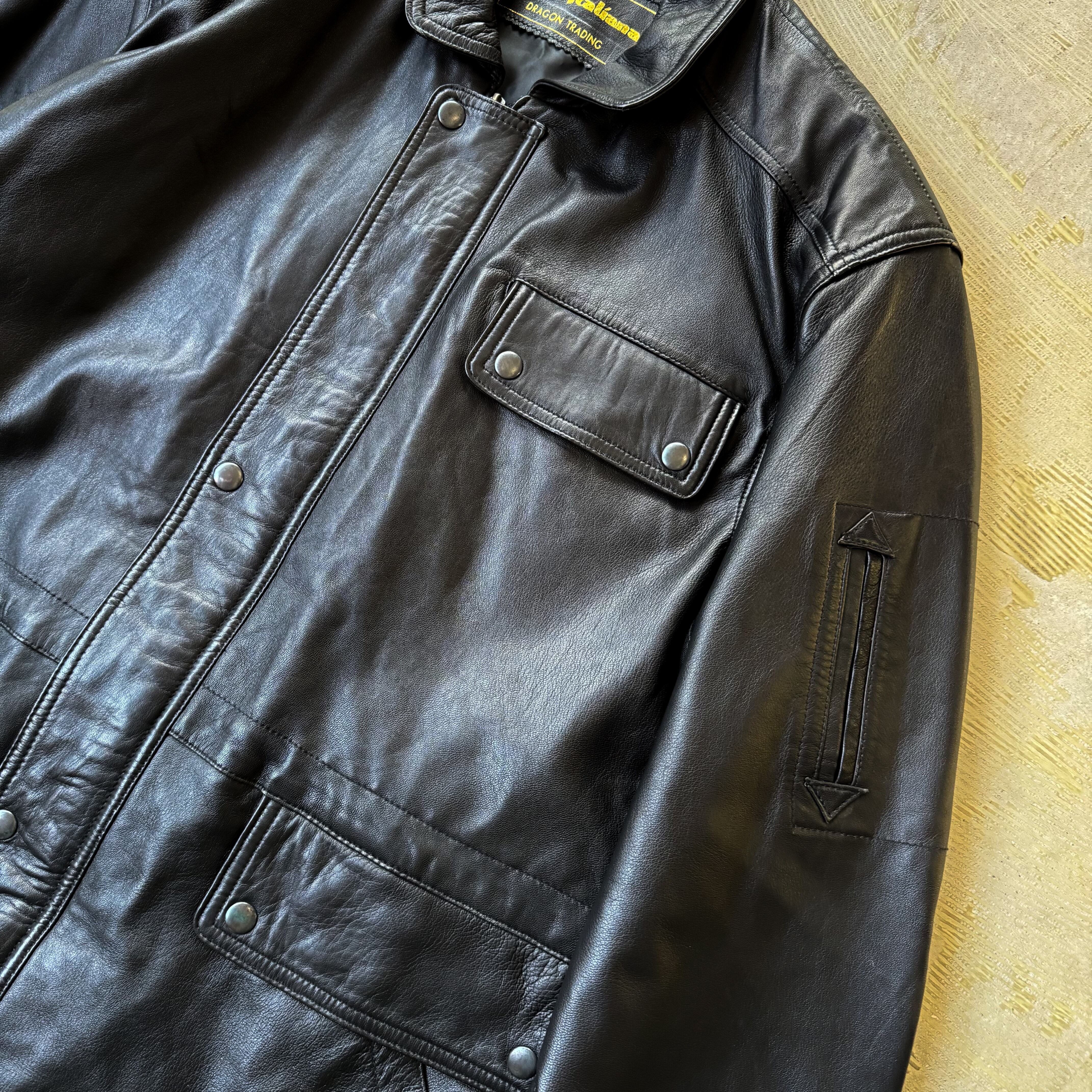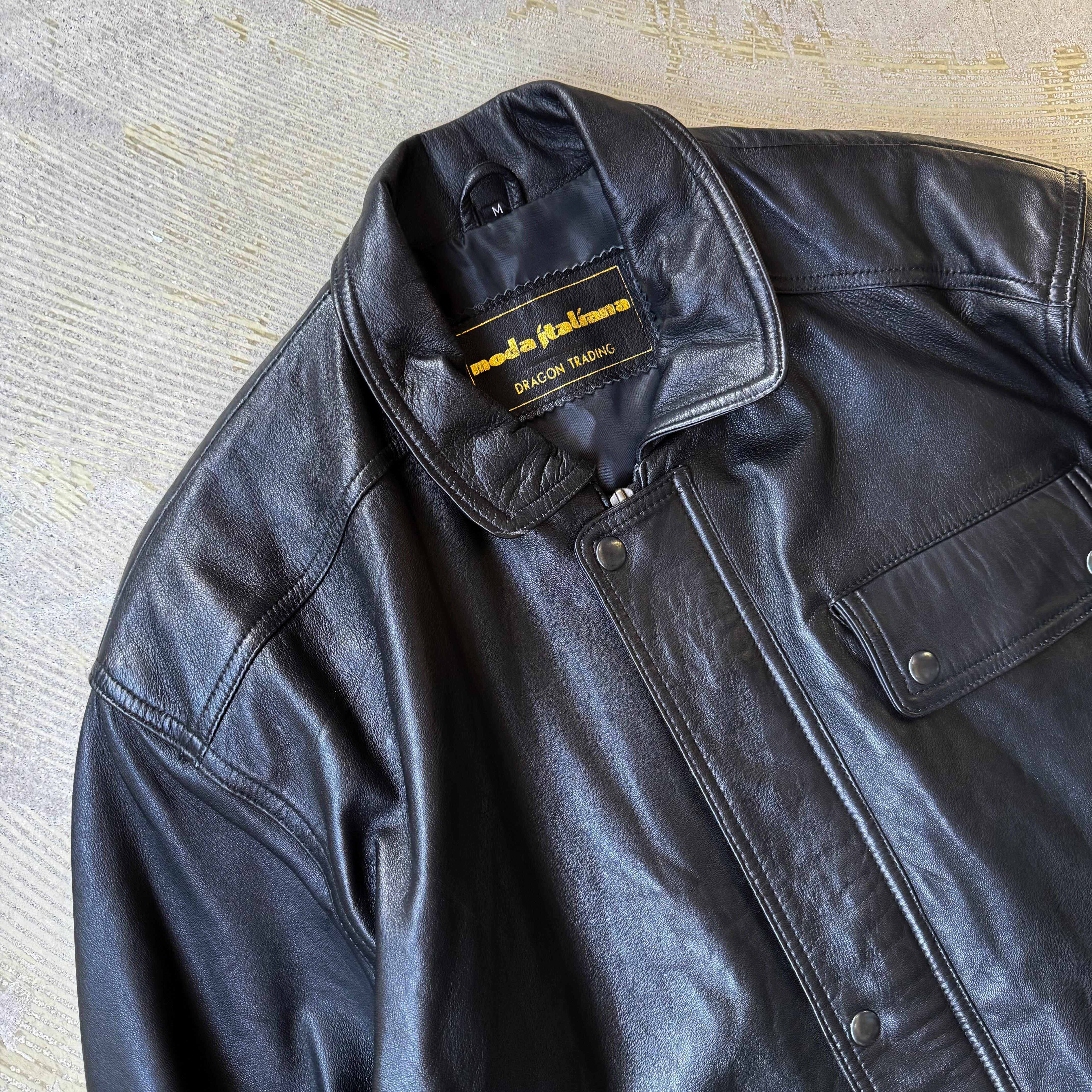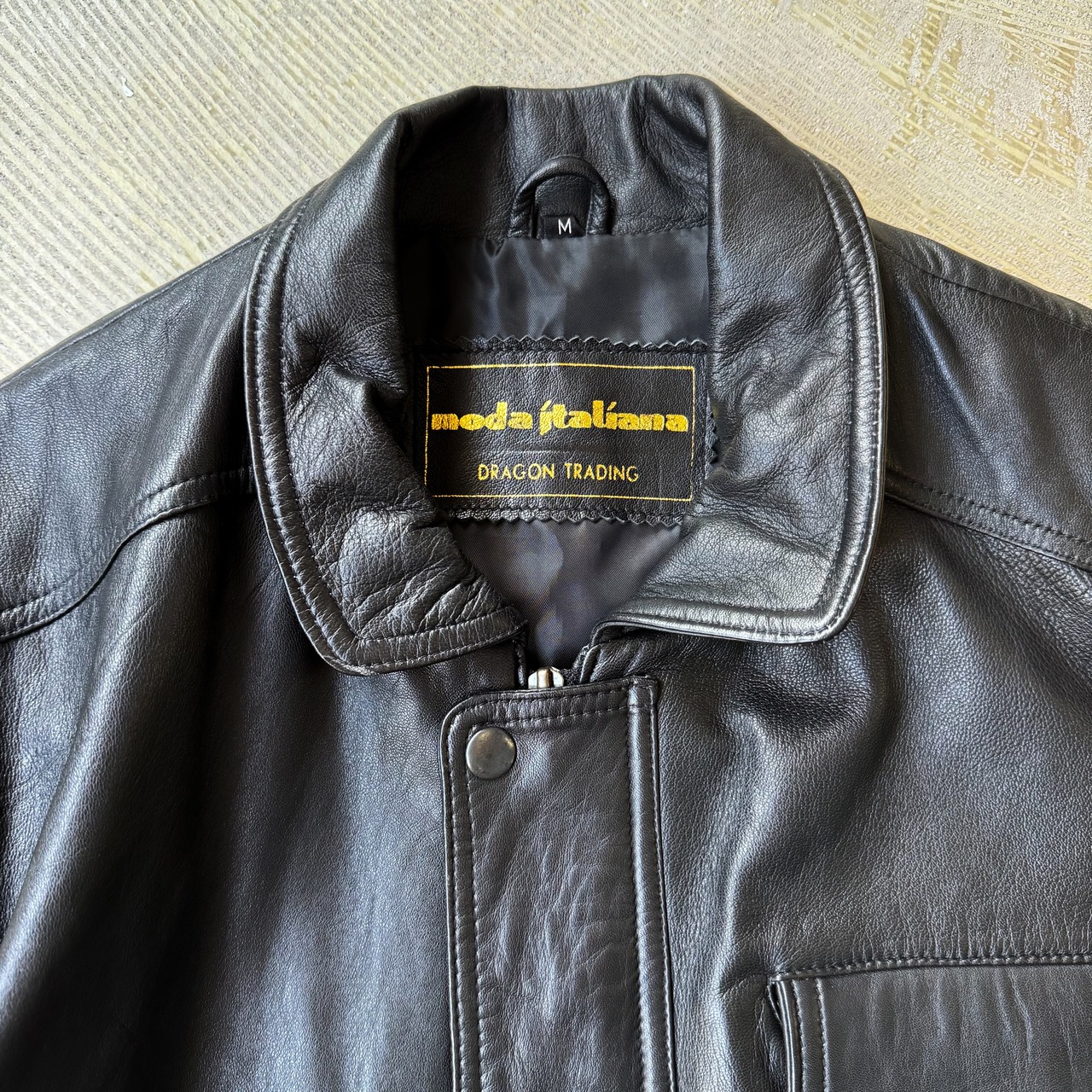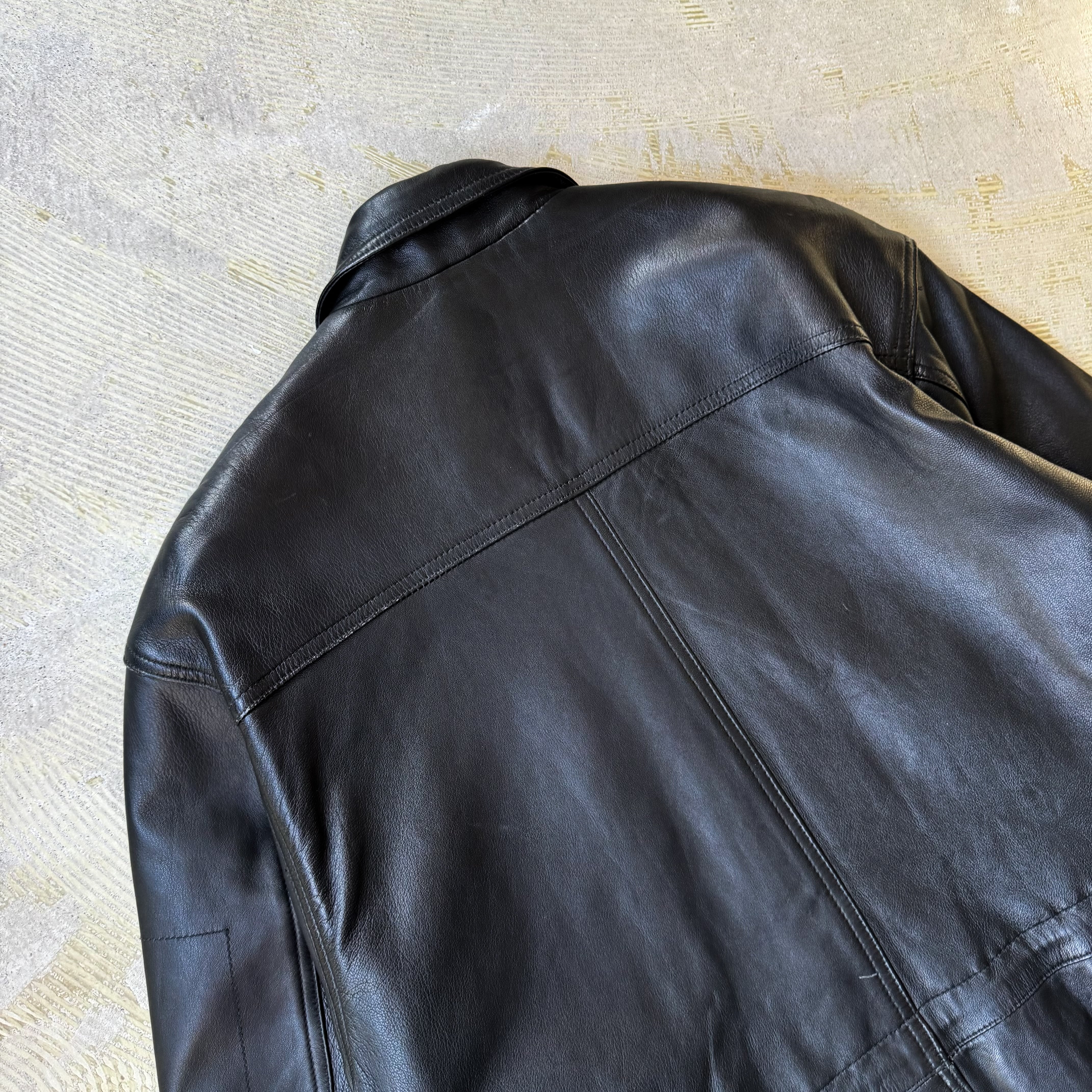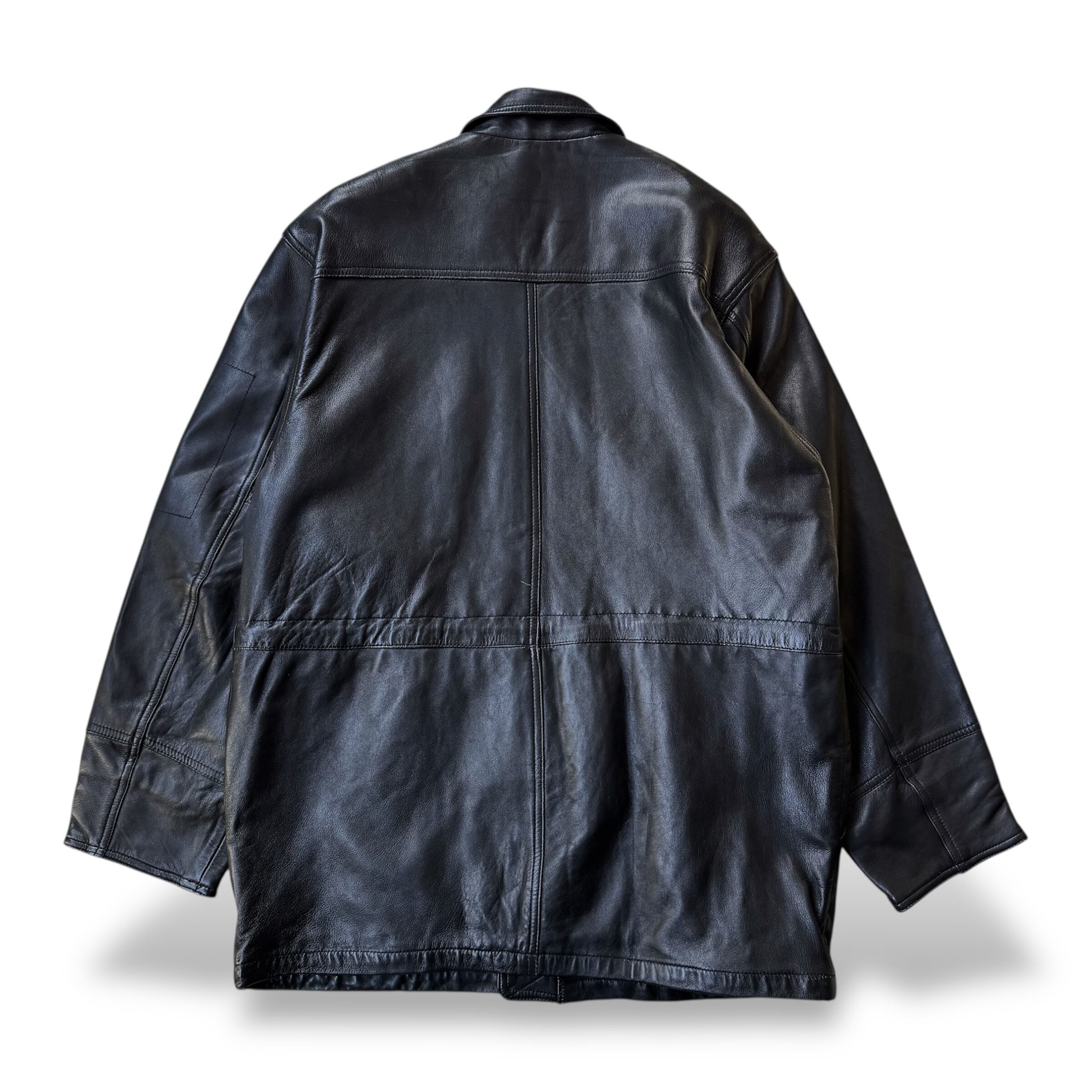 1990's VINTAGE BLACK LEATHER ZIP UP JACKET / 90年代 ヴィンテージ レザー ジップ アップ ジャケット