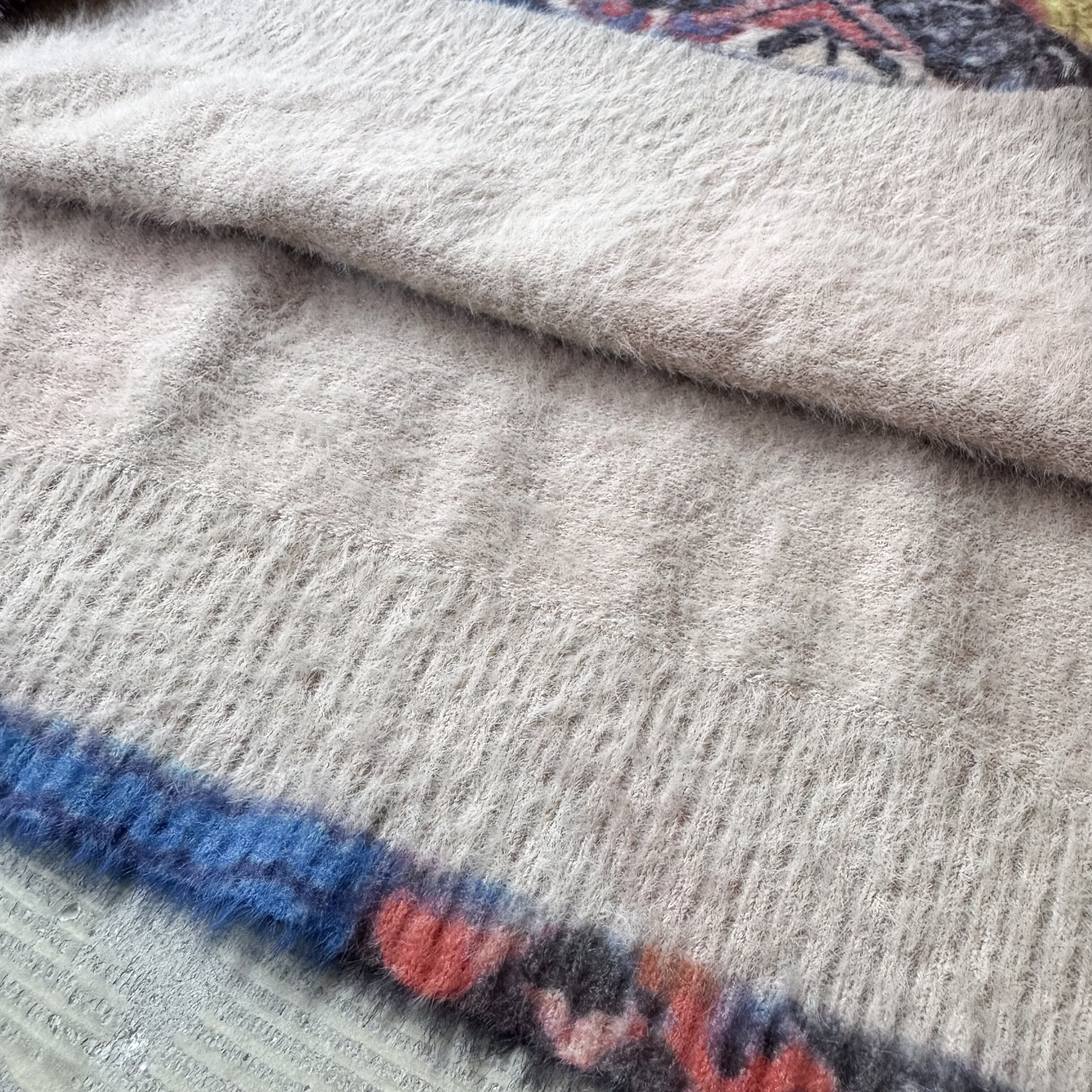 ・“視覚のリズム”と“素材の余白”が共存する、アートピースのような総柄ニット。