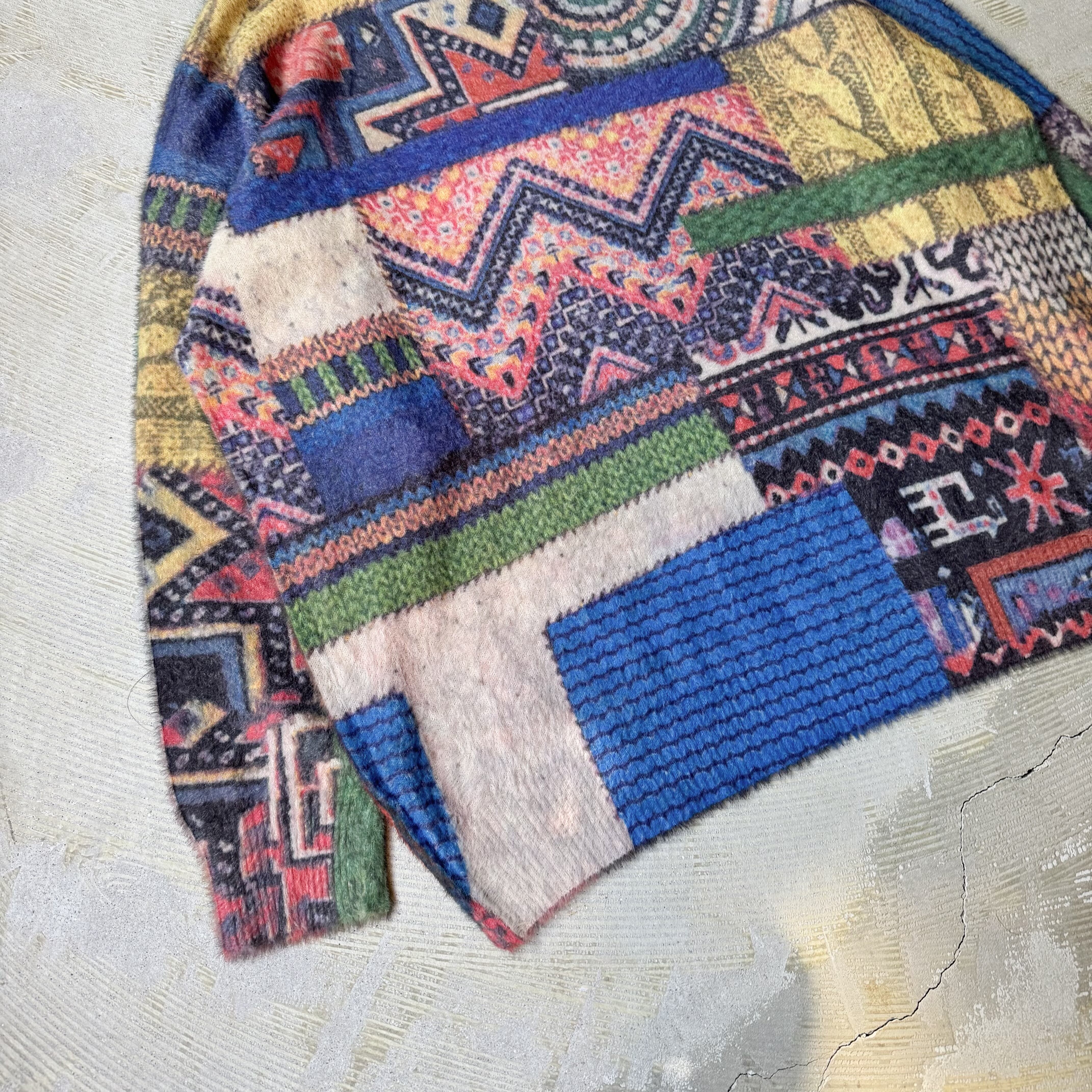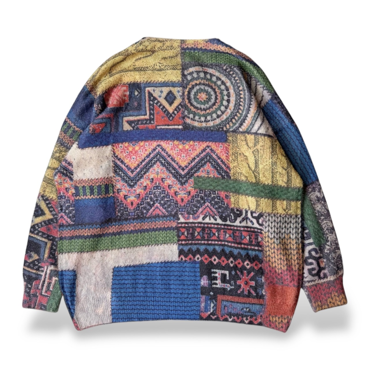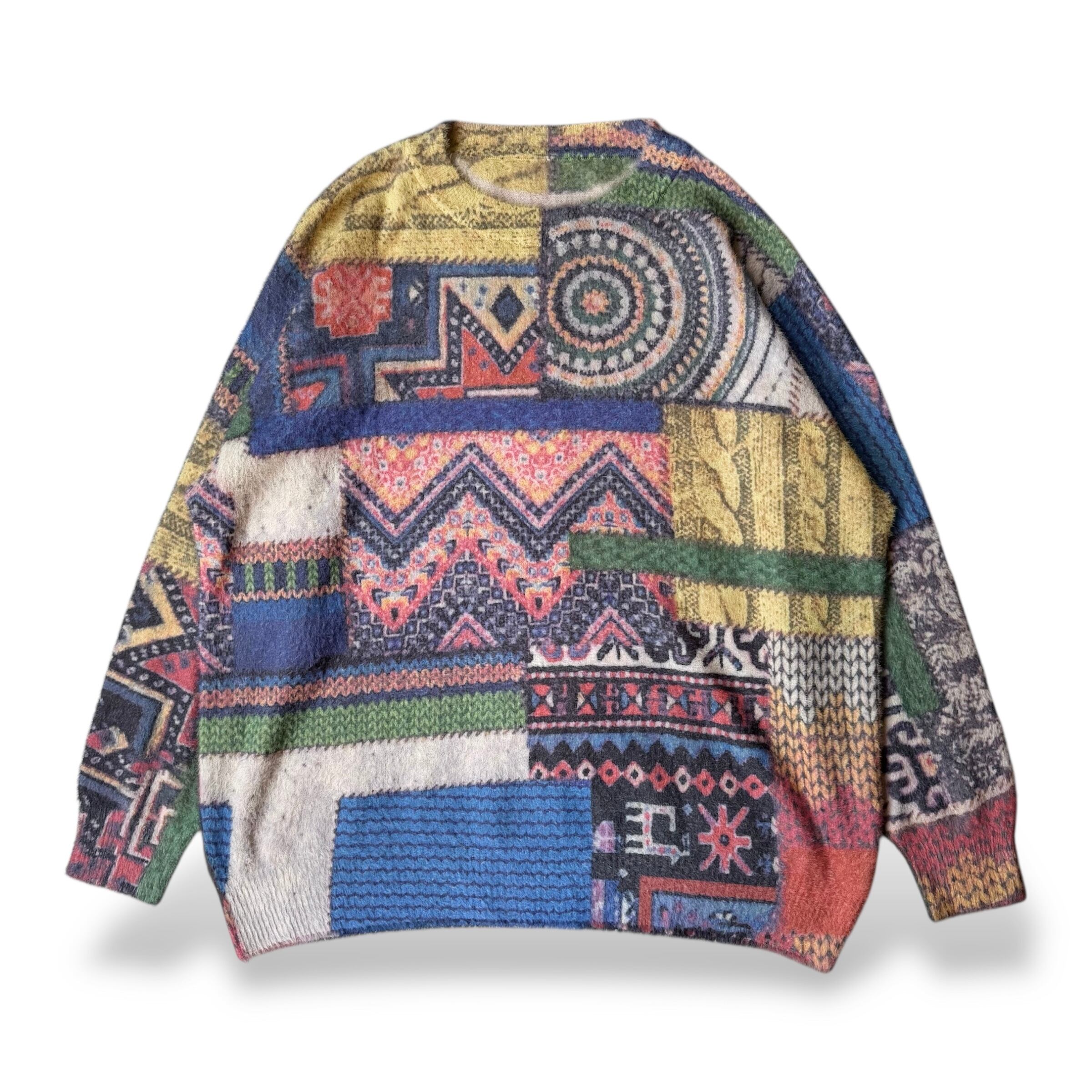 ARTISTIC ALL OVER PATTERN KNIT SWEATER / 総柄 幾何学 アート ニット セーター