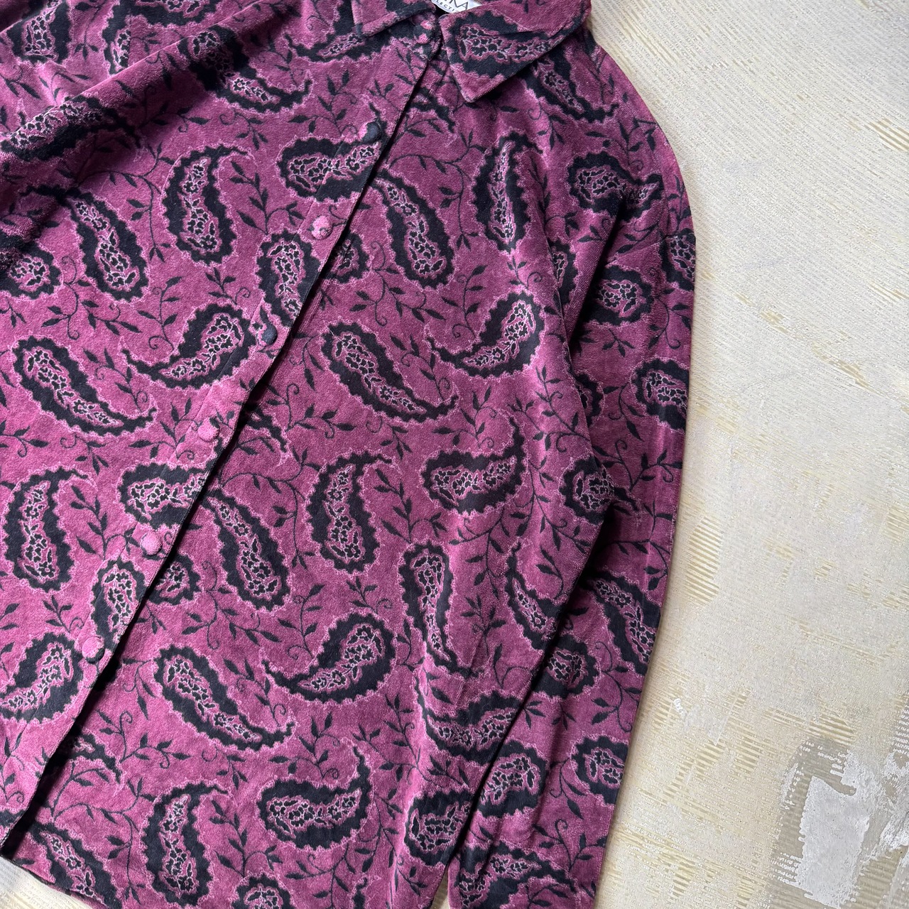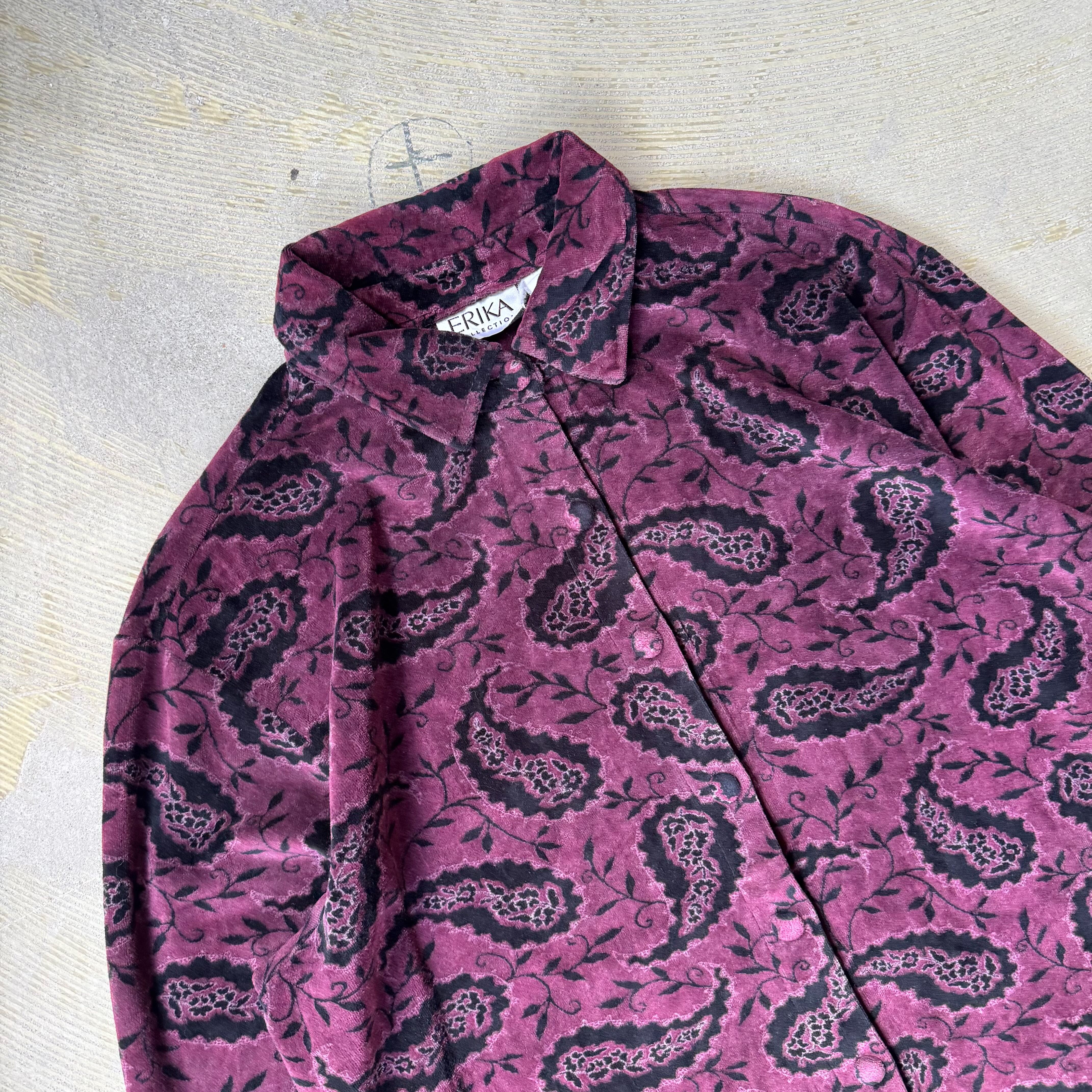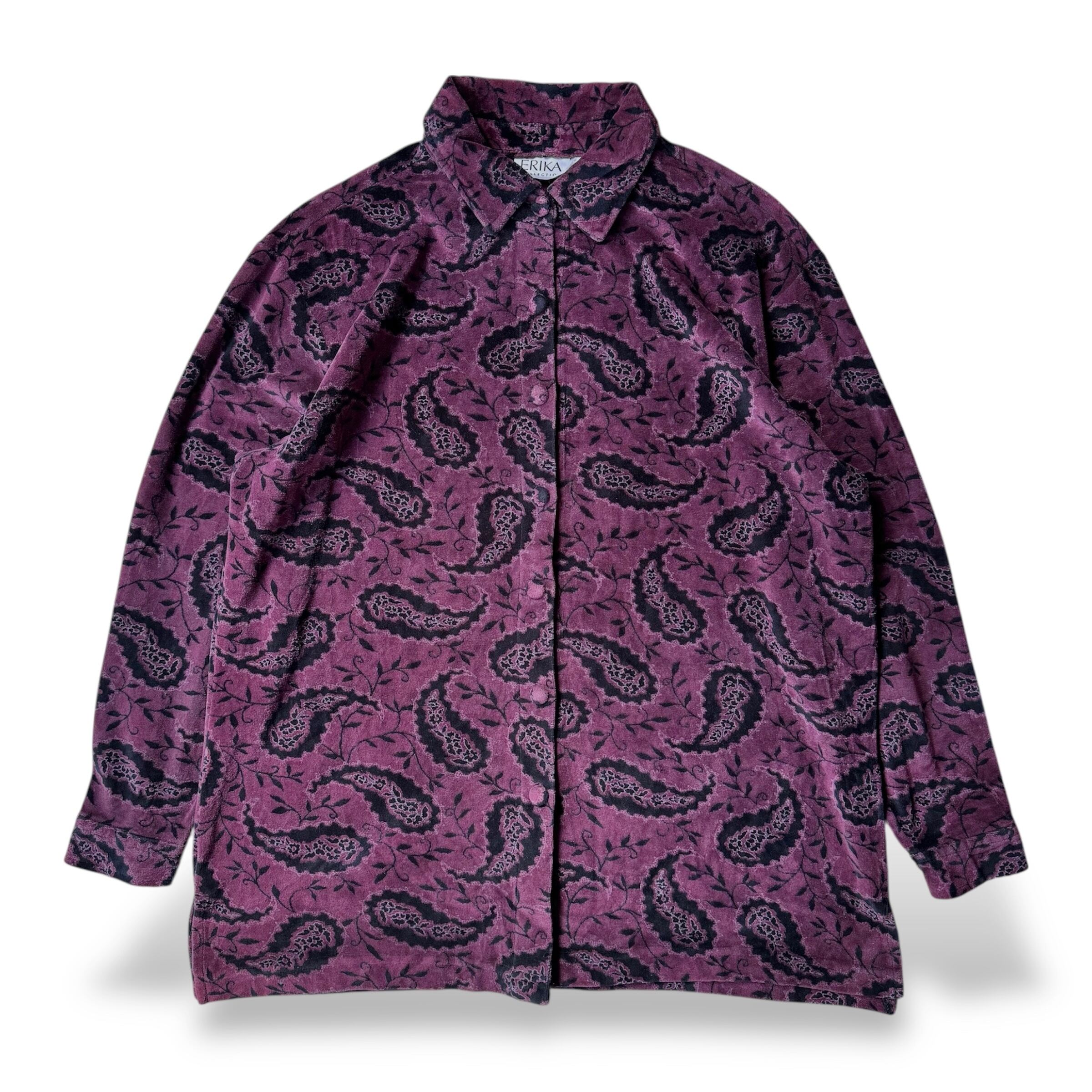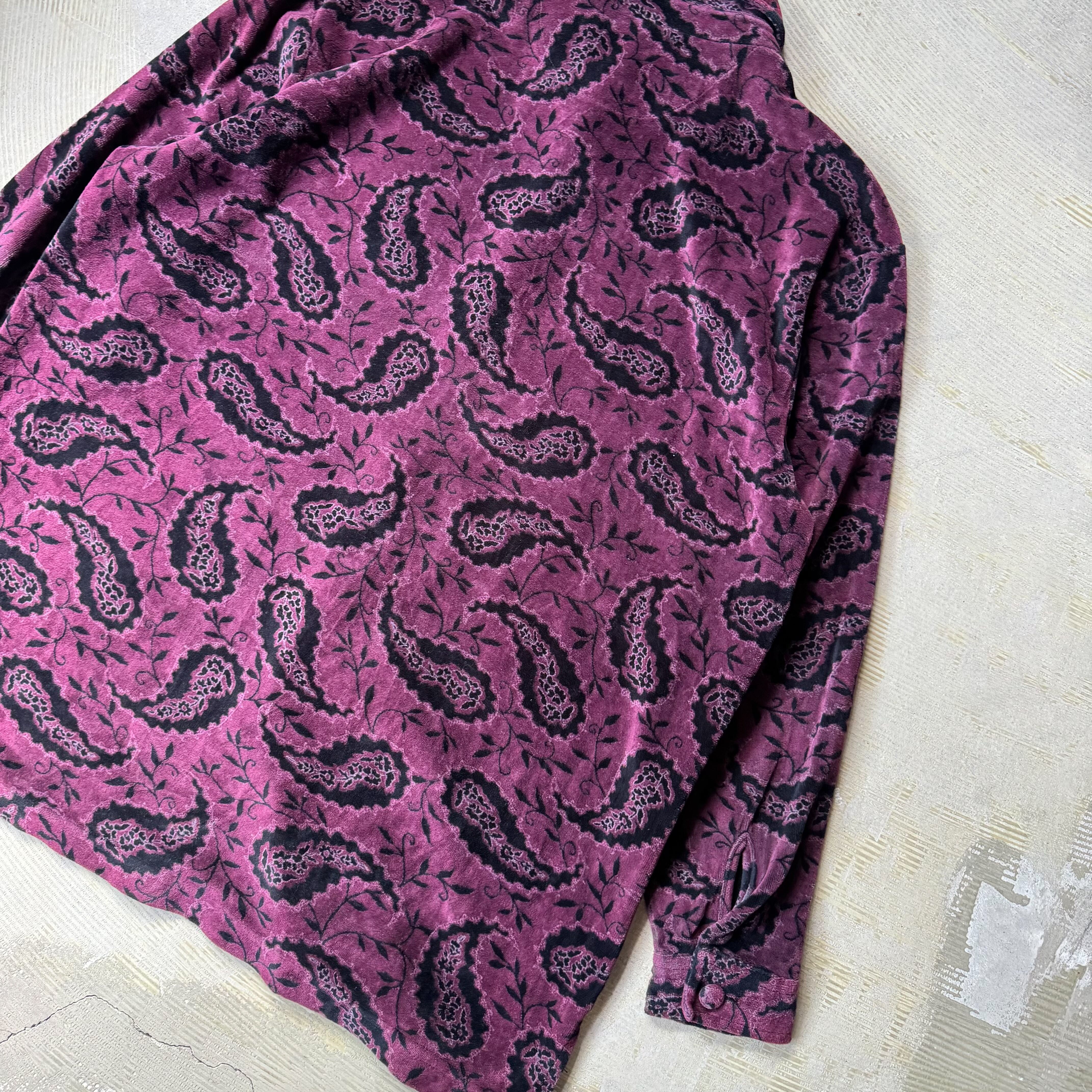 1990's VINTAGE PAISLEY PATTERN VELOUR L/S SHIRT / 90年代 ペイズリー 柄 ベロア ヴィンテージ 長袖 シャツ