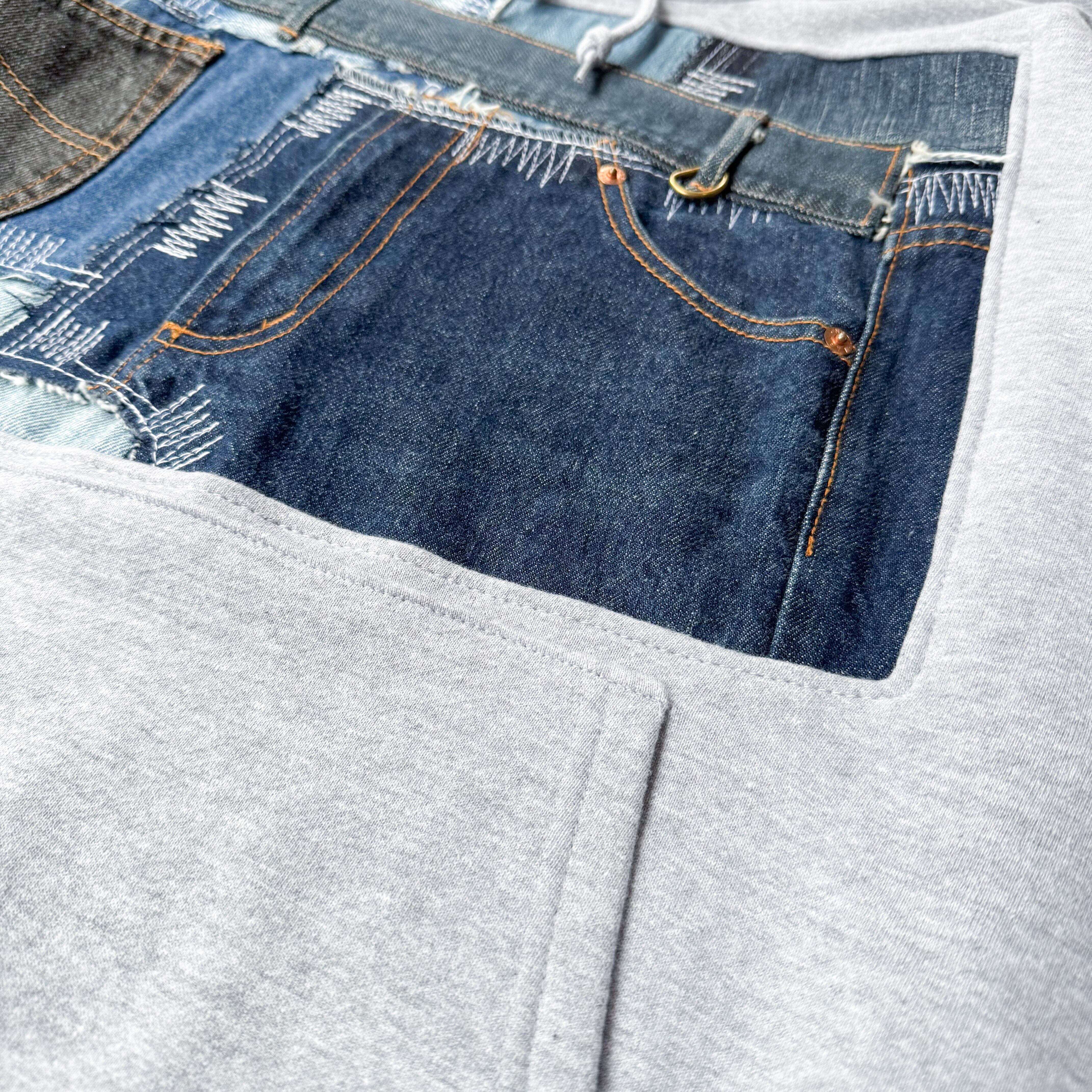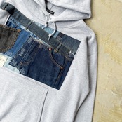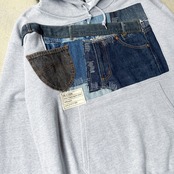 こちらはスウェットフーディにデニム生地を繋ぎ合わせ