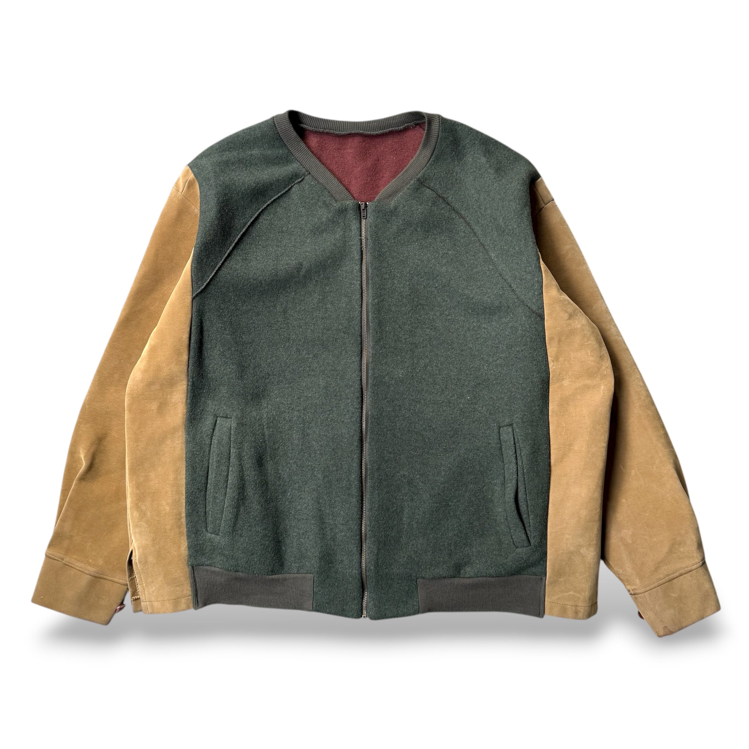 SLEEVE DOCKING DESSIGN ZIP UP JACKET / ドッキング ジップ アップ ウール スウェード ジャケット