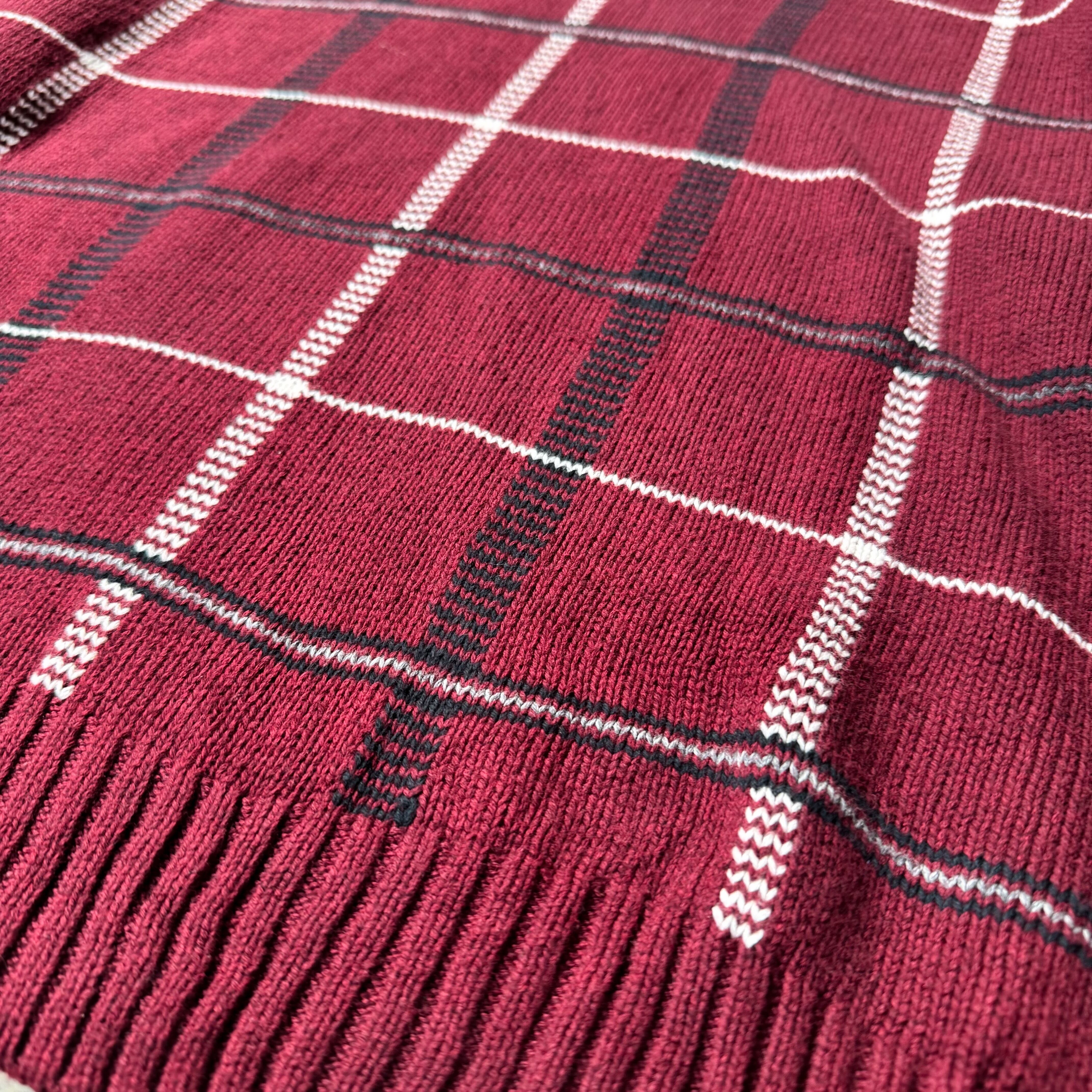 ・バーガンディのボディに、ブラックとホワイトのラインが交差するチェックパターン。