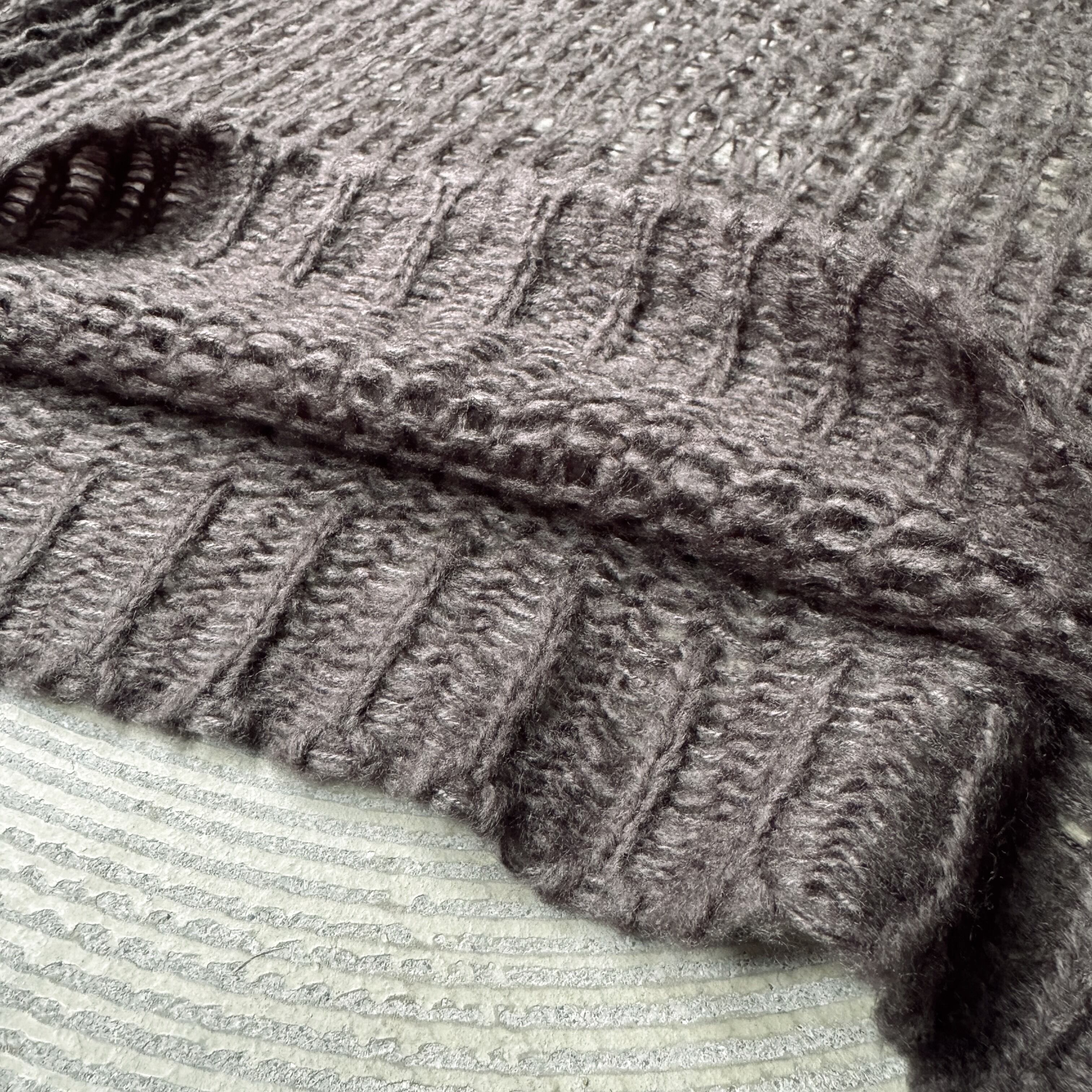 編みの密度を変えることで、視覚と触感のリズムを生み出す設計。