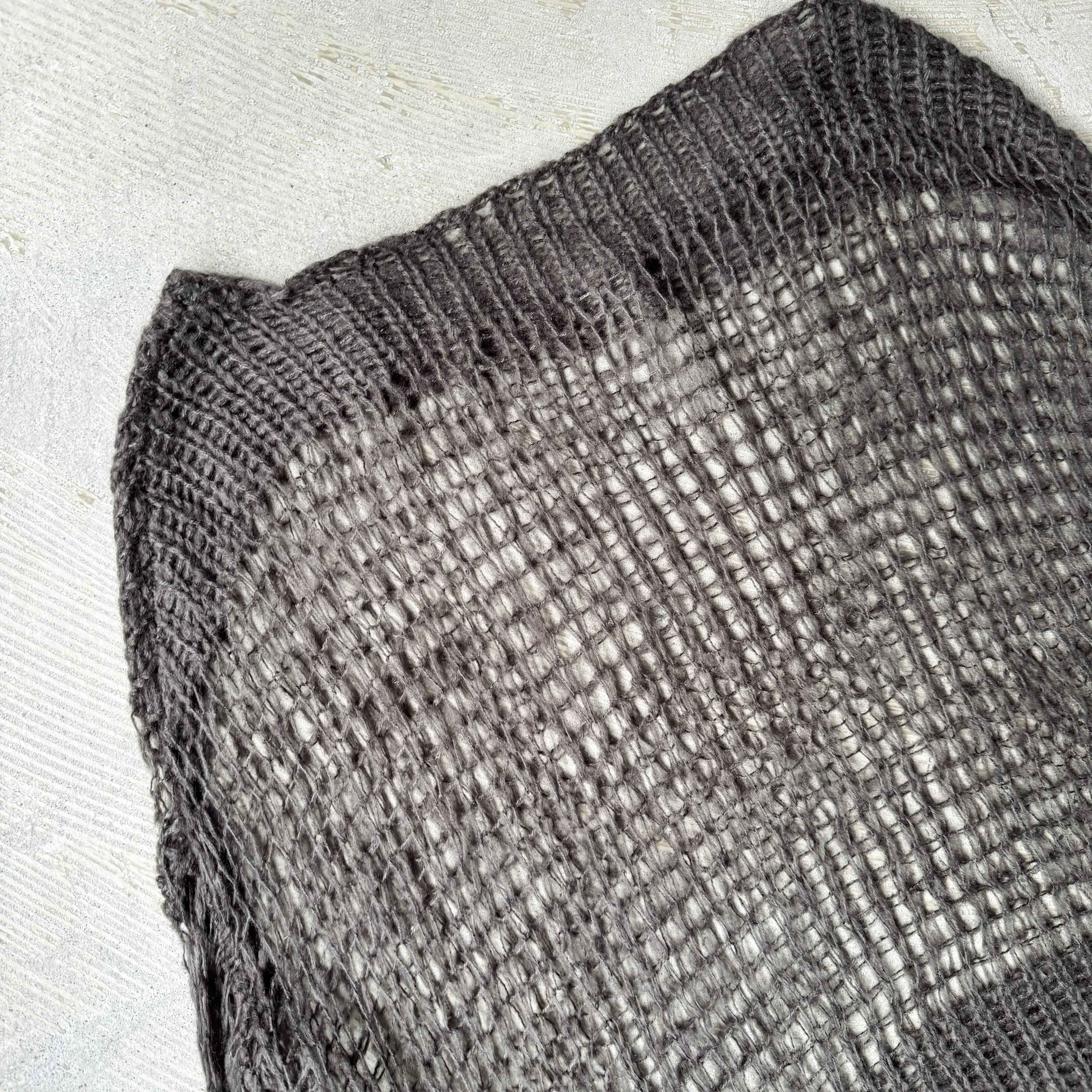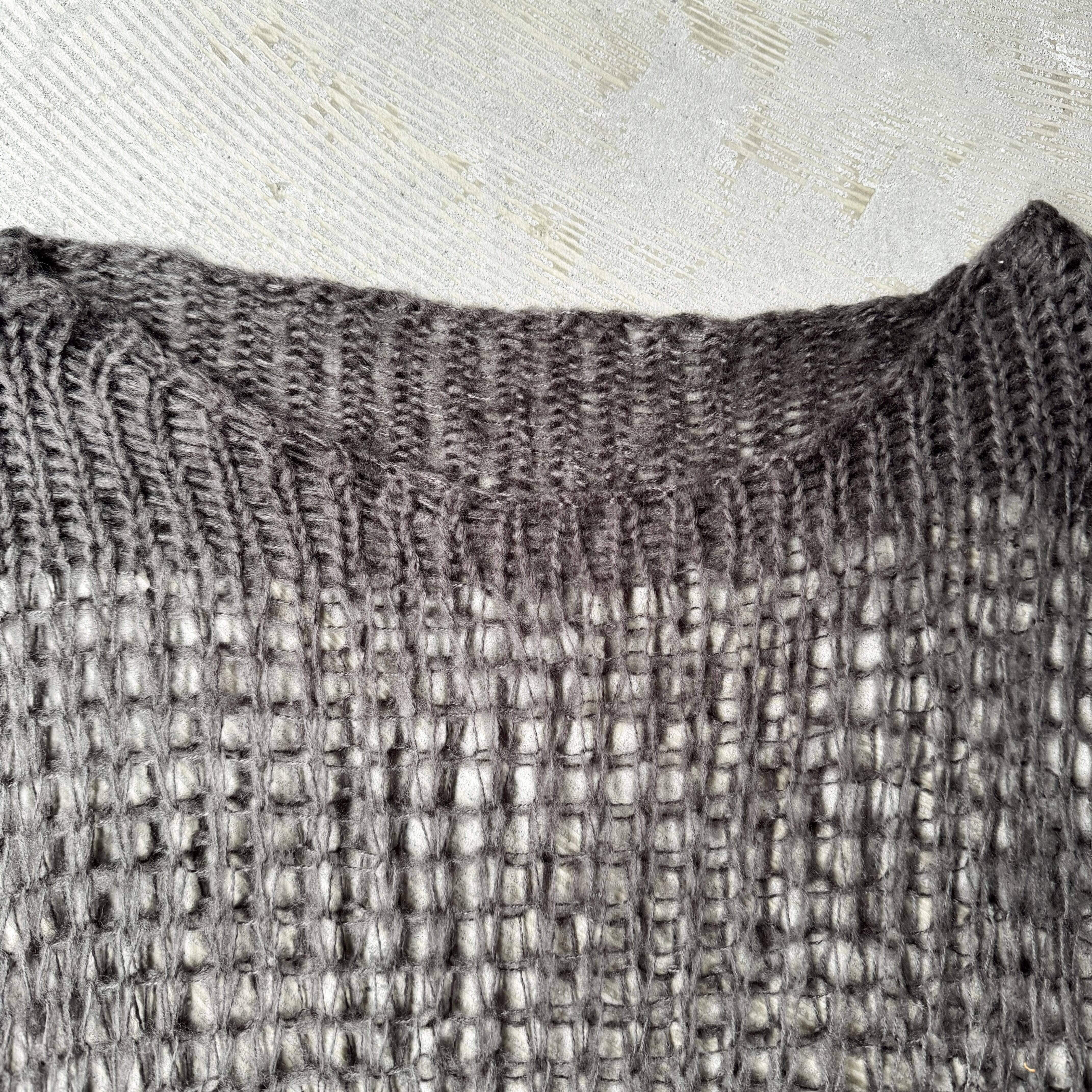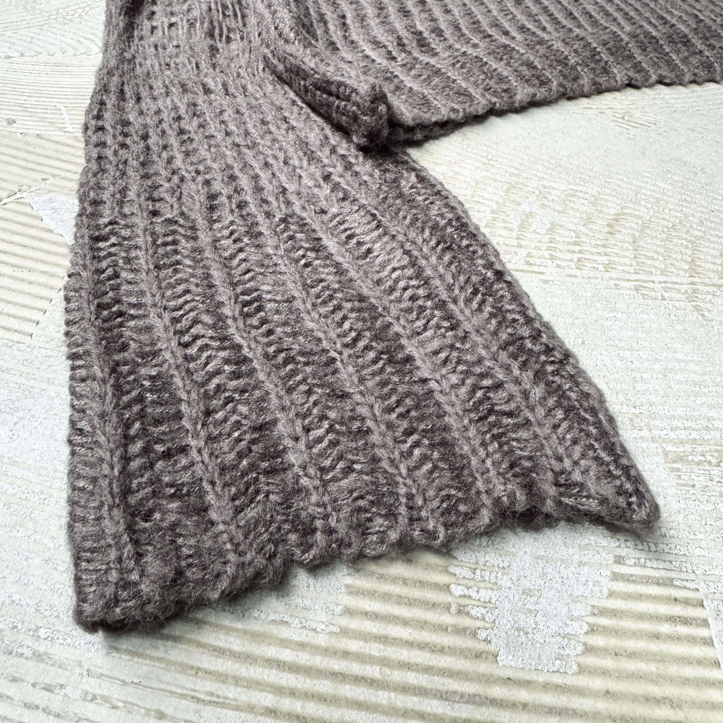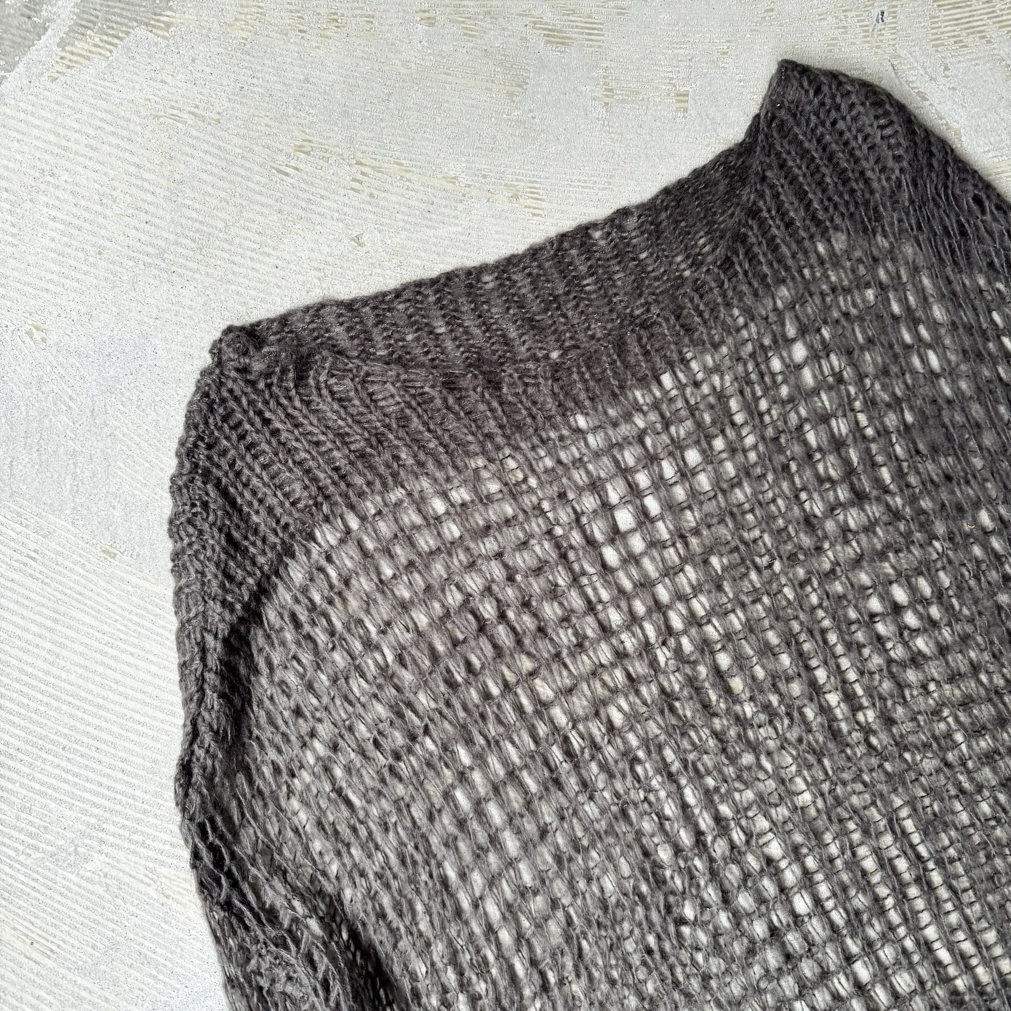 下部はしっかりと編まれ、上部は透け感のあるローゲージで構成されており