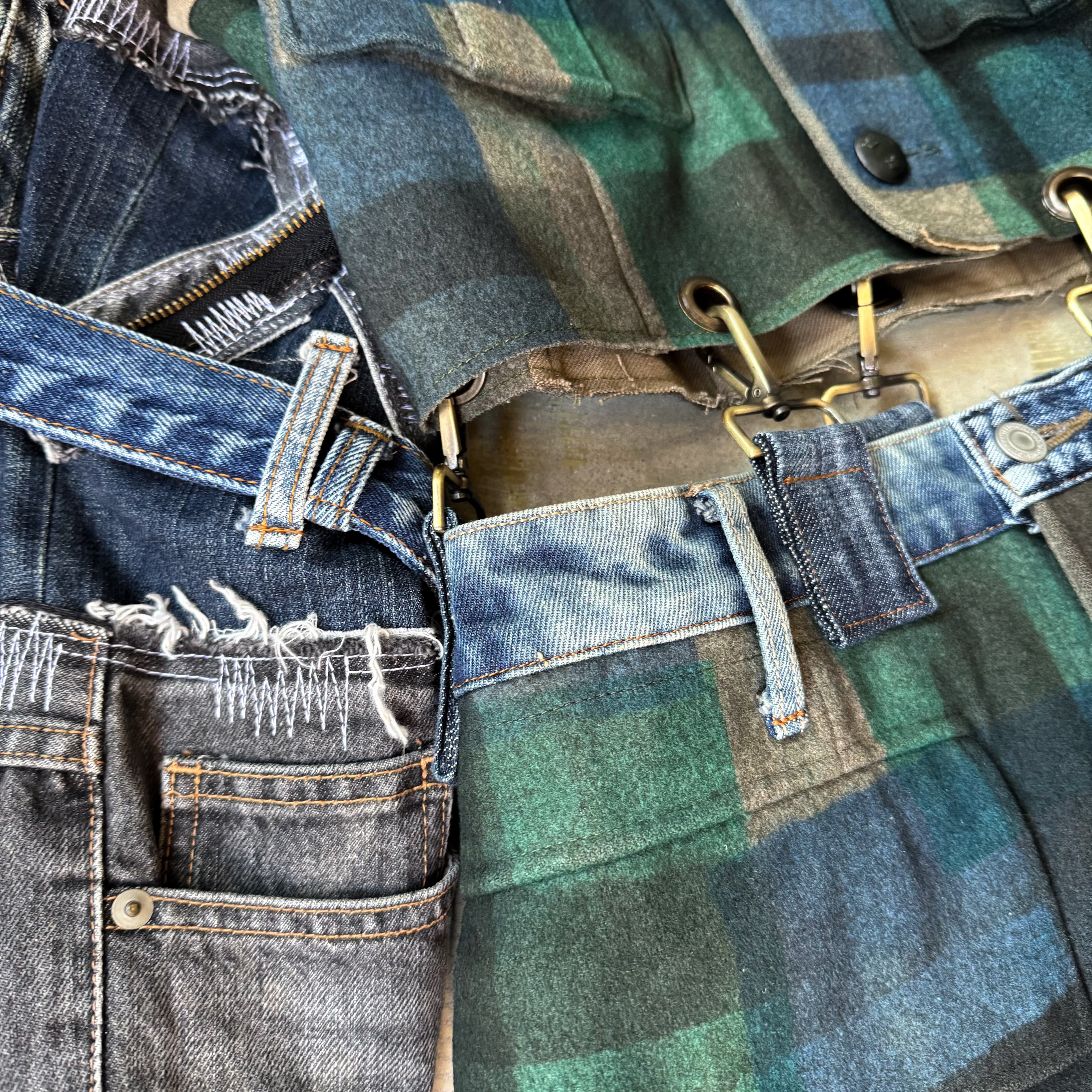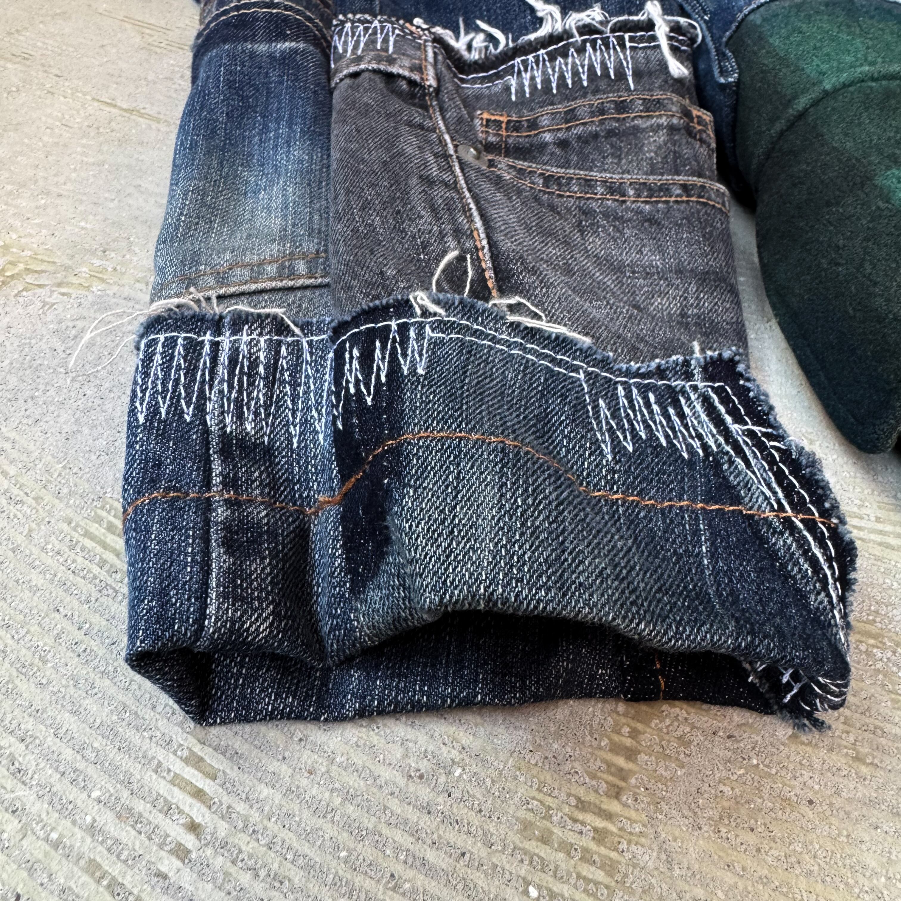 ポケットやステッチの痕跡がそのまま残されており、かつてのジーンズの記憶が