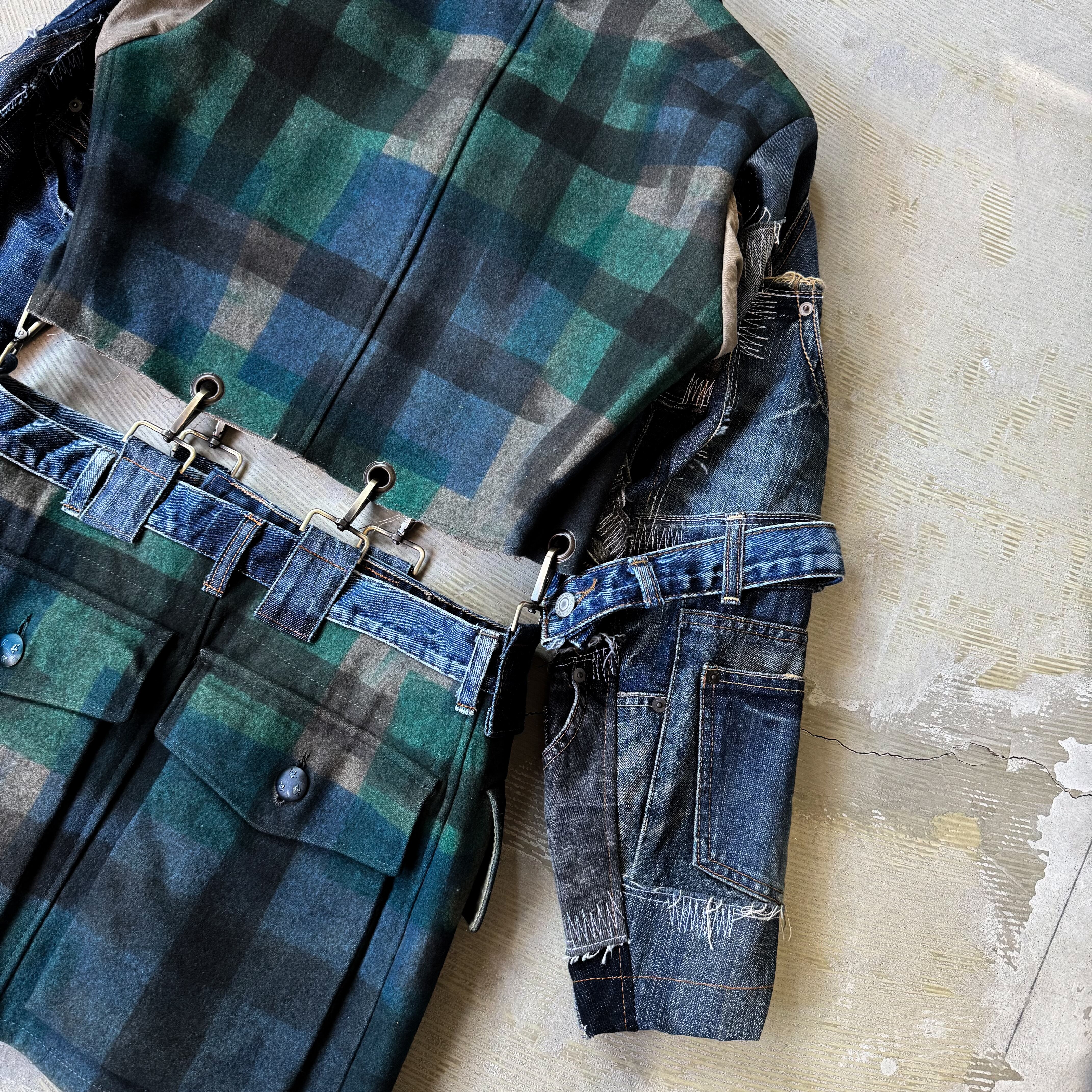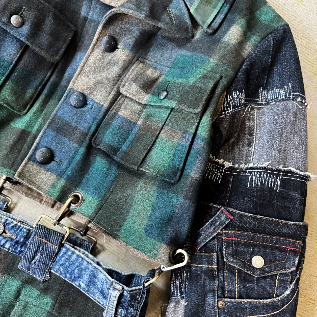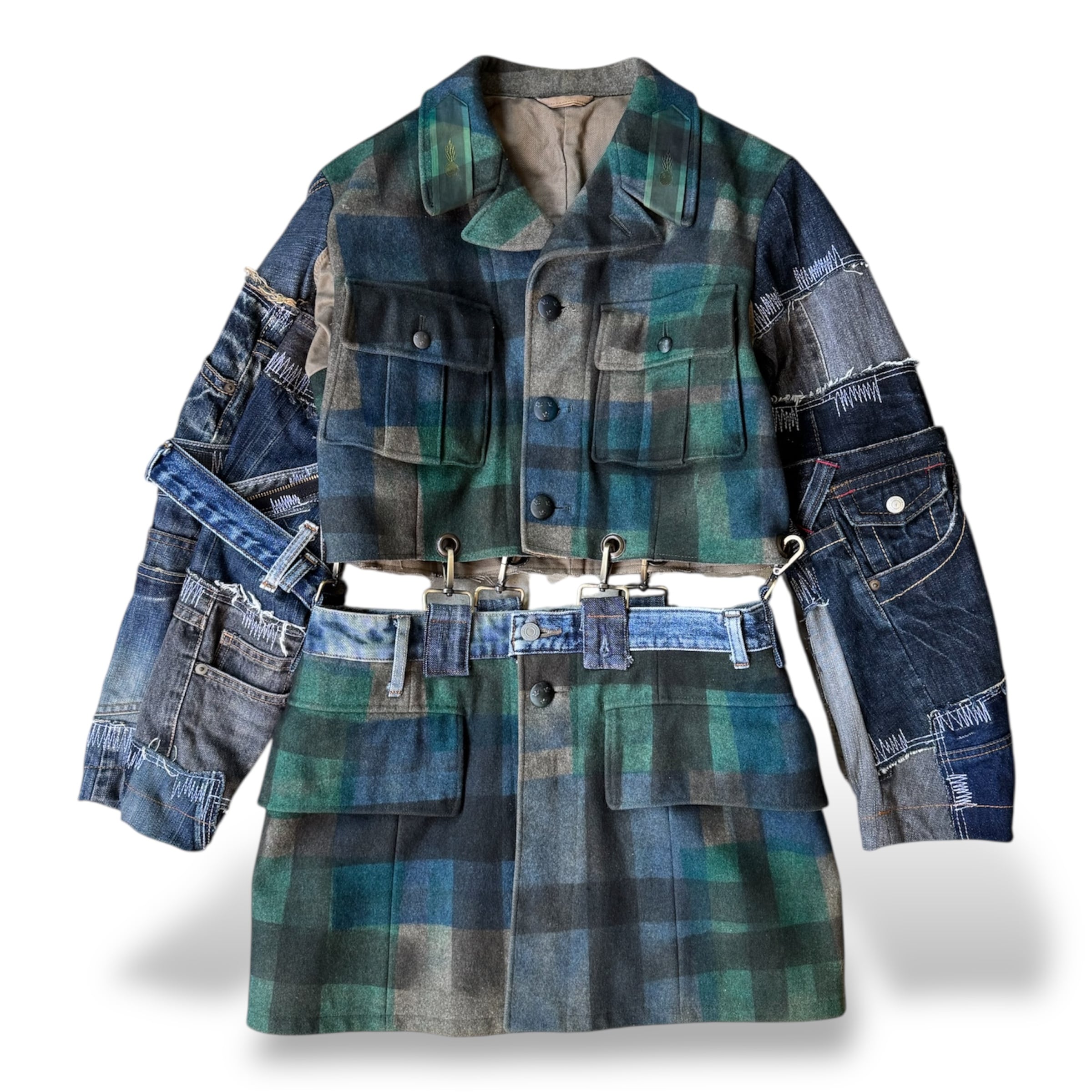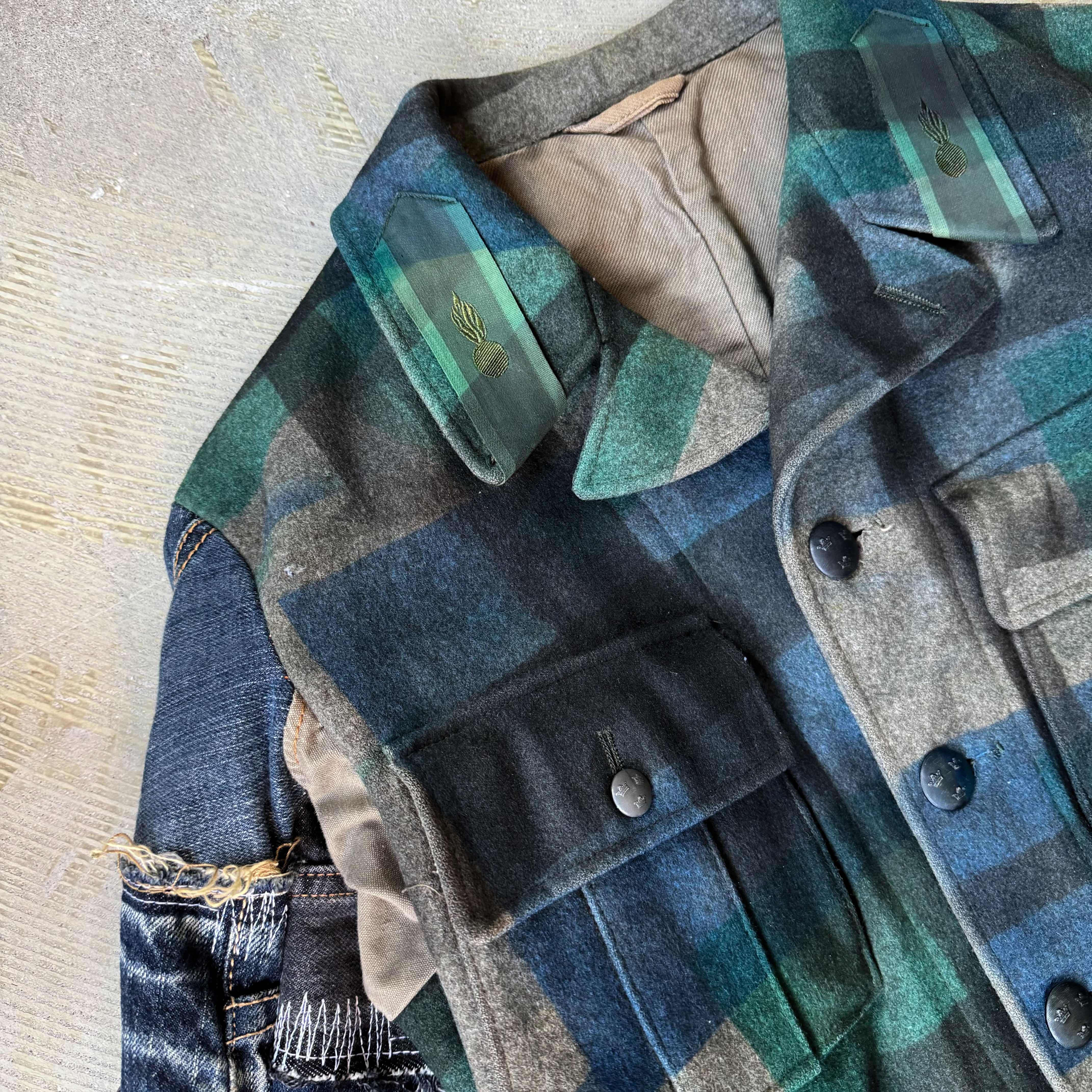 【DE:CODE】EURO MILITARY CHECK DENIM SLEEVE JACKET / ユーロ ミリタリー チェック柄 デニム パッチワーク ジャケット