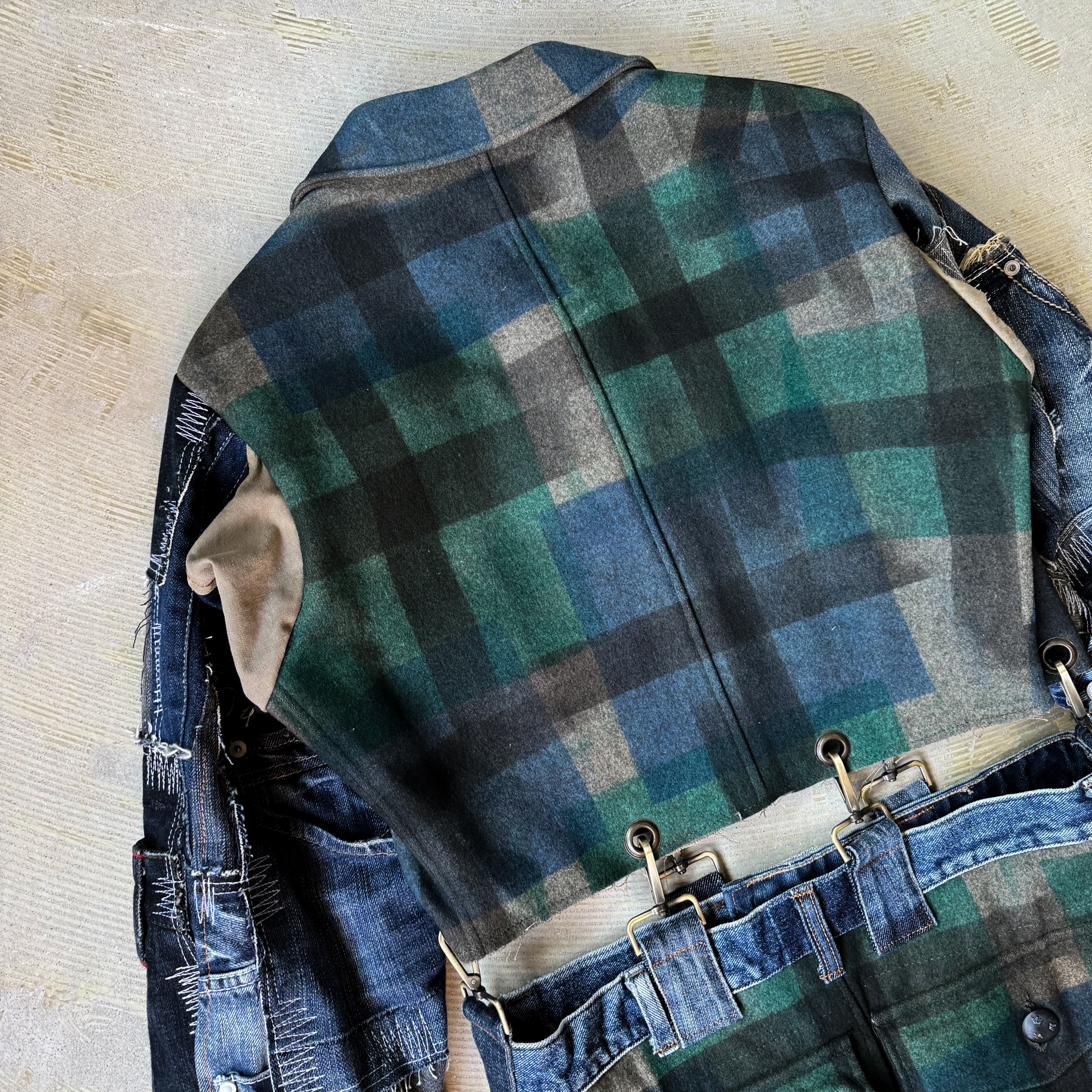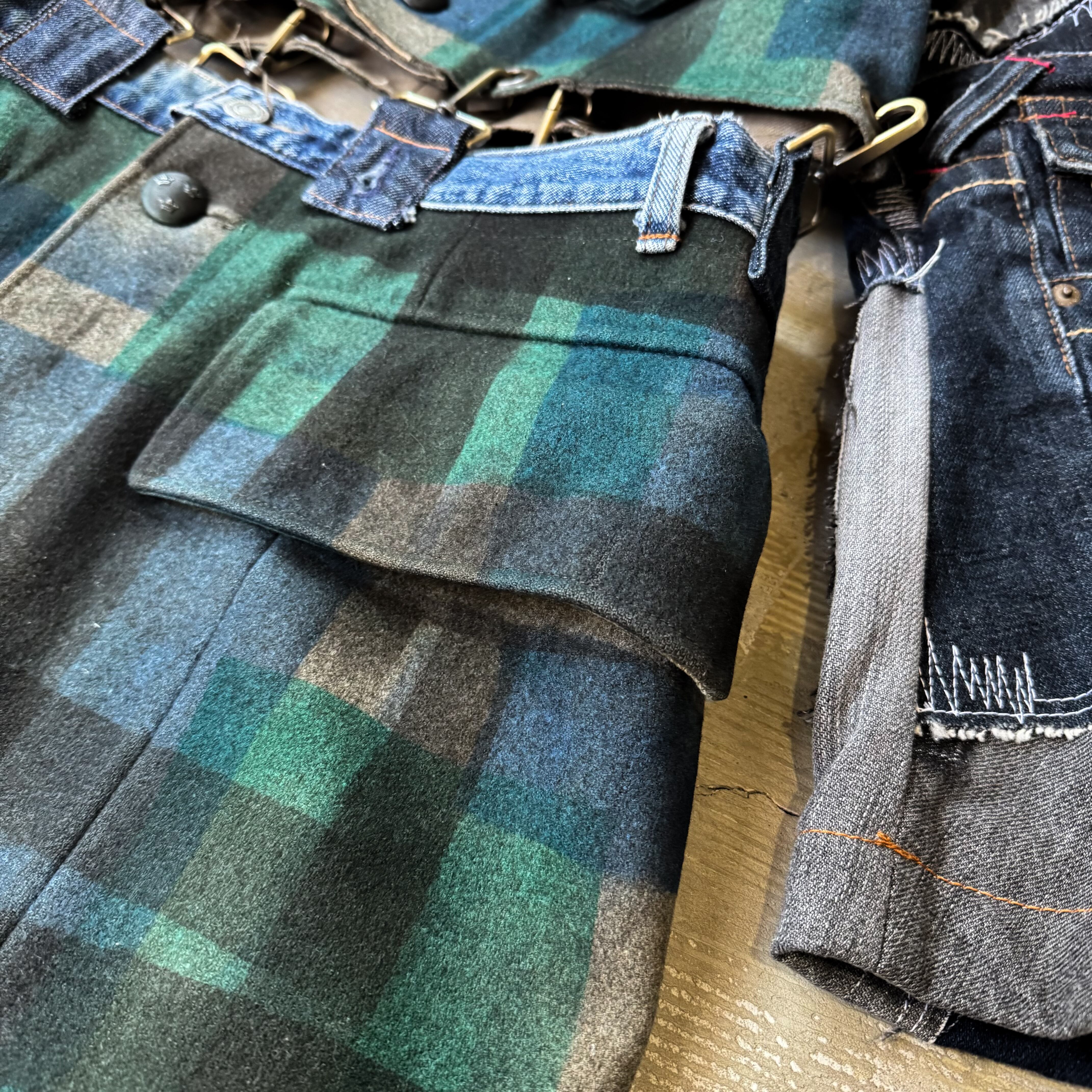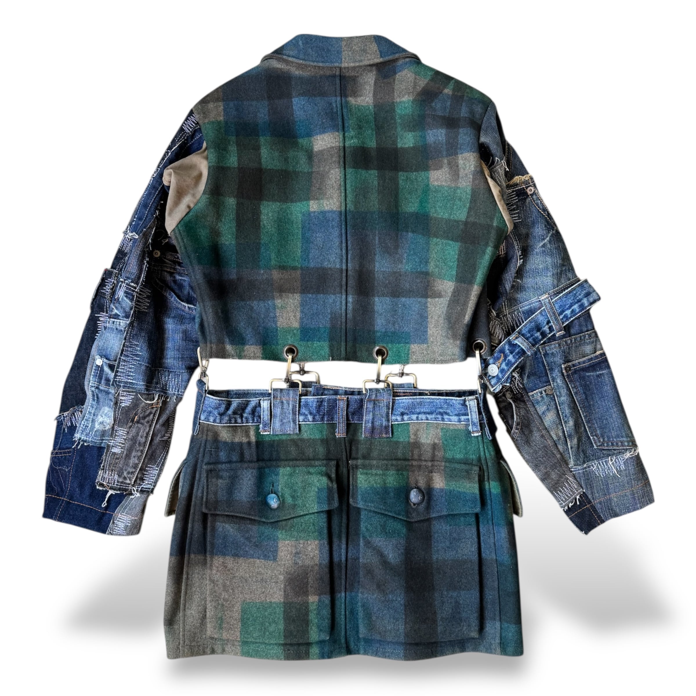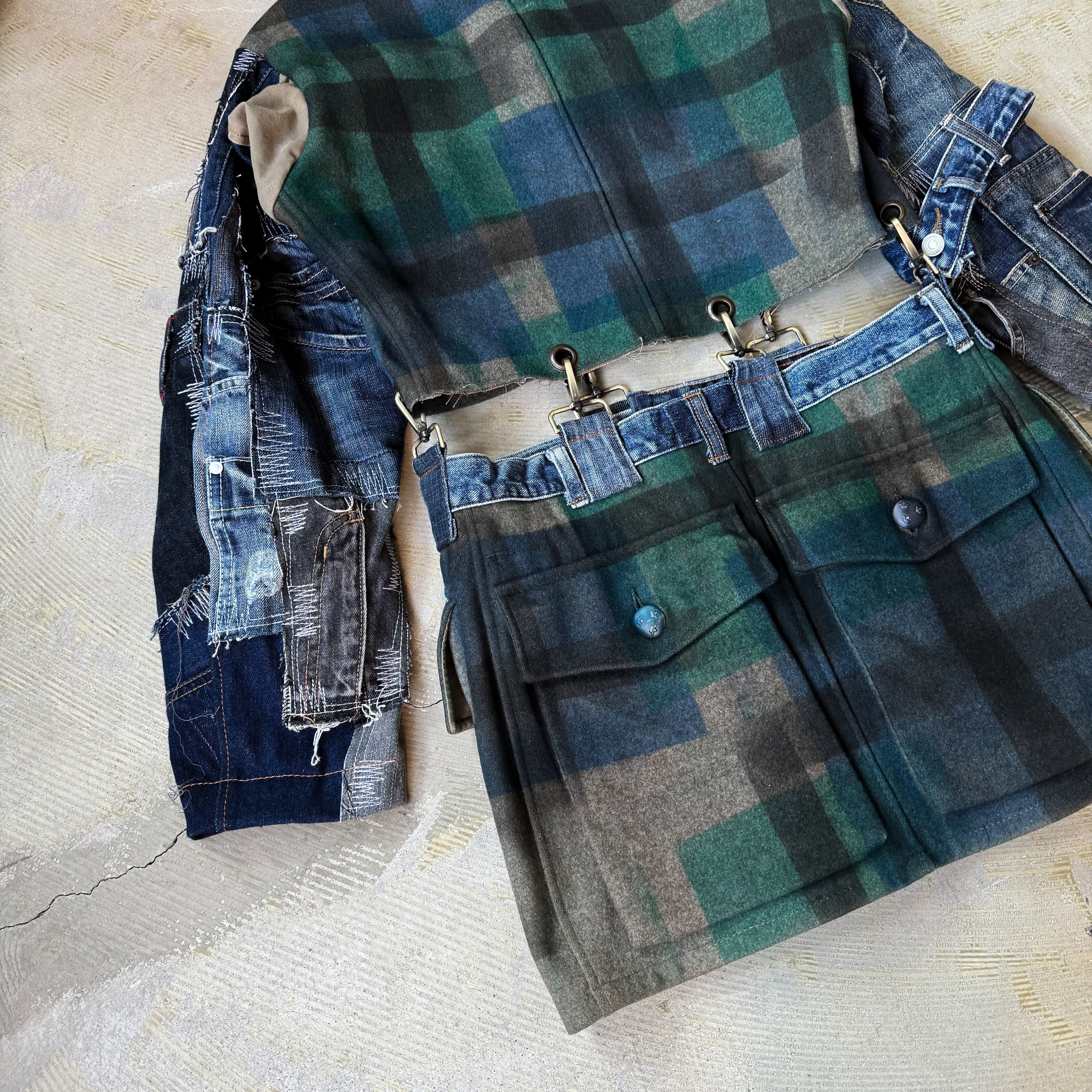 【DE:CODE】EURO MILITARY CHECK DENIM SLEEVE JACKET / ユーロ ミリタリー チェック柄 デニム パッチワーク ジャケット