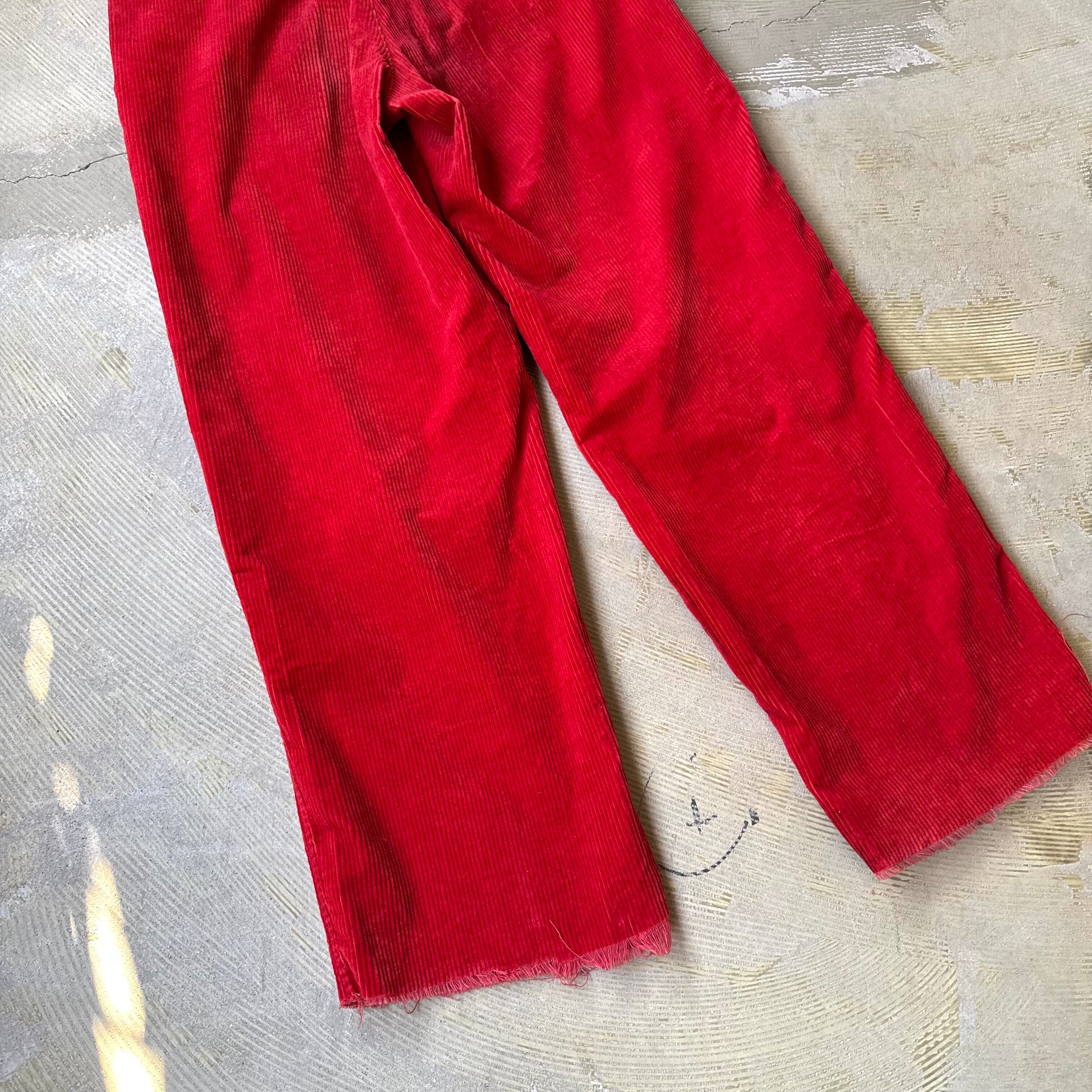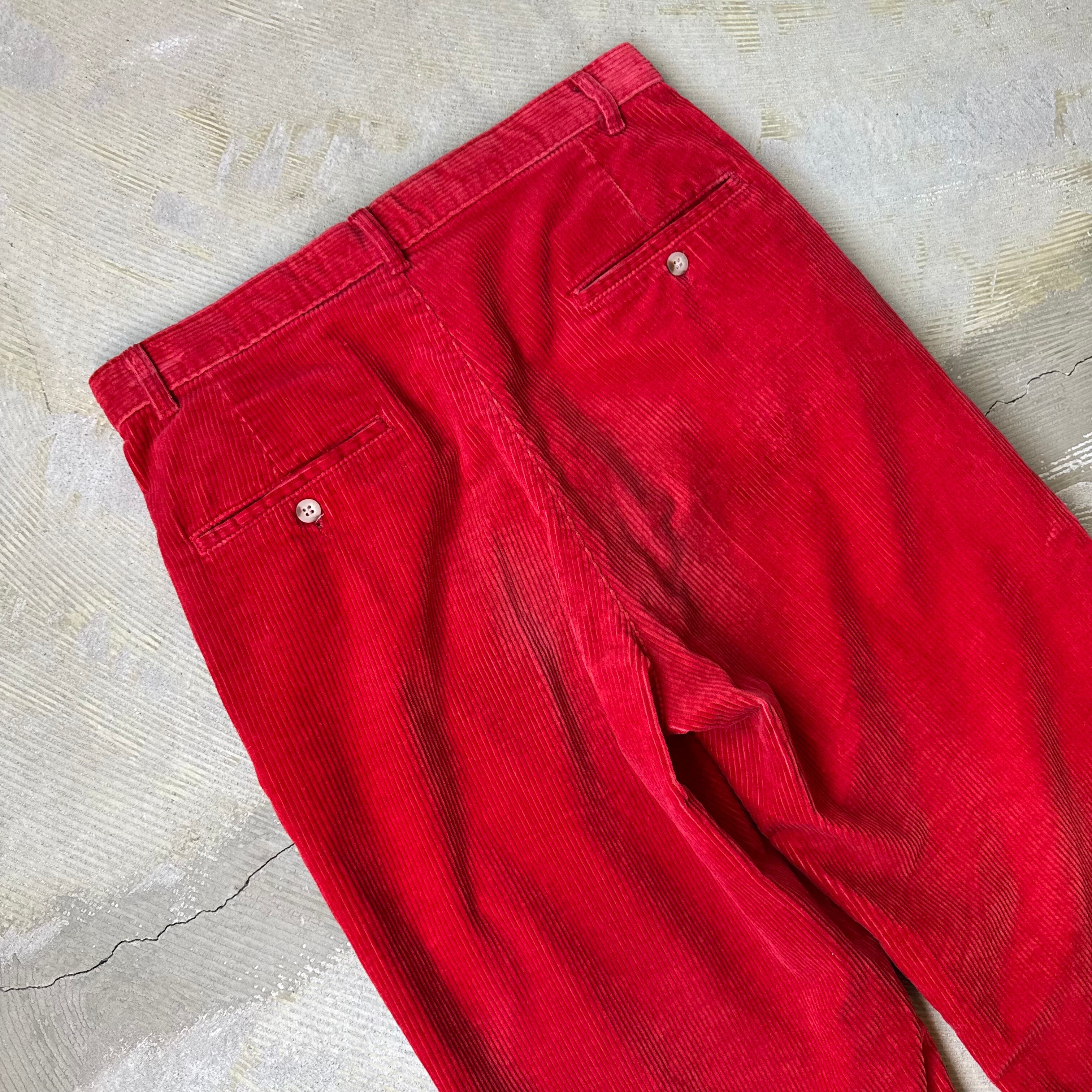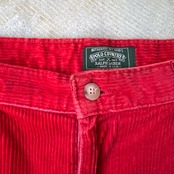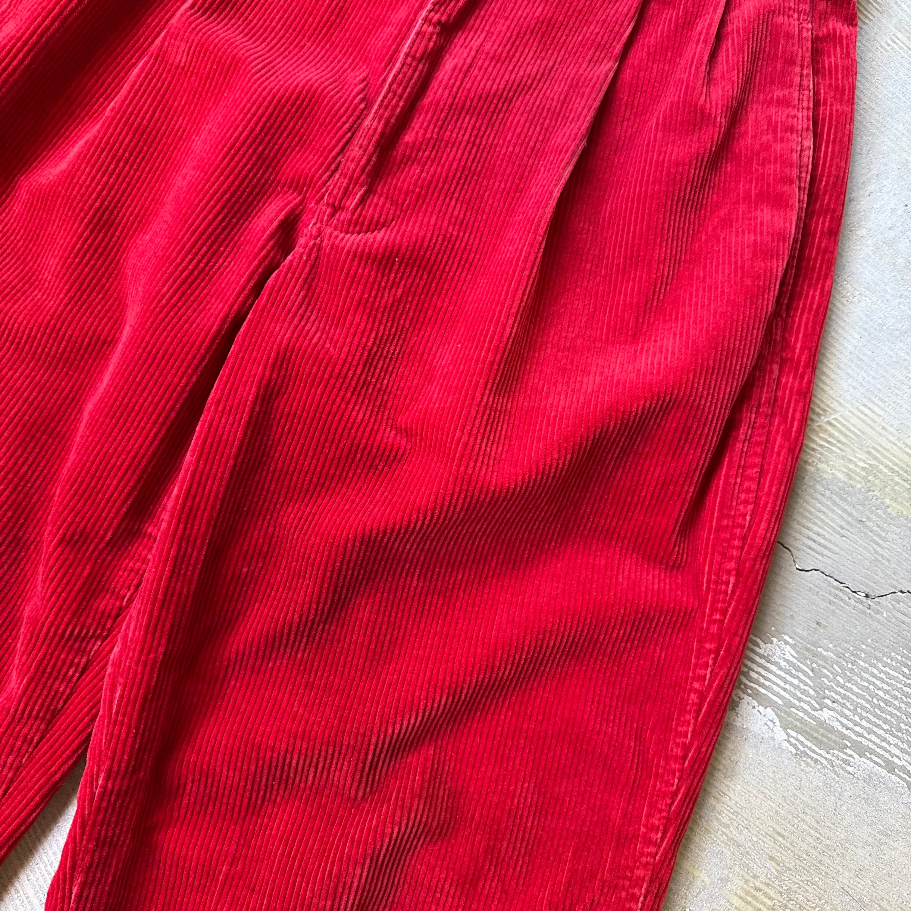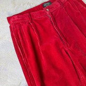 ・深みのあるレッドのコーデュロイにハイウエスト+タック入りの構造。