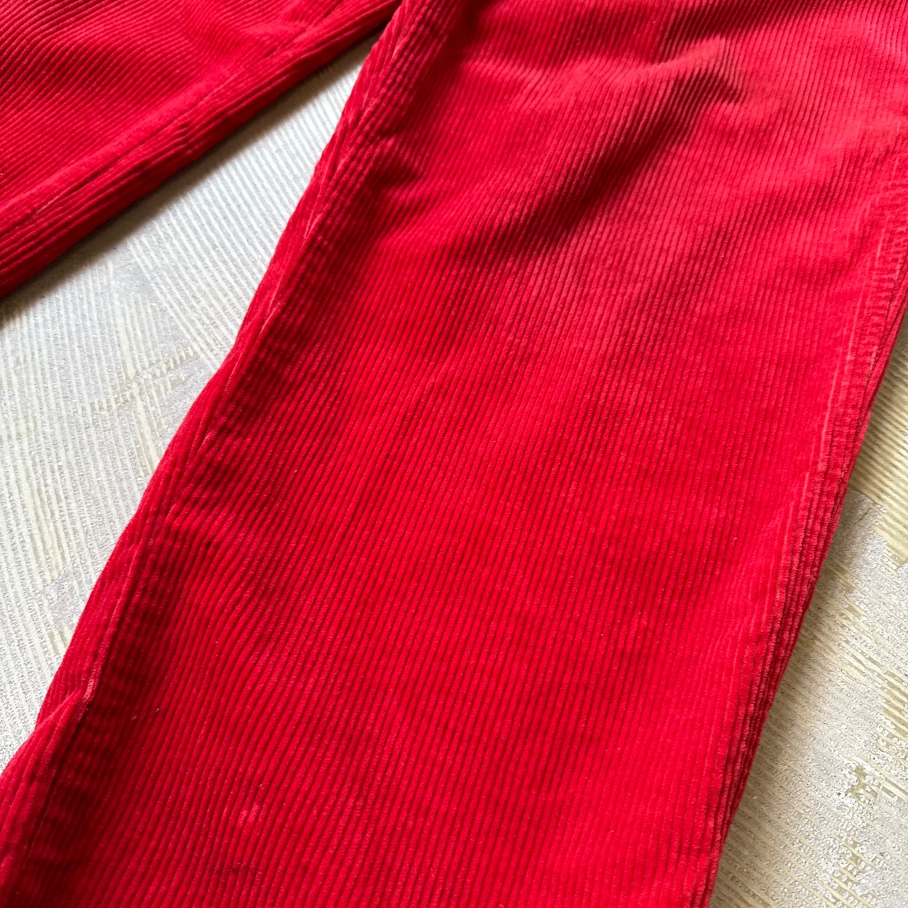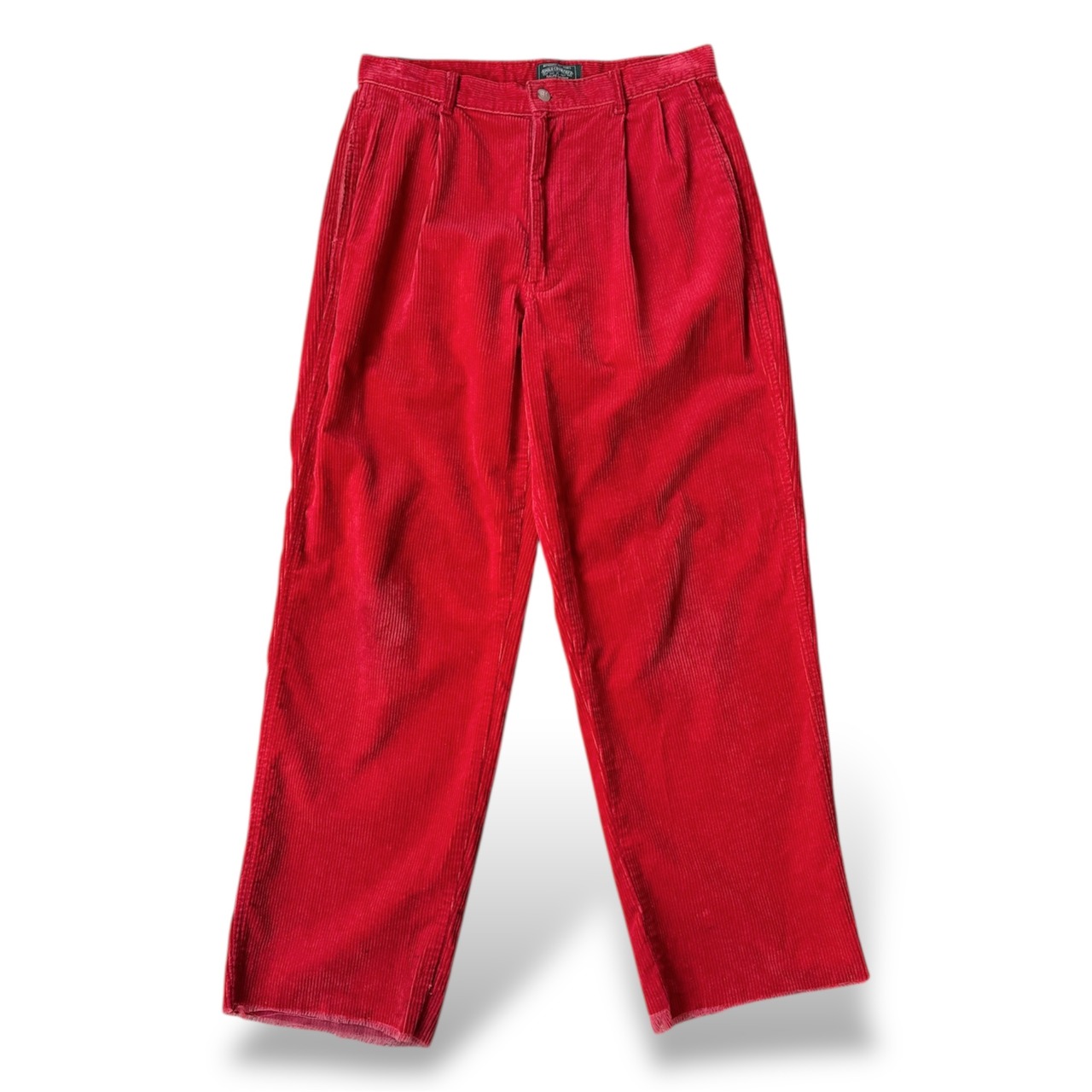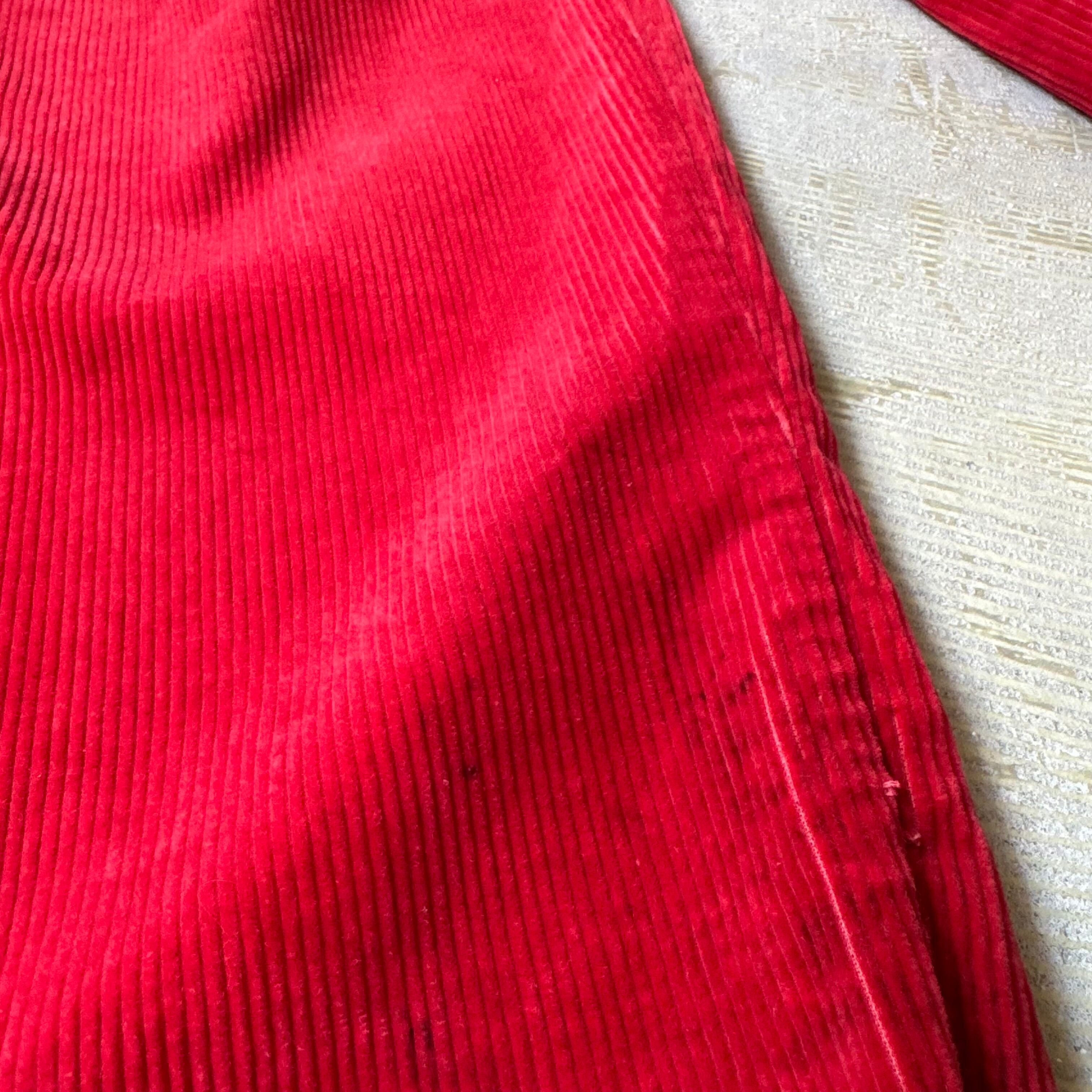 ・深みのあるレッドのコーデュロイにハイウエスト+タック入りの構造。