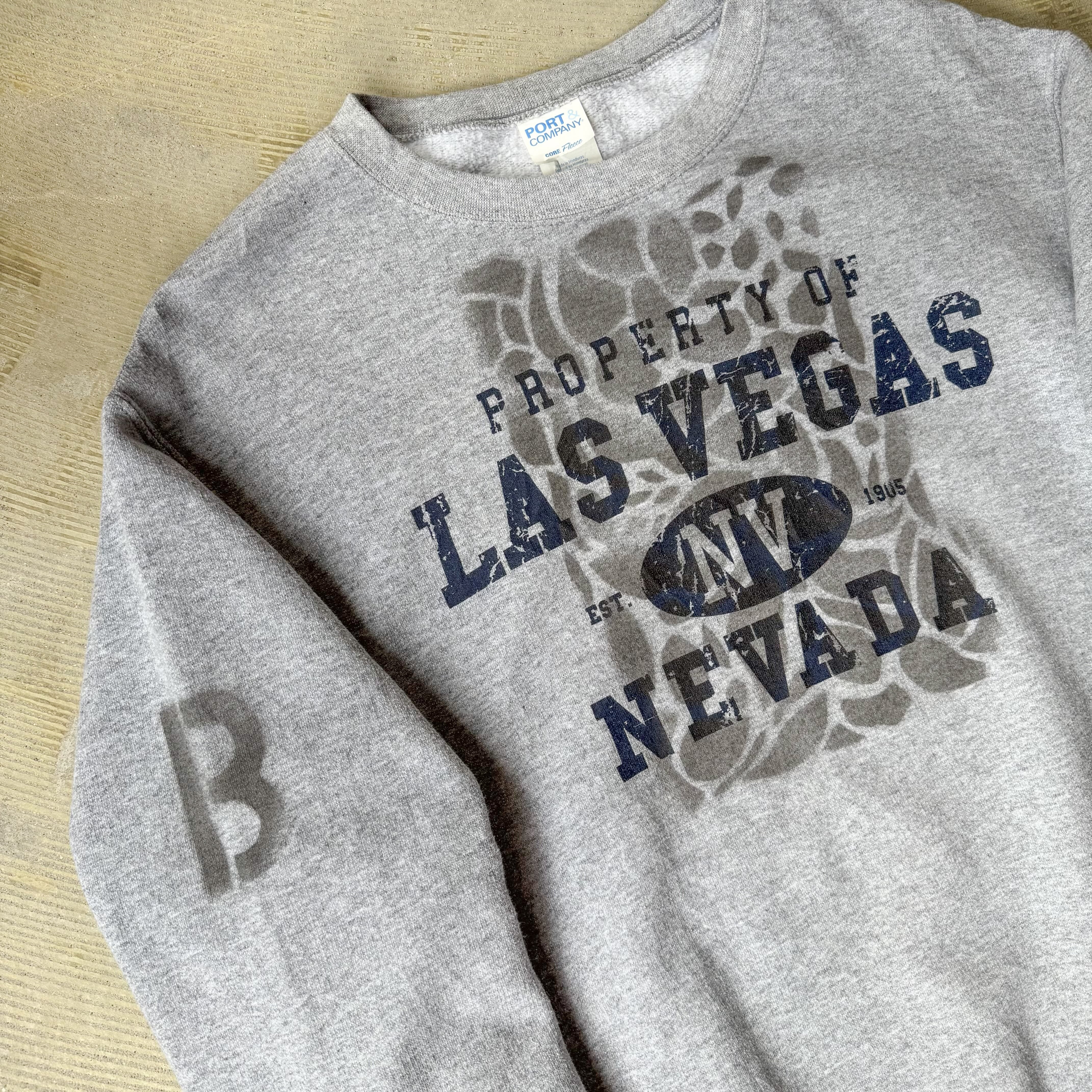 ・グレーのボディに「PROPERTY OF LAS VEGAS NV NEVADA EST.1905」のプリント。