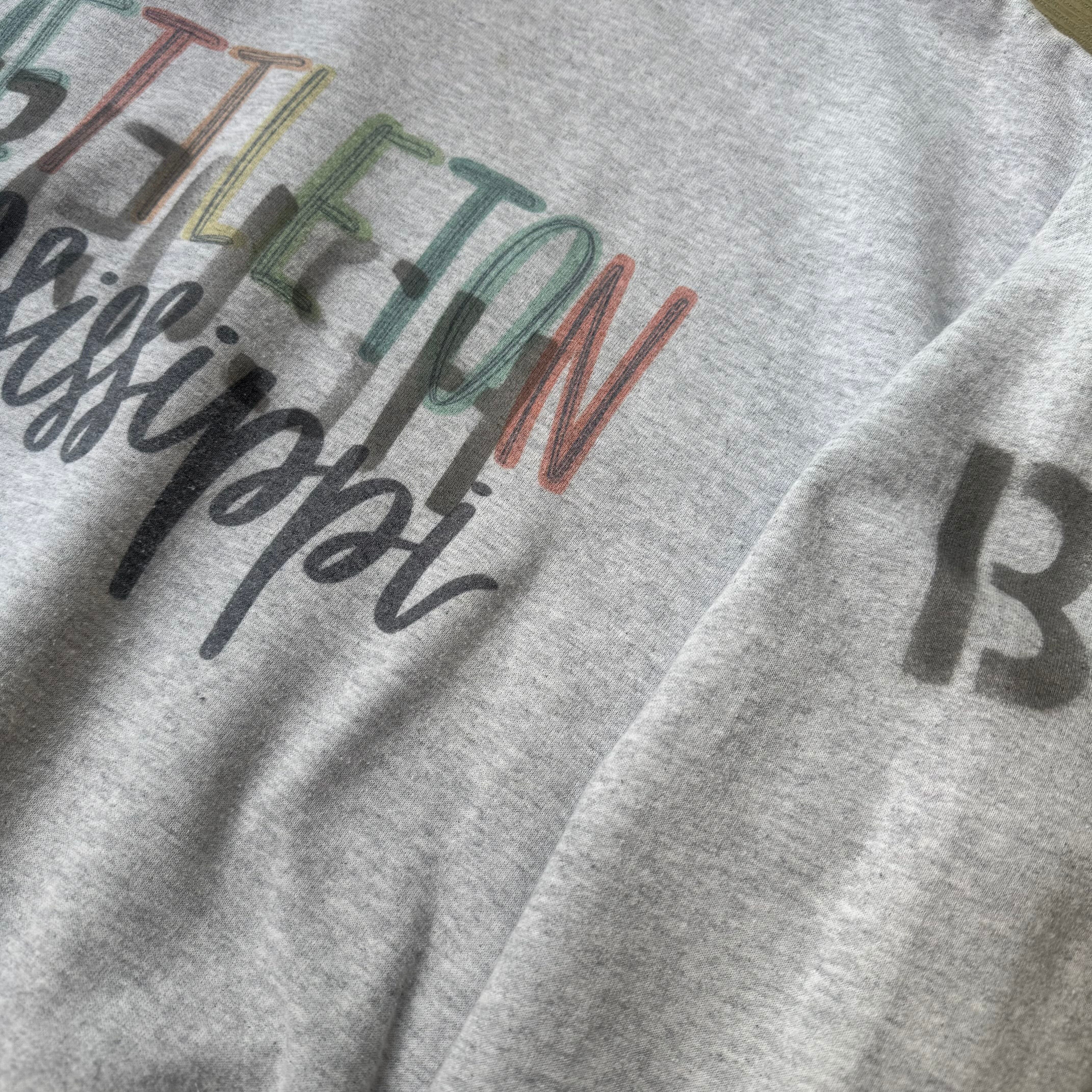 ・ライトグレーのボディに「NETTLETON Mississippi」のカラフルなプリント。