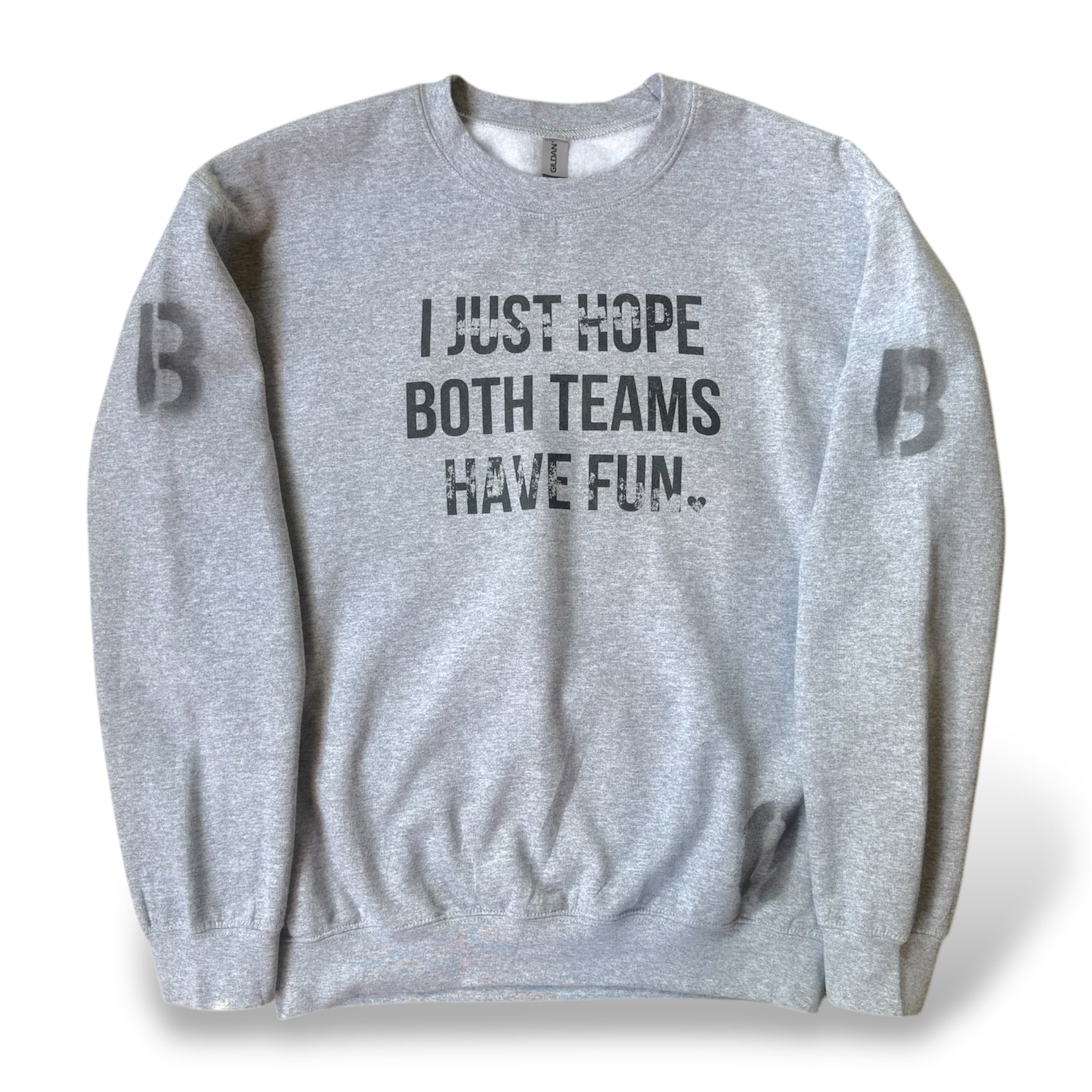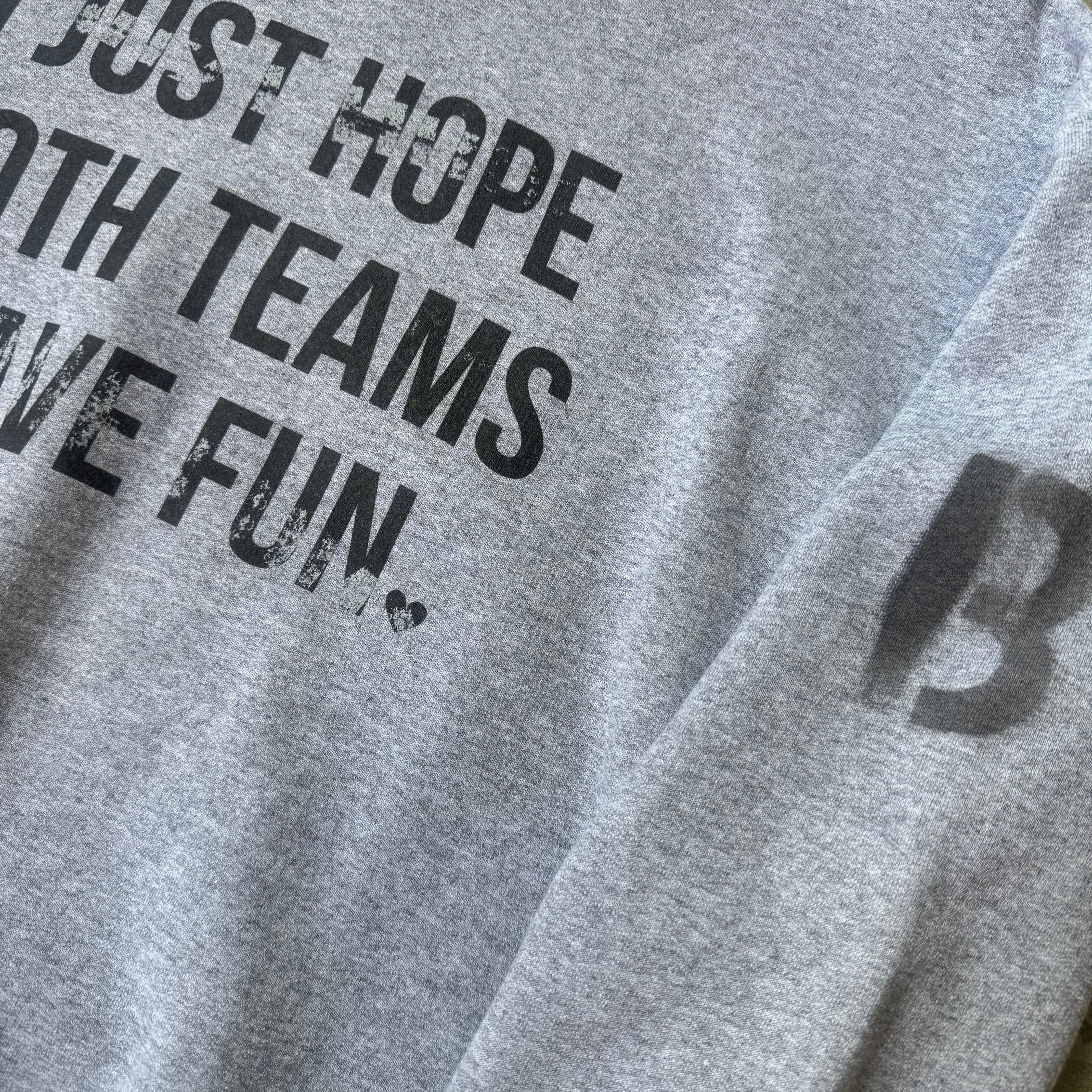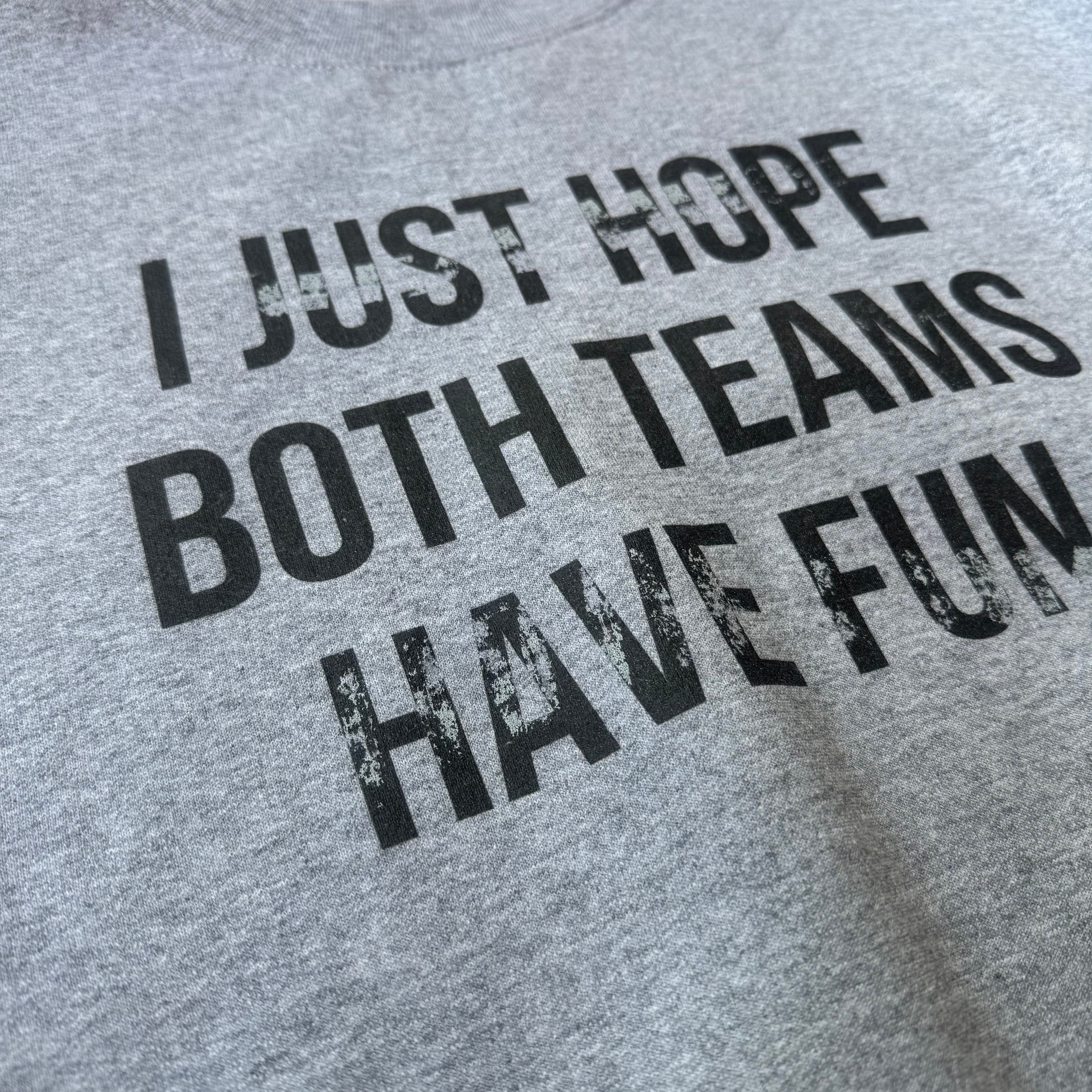 ・グレーのボディに「I JUST HOPE BOTH TEAMS HAVE FUN」