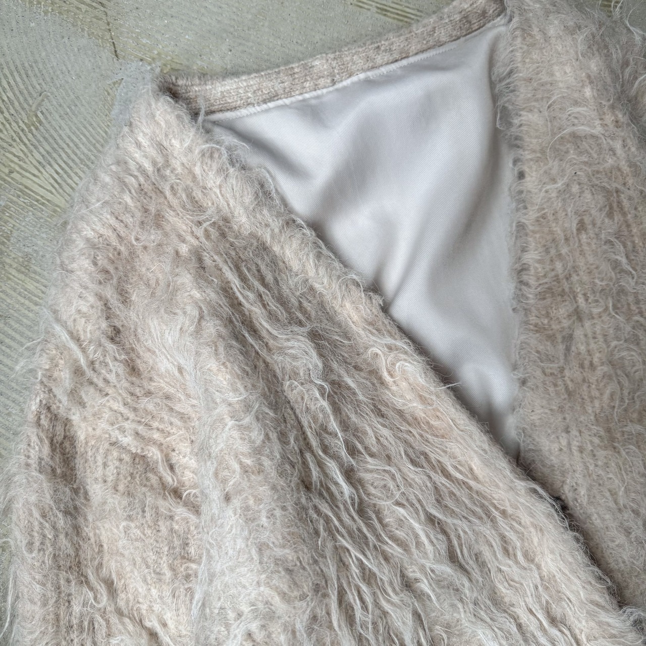 裏地の白が、外側の毛足とコントラストを生み出し