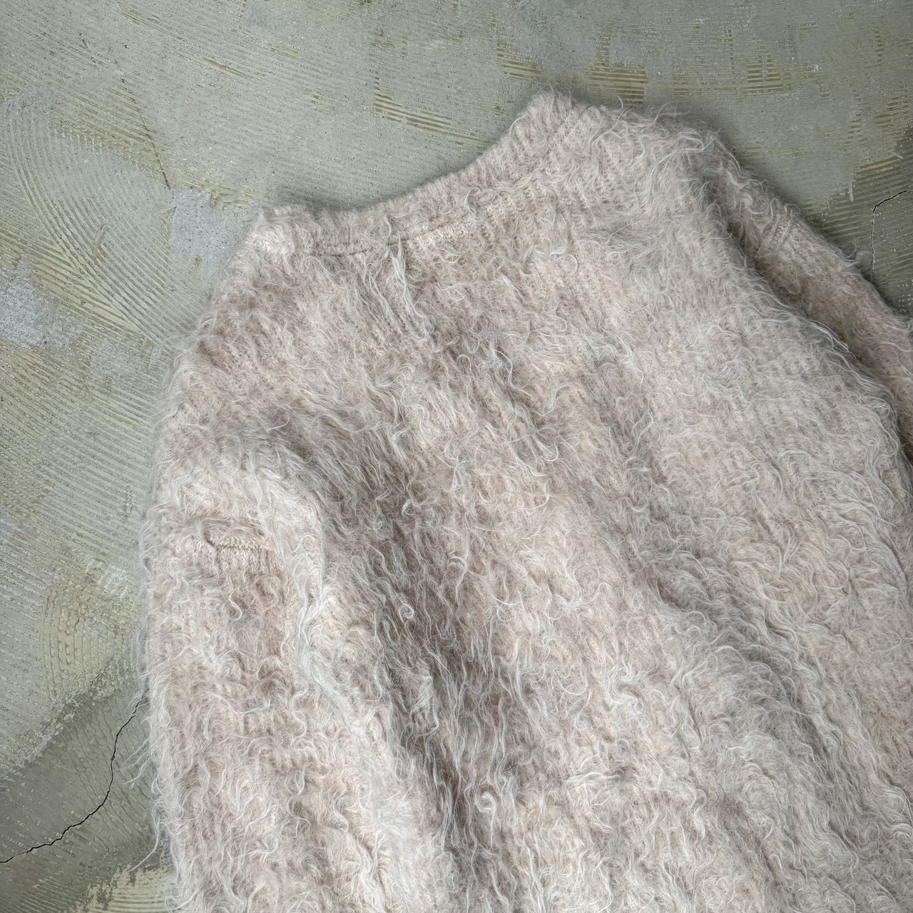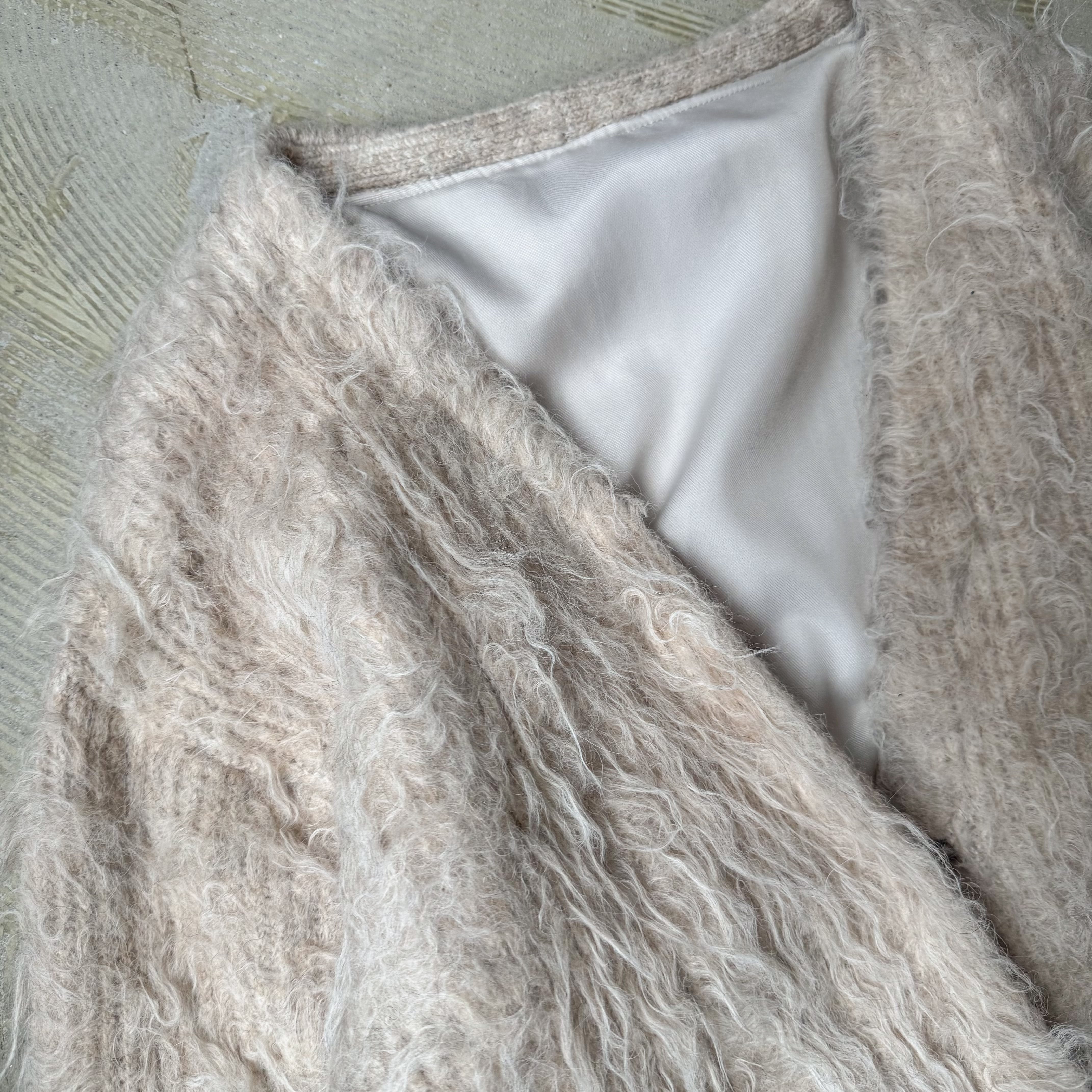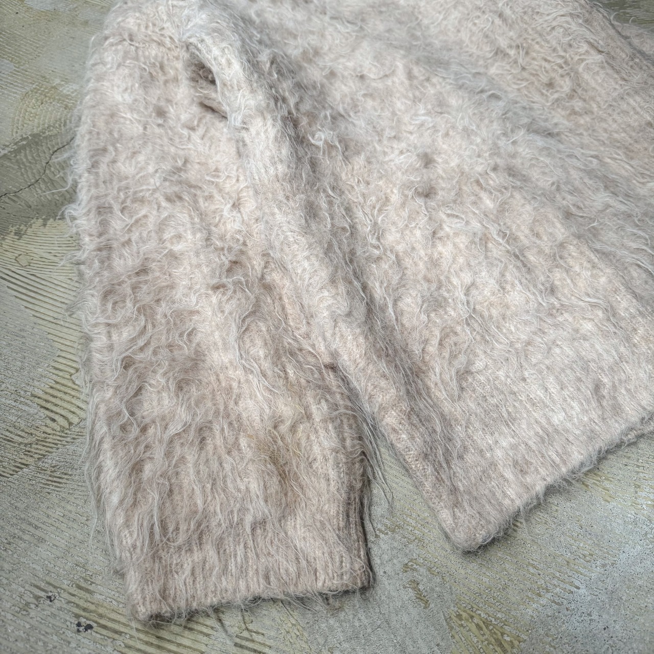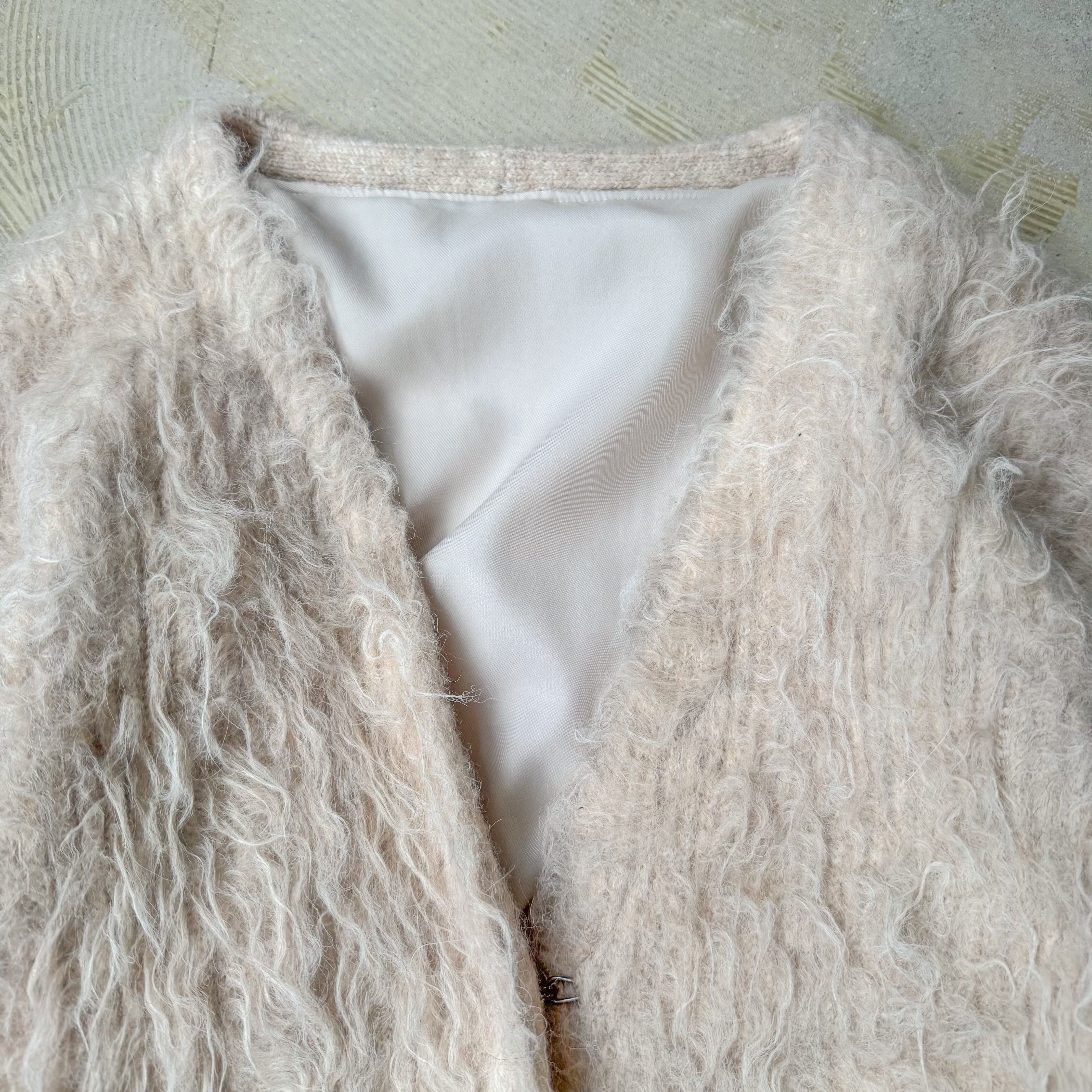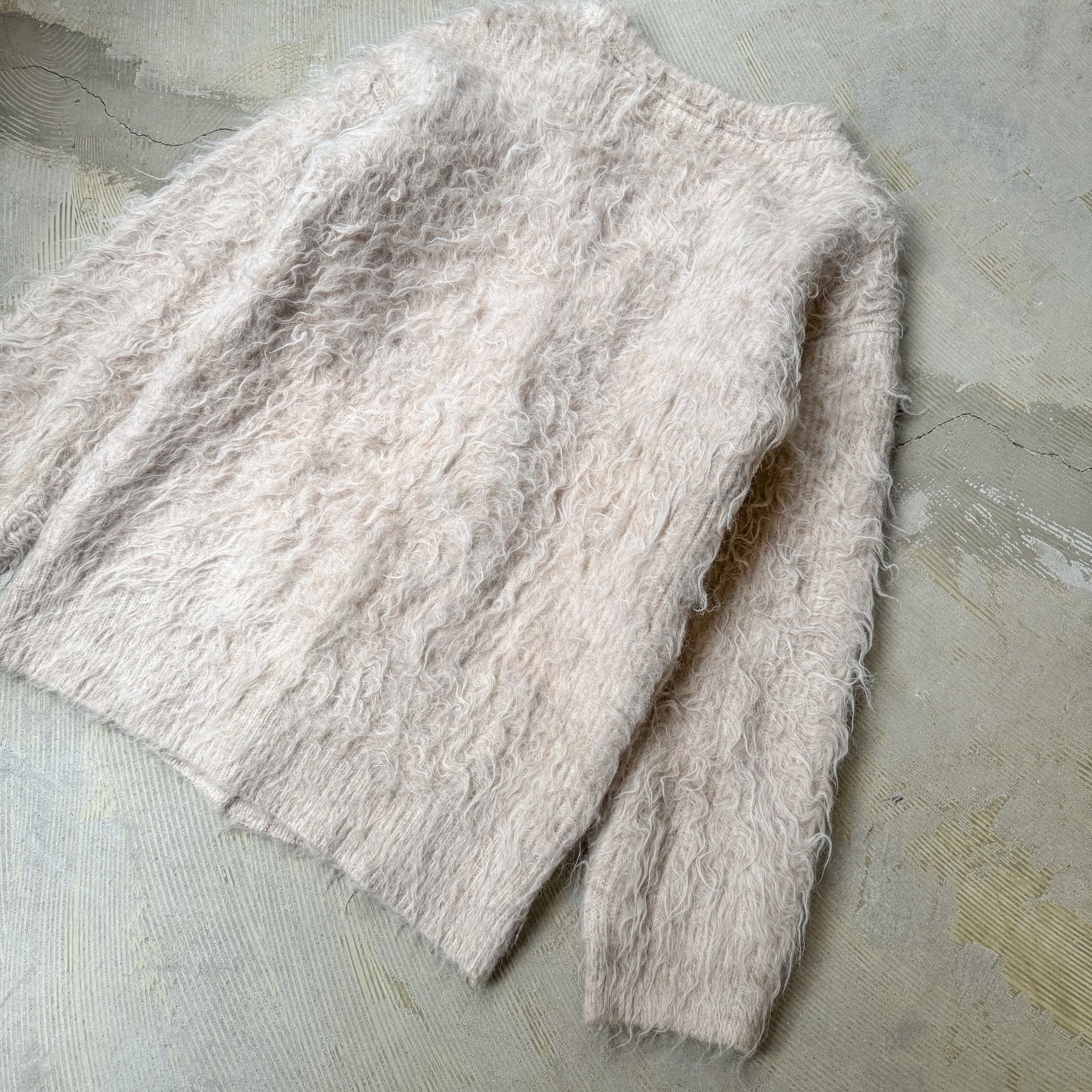 LIGHT BEIGE COLOR SHAGGY KNIT CARDIGAN / シャギー フリンジ ニット カーディガン