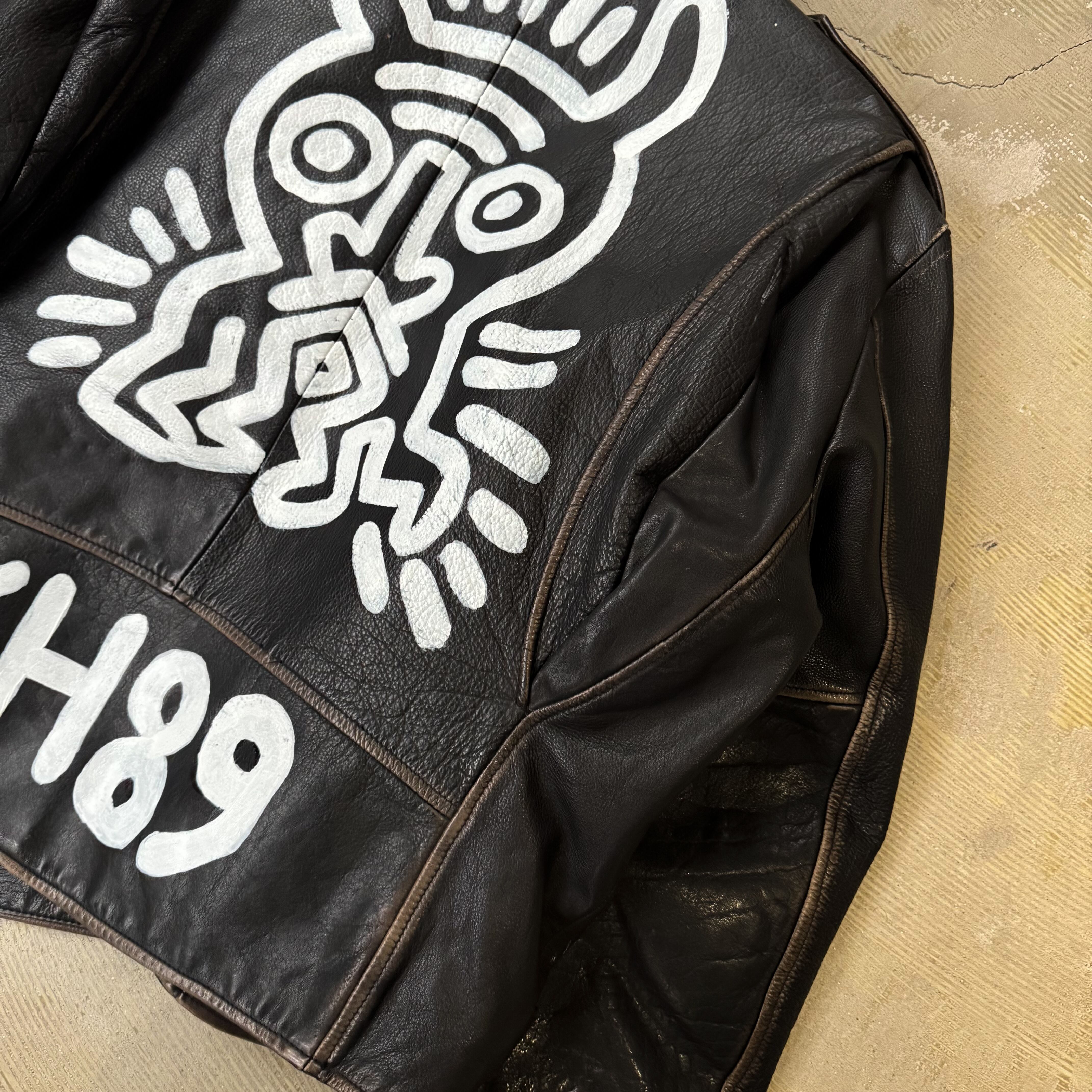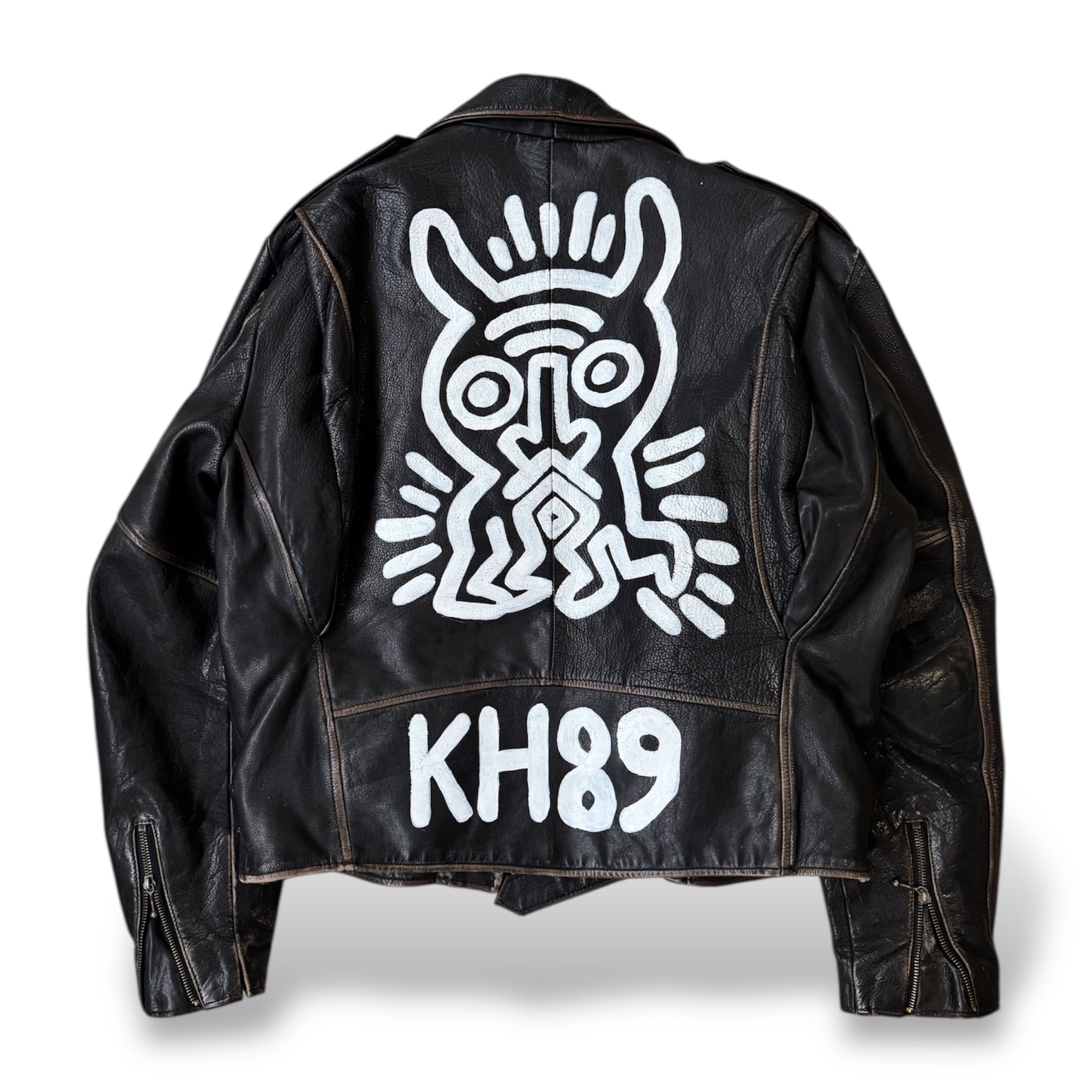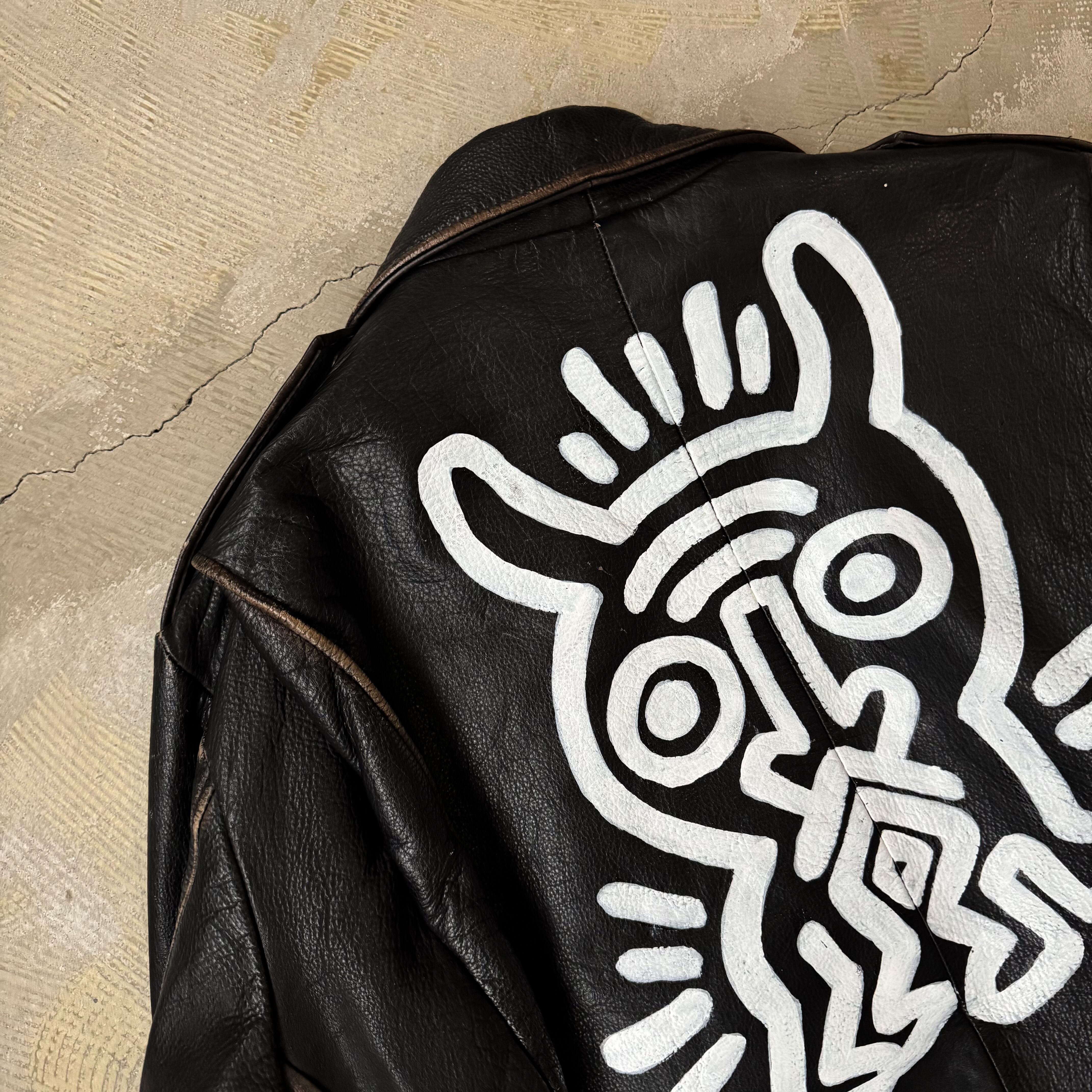 "KEITH HARING" PAINTED CUSTOM LEATHER DOUBLE RIDERS JACKET / ペイント キース ヘリング カスタム レザー ダブル ライダース ジャケット 鋲ジャン パンク
