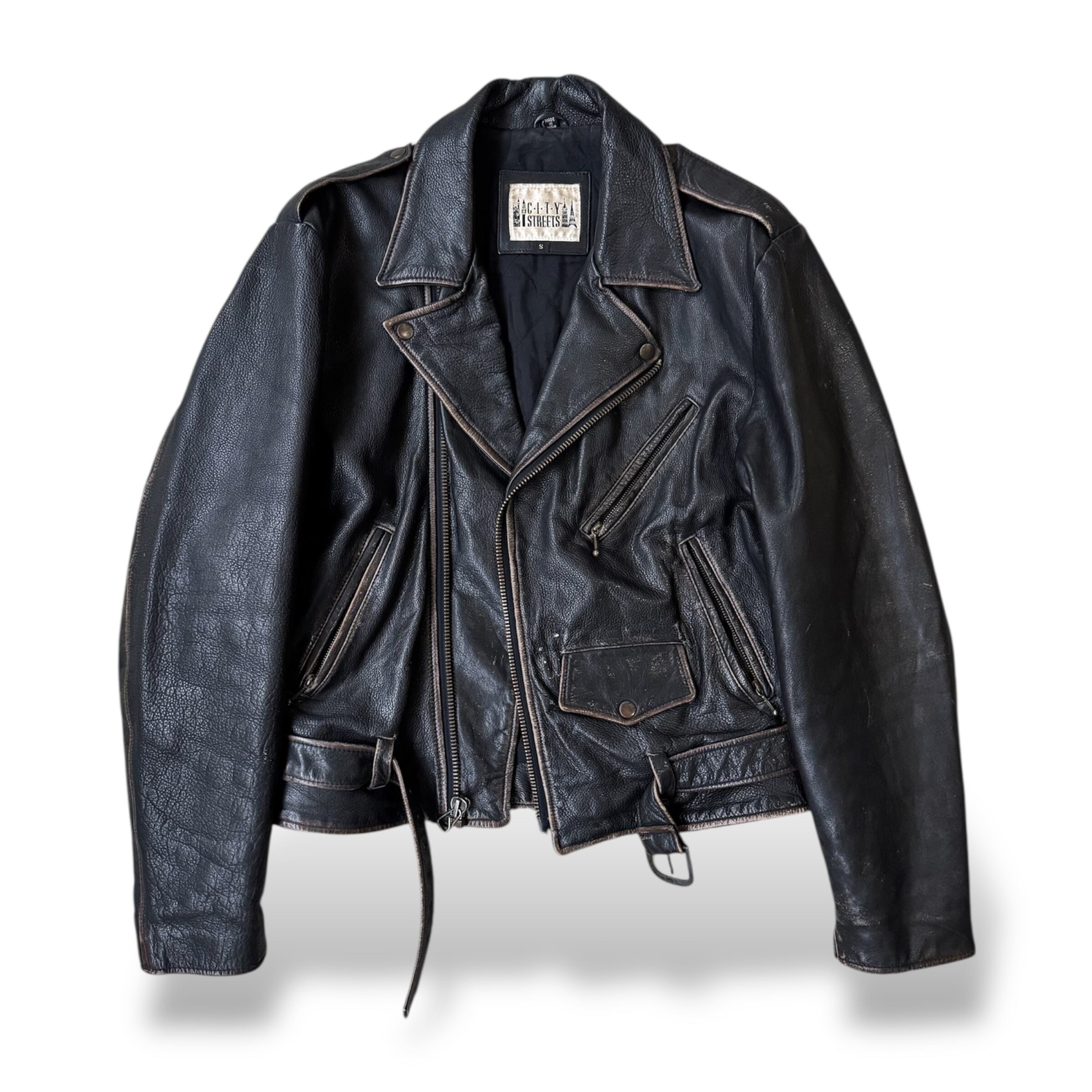 クラシックなダブルライダース、ジップポケット、ウエストベルト