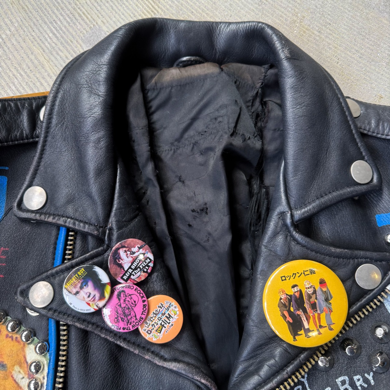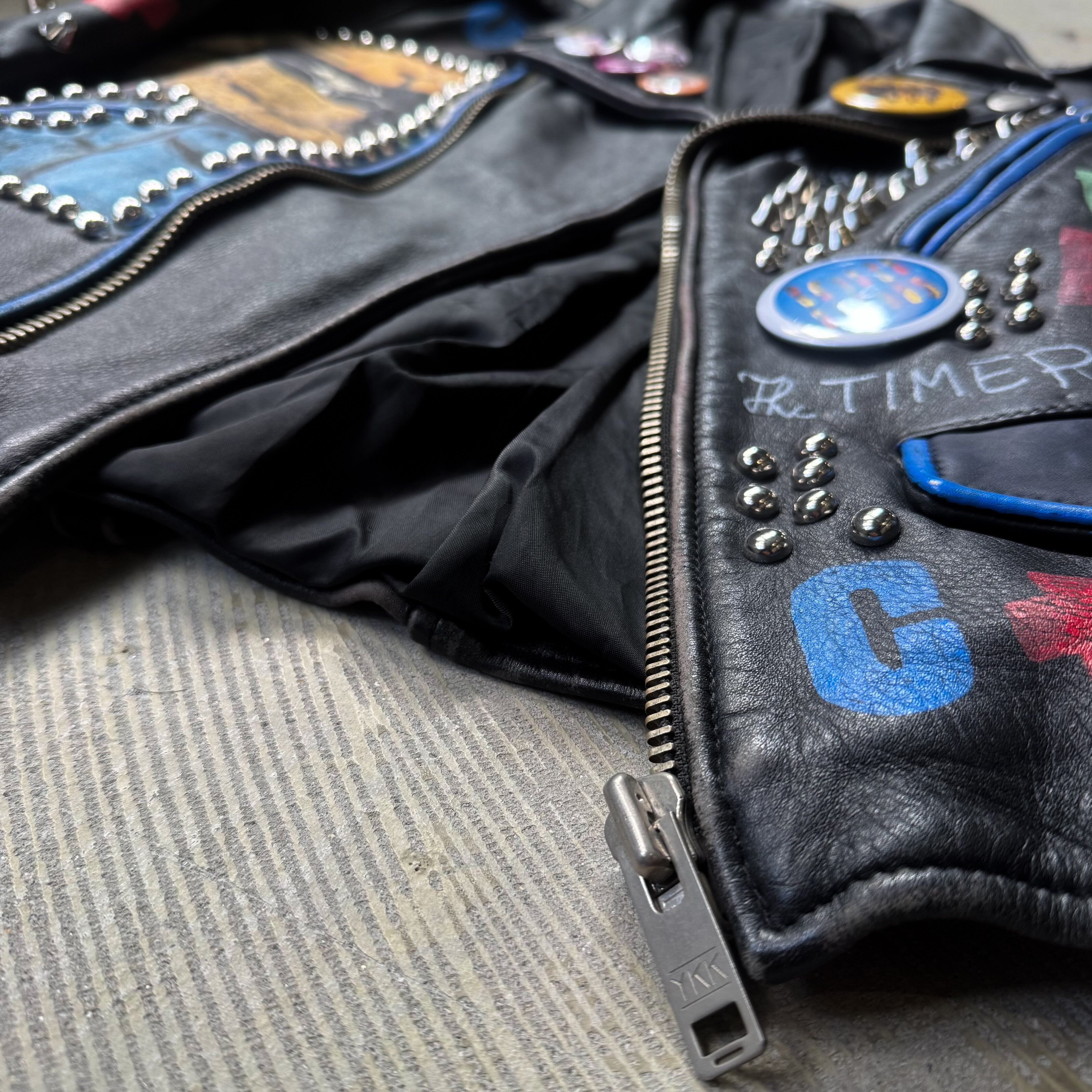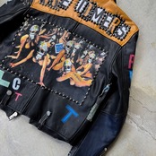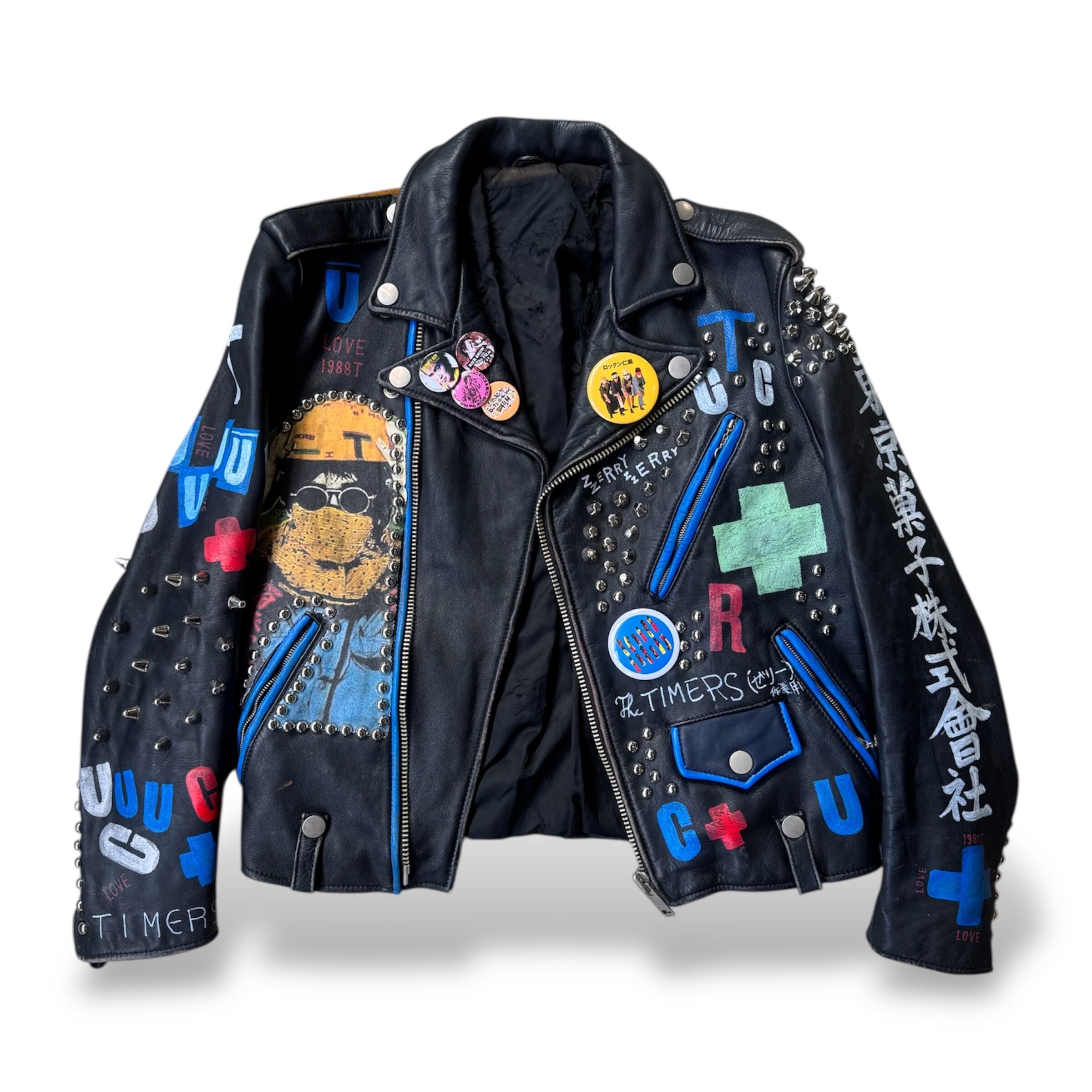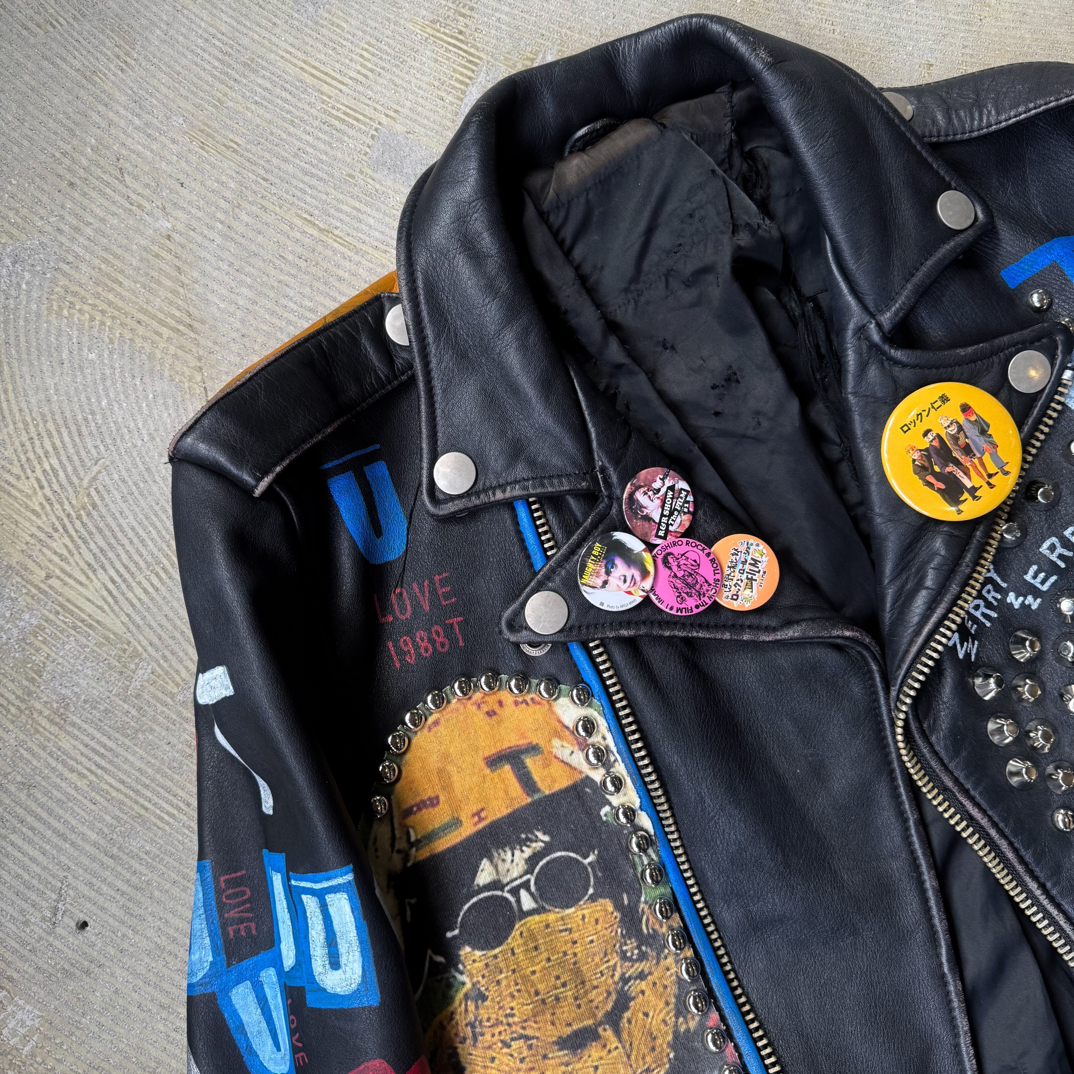 PAINT STUDDED CUSTOM LEATHER DOUBLE RIDERS JACKET / ペイント スタッズ 缶バッヂ カスタム レザー ダブル ライダース ジャケット 鋲ジャン パンク 忌野 清志郎