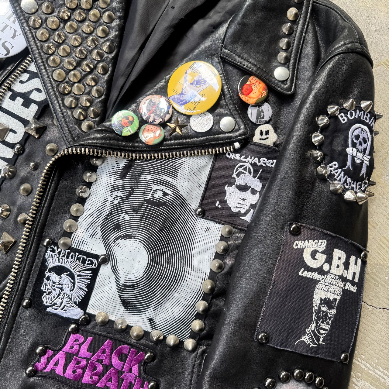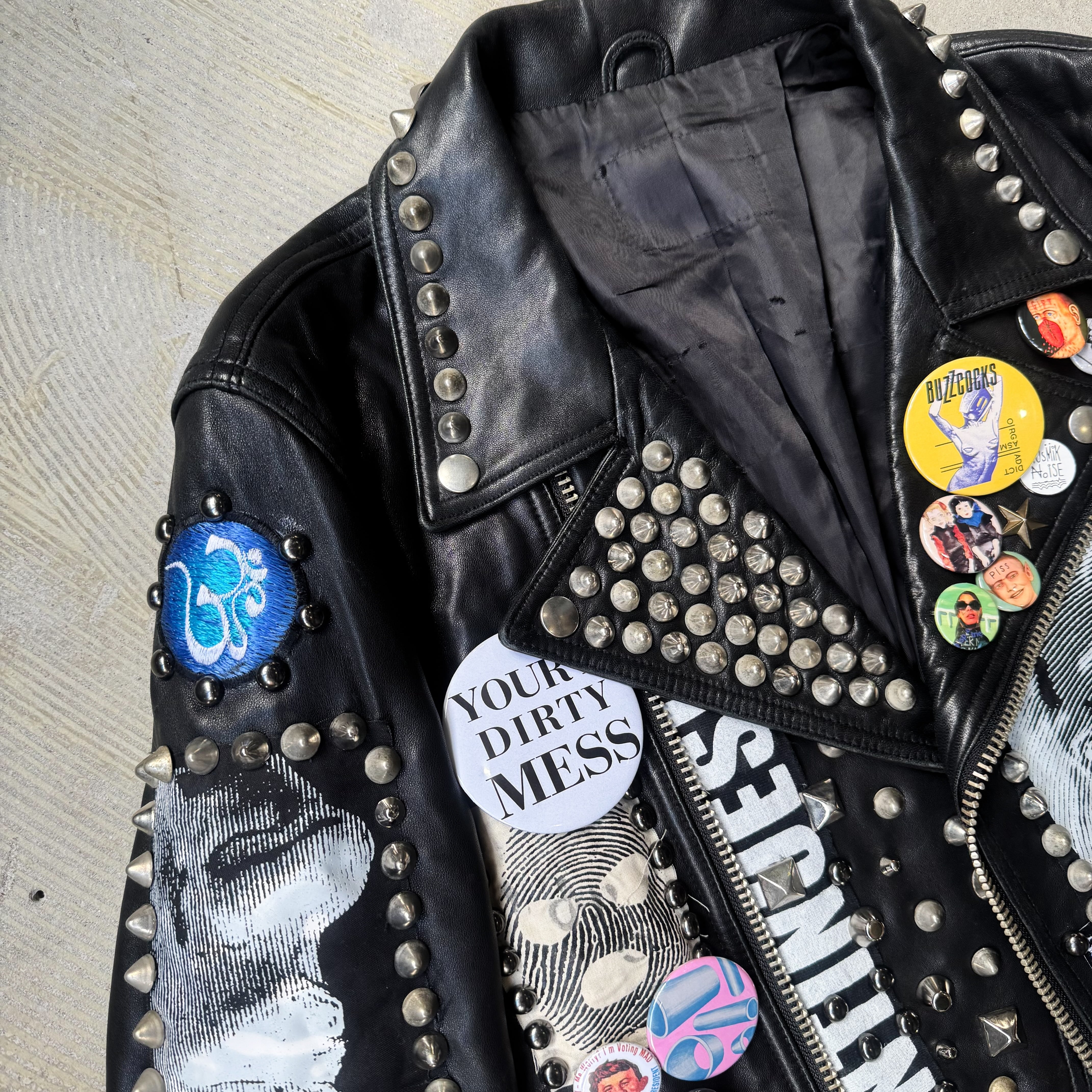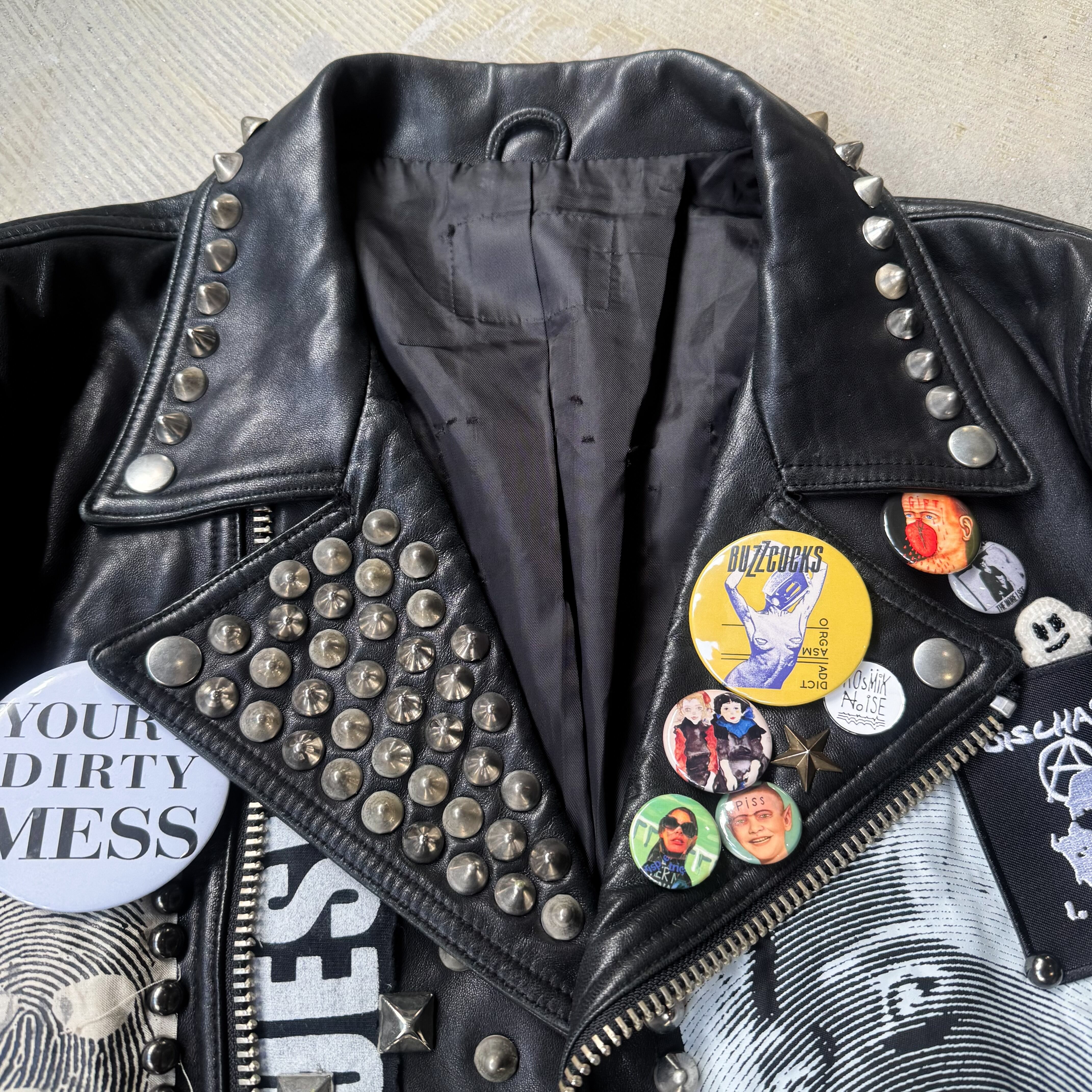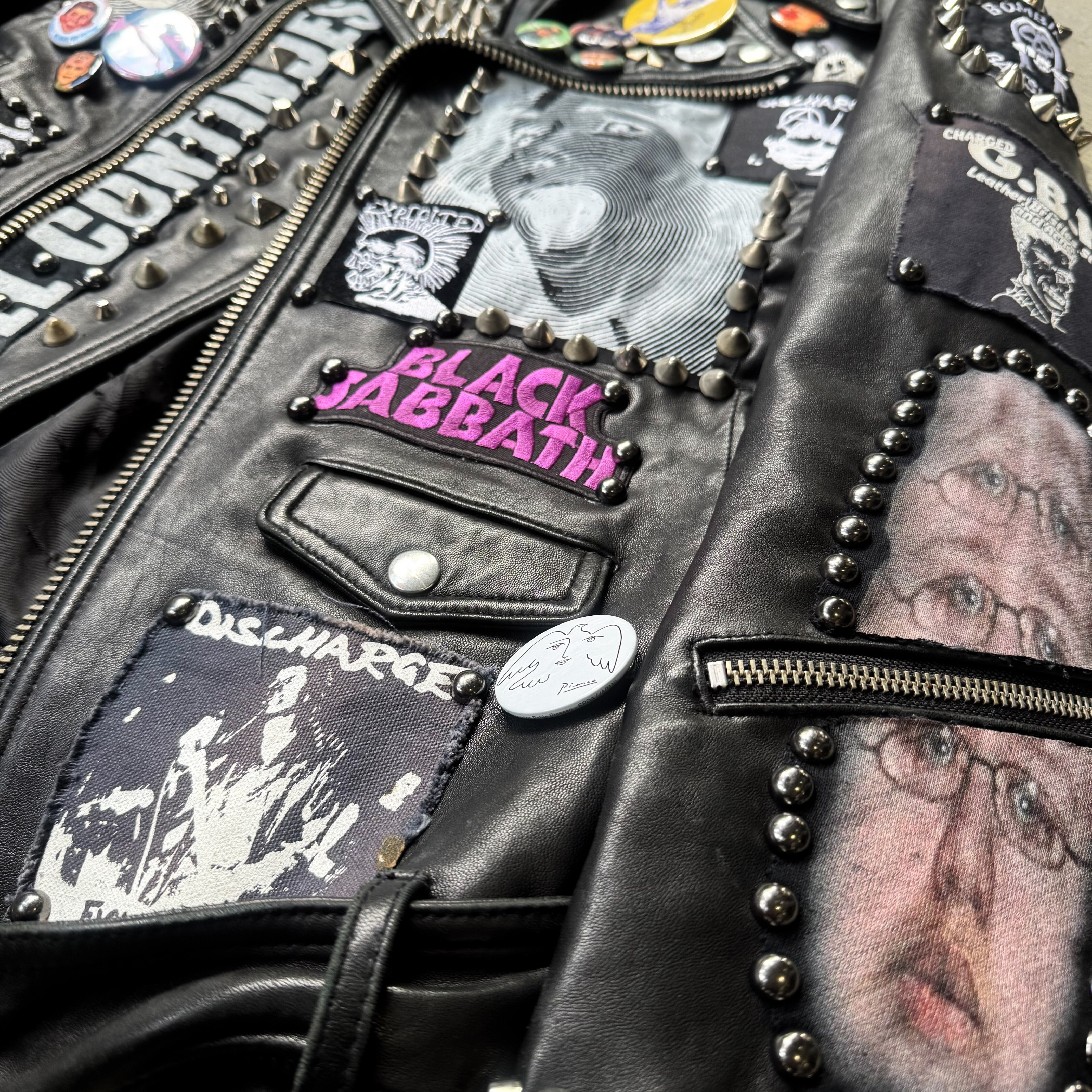 スタッズ、スパイク、缶バッヂ、ペイント、すべて手作業で施された、DIY精神の塊。