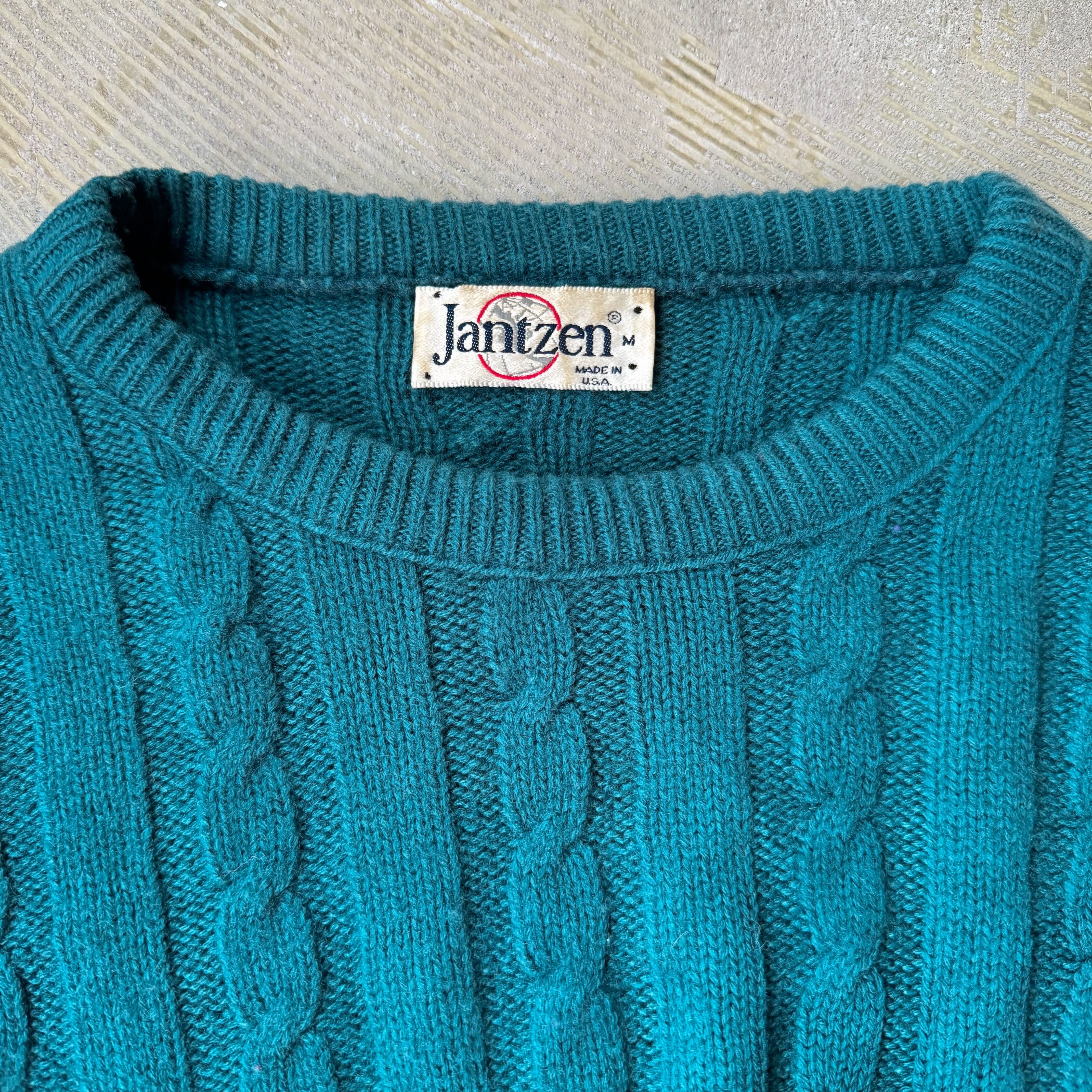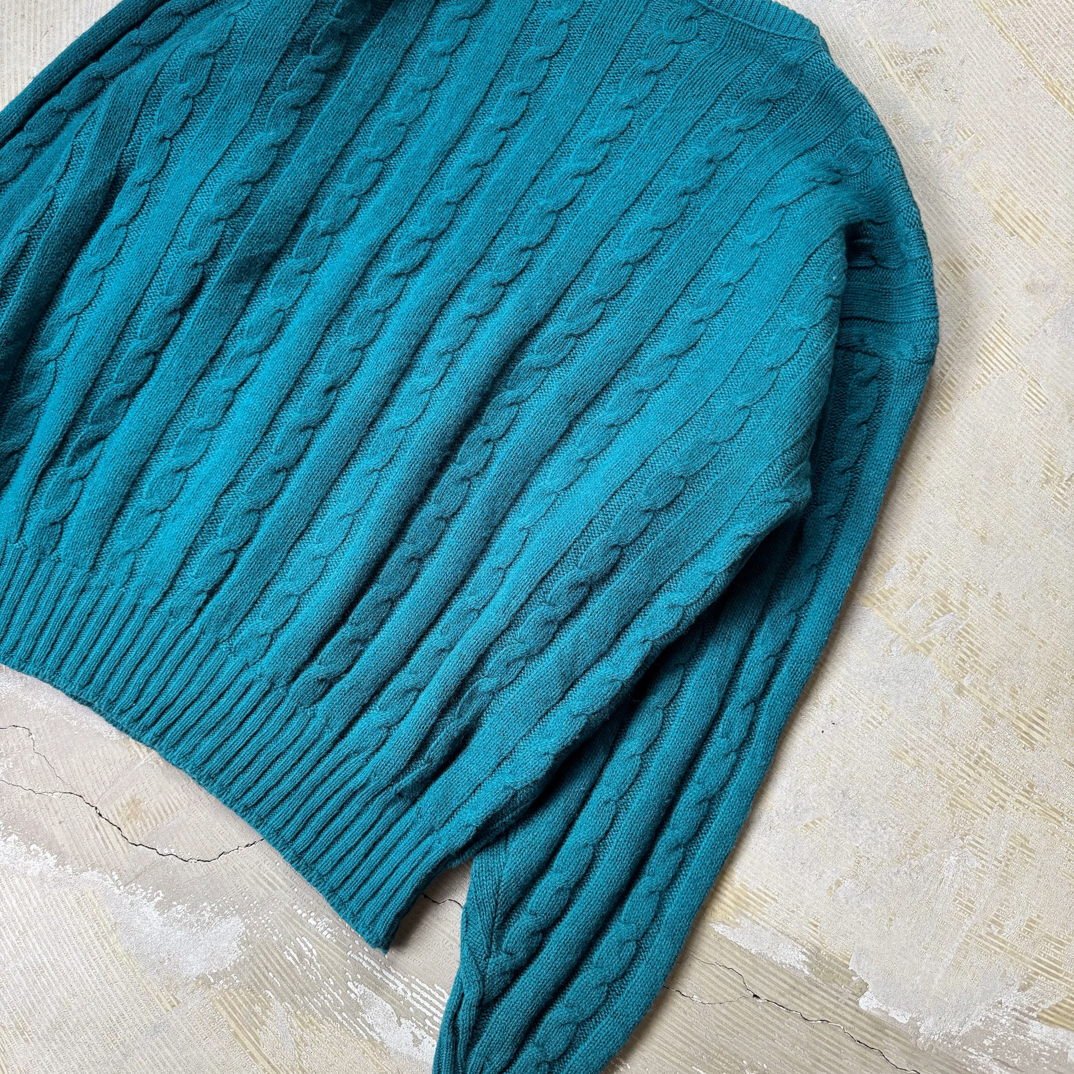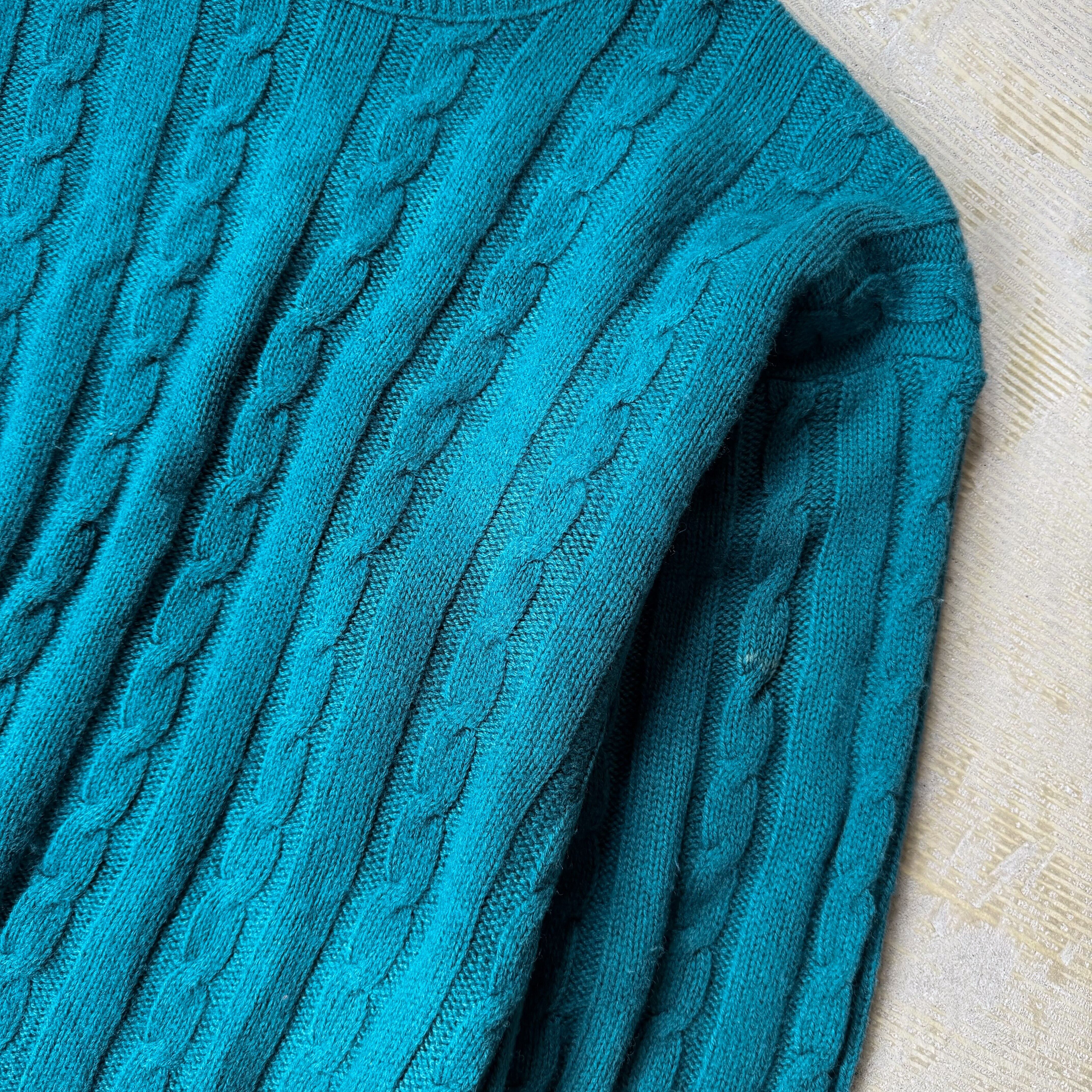 1980's VINTAGE TEAL COLOR KNIT SWEATER / MADE IN USA / 80年代 ヴィンテージ カラー ニット セーター アメリカ製