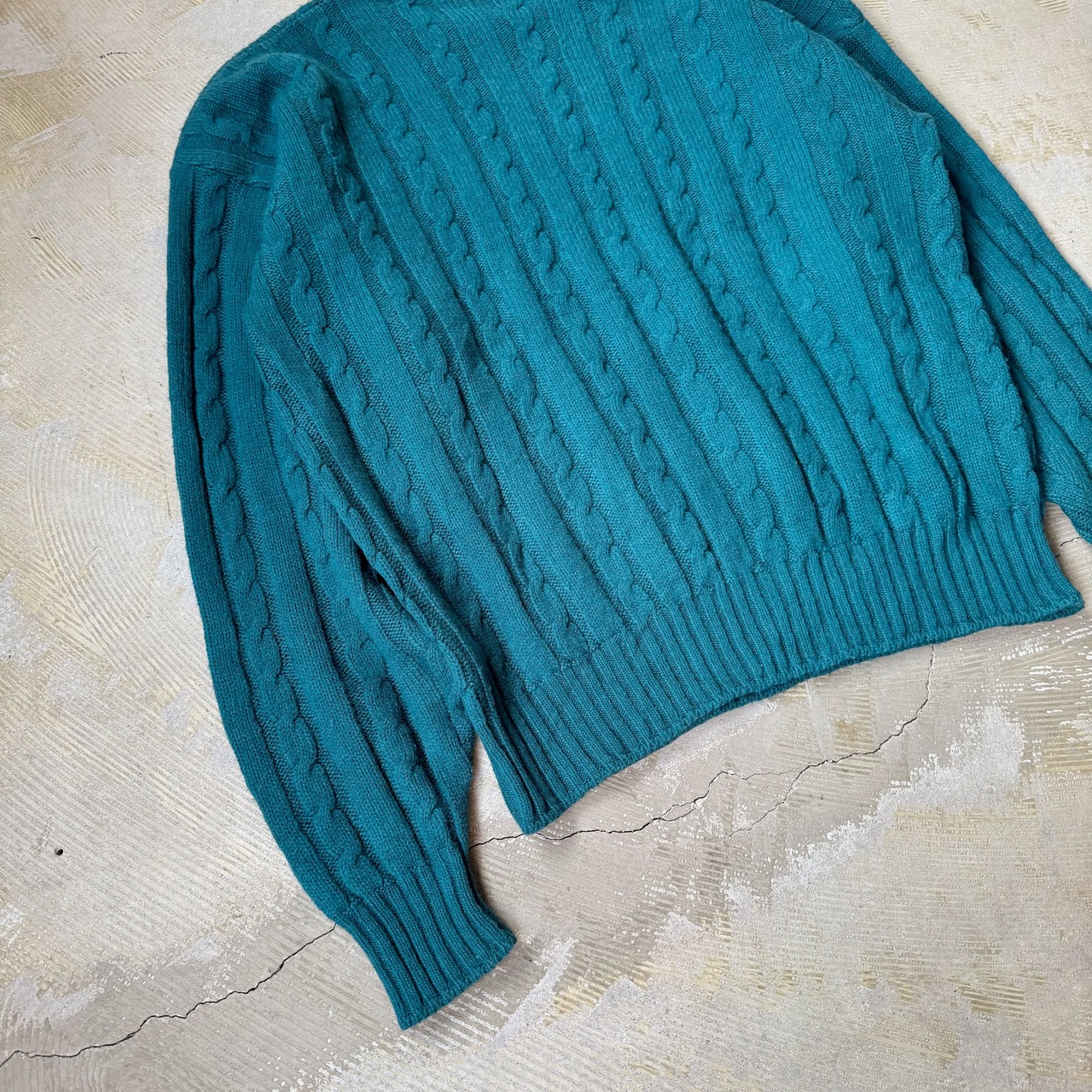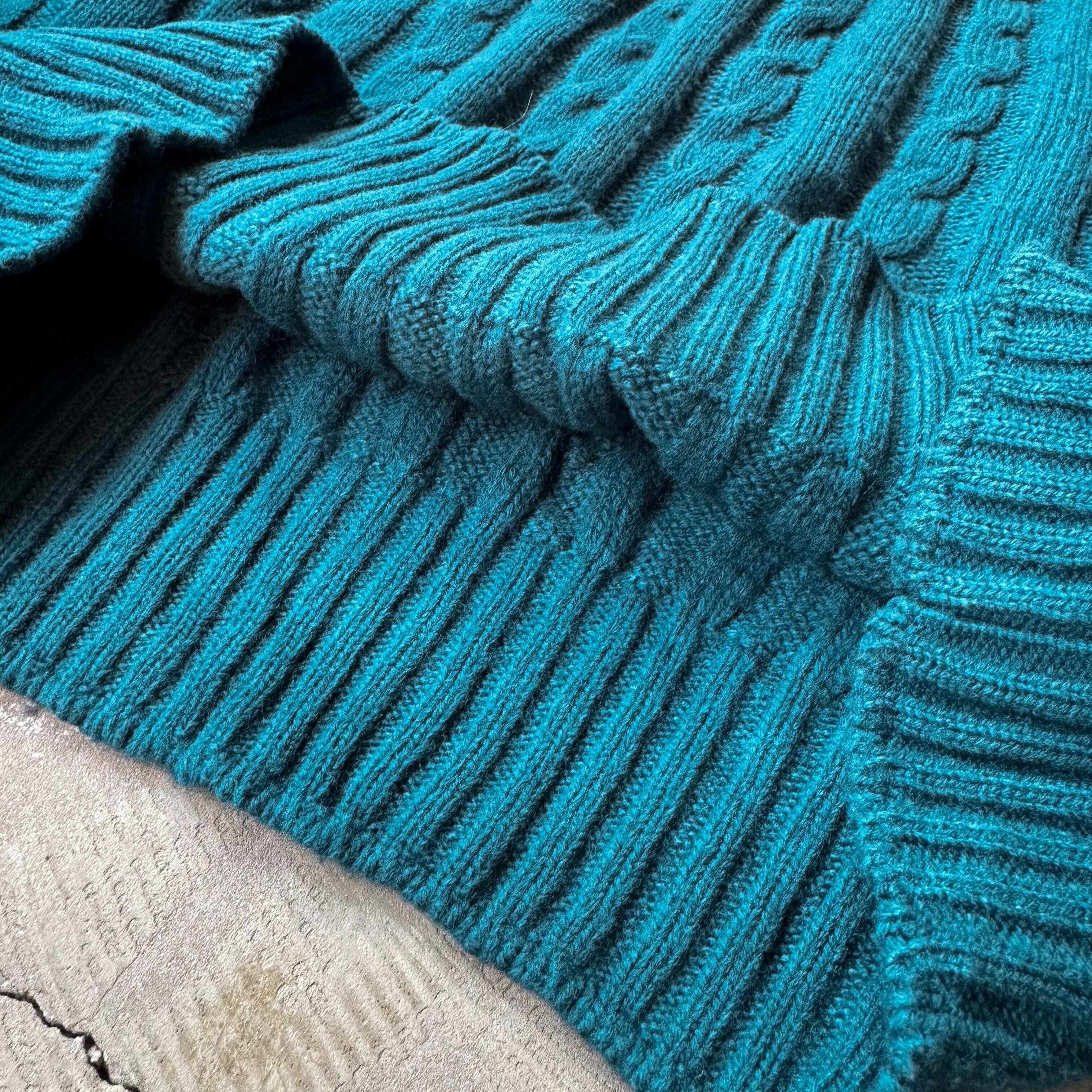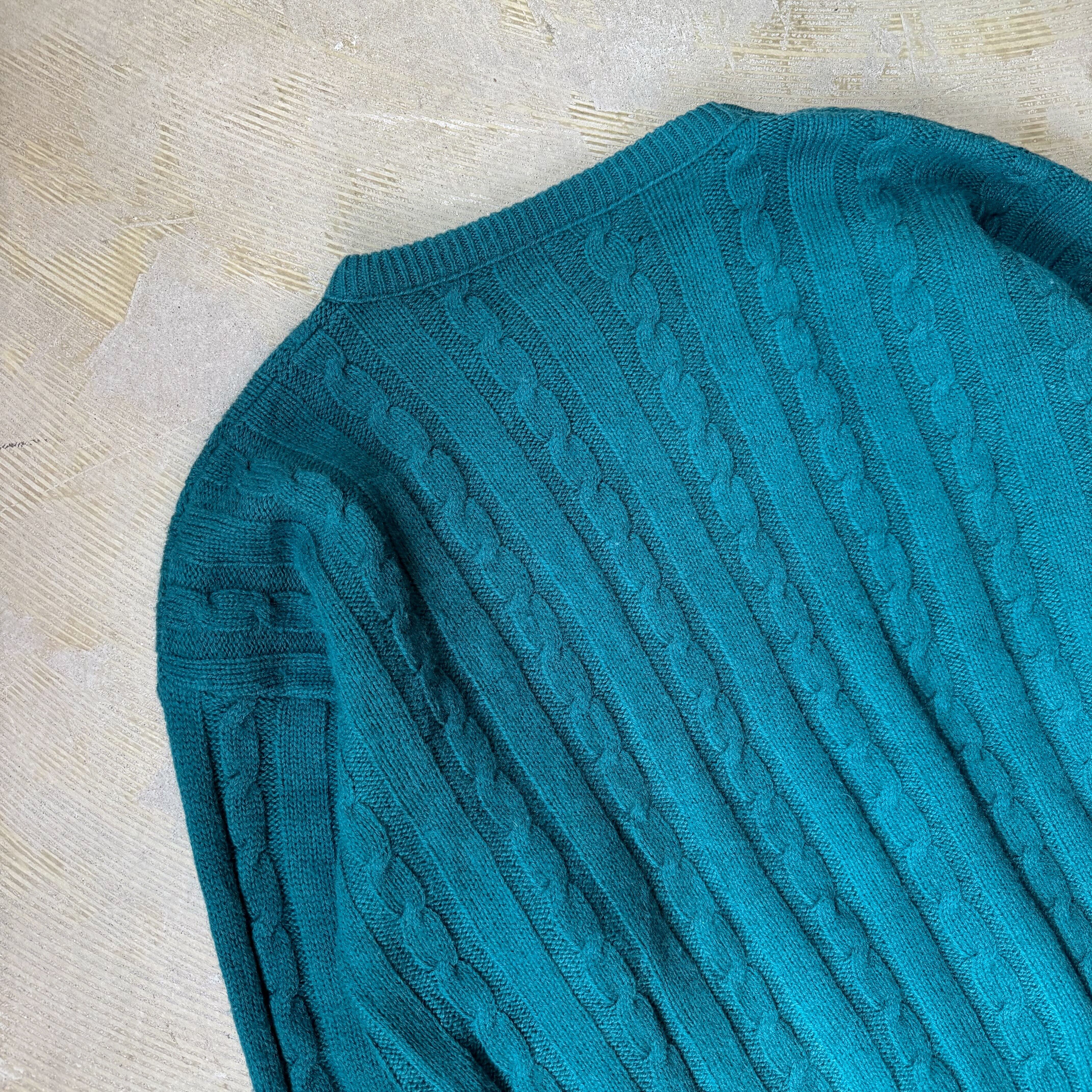 1980's VINTAGE TEAL COLOR KNIT SWEATER / MADE IN USA / 80年代 ヴィンテージ カラー ニット セーター アメリカ製