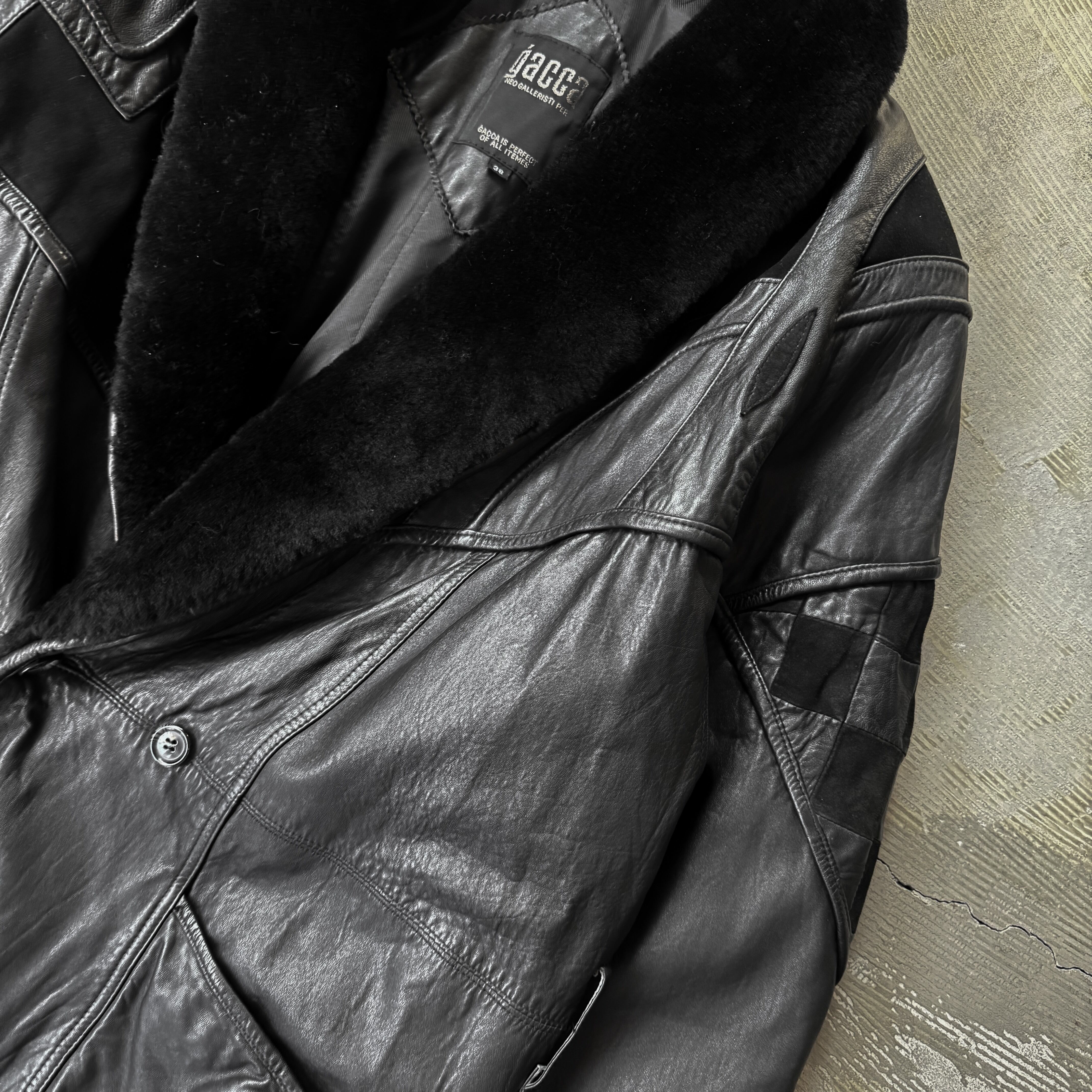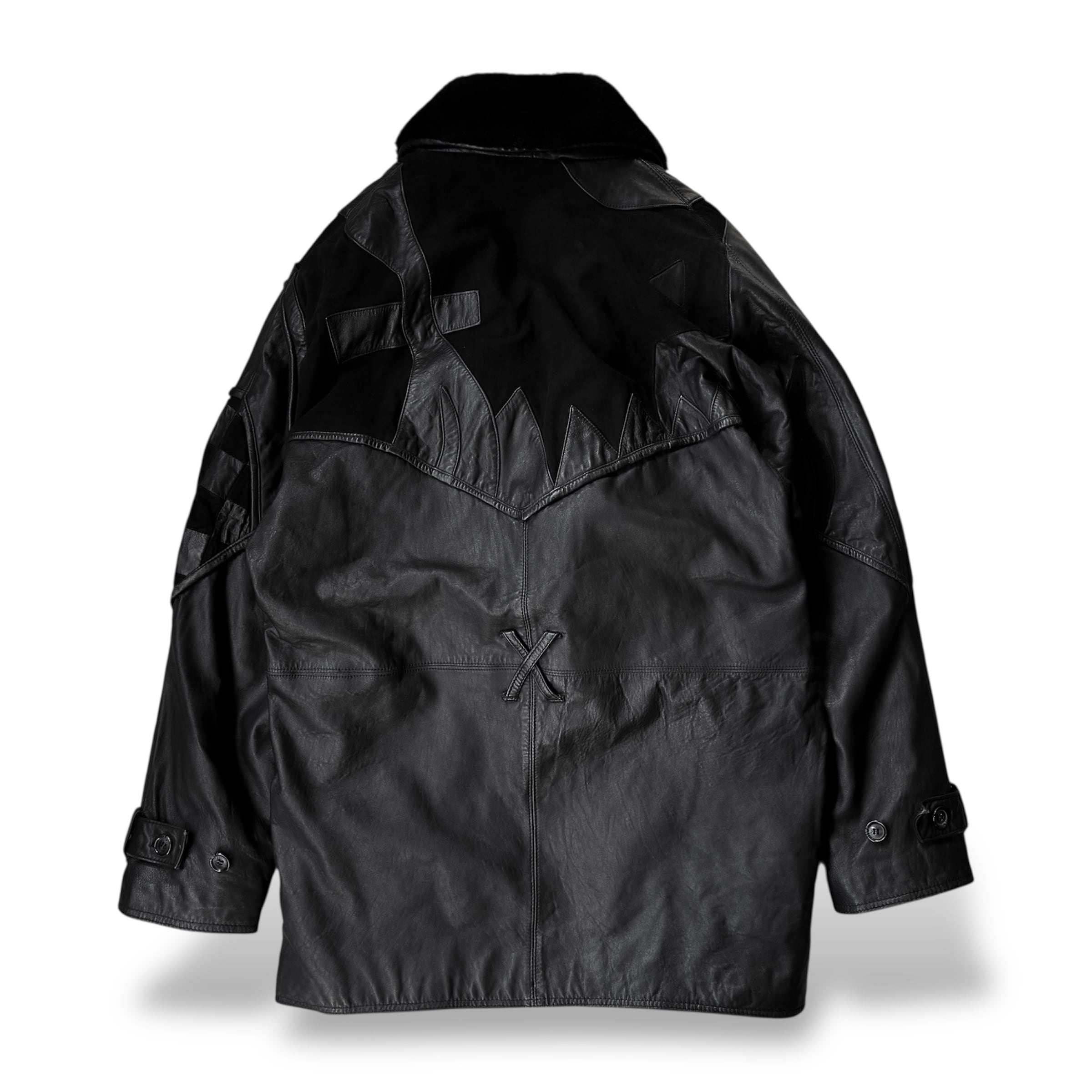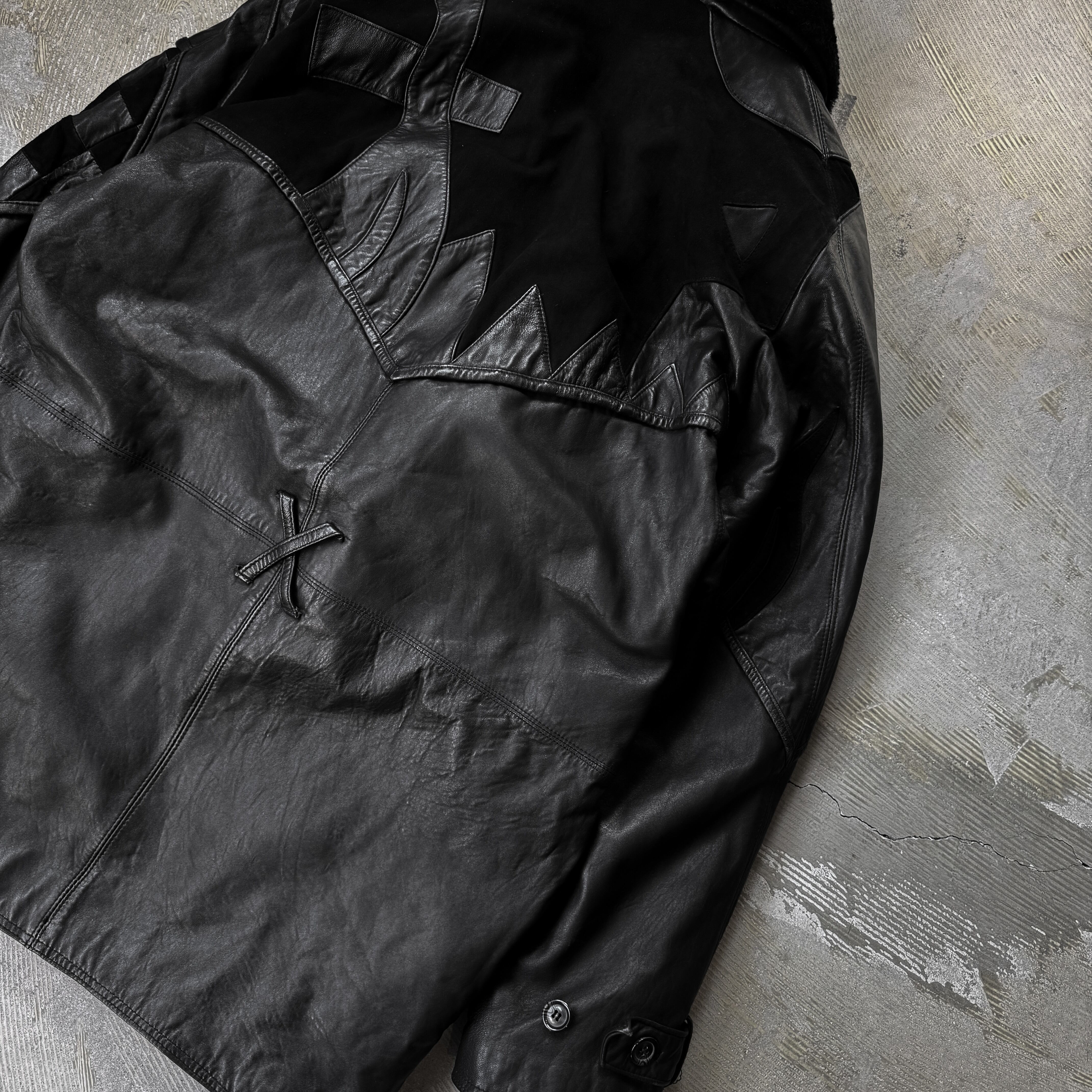 1990's VINTAGE LAMB LEATHER FUR COLLAR SWITCHED JACKET / 90年代 ヴィンテージ ラム レザー スウェード ファー ジャケット コート