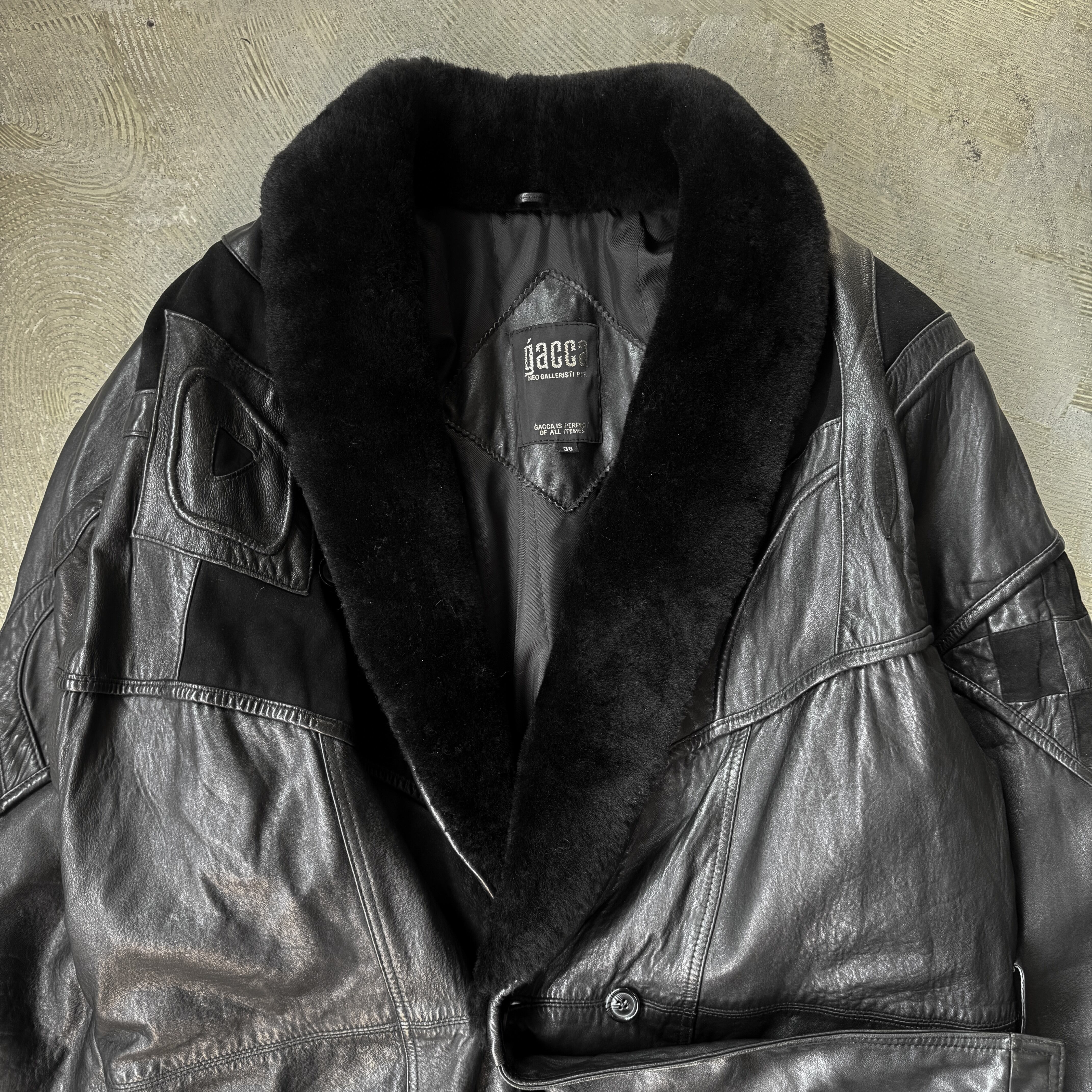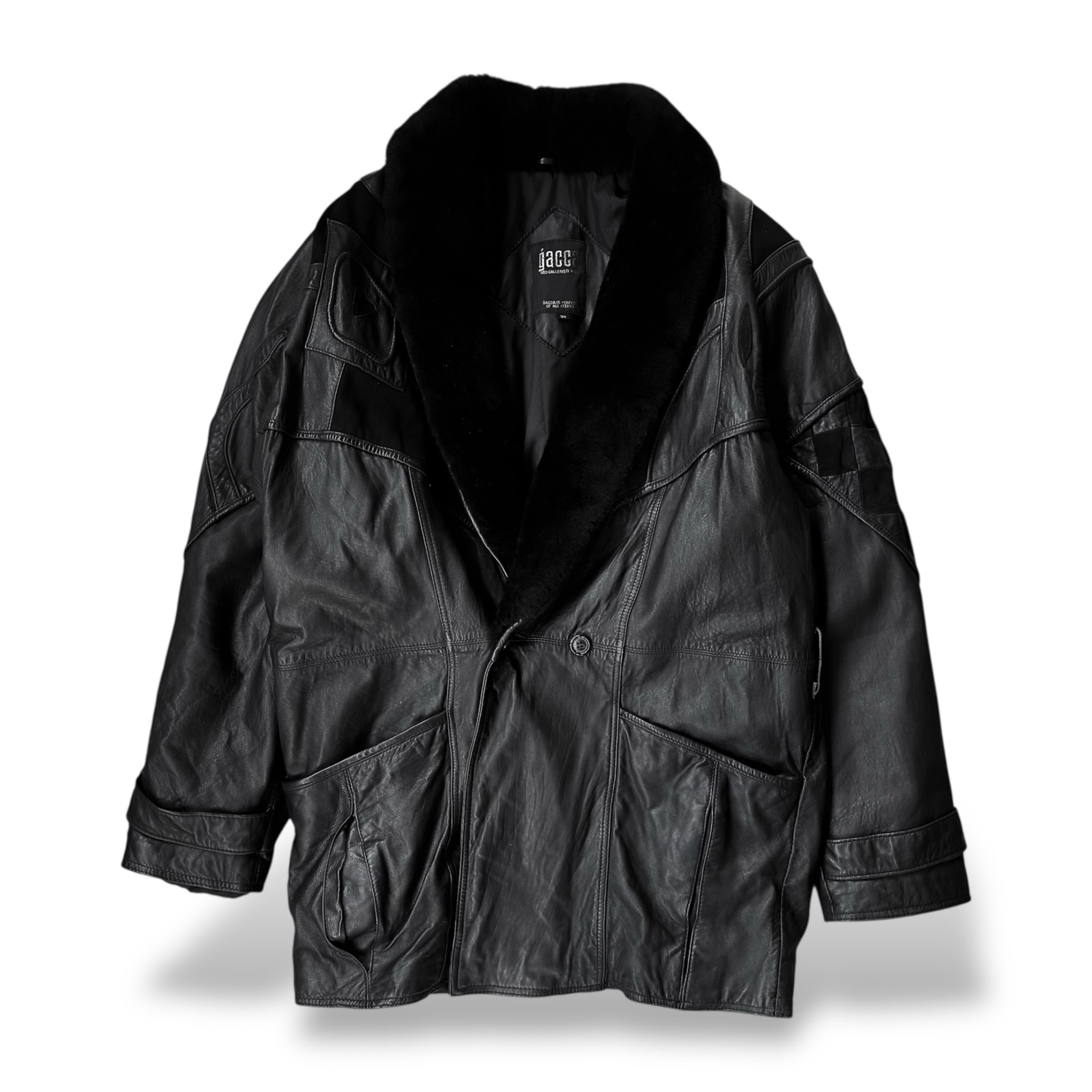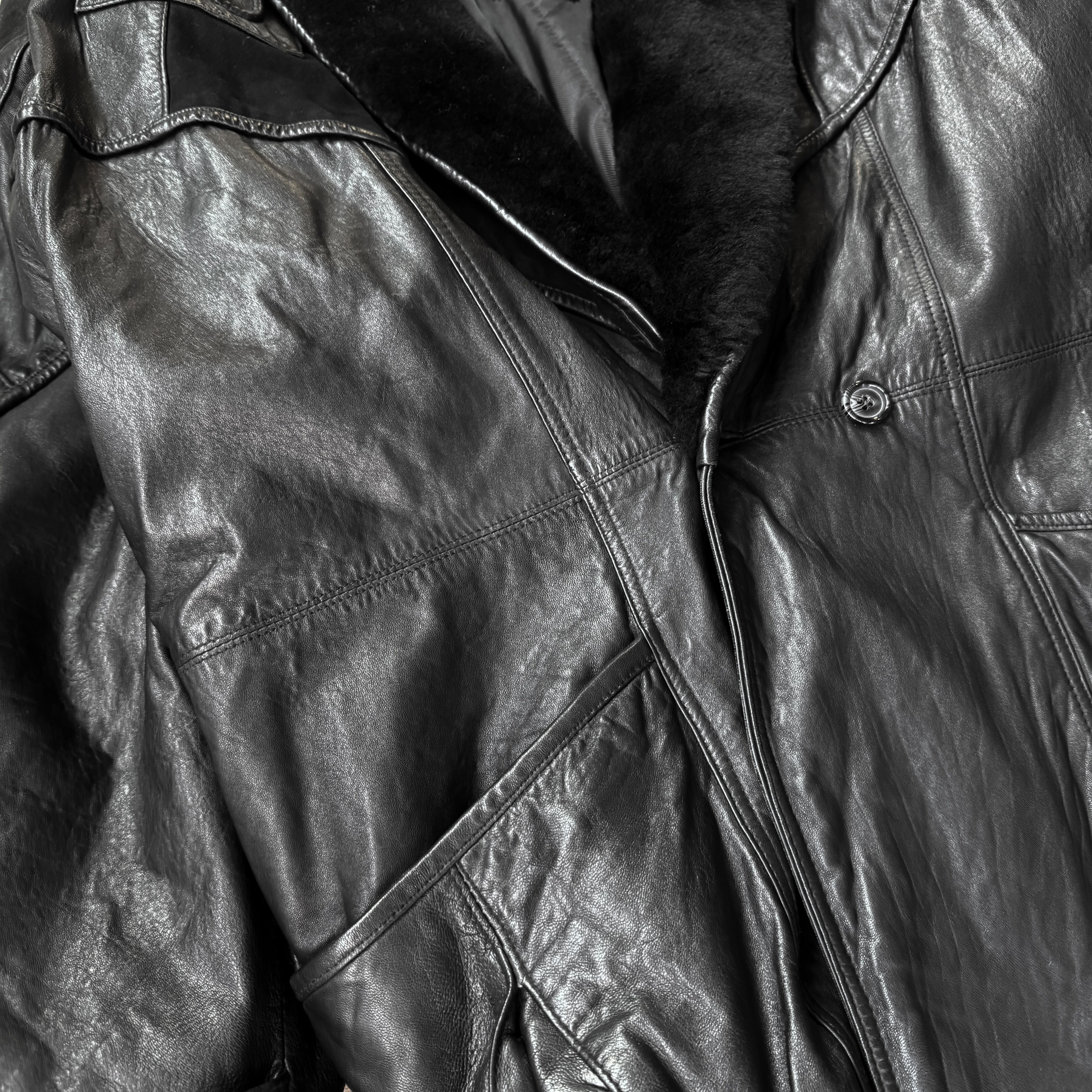 1990's VINTAGE LAMB LEATHER FUR COLLAR SWITCHED JACKET / 90年代 ヴィンテージ ラム レザー スウェード ファー ジャケット コート