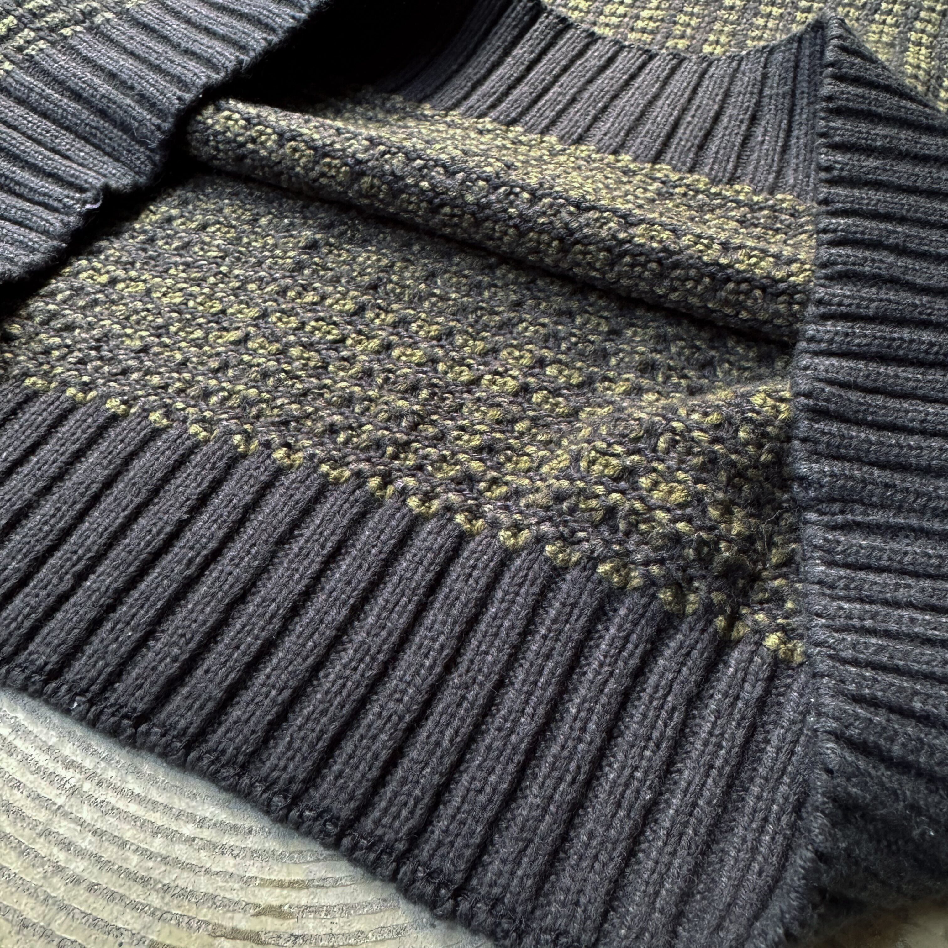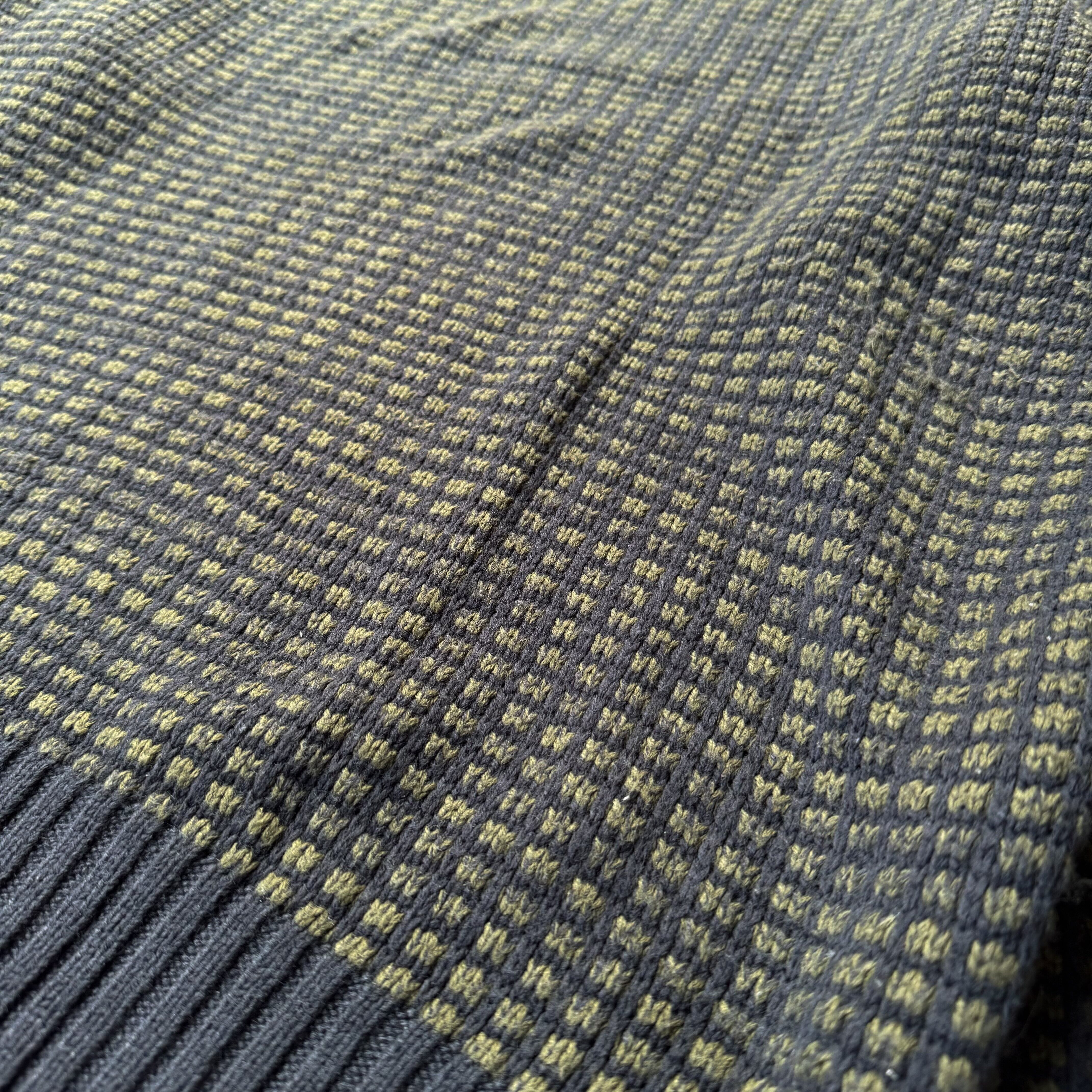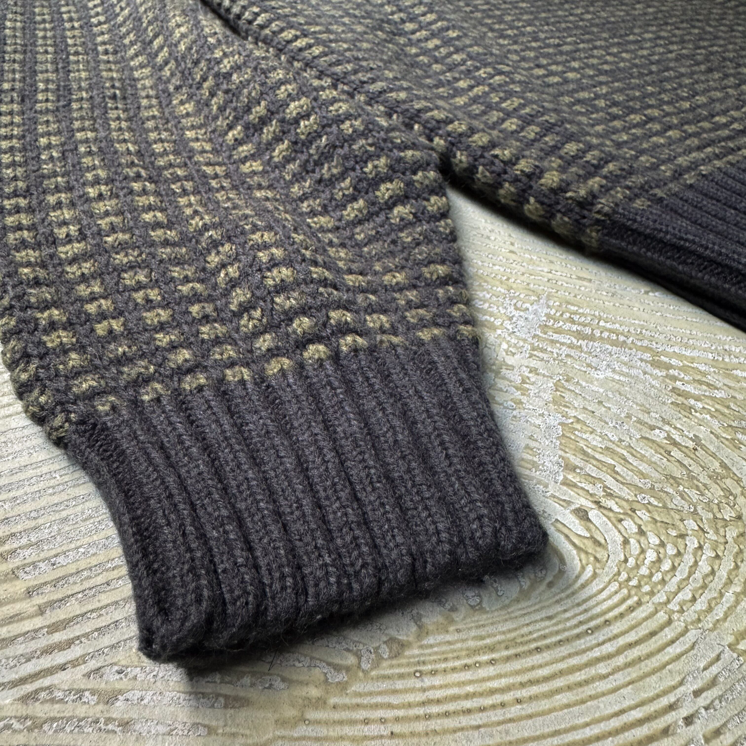 ・チェック調の編地が映える、ミニマルで奥行きのある一枚。