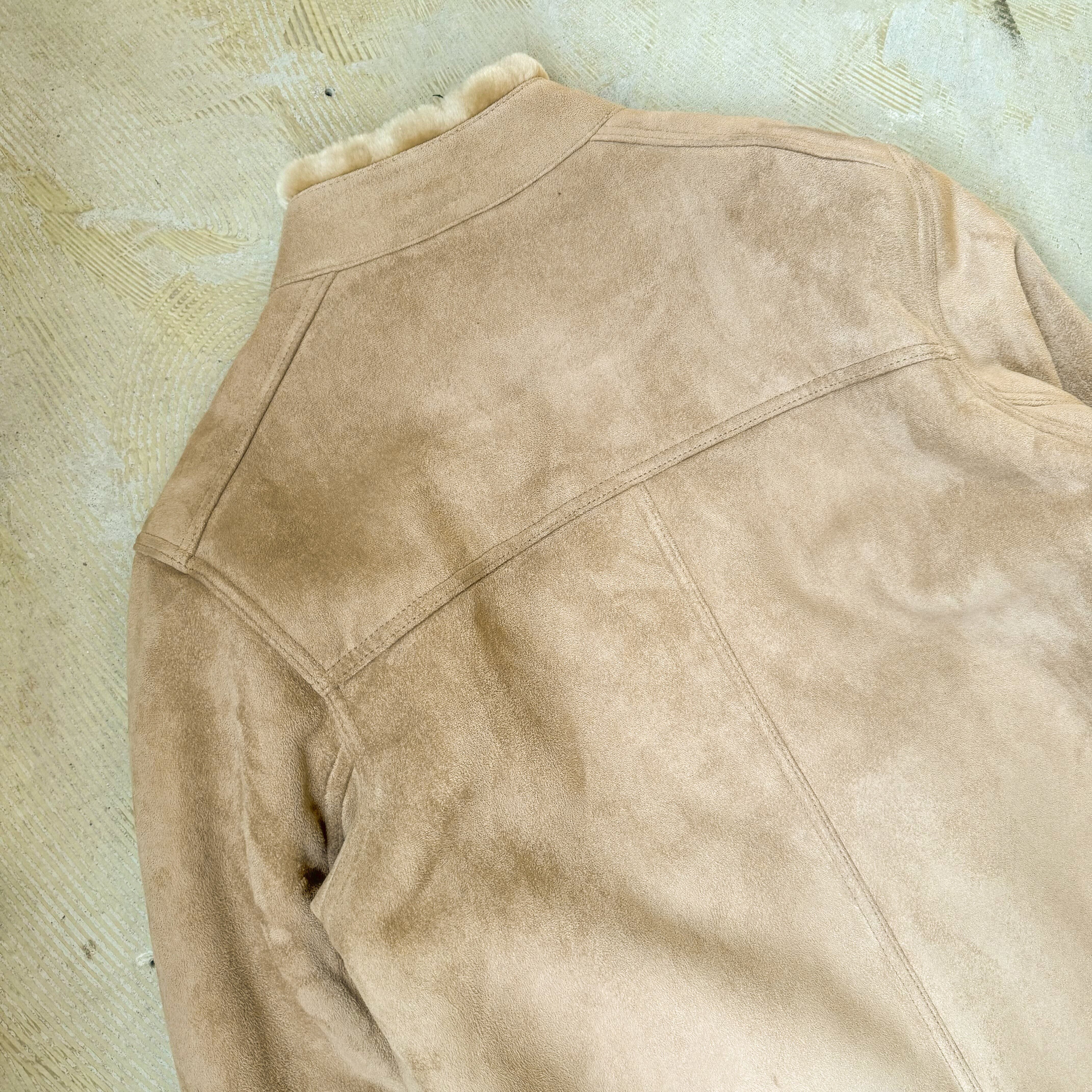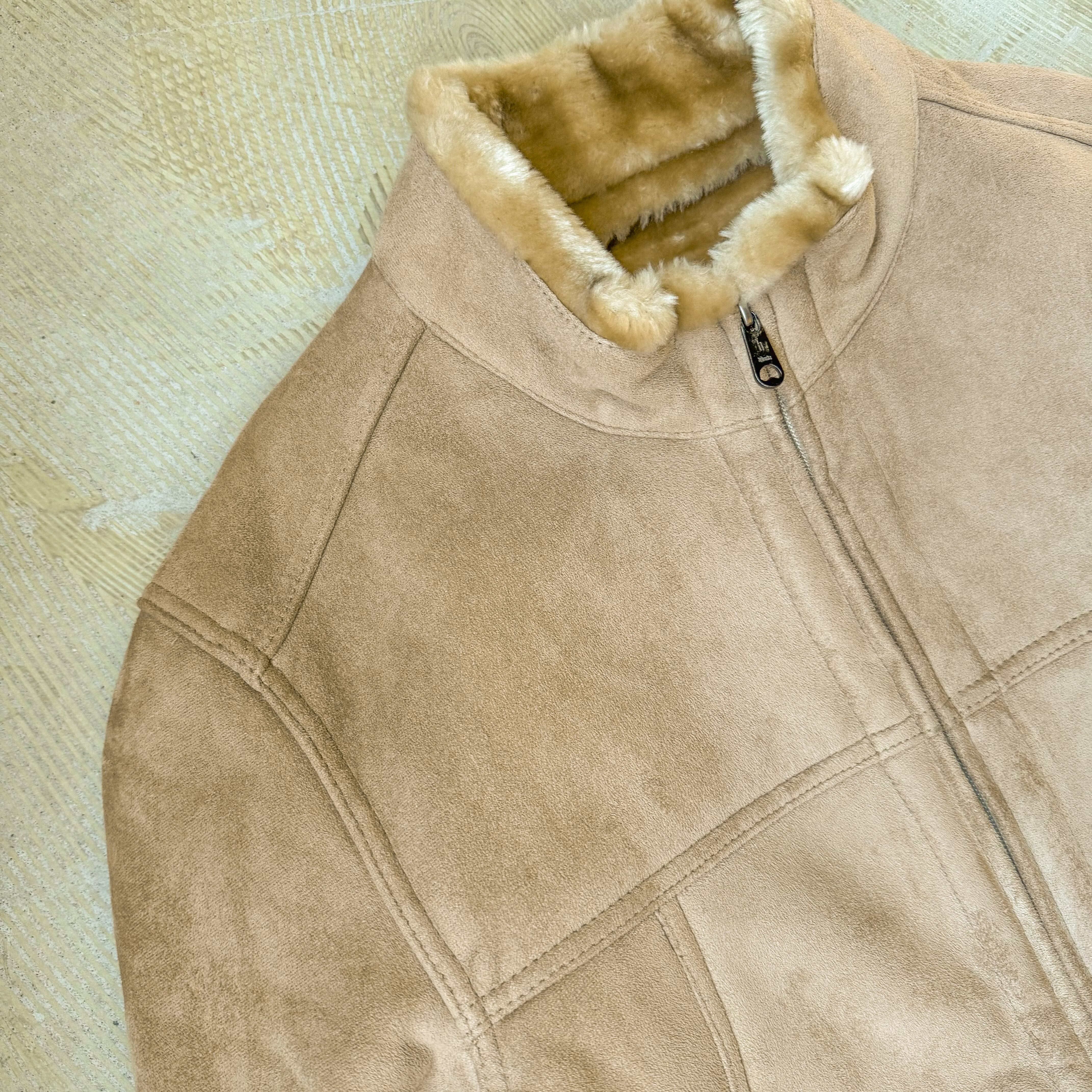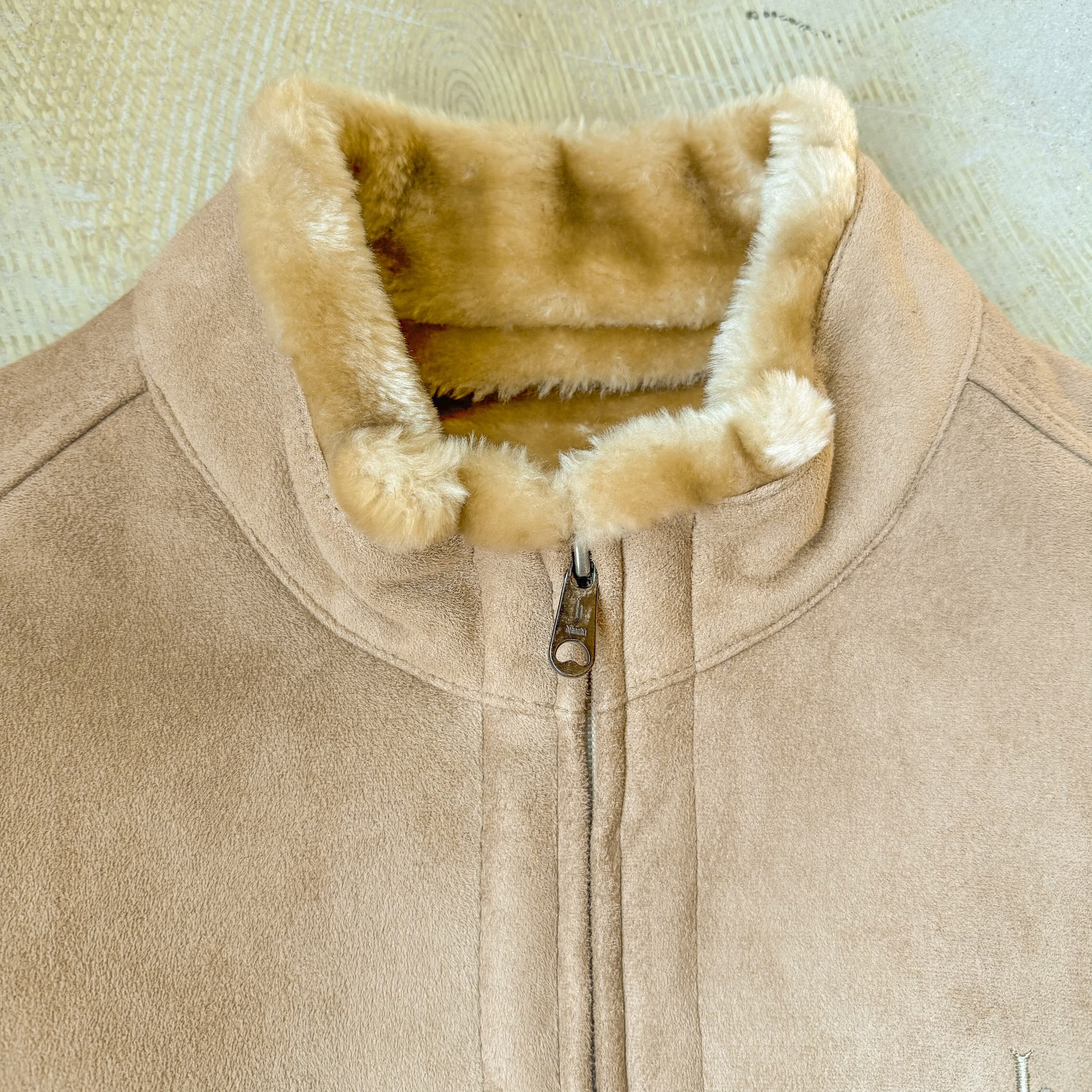 1990's VINTAGE FAUX MOUTON ZIP UP JACKET / 90年代 ヴィンテージ ムートン スウェード ファー ボア ジップ アップ ジャケット