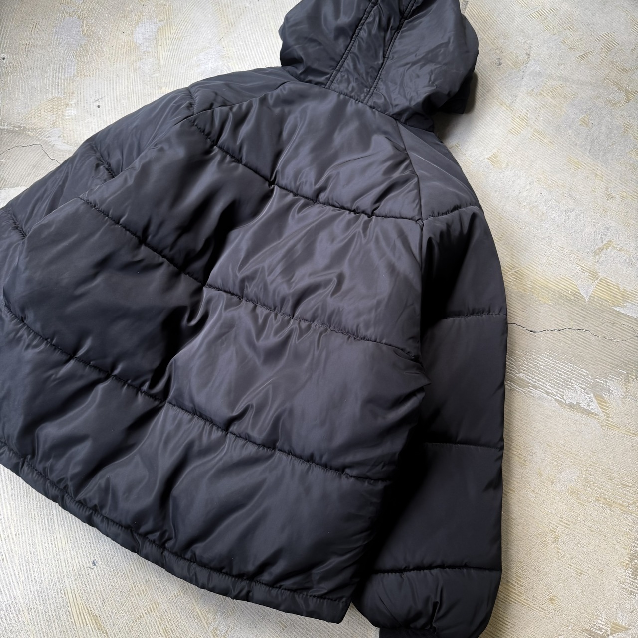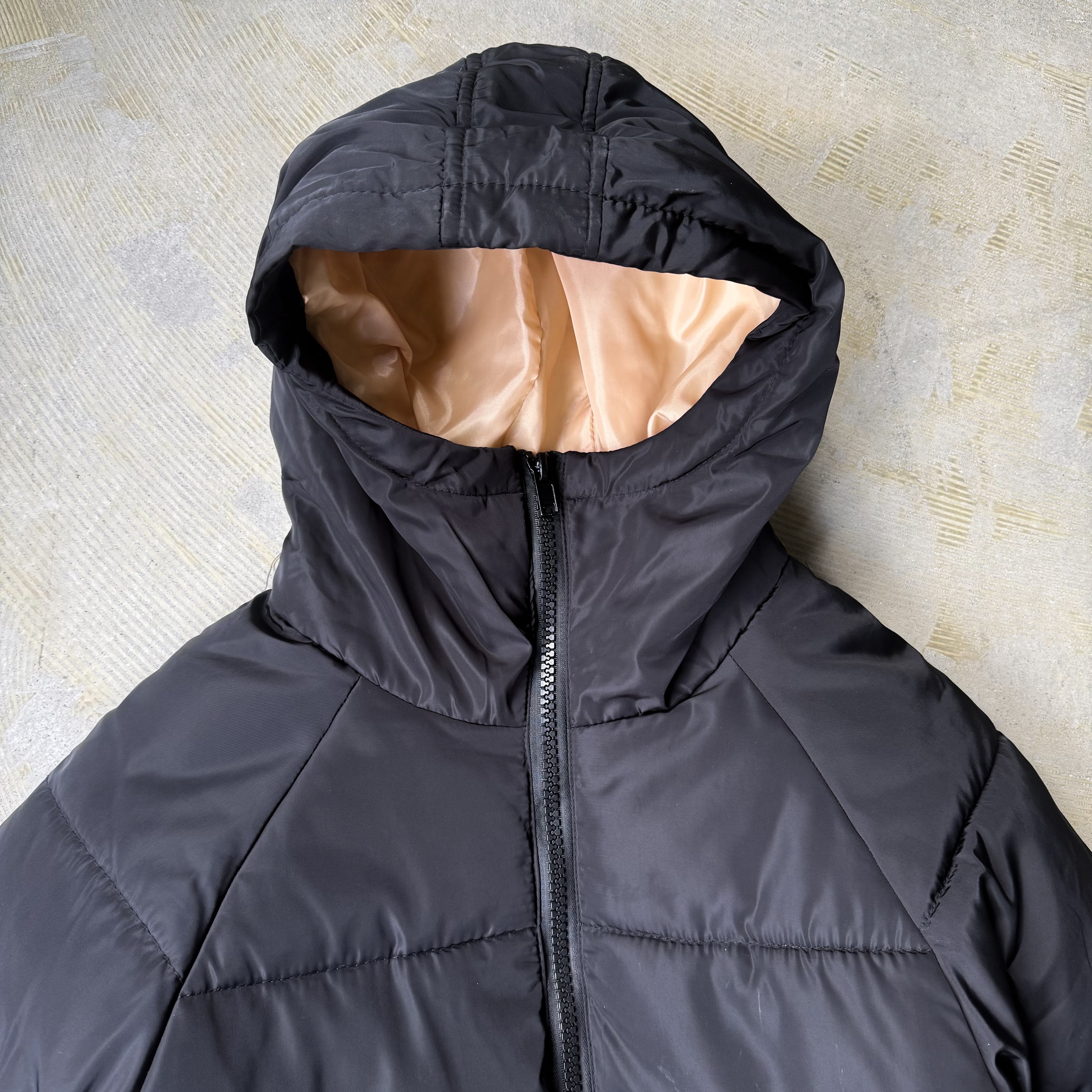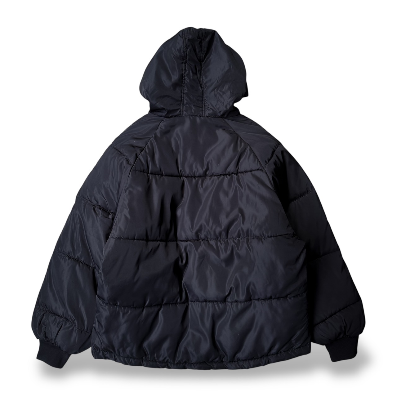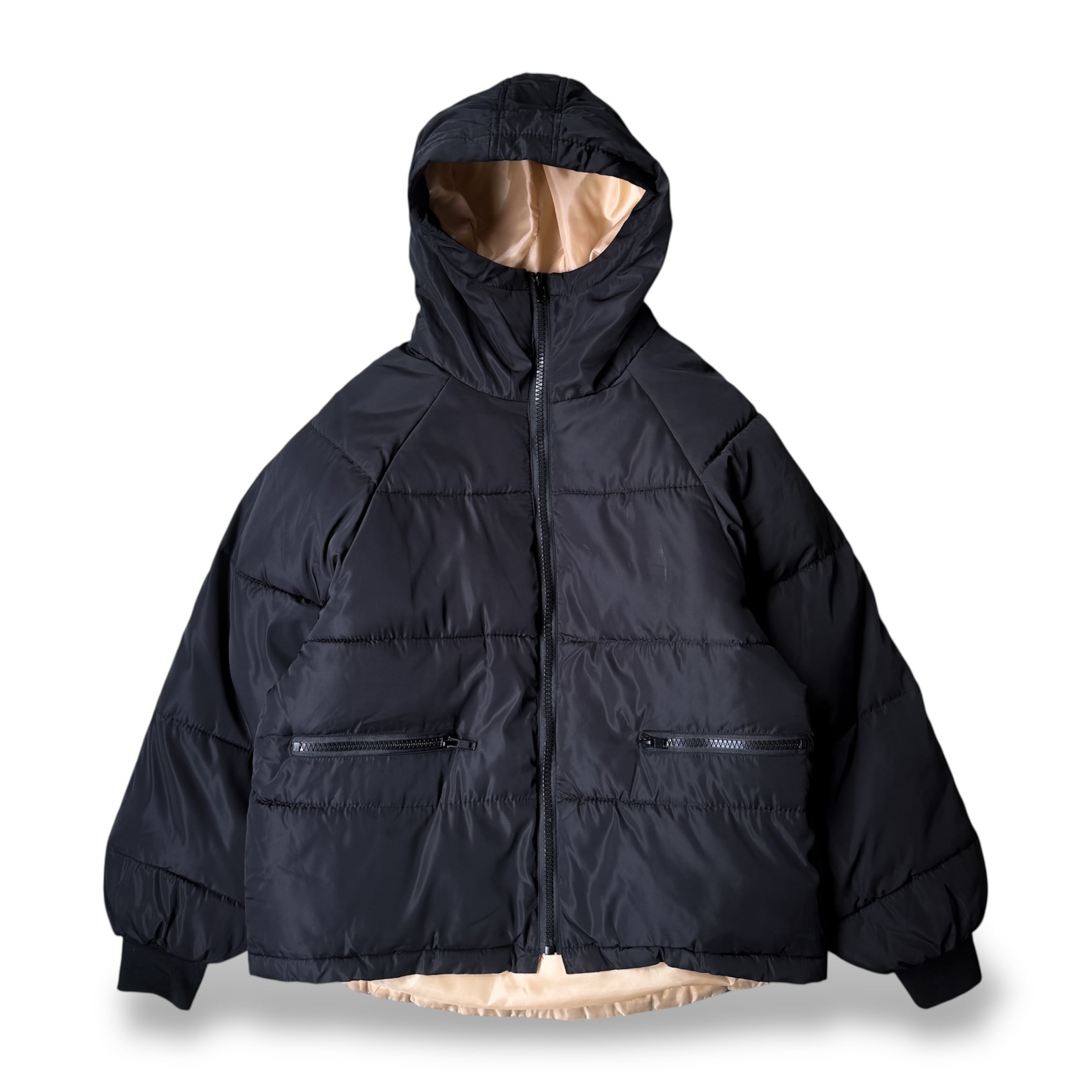BLACK COLOR PADDING HODDIE ZIP UP JACKET / 中綿 ジップ アップ フード ジャケット