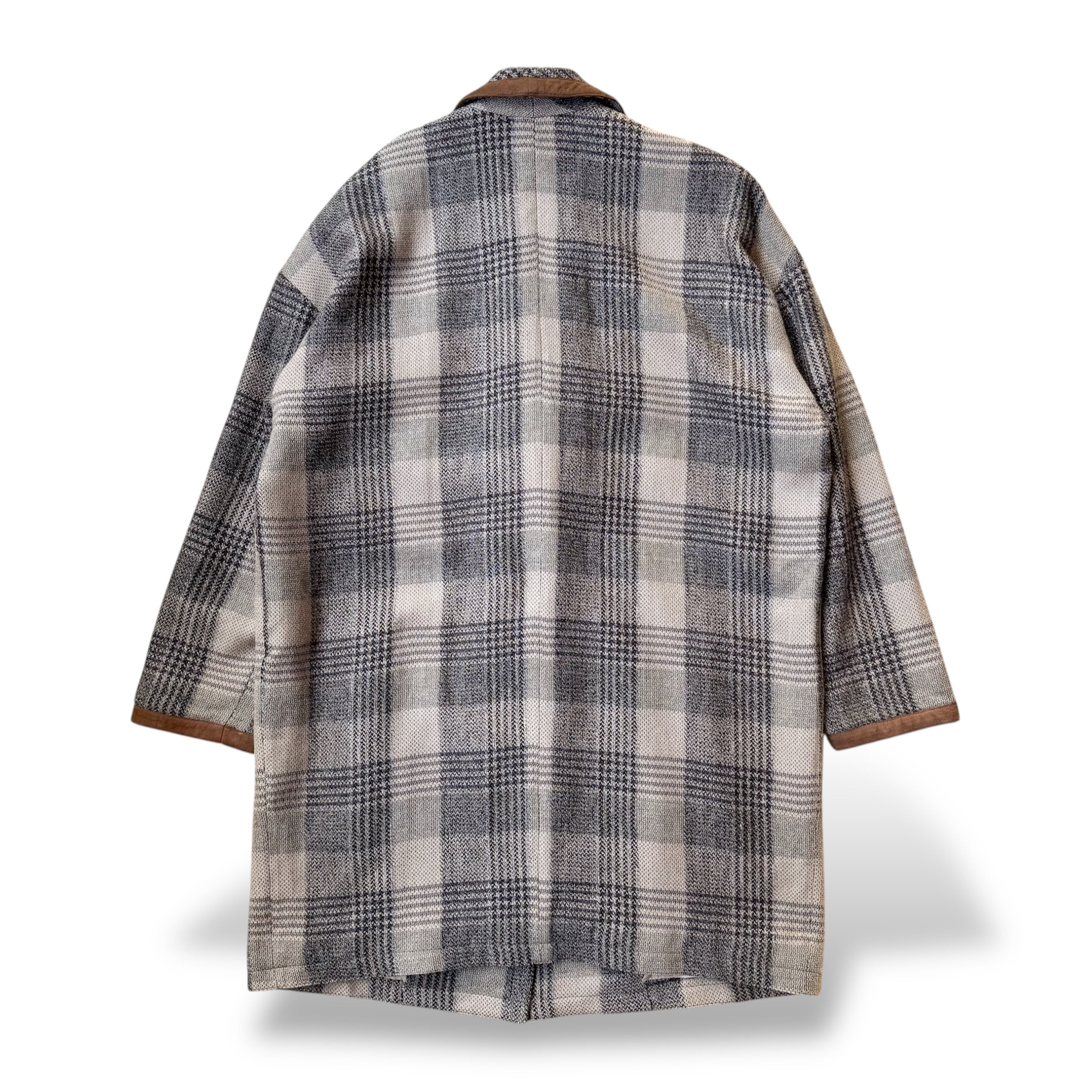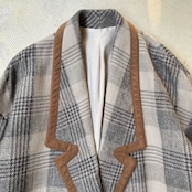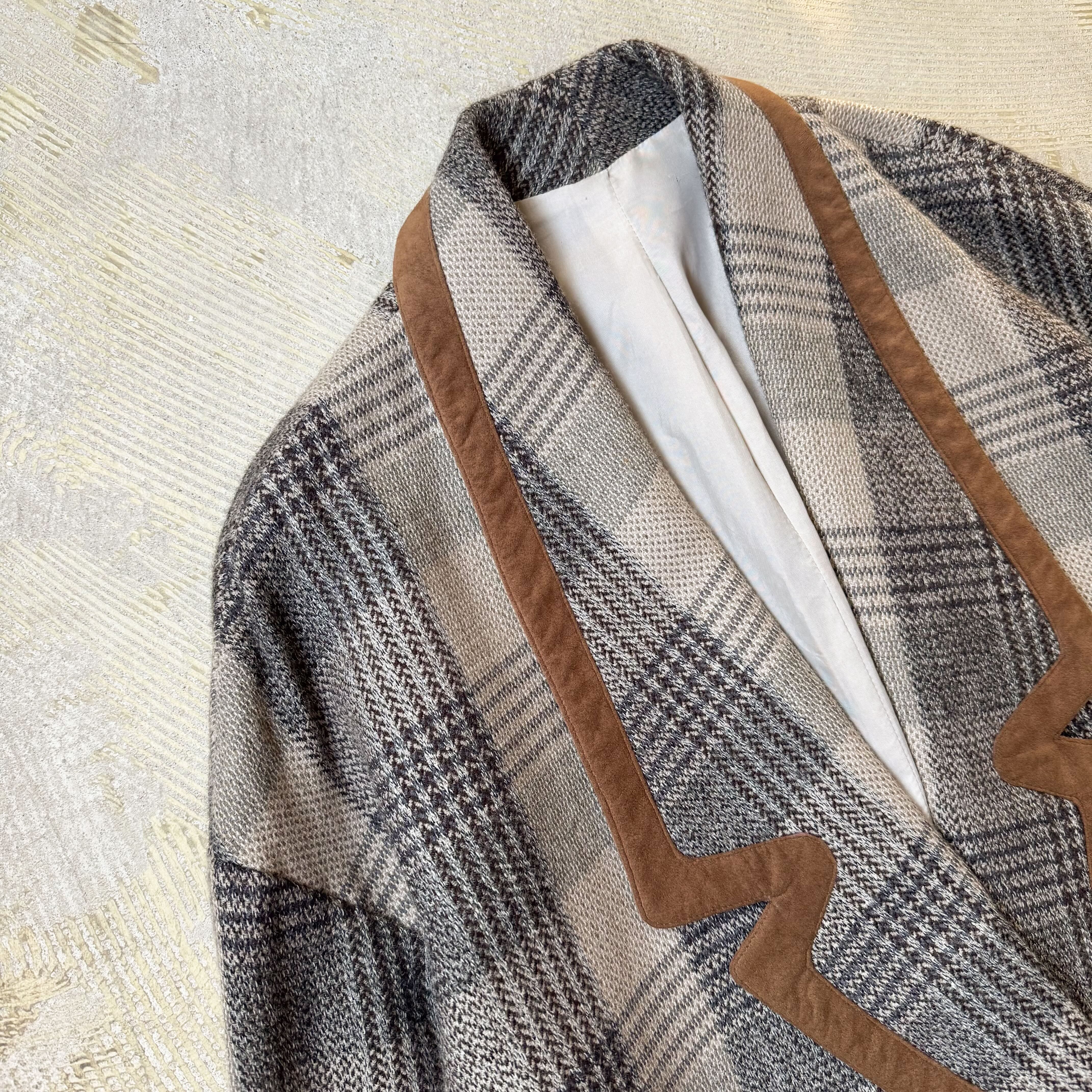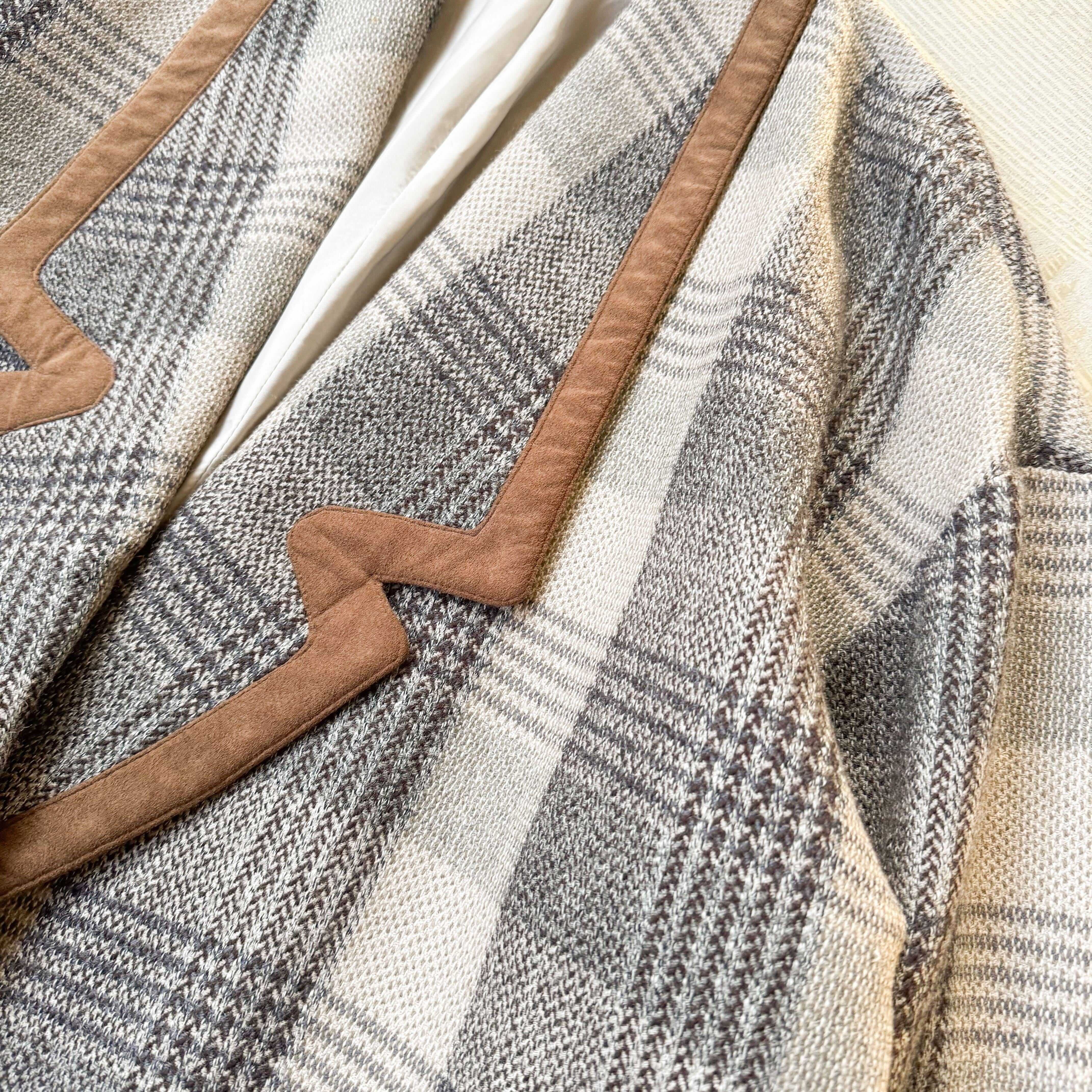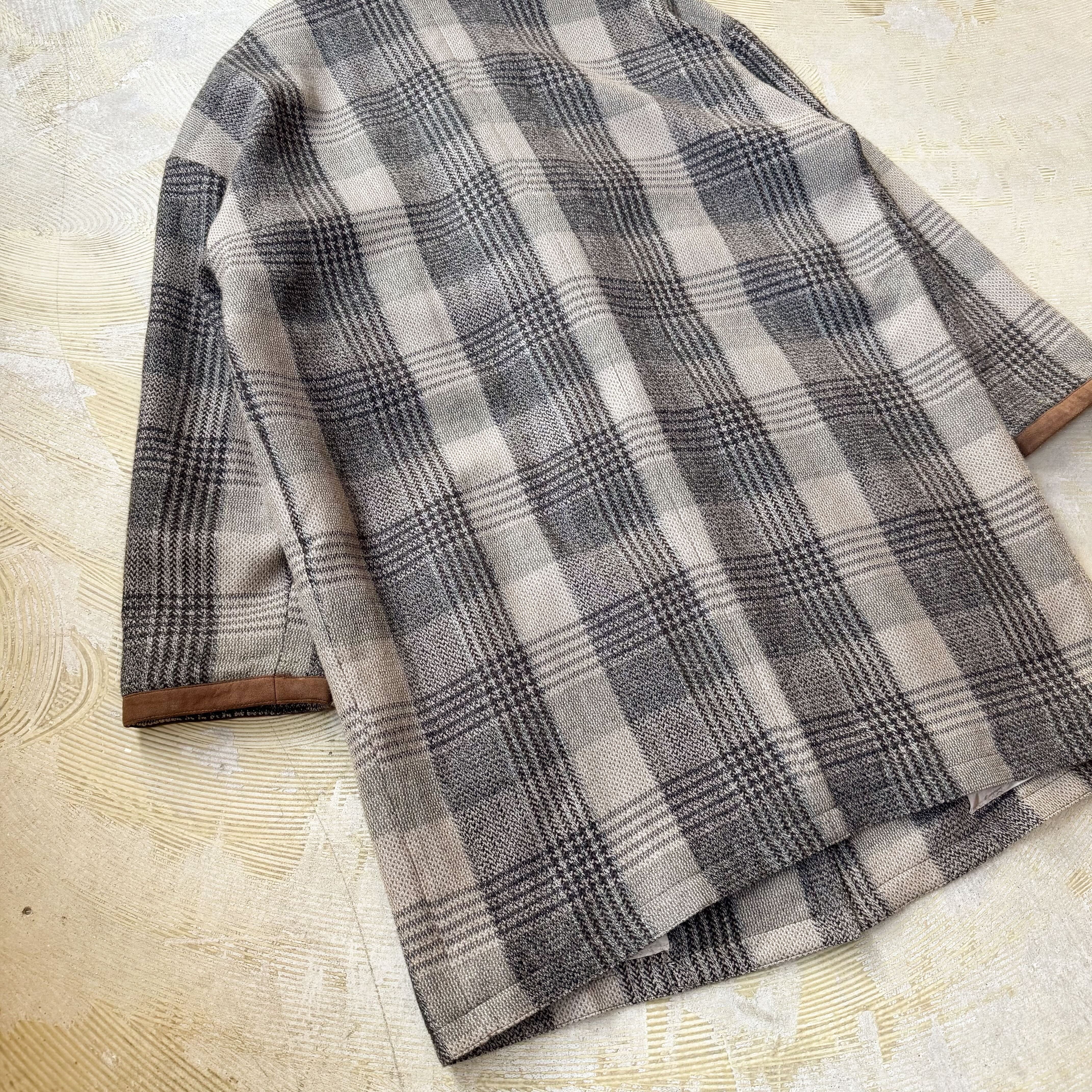 CHECK PATTERN SUEDE PIPING DESIGN HALF COAT / チェック 柄 スウェード レザー ハーフ コート