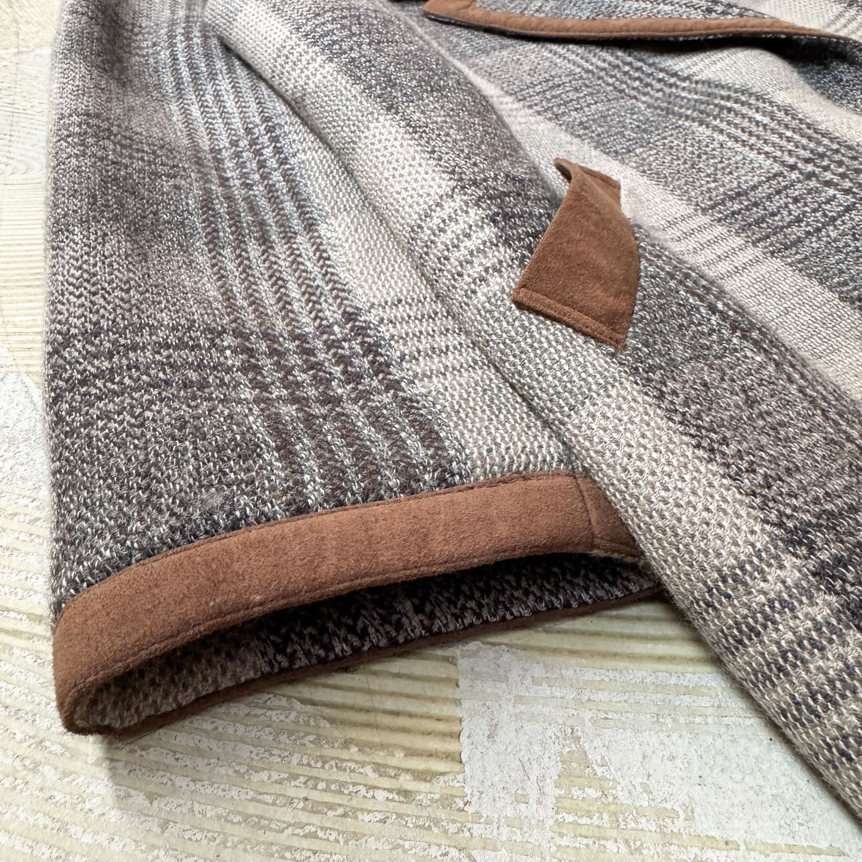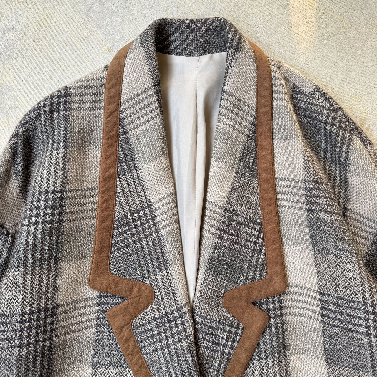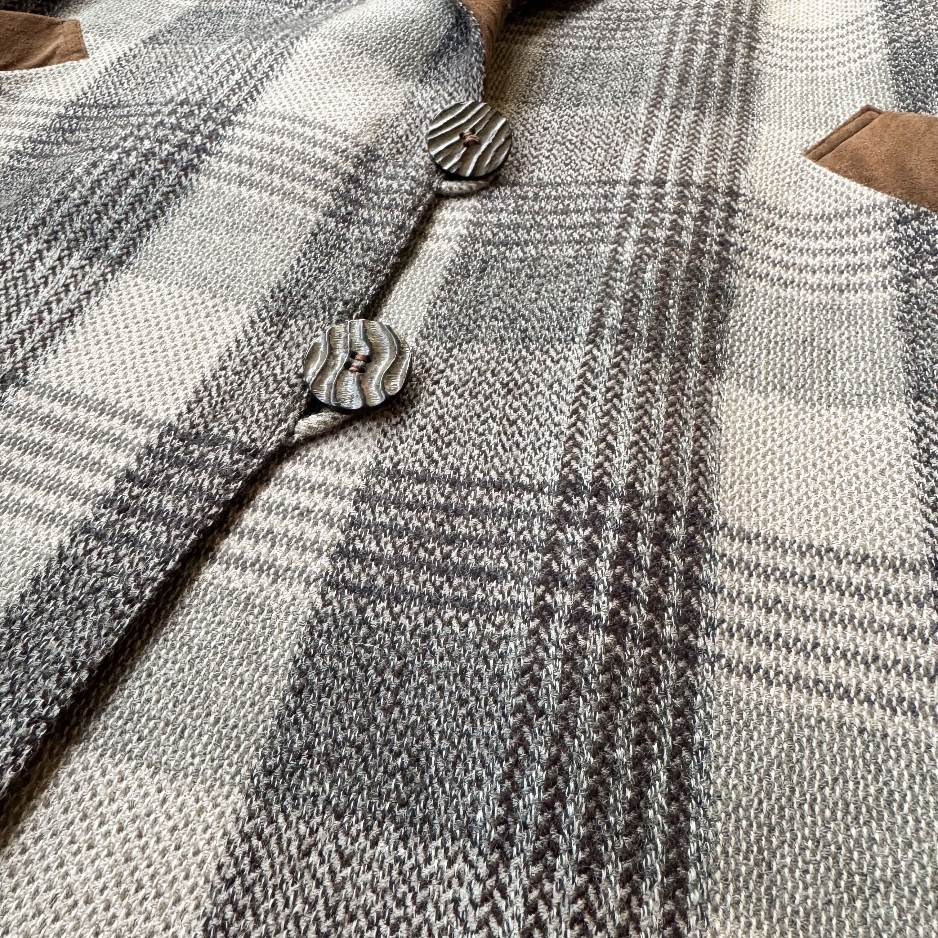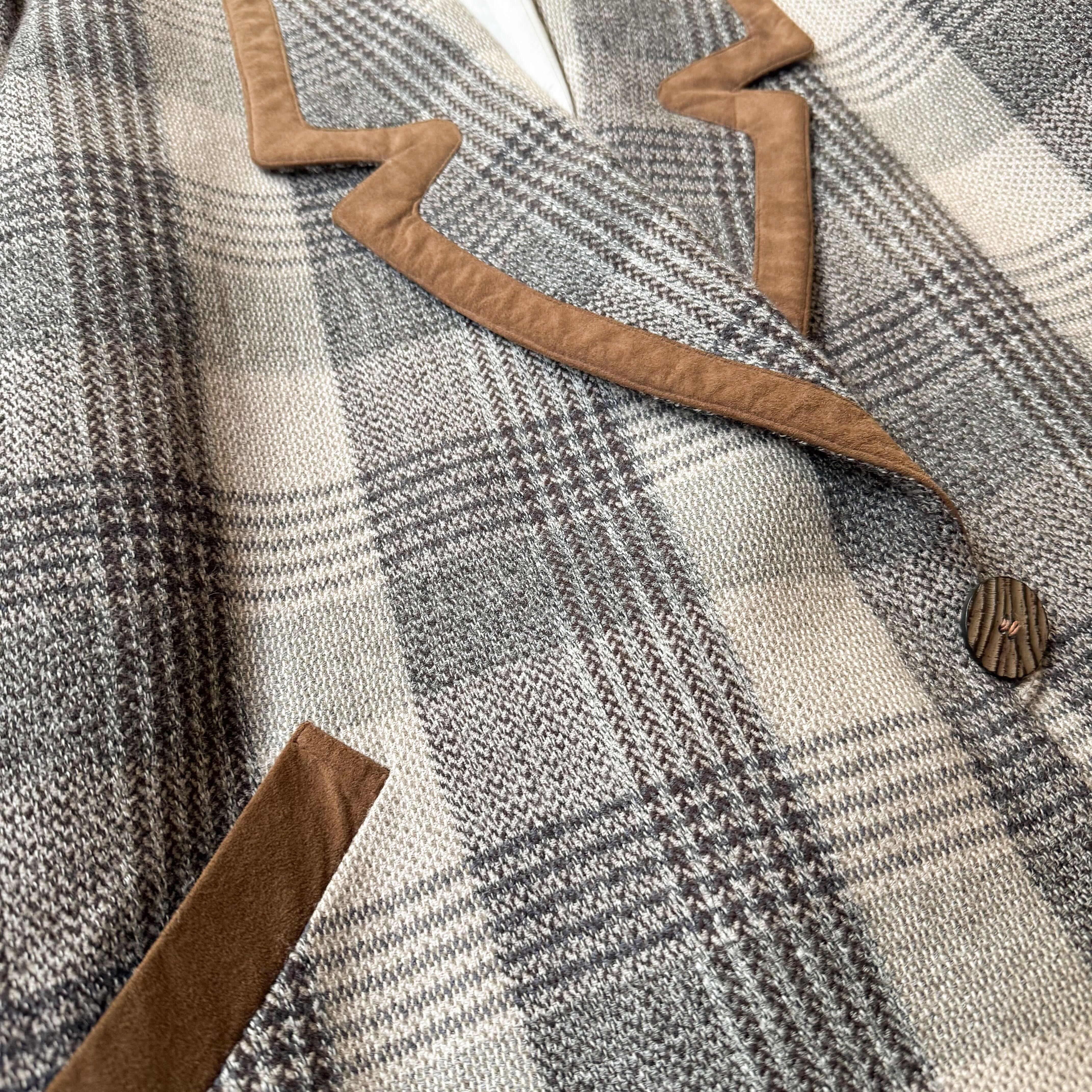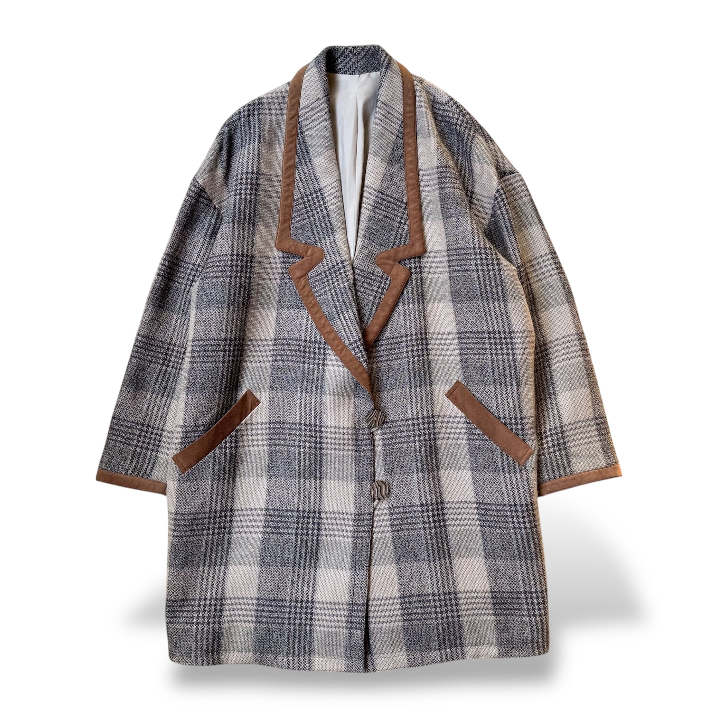 CHECK PATTERN SUEDE PIPING DESIGN HALF COAT / チェック 柄 スウェード レザー ハーフ コート