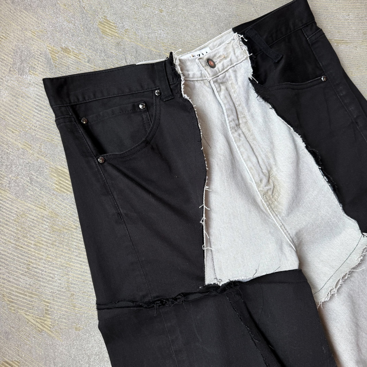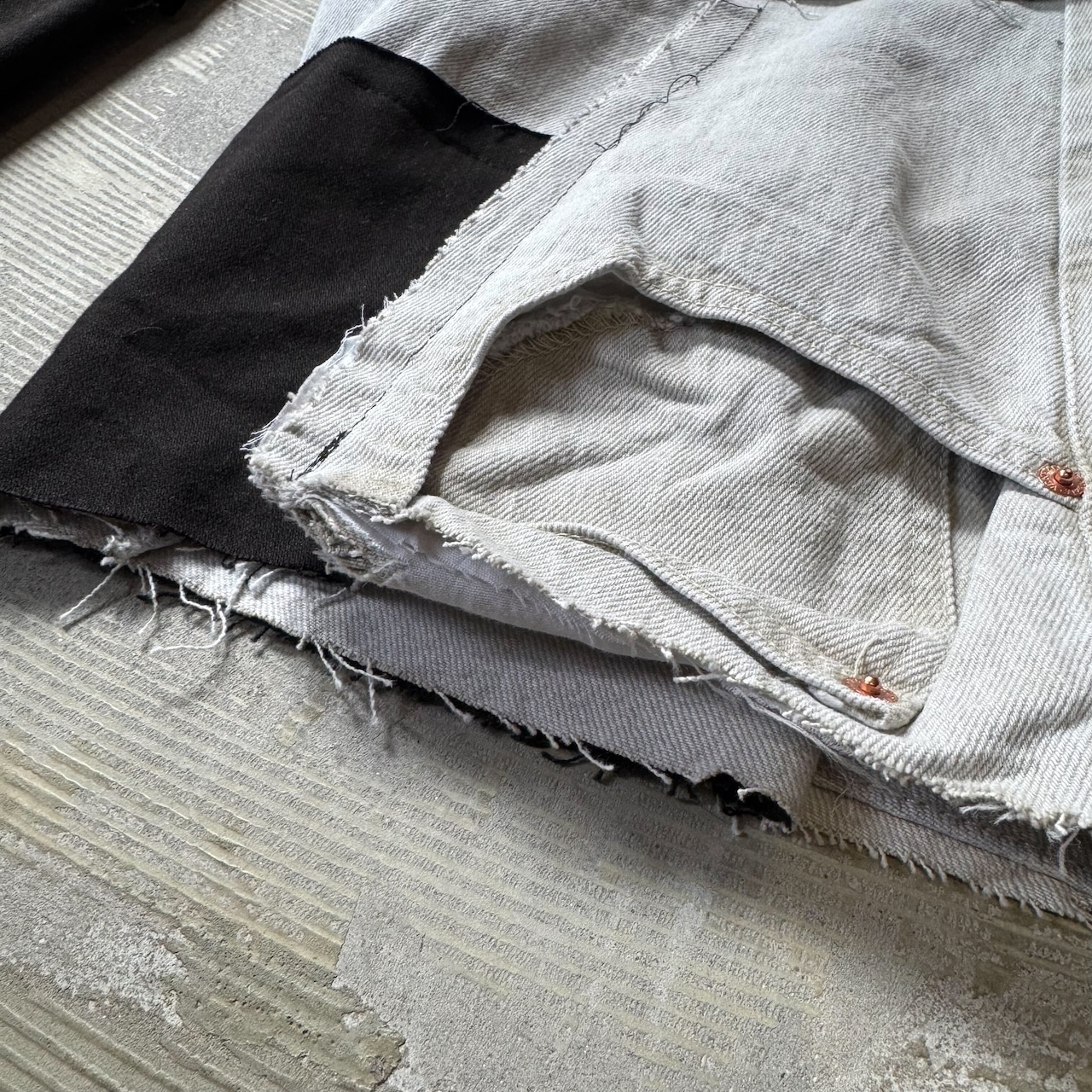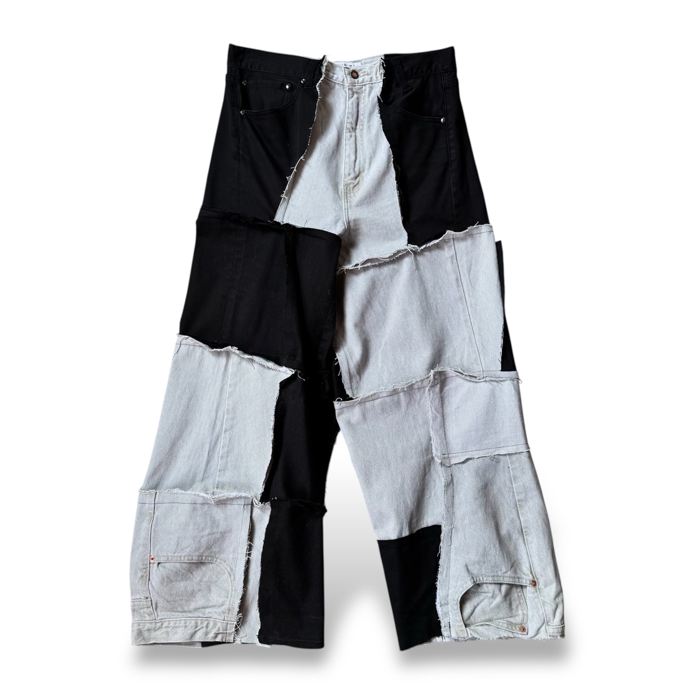 REBUILD PATCHWORK WIDE SILHOUETTE DENIM PANTS / リビルド パッチワーク ワイド デニム パンツ ドッキング ハンドメイド リメイク