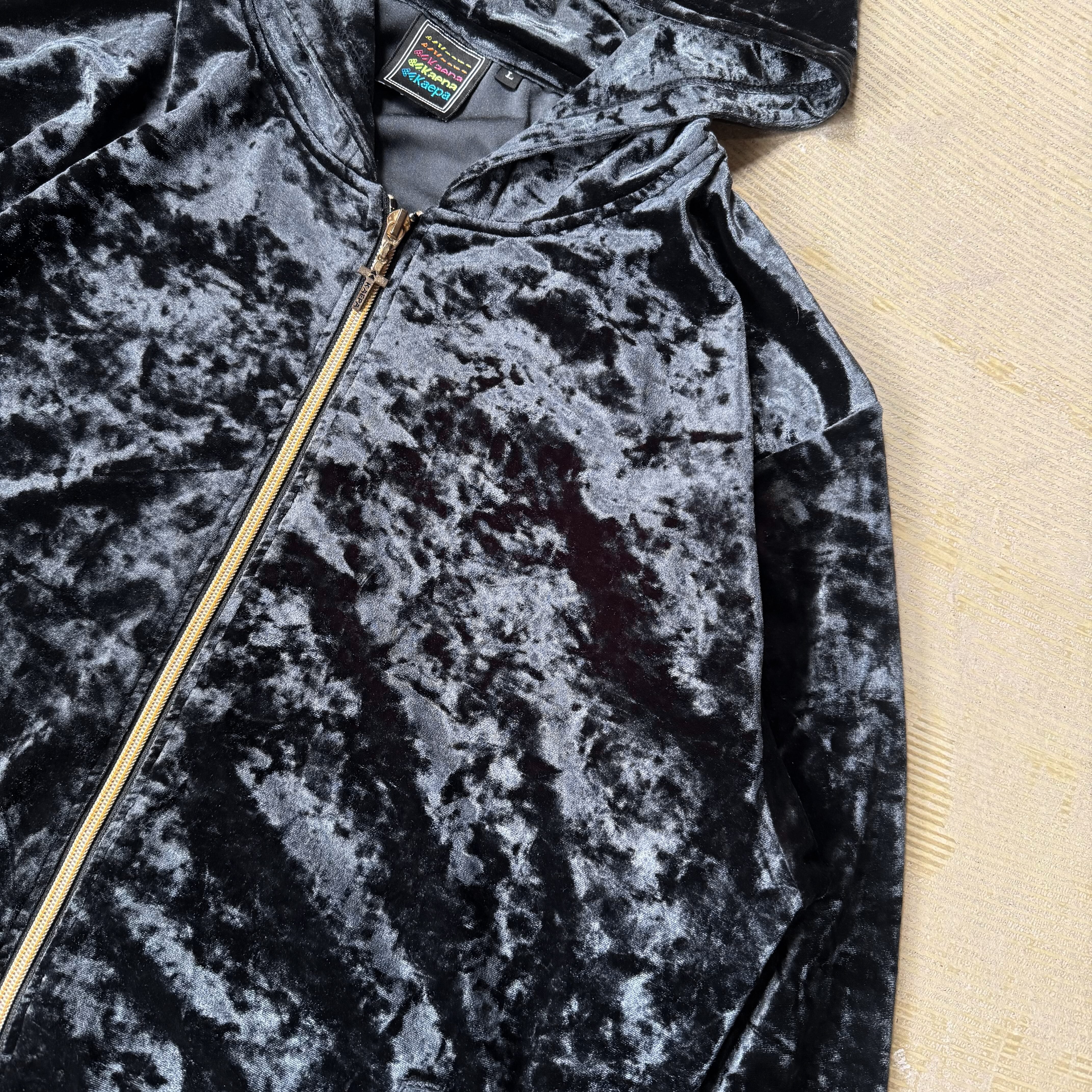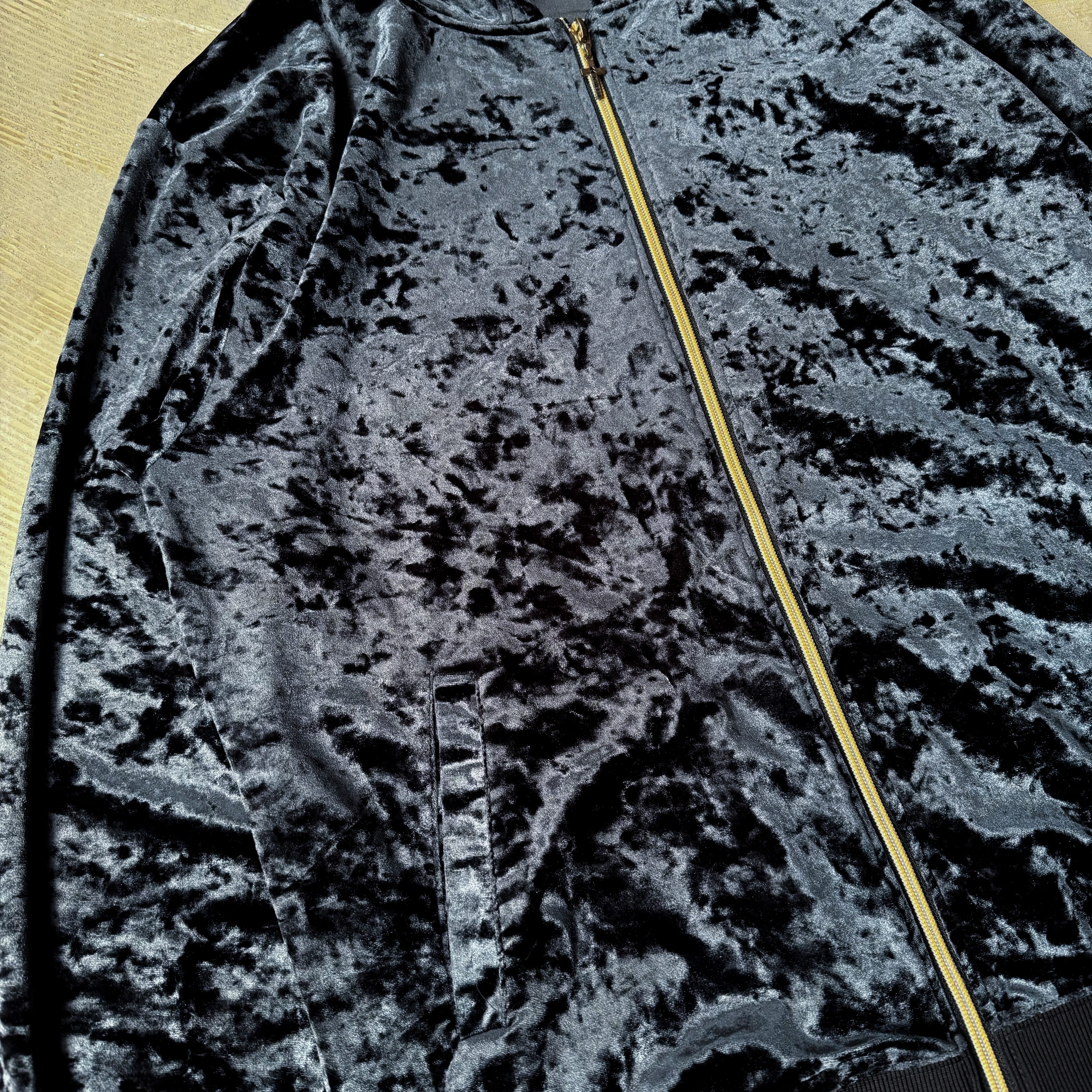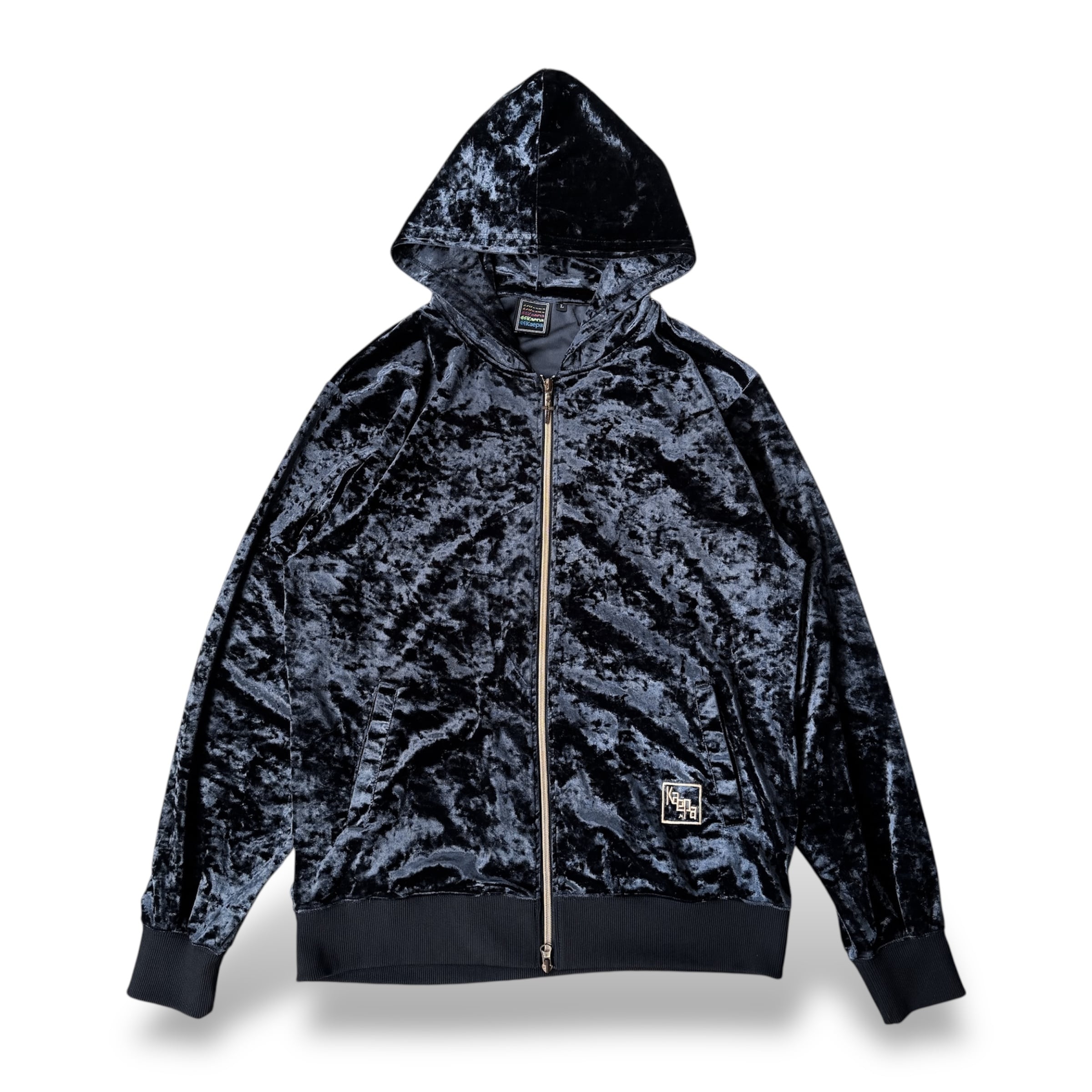 CRUSHED VELOUR EMBROIDERY ZIP UP PARKA / クラッシュ ベロア ベルベット ジップ アップ 刺繍 パーカー フーディ