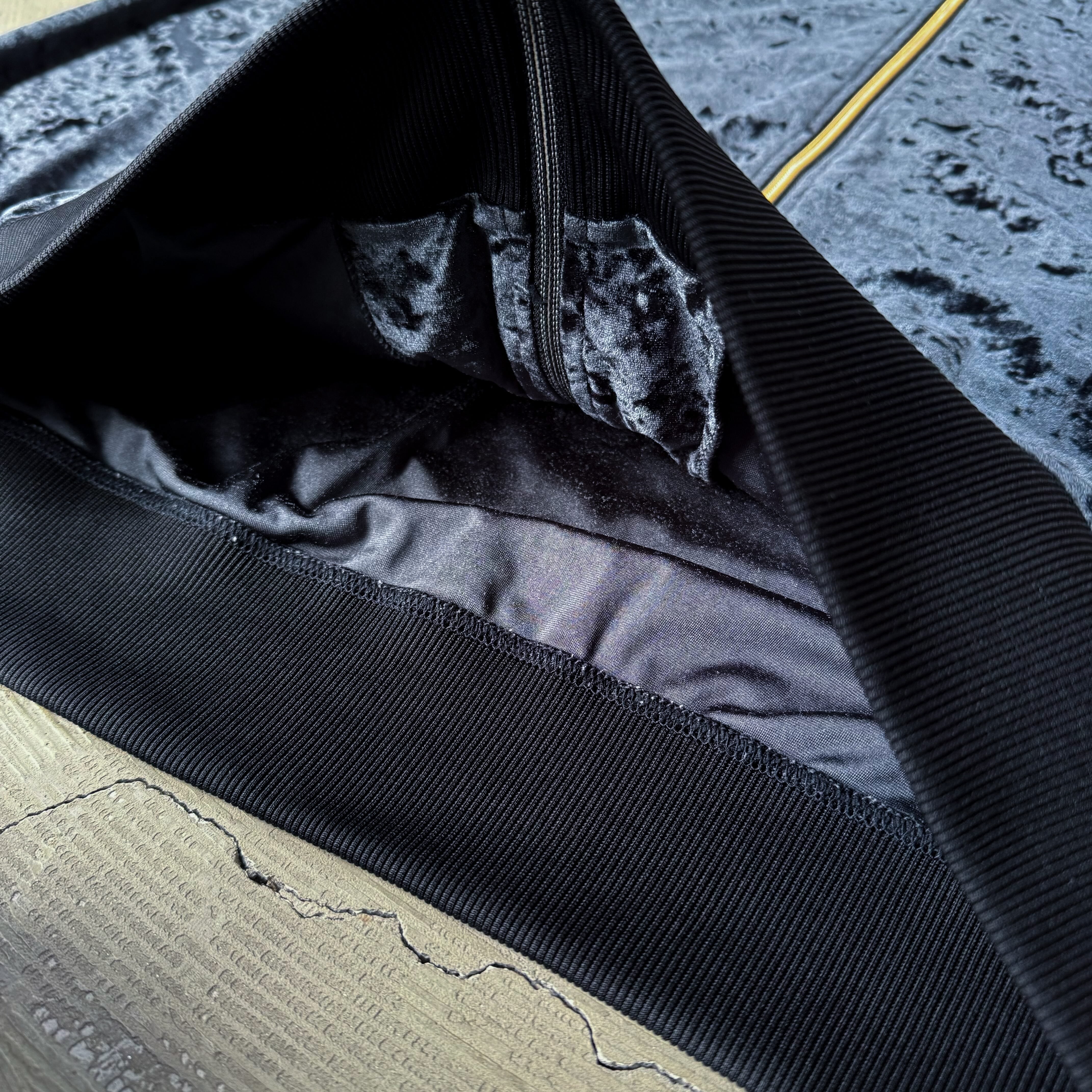 ・ネイビーのクラッシュベロアは光の角度で表情を変え、静かな艶を与え