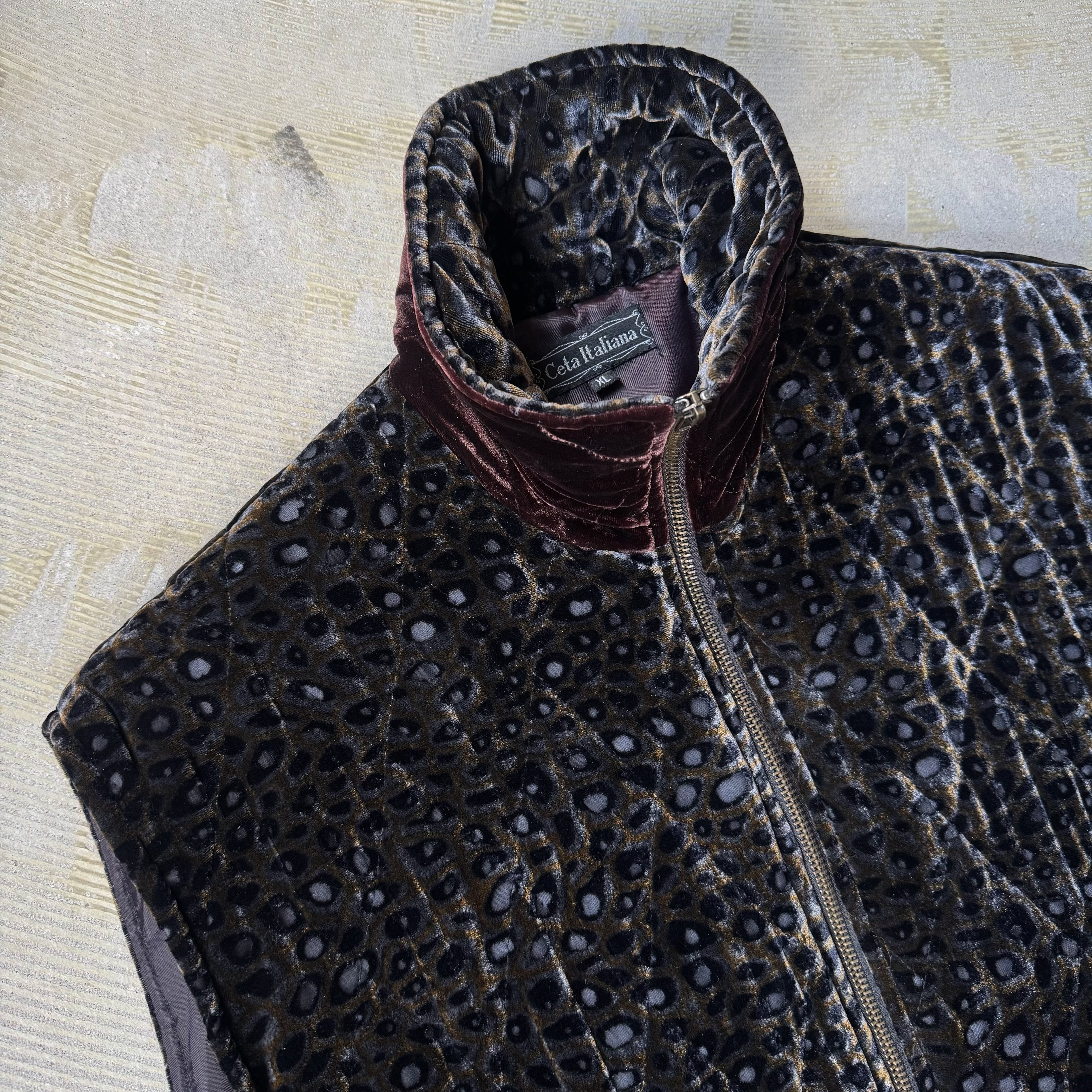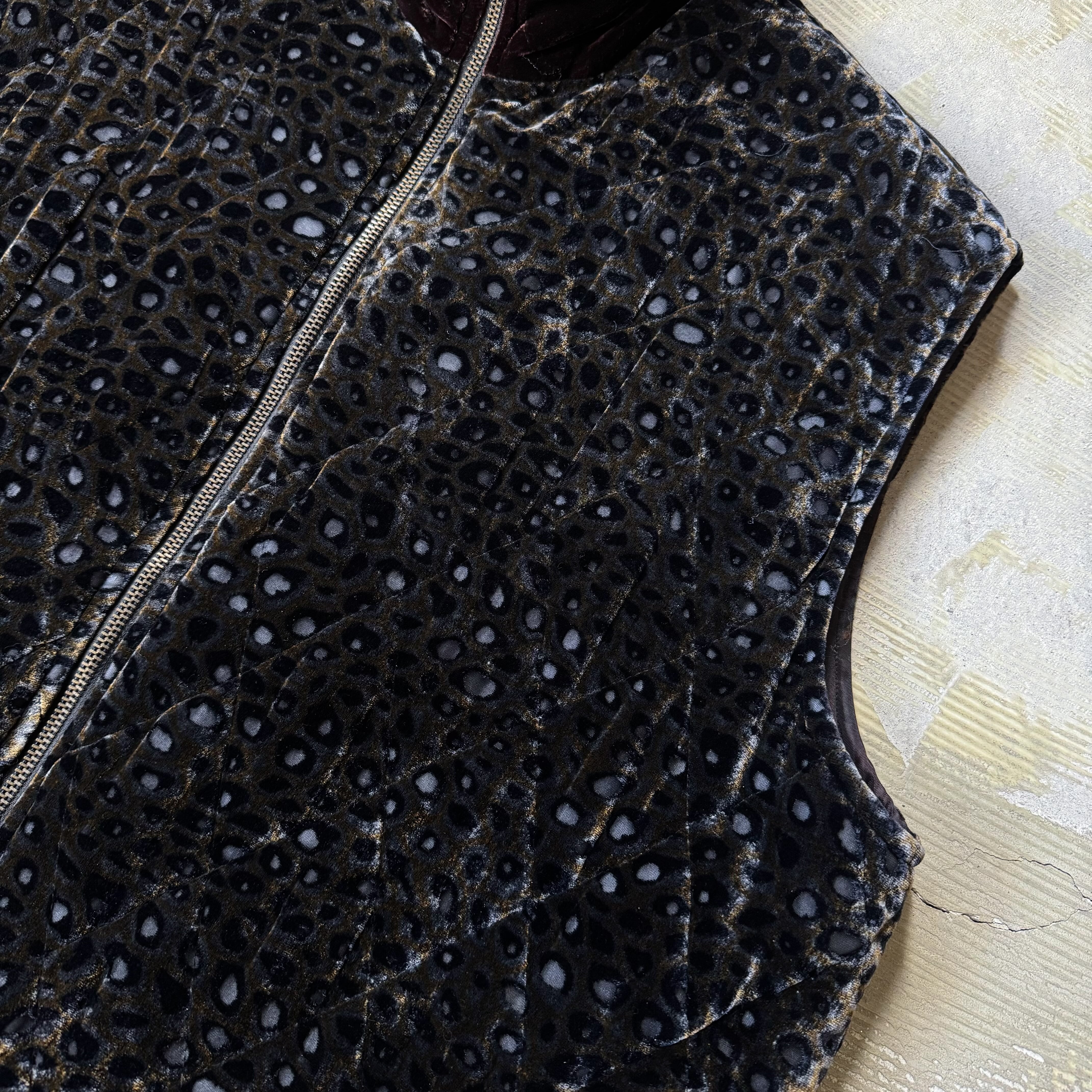 1990's VINTAGE LEOPARD PATTERN VELOUR ZIP UP VEST / 90年代 ヴィンテージ レオパード 柄 ベロア ベルベット ジップ アップ ベスト