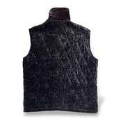 キルティングのダイヤ構成が、柄の密度を整え、視線を散らさずに留めるビンテージベスト。