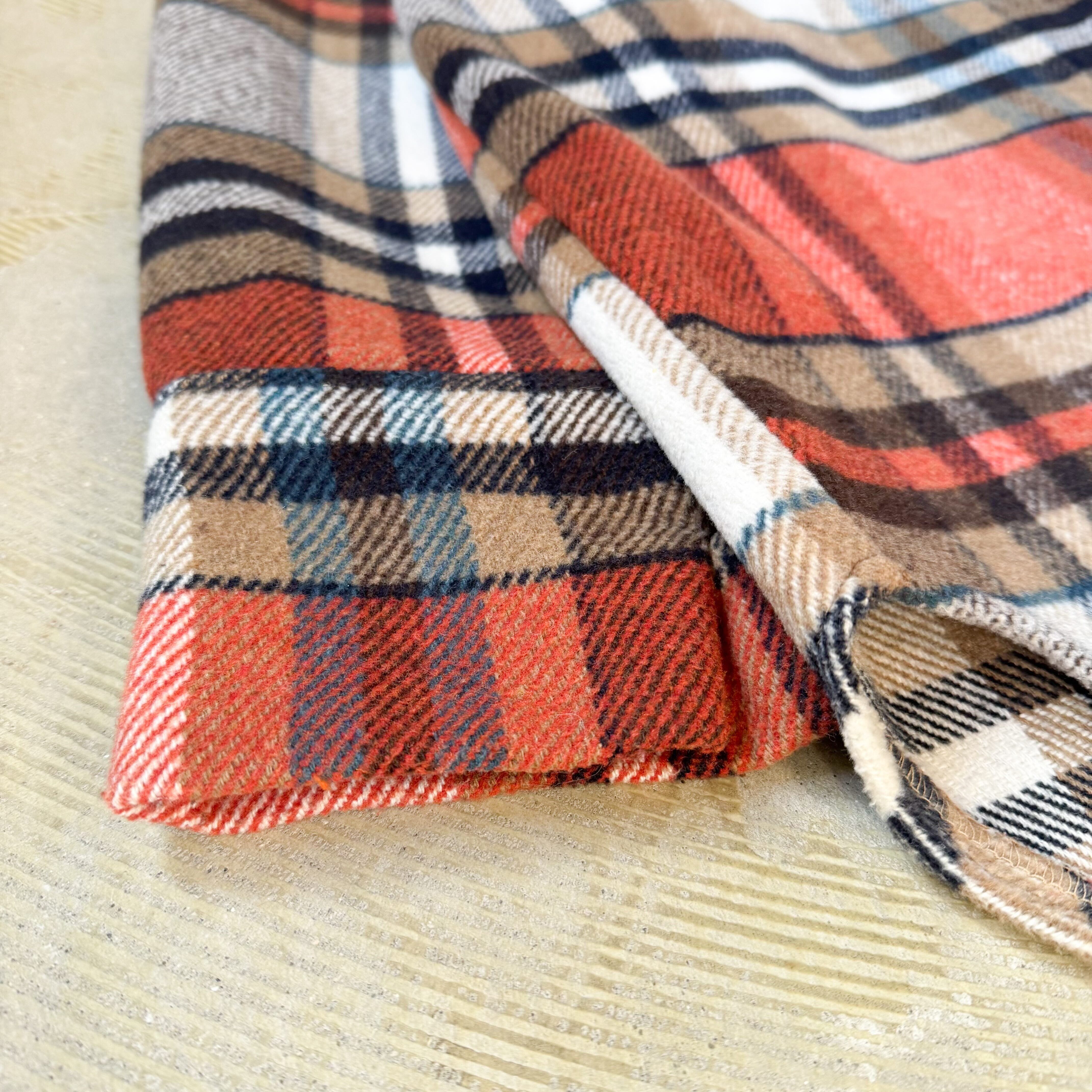・オレンジ、ブラウン、ブラック、色の重さが交差するチェック構成に