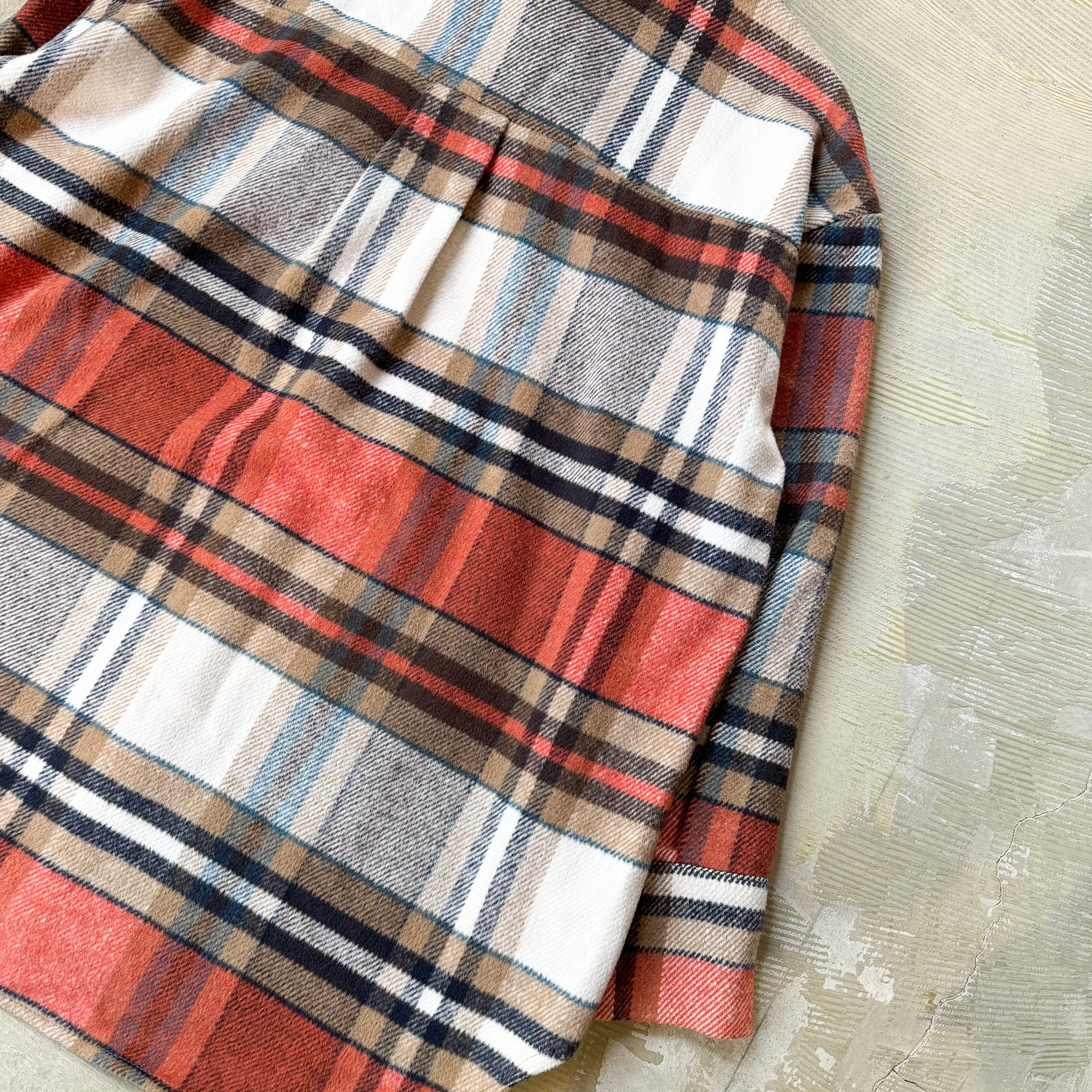 左右対称に組まれた柄は、“揺らぎ”ではなく“安定”を生むヘビーネルシャツジャケット。