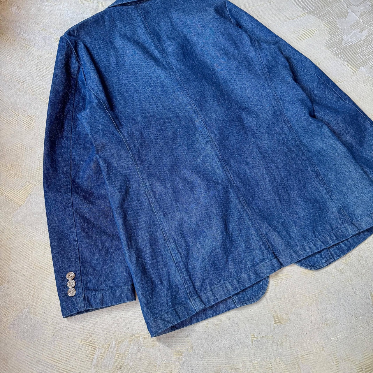 そんな視点を持つ人にこそ届いてほしい、記号が走るデニムテーラードジャケットです。