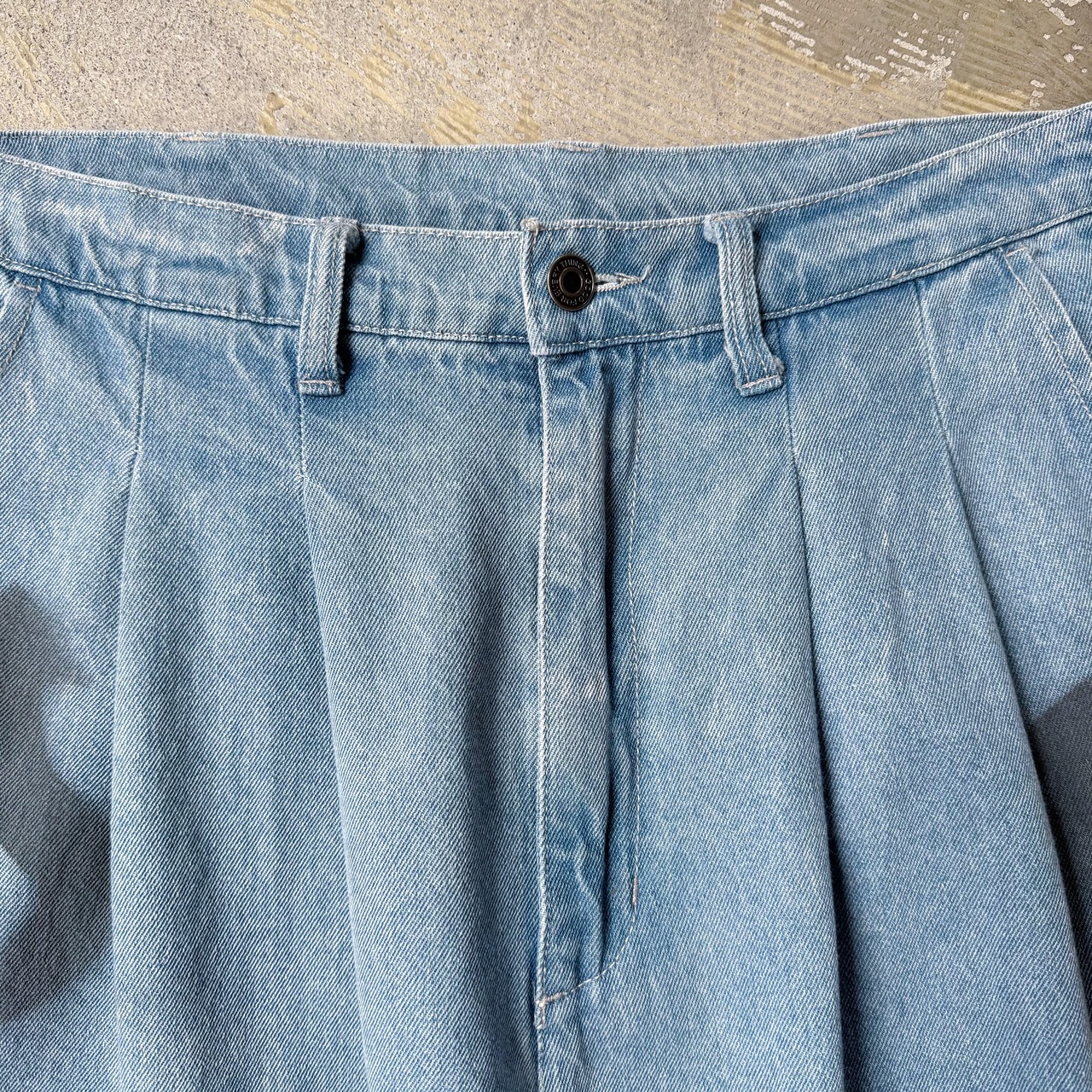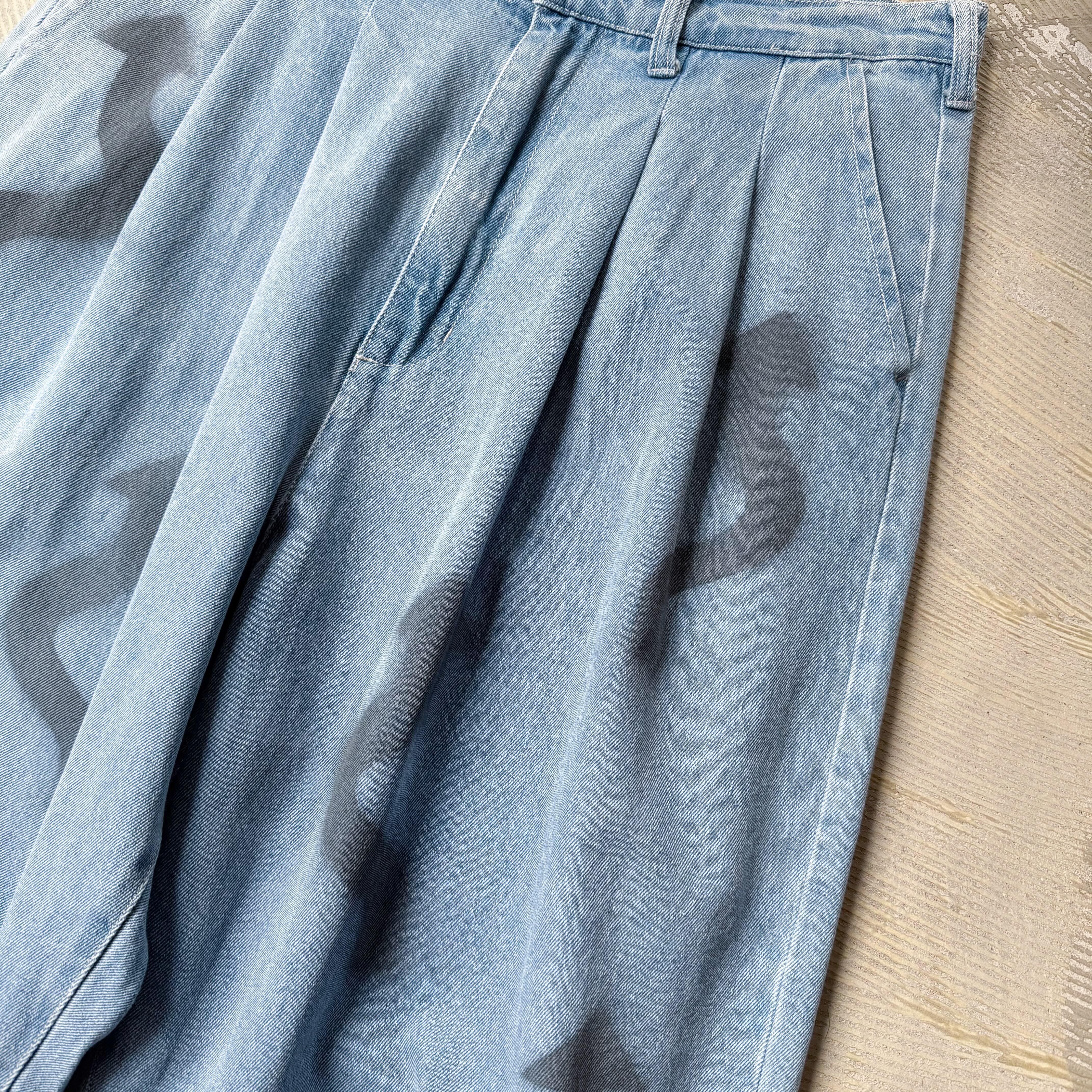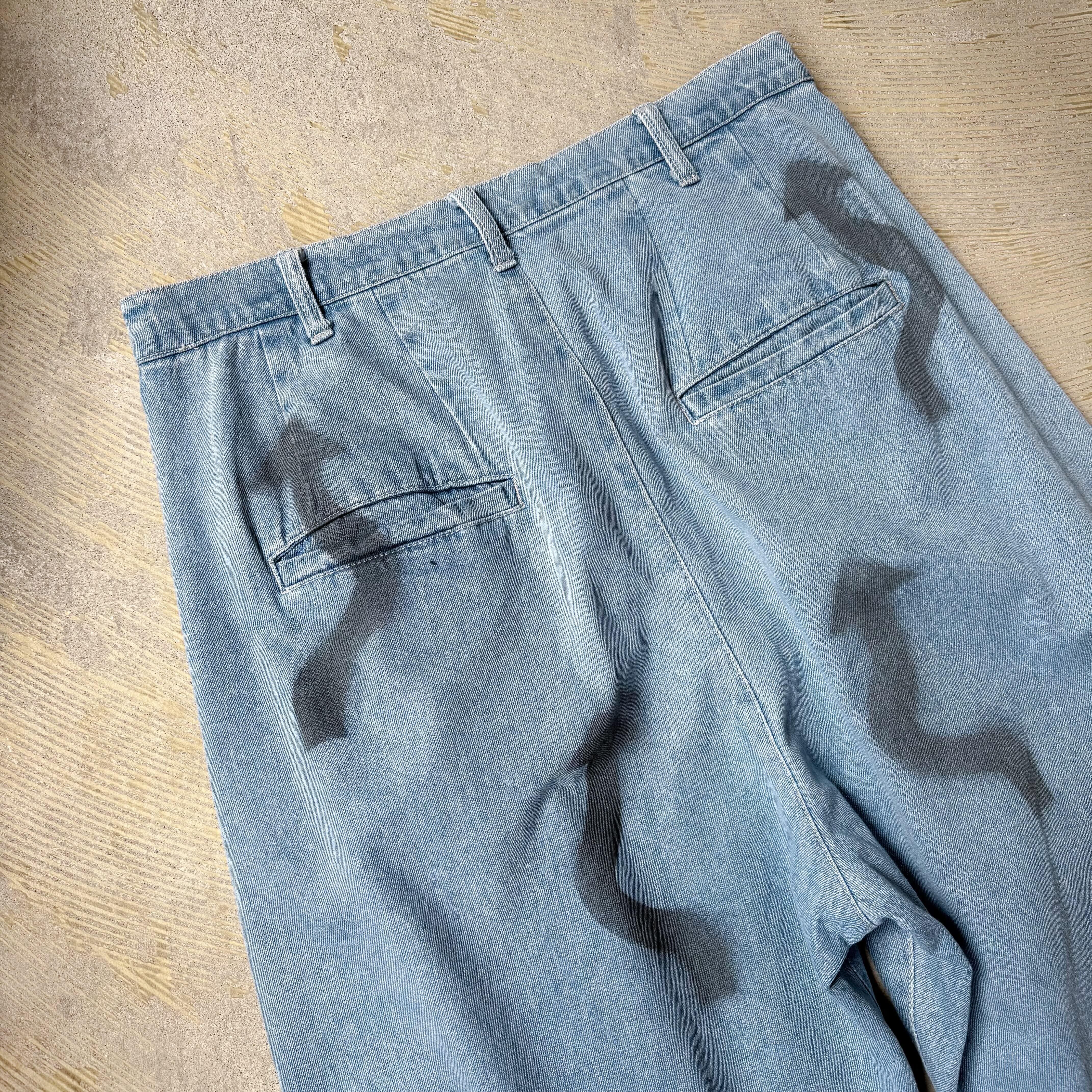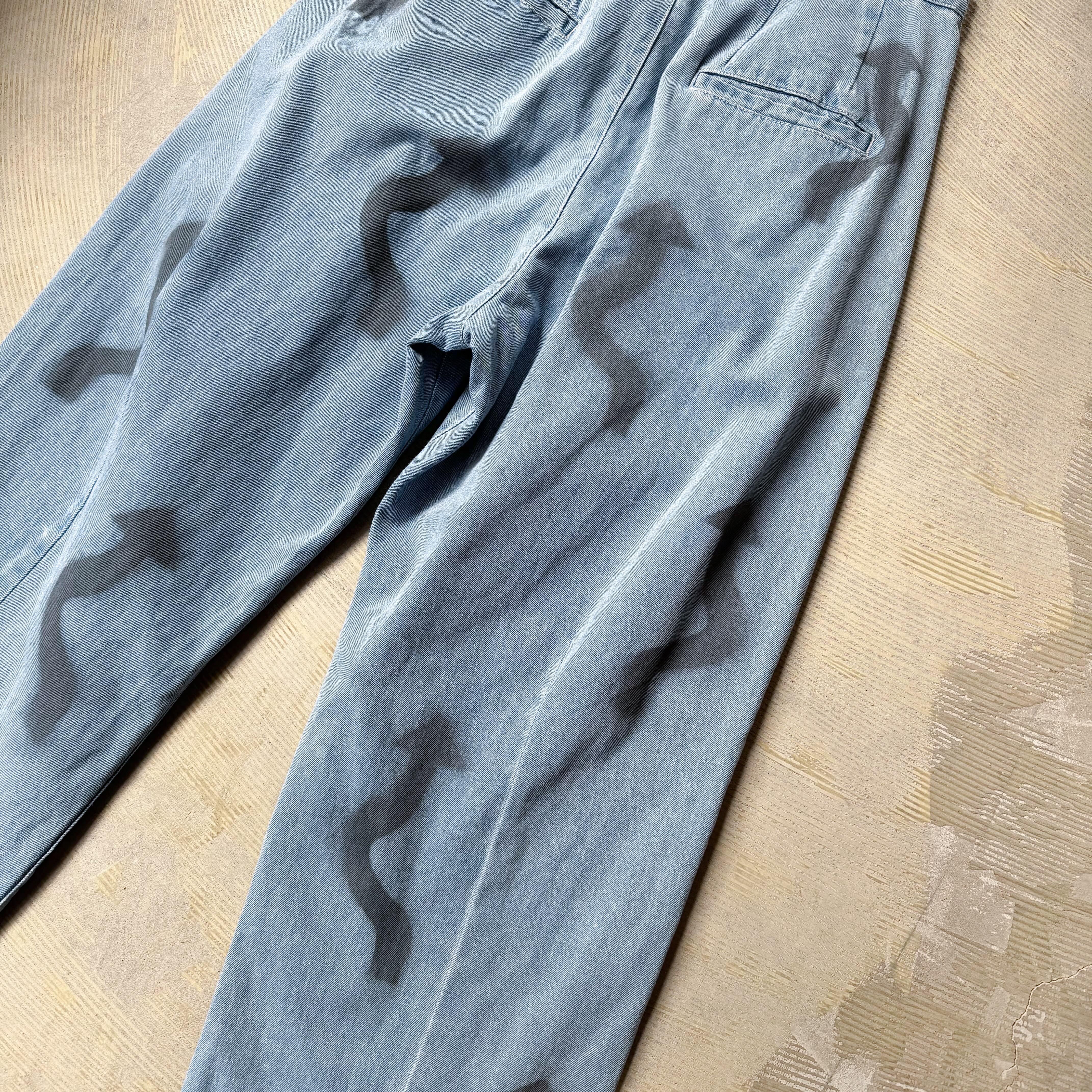 ・ライトブルーのデニムに、ワイドなシルエットで構造は余白を持ち、動きに呼応し