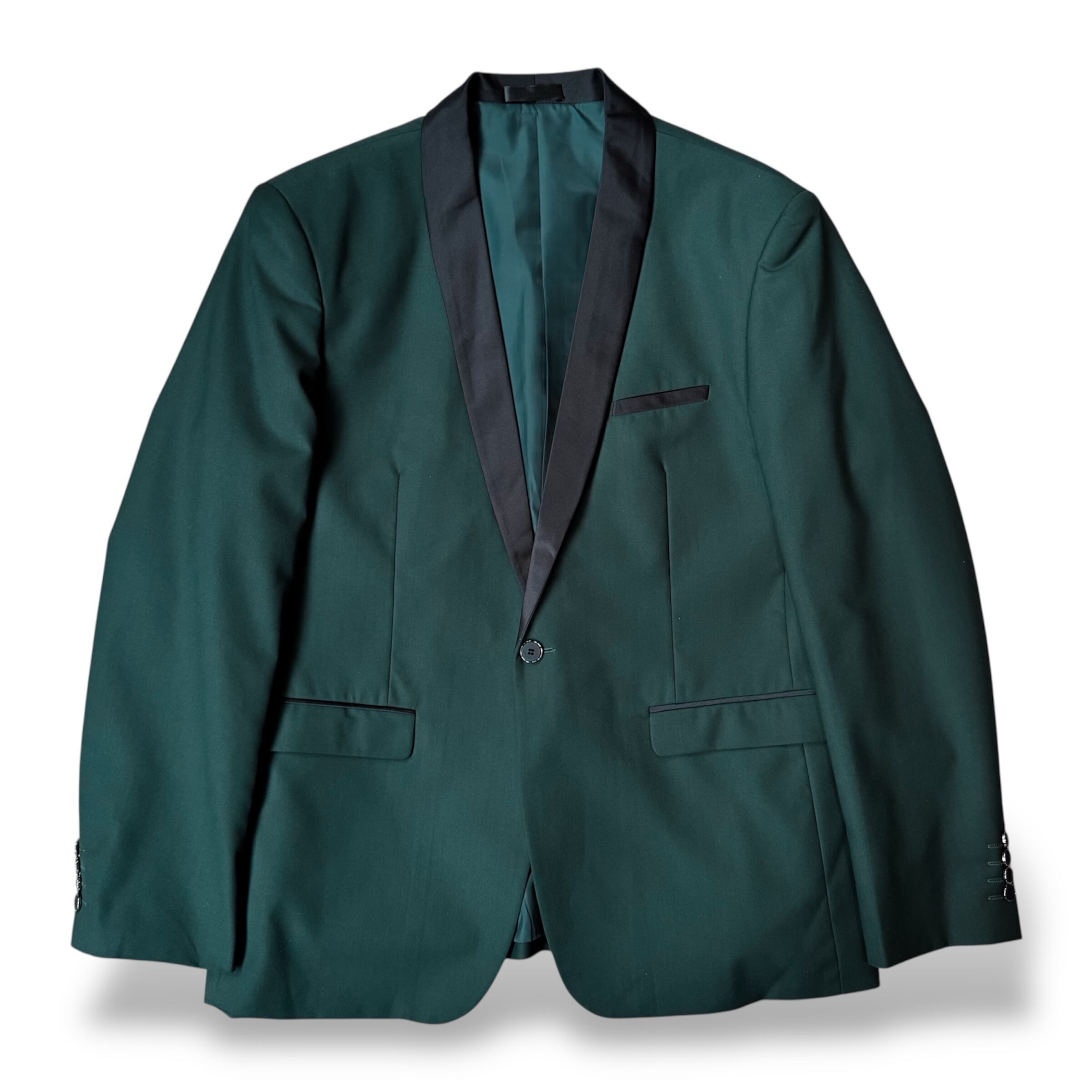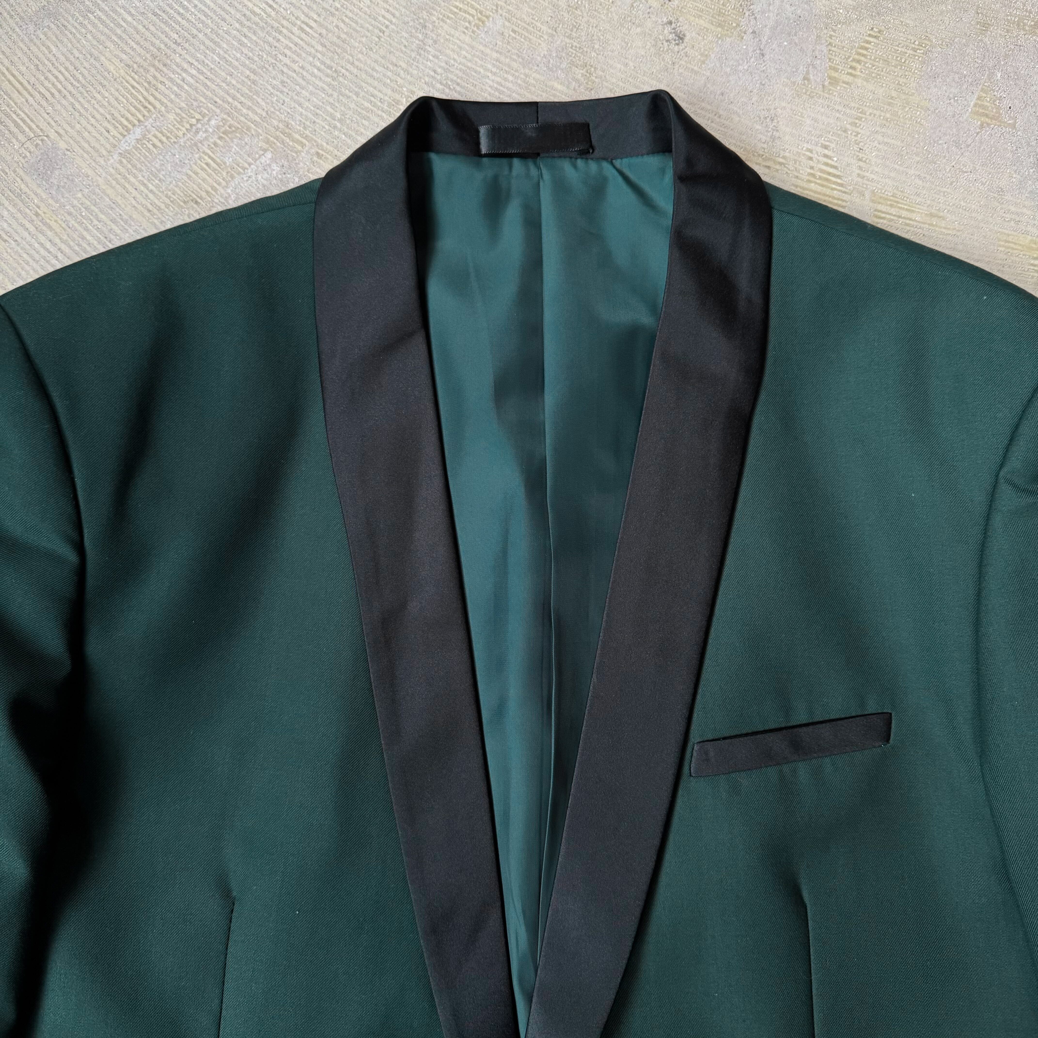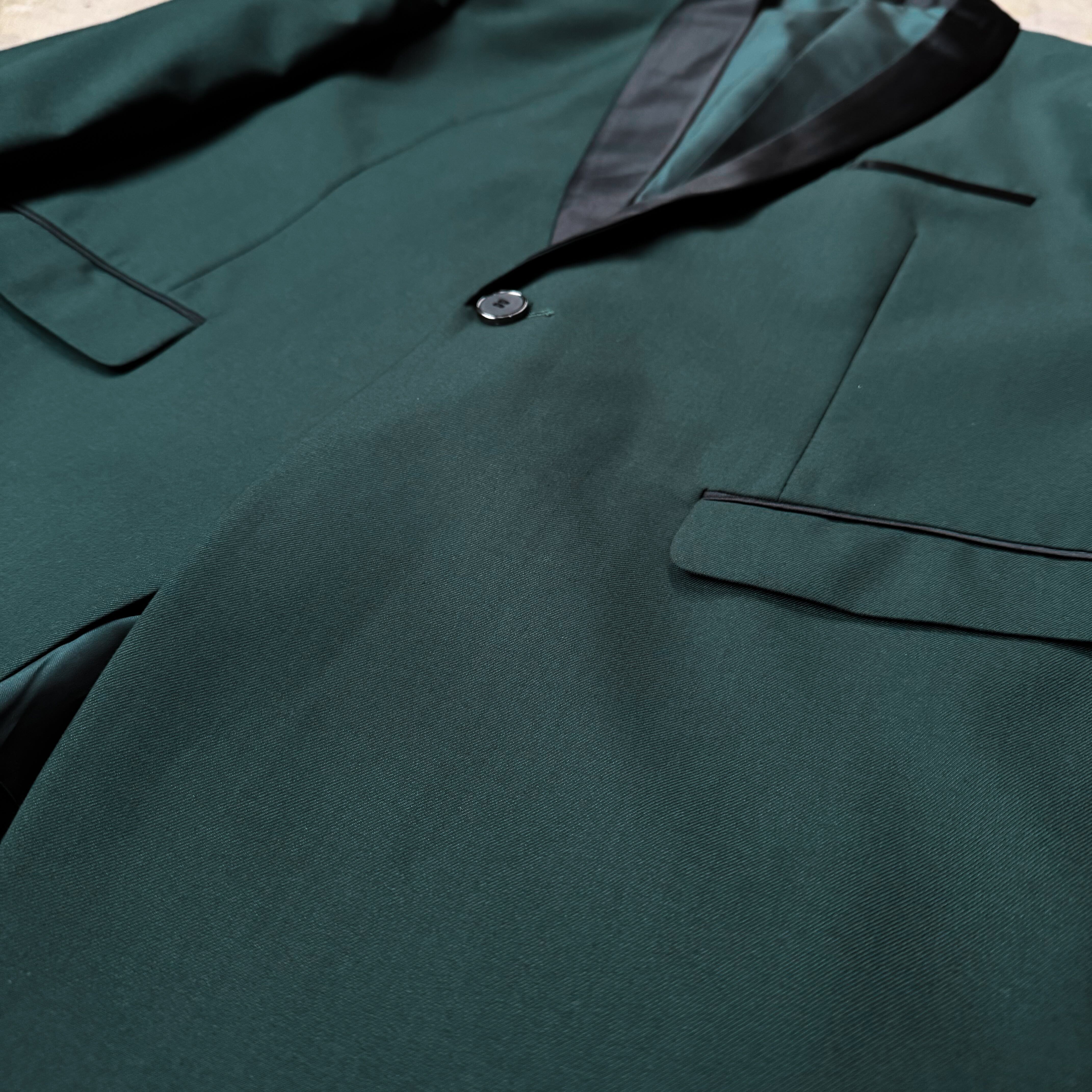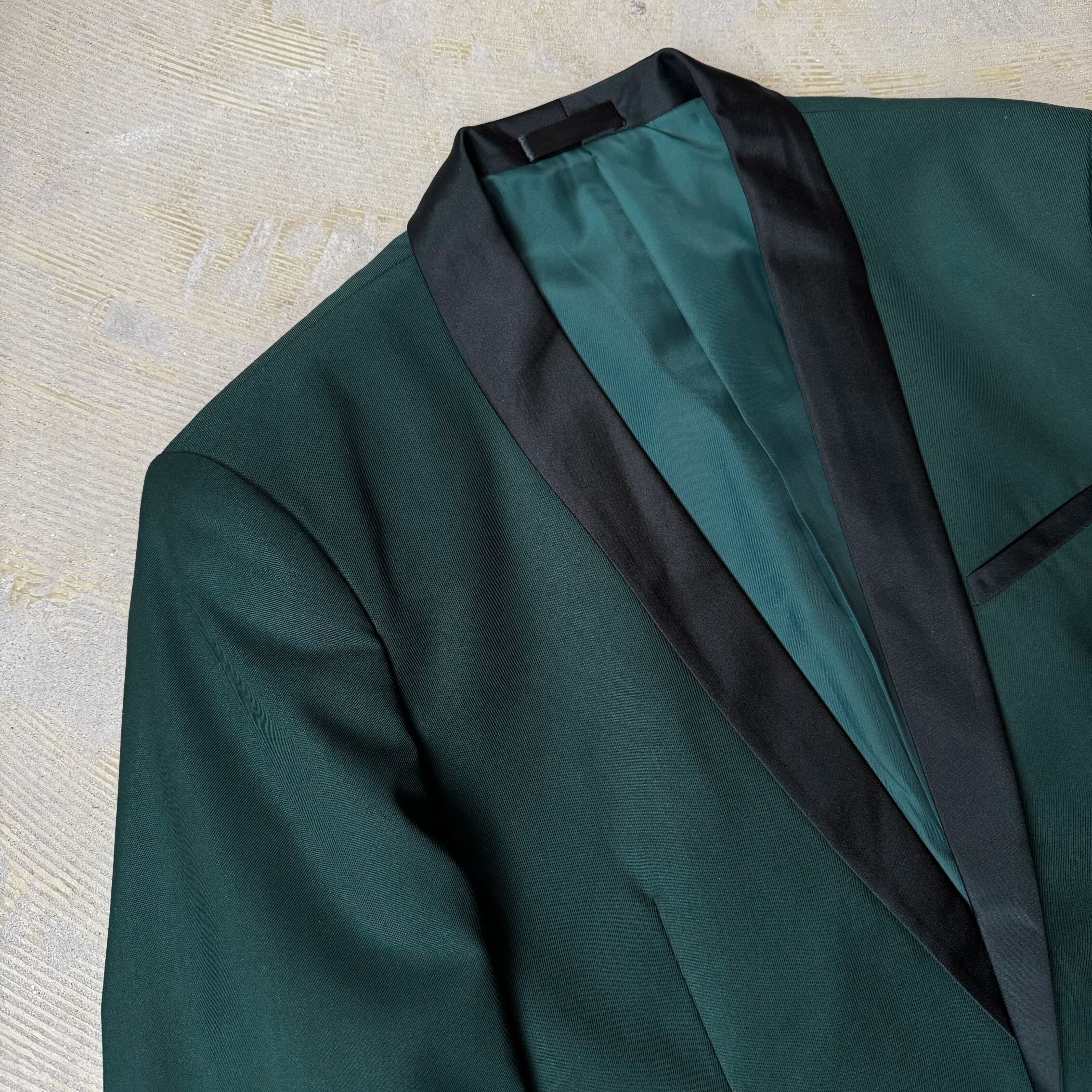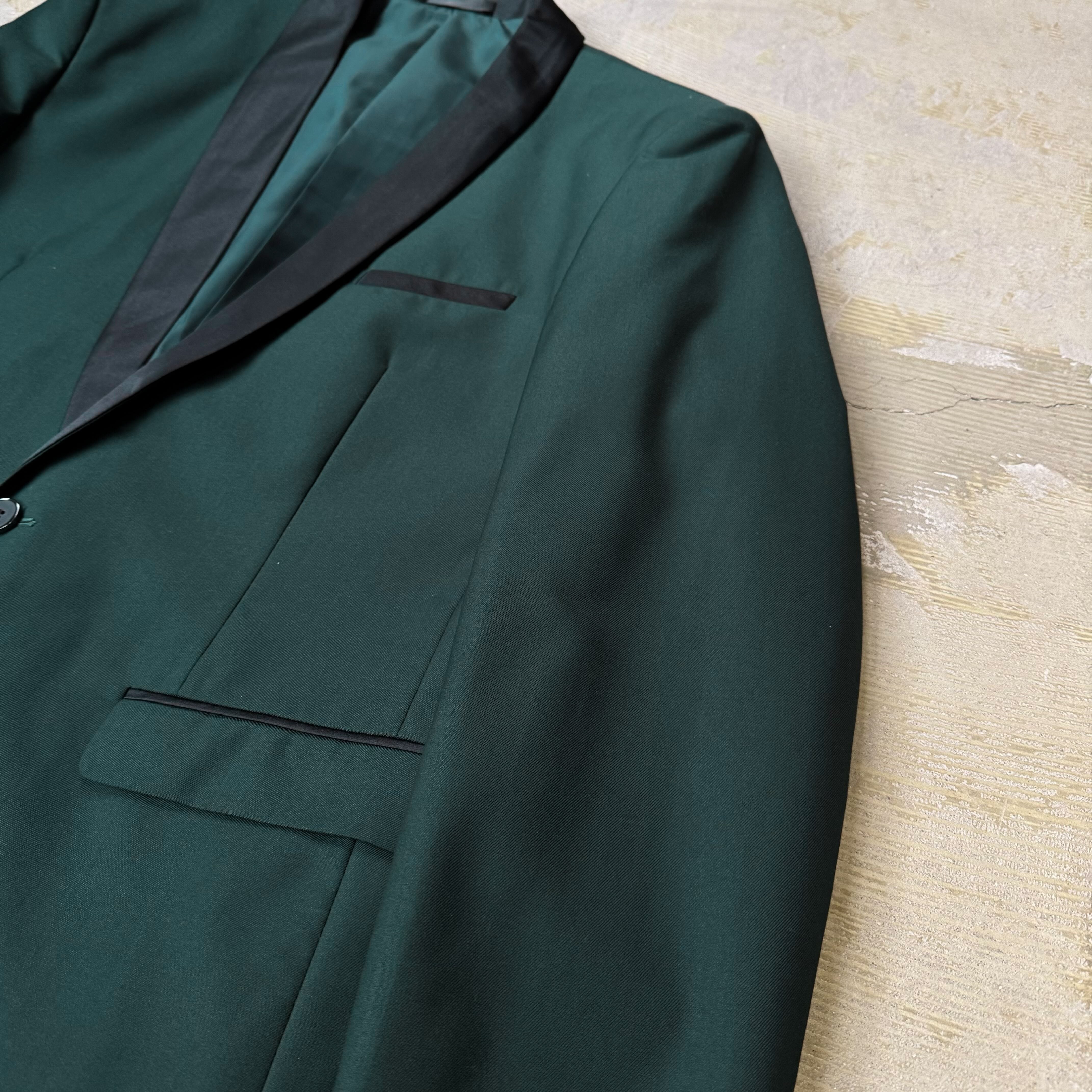 SWITCHED SHAWL COLLAR DESIGN DARK GREEN TAILORED JACKET / ショール カラー テーラード ジャケット