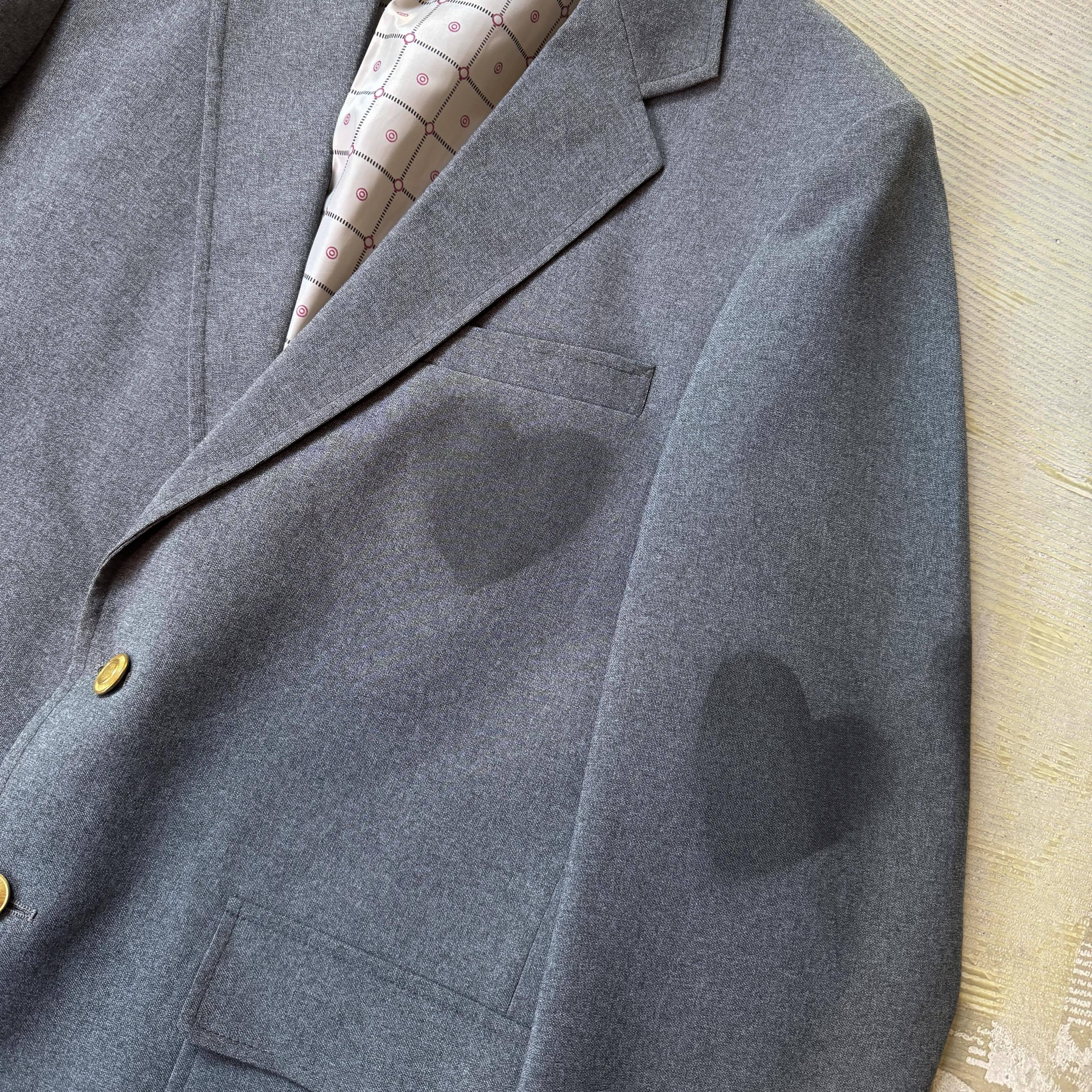 ゴールドのフロントボタン、フォーマルの骨格がしっかりと残る一枚。