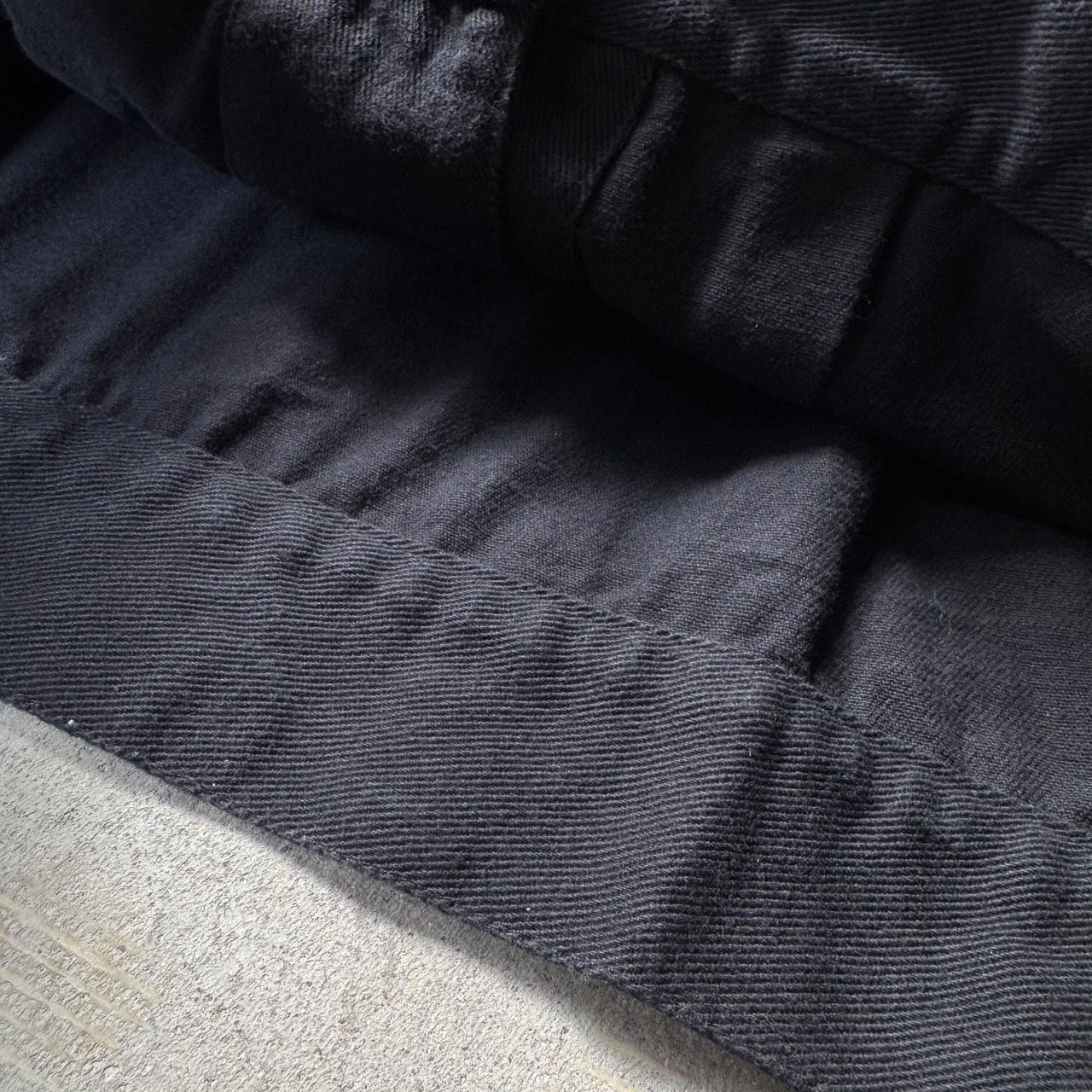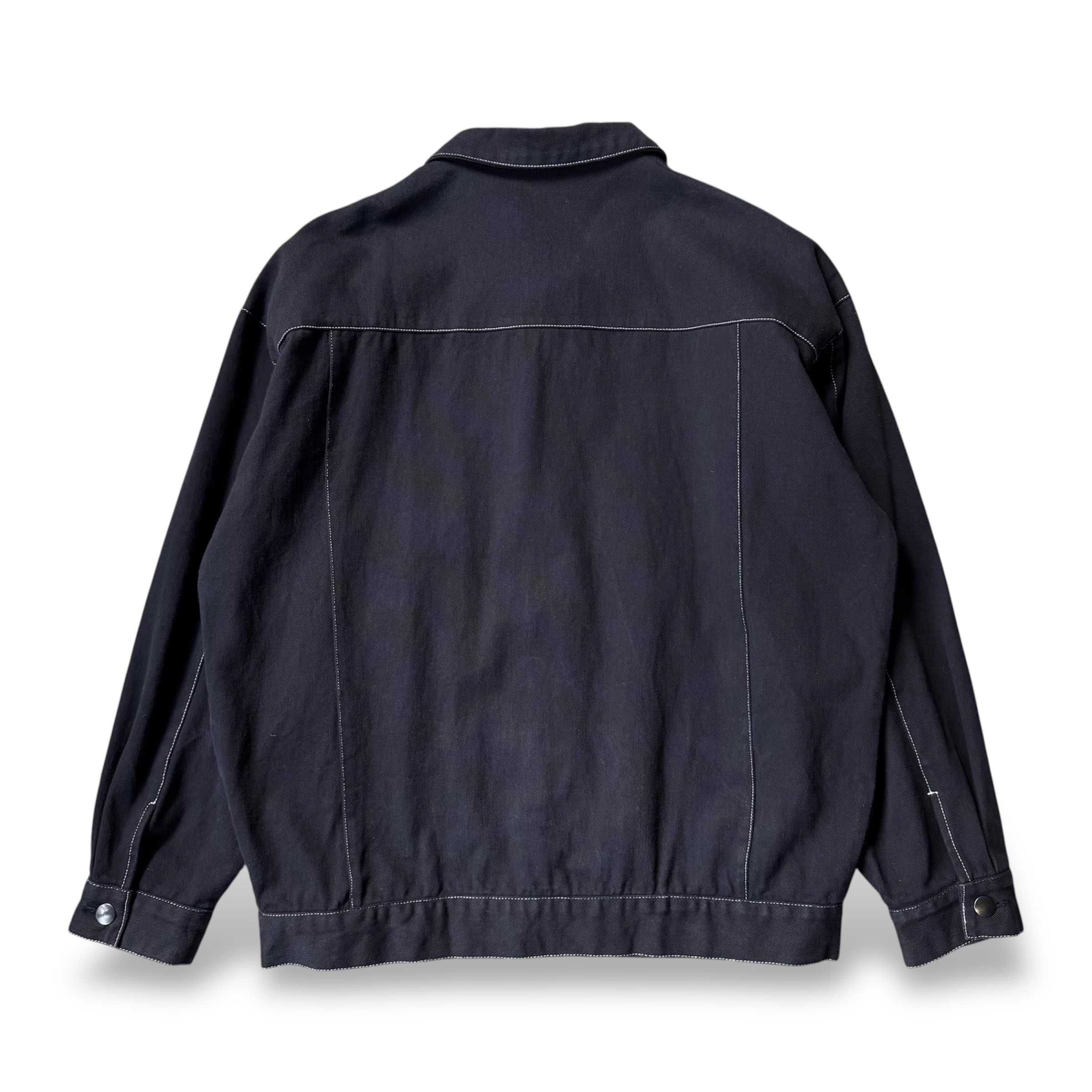・ブラックデニムに、白のコントラストステッチが施され