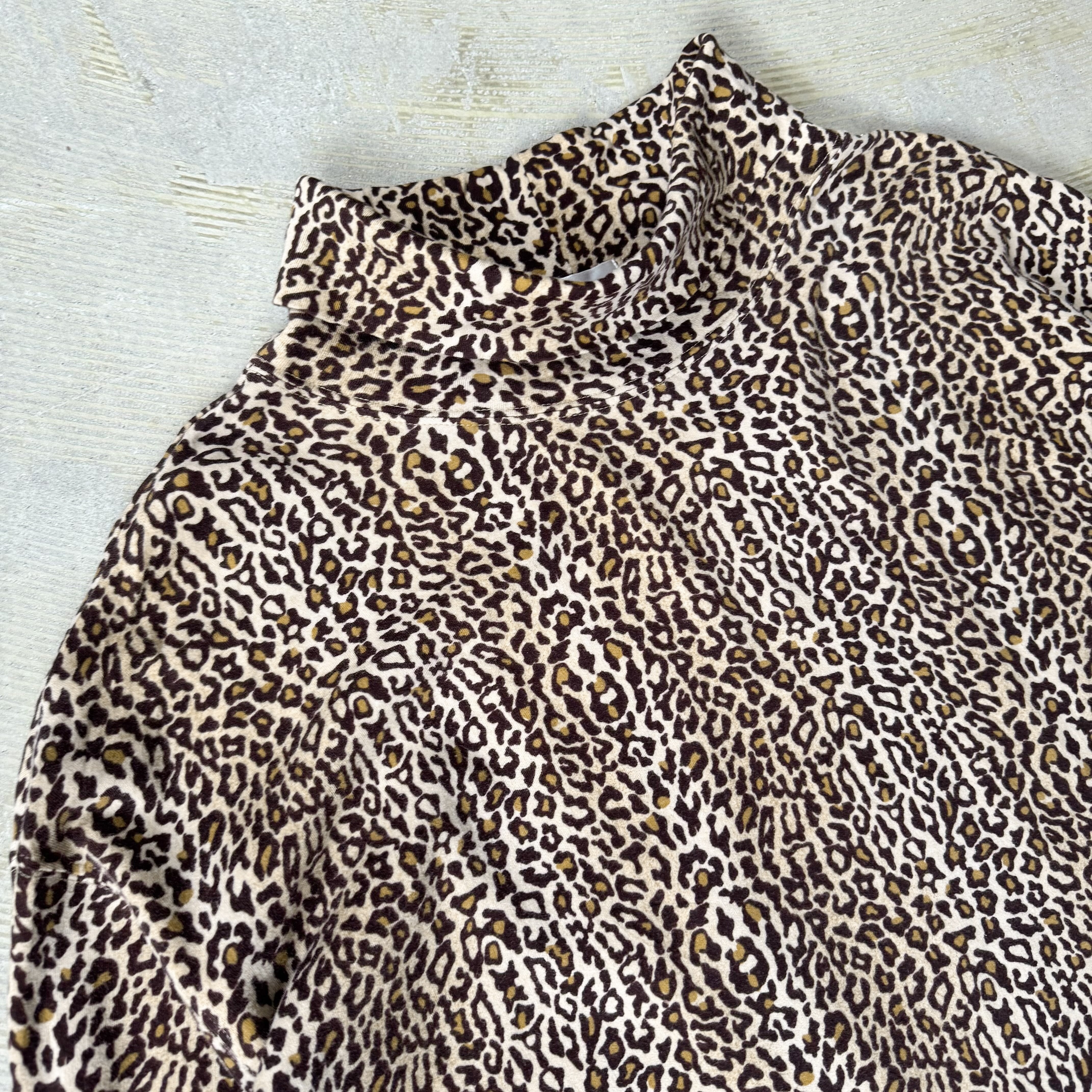 1990's VINTAGE LEOPARD PATTERN TURTLE NECK L/S TOPS / 90年代 ヴィンテージ レオパード 柄 タートル ネック トップス セカンド スキン